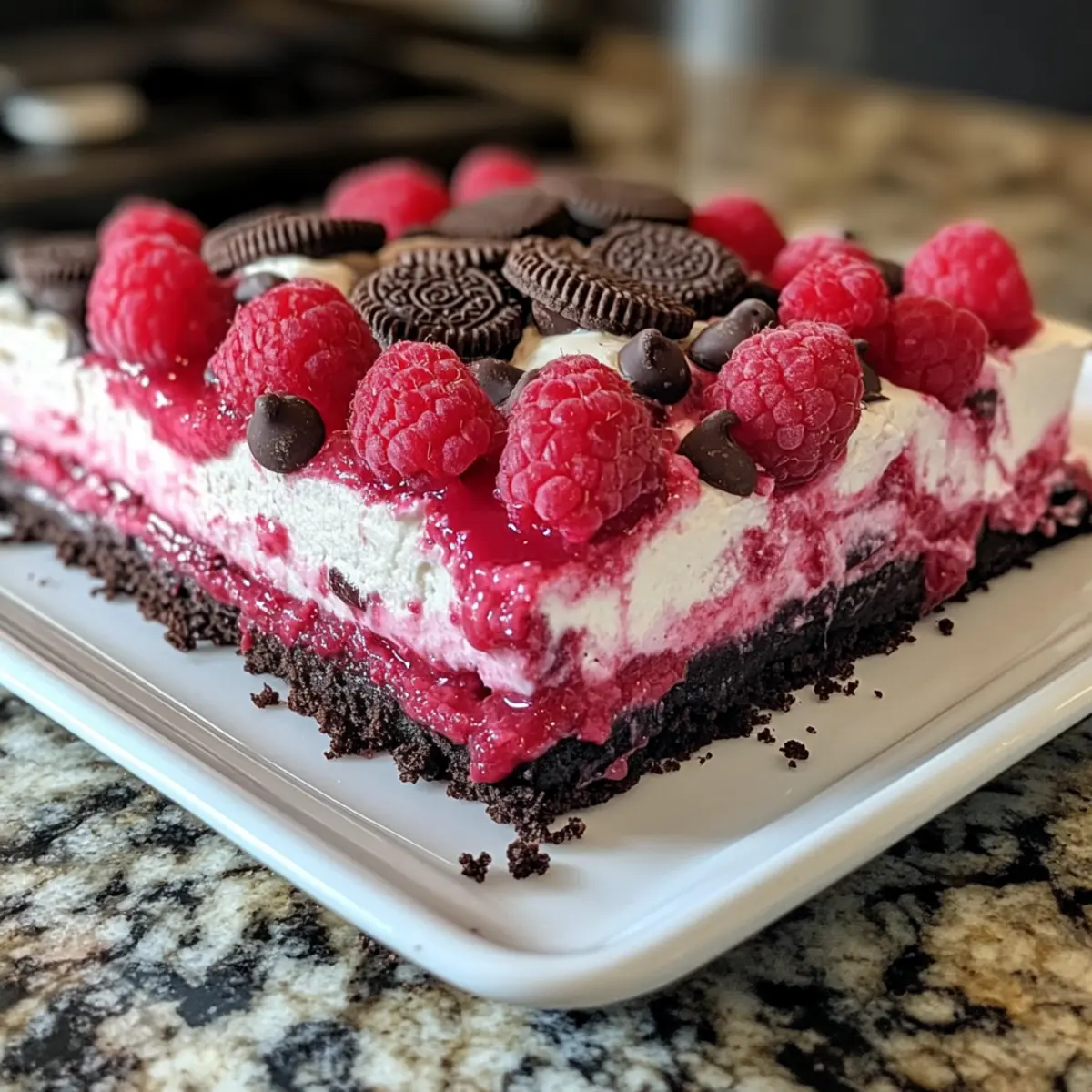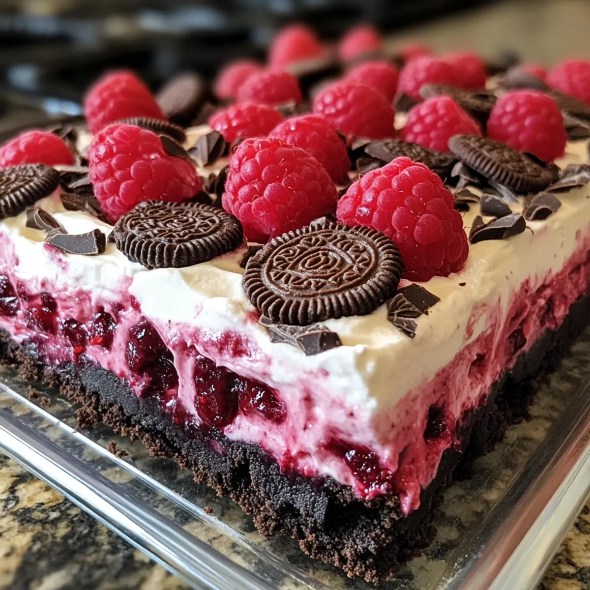 „Hast du schon einmal an einen Ort gedacht, wo Schokolade und frische Himbeeren sich in einer verführerischen Umarmung vereinen?“ Genau das erwartet dich mit meinem Himbeer-Schokoladen-Lasagne-Dessert. Dieses einfach zuzubereitende, no-bake Dessert ist nicht nur eine Augenweide, sondern es schmeckt auch himmlisch. Die Mischung aus dem kantigen Oreo-Keksboden und den cremigen Schichten aus Schokoladenpudding und fruchtiger Himbeercreme macht dieses Rezept zu einem absoluten Hit bei jeder Gelegenheit. Ob du Gäste beeindrucken oder einfach nur etwas Süßes für dich selbst möchtest – dieses Dessert wird dein Geheimnis für eine unvergessliche Nascherei sein. Und das Beste daran? Du kannst es an deine Bedürfnisse anpassen, sei es glutenfrei oder sogar vegan! Bist du bereit, dein Küchenabenteuer zu beginnen? Warum wird dieses Rezept geliebt? Einfachheit pur: Die Zubereitung ist unkompliziert und erfordert keine Backkenntnisse. Du benötigst nur grundlegende Zutaten und ein paar Schritte. Vielfältige Variationen: Diese Himbeer-Schokoladen-Lasagne lässt sich leicht anpassen, sei es mit glutenfreien Keksen oder einer veganen Variante. Sinnliches Geschmackserlebnis: Die Kombination aus cremigem Schokoladenpudding und frischen Himbeeren bietet einen unvergleichlichen Geschmack, der deine Geschmacksknospen verzaubert. Perfekter Blickfang: Mit ihren farbenfrohen Schichten sieht diese Nachspeise einfach umwerfend aus und wird garantiert alle Blicke auf sich ziehen. Wenn du weitere Abwandlungen erkunden möchtest, schau dir auch unsere Ideen für Variation Ideas an. Himbeer-Schokoladen-Lasagne-Dessert Zutaten • Entdecke die perfekten Zutaten für dieses köstliche Dessert! Für die Kruste: Oreo-Kekse – Ideal für eine geschmackvolle und knusprige Basis, die die perfekte Textur bietet. Butter – Bindet die Kruste zusammen und verleiht einen reichen Geschmack; ein Hauch von Salz macht das Ganze noch besser. Für die Schokoladenschicht: Schokoladen-Puddingpulver – Gibt der Lasagne die schokoladige Füllung; für einen veganen Genuss kannst du eine pflanzliche Option wählen. Milch – Essenziell, um den Pudding glatt zu rühren; für eine milchfreie Variante eignen sich Mandel- oder Hafermilch. Für die Himbeerschicht: Frischkäse – Sorgt für eine cremige Himbeer-Lasagne-Schicht; alternativ kannst du auch einen laktosefreien Frischkäse verwenden. Himbeeren – Fügen einen frischen, fruchtigen Geschmack hinzu und bringen Farbe; du kannst sie auch pürieren, um sie besser einzuarbeiten. Für das Topping: Cool Whip – Verleiht eine leichte und luftige Textur als abschließende Haube; alternativ ist Schlagsahne geeignet, die du bis zur gewünschten Festigkeit aufschlägst. Mit diesen Zutaten wirst du das Himbeer-Schokoladen-Lasagne-Dessert zaubern, das nicht nur einfach zuzubereiten ist, sondern auch mit seinen variablen Optionen, einschließlich glutenfreier Alternativen, jeden begeistert! Schritt-für-Schritt-Anleitung für das Himbeer-Schokoladen-Lasagne-Dessert Step 1: Kruste zubereiten Zerkrümle die Oreo-Kekse in einer Küchenmaschine oder in einer Plastiktüte mit einem Nudelholz, bis sie fein sind. Mische die Keksbrösel mit der geschmolzenen Butter, bis die Masse gut verbunden ist. Drücke die Mischung gleichmäßig in den Boden einer 23×23 cm großen Backform und forme eine kompakte Schicht. Stelle die Form dann für etwa 10 Minuten in den Kühlschrank, damit die Kruste fest wird. Step 2: Schokoladenpudding herstellen Bereite den Schokoladenpudding zu, indem du das Puddingpulver in eine Schüssel gibst und die angegebene Menge Milch hinzufügst. Mit einem Schneebesen gut verrühren, bis die Mischung glatt ist und keine Klumpen mehr vorhanden sind. Lasse den Pudding für etwa 5 Minuten stehen, damit er eindickt. Anschließend gleichmäßig auf die gekühlte Kruste des Himbeer-Schokoladen-Lasagne-Desserts gießen. Step 3: Himbeerschicht zubereiten In einer großen Rührschüssel den Frischkäse mit einer elektrischen Mischung oder einem Handmixer glatt rühren. Füge die pürierten Himbeeren hinzu und vermenge alles gründlich, bis eine cremige Konsistenz entsteht. Optional kannst du etwas Zucker hinzufügen, um die Süße anzupassen. Verteilen die Himbeercreme gleichmäßig über die Schokoladenschicht und achte darauf, die Schichten gut abzudecken. Step 4: Topping hinzufügen Verteile den Cool Whip oder die geschlagene Sahne gleichmäßig über die Himbeerschicht, um eine luftige Decke zu schaffen. Verwende einen Spatel, um dekorative Wellen oder Muster zu erzeugen, die das Aussehen des Himbeer-Schokoladen-Lasagne-Desserts verbessern. Du kannst auch einige frische Himbeeren als weitere Garnitur verwenden, um das Dessert noch ansprechender zu präsentieren. Step 5: Kühlen Decke die Backform mit Frischhaltefolie ab und stelle sie in den Kühlschrank. Lasse das Himbeer-Schokoladen-Lasagne-Dessert mindestens 4 Stunden oder über Nacht kühlen, damit es fest werden kann und die Aromen sich verbinden. Wenn du bereit bist, es zu servieren, schneide es in Quadrate und genieße diese köstliche, erfrischende Leckerei, die alle begeistern wird. Lagerungstipps für Himbeer-Schokoladen-Lasagne-Dessert Kühlschrank: Bewahre das Dessert gut abgedeckt im Kühlschrank auf, wo es bis zu 3 Tage frisch bleibt. Gefrierschrank: Du kannst das Himbeer-Schokoladen-Lasagne-Dessert auch einfrieren. Achte darauf, es gut einzuwickeln, um Gefrierbrand zu vermeiden. Vor dem Servieren im Kühlschrank auftauen lassen. Wiedereingeben: Wenn du das Dessert aufwärmen möchtest, stelle sicher, dass du es nicht in die Mikrowelle gibst, sondern es kalt oder auf Raumtemperatur genießt, um die Textur nicht zu beeinträchtigen. Sichtbarkeit: Statt des Cool Whip kannst du auch frisch geschlagene Sahne verwenden, die du vor dem Servieren hinzufügen solltest, um die beste Frische zu gewährleisten. Expert Tips für die Himbeer-Schokoladen-Lasagne Kruste festigen: Achte darauf, die Keks-Mischung gut in die Form 