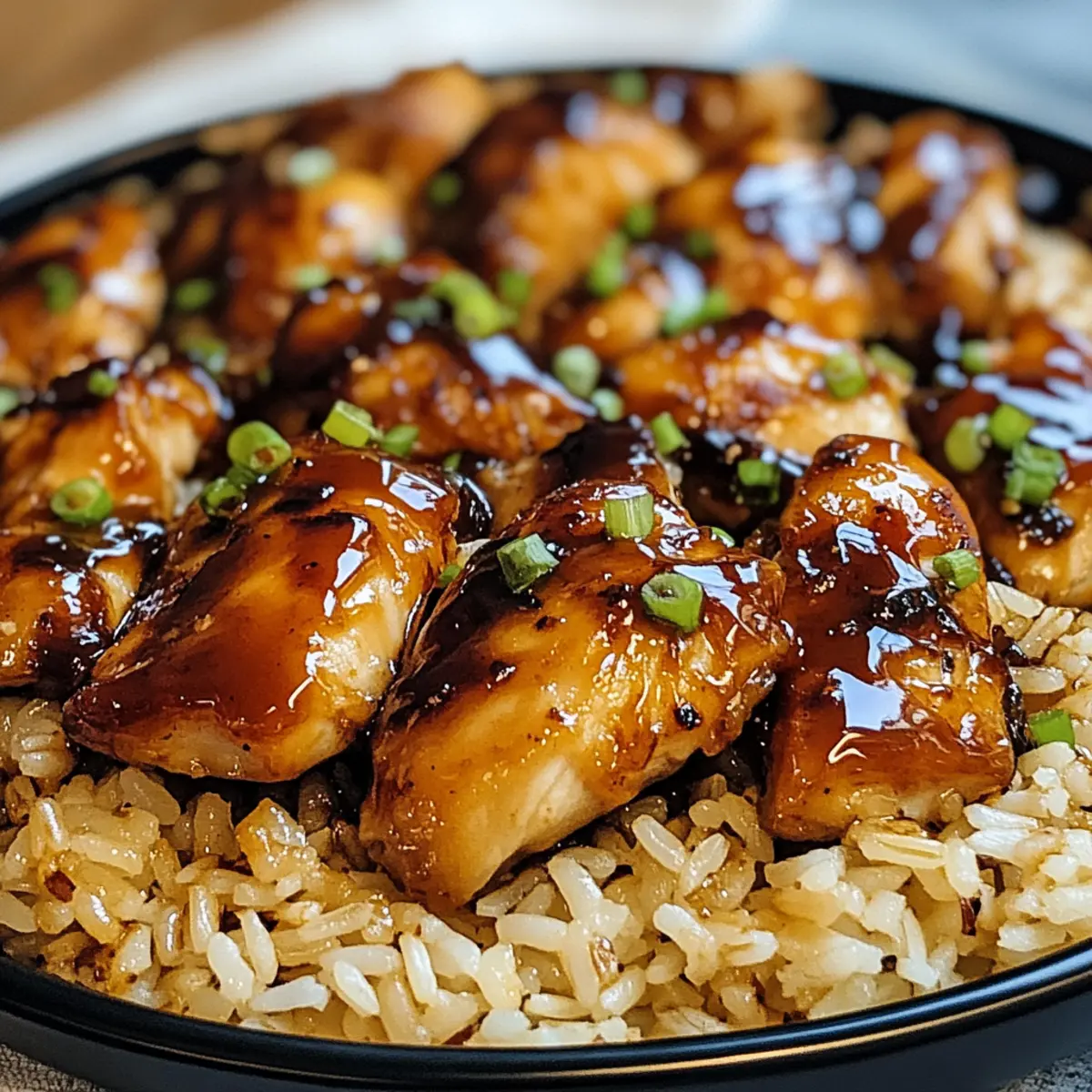 Der Klingen von Geschirr und fröhliches Lachen füllen den Raum, während ich mit Vorfreude auf den Ofen schaue. Heute steht etwas ganz Besonderes auf dem Menü: Honig BBQ Hühnchen Reis! Diese Kombination aus zartem Hühnchen, das mit einer klebrigen, süßen und rauchigen Glasur überzogen ist und auf einem Bett aus fluffigem Reis serviert wird, ist nicht nur ein Genuss für den Gaumen, sondern auch perfekt für stressige Wochentage oder gesellige Abende mit Freunden. Mit einfachen Zutaten, die du wahrscheinlich schon zu Hause hast, zauberst du in kürzester Zeit ein geschmackvolles Dinner, das das Budget schont und gleichzeitig jedem schmeckt. Wer kann da schon widerstehen? Lass uns gemeinsam in die Zubereitung eintauchen und entdecken, wie einfach es sein kann, gute Laune in der Küche zu verbreiten! Warum wirst du dieses Rezept lieben? Einfachheit: Die Zubereitung ist unkompliziert und erfordert nur wenige Grundkenntnisse in der Küche. Köstlicher Geschmack: Die Kombination aus honigsüßem BBQ und zartem Hühnchen sorgt für ein Geschmackserlebnis, das jeden begeistert. Budgetfreundlich: Mit einfachen, erschwinglichen Zutaten zauberst du ein großartiges Essen, das deinen Geldbeutel schont. Vielseitigkeit: Du kannst dieses Rezept leicht anpassen, indem du verschiedene Gemüsesorten oder Reissorten verwendest. Probiere auch unsere Variationen und Tipps für noch mehr Genuss! Schnell und einfach: In weniger als einer Stunde ist das Abendessen auf dem Tisch – perfekt für stressige Wochentage! Familienfreundlich: Dieses Gericht kommt bei Jung und Alt gleichermaßen gut an und macht jede Mahlzeit zu einem besonderen Erlebnis. Honig BBQ Hühnchen Reis Zutaten • Für ein köstliches, einfaches Abendessen. Für das Hühnchen • Hühnchenoberkeulen ohne Knochen – Sie sorgen für Saftigkeit und saugen die Soße gut auf. • Knoblauch – Frisch gehackt für einen aromatischen Kick; Knoblauchpulver kann in Eile verwendet werden. Für den Reis • Langkornreis – bildet die fluffige Basis, die die Soße aufsaugt; kann auch durch Vollkornreis ersetzt werden. • Hühnerbrühe – fügt Geschmack und Feuchtigkeit beim Kochen hinzu; verwende Gemüsebrühe für eine vegetarische Variante. Für die Soße • BBQ-Soße – verleiht dem Gericht einen rauchigen, würzigen Geschmack; wähle deine Lieblingsmarke oder mache sie selbst. • Honig – entscheidend für die Süße und das Entstehen einer glänzenden Glasur; kann durch Ahornsirup ersetzt werden, um einen anderen Süßigkeitsgrad zu erzielen. Für das Gemüse • Gemüse-Mix – sorgt für Farbe und Nährstoffe; beliebige frische oder gefrorene Mischung kann verwendet werden. Diese Zutaten machen den Honig BBQ Hühnchen Reis zu einem einfachen und köstlichen Gericht, das sich schnell zubereiten lässt und jedem am Tisch Freude bereitet! Schritt-für-Schritt-Anleitung für Honig BBQ Hühnchen Reis Step 1: Ofen vorheizen Heize deinen Ofen auf 190°C (375°F) vor. Dadurch wird sichergestellt, dass das Hühnchen gleichmäßig gart und eine köstliche, klebrige Glasur erhält, die die Grundlage für deinen Honig BBQ Hühnchen Reis bildet. Benutze während des Vorheizens eine Auflaufform, die für das Backen geeignet ist. Step 2: Soße mischen In einer großen Rührschüssel gib den Honig, die BBQ-Soße, die Sojasauce und den gehackten Knoblauch zusammen. Rühre die Mischung gut um, bis sie gleichmäßig und glatt ist. Diese Kombination wird die Hauptsauce für die Hühnchenstücke sein, wann du ihn später aufdas Huhn gibst. Step 3: Backform vorbereiten Fette deine Backform mit etwas Öl oder Kochspray ein. Dies verhindert, dass das Hühnchen an der Form kleben bleibt und sorgt für ein einfaches Servieren des Honig BBQ Hühnchen Reis. Ein gut gefettetes Blech ist wichtig, um die köstlichen Aromen zu bewahren. Step 4: Hühnchen würzen Nehme die Hühnchenoberkeulen und wende sie in der Hälfte der vorbereiteten Soße, damit sie gleichmäßig überzogen sind. Lege das gewürzte Hühnchen in die vorbereitete Backform und gieße die verbleibende Soße gleichmäßig darüber. Dies sorgt dafür, dass das Hühnchen während des Garens saftig bleibt. Step 5: Backen Backe das Hühnchen für 35-40 Minuten, bis es durchgegart ist und die Soße eine glänzende, klebrige Konsistenz erreicht. Baste das Hühnchen etwa in der Mitte der Backzeit mit der sämigen Soße, um die Aromen noch intensiver werden zu lassen und die Oberfläche schön karamellisieren zu lassen. Step 6: Ruhen lassen Nachdem das Hühnchen aus dem Ofen kommt, lasse es für 5 Minuten ruhen. So kann sich der Saft im Hühnchen verteilen und es bleibt besonders saftig. Diese Ruhezeit ist entscheidend, um die beste Textur für deinen Honig BBQ Hühnchen Reis zu erzielen. Step 7: Servieren Serviere das Hühnchen über einer Basis aus fluffigem Langkornreis und beträufele es mit der restlichen Soße aus der Backform. Der Reis wird die köstlichen Aromen aufschlürfen und abgerundeten Geschmack liefern. Dieses Gericht ist eine wunderbare Kombination aus süß und herzhaft, die jeden am Tisch anspricht. Tipps für das beste Honig BBQ Hühnchen Reis Richtig garen: Überprüfe immer die Kerntemperatur des Hühnchens, sie sollte 74°C (165°F) betragen, um sicherzustellen, dass es vollständig durchgegart ist. Reis nicht überkochen: Achte darauf, die Kochzeit für den Reis im Ofen zu kontrollieren, um eine gleichmäßige Konsistenz zu gewährleisten. Koche den Reis im Zweifelsfall separat. Soße anpassen: Verleihe deinem Honig BBQ Hühnchen Reis mehr Würze, indem du Chili-Flocken hinzufügst. Für Kinder kannst du die Gewürze mild halten. Gemüse hinzufügen: Bereite eine Mischung aus frischem Gemüse wie Paprika oder Erbsen während des Backens zu, um zusätzlich Farbe und Nährstoffe zu integrieren. Vorkochen: Mariniere das Hühnchen einen Tag vorher in der Soße für intensiveren Geschmack und eine schnellere Zubereitungszeit an deinem Serviertag. Honig BBQ Hühnchen Reis im Voraus zu