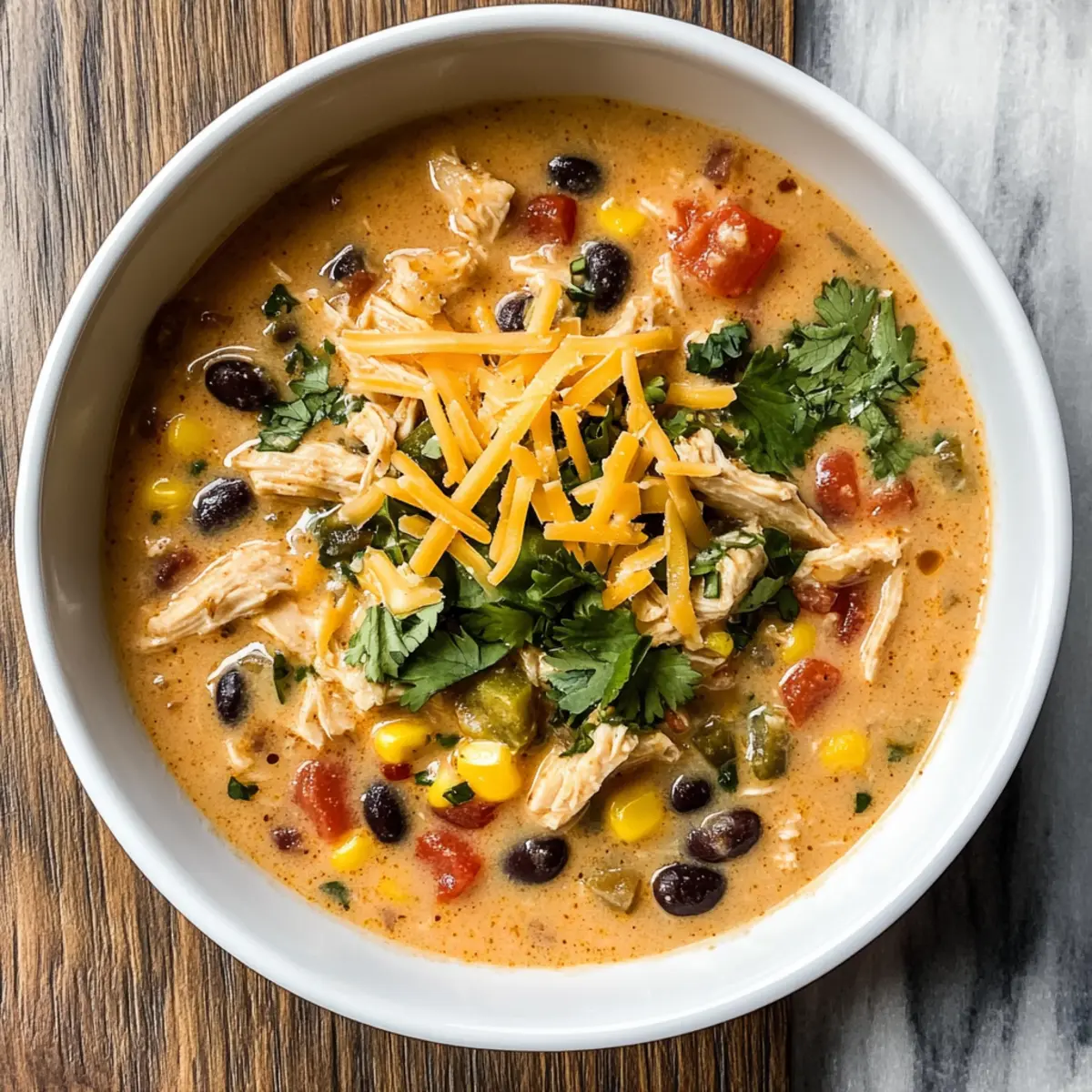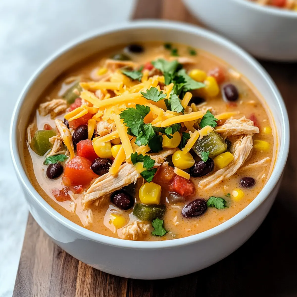 Als ich neulich mit Freunden eine gemütliche Nacht verbrachte, hörte ich plötzlich das Geräusch des schmelzenden Käses und das Aroma von Gewürzen, die durch die Küche zogen. Es war diese einfache Hühnertaco-Suppe, die all das und mehr bot – eine herzhafte Kombination aus zarten Hähnchenstücken, schwarzen Bohnen und süßem Mais, alles eingehüllt in eine cremige Brühe aus Rotel-Tomaten. Mit nur 35 Minuten Zubereitungszeit ist diese Suppe nicht nur schnell gemacht, sondern bringt zudem den Komfort von Tacos in Form von wärmender Suppe auf den Tisch. Ideal für hektische Abende oder wenn sich der Hunger nach etwas Herzhaftem meldet. Ich kann es kaum erwarten, euch zu zeigen, wie einfach und köstlich ihr diese Tex-Mex-Leckerei zu Hause zaubern könnt! Welche Toppings werdet ihr hinzufügen, um eure persönliche Note einzubringen? Warum ist diese Hühnertaco-Suppe besonders? Schnelle Zubereitung: In nur 35 Minuten habt ihr eure köstliche Suppe auf dem Tisch, perfekt für stressige Abende nach der Arbeit. Köstliche Aromen: Eine cremige Brühe mit Rotel-Tomaten und Gewürzen zaubert den vollen Taco-Geschmack in jede Schale. Verwendung von Vorratszutaten: Die meisten Zutaten sind aus der Vorratskammer, was das Kochen besonders unkompliziert macht. Vielseitigkeit: Ob im Topf, Instant Pot oder Crockpot – die Zubereitungsmethoden sind flexibel und passen zu deinem Küchensystem. Wenn du nach weiteren Rezeptideen suchst, schau auch mal bei der Zitronen Huehnchen Suppe oder der Wuerzige Huehnersuppe Italienischer Art vorbei! Geselligkeit: Ideal für gesellige Abende mit Freunden oder Familie – jeder kann seine Lieblings-Toppings hinzufügen und die Suppe nach Belieben anpassen. Nährstoffreich und sättigend: Mit 21g Protein pro Portion bietet sie eine ausgewogene, sättigende Mahlzeit. Hühnertaco-Suppen-Zutaten Hinweis: Für dieses schnelle Rezept der Hühnertaco-Suppe benötigt ihr nur einige einfache Zutaten! Für die Brühe: Olivenöl – sorgt für die nötige Fette zum Anbraten; canola Öl ist eine neutrale Alternative. Zwiebel – verleiht Süße und Tiefe; eine gelbe oder weiße Zwiebel funktioniert gleich gut. Hühnerbrühe – bildet die Basis und verstärkt den Geschmack; wählt eine natriumarme Variante für eine gesündere Option. Ro-tel gewürfelte Tomaten & grüne Chilis – liefert eine würzige Tomatenbasis; ersetzt sie durch normale gewürfelte Tomaten und fügt grüne Chilis für ein ähnliches Geschmackserlebnis hinzu. Für die Hauptzutaten: Schwarze Bohnen – bringt Protein und Textur; Canned beans vorher abspülen, um den Natriumgehalt zu reduzieren. Mais – ergänzt die Textur und Süße; sowohl gefrorener als auch konservierter Mais sind geeignet. Rote Paprika – sorgt für Süße und Farbe; grünes Paprika ist ein guter Ersatz. Chilipulver, Knoblauchpulver, Kreuzkümmel, geräuchertes Paprikapulver – Gewürze, die das Taco-Aroma unterstreichen; Mengen nach Geschmack anpassen. Frischkäse – sorgt für eine cremige Textur; vor der Zugabe gut weich werden lassen. Für eine leichtere Option verwenden, bietet sich Neufchâtel-Käse an. Gekochtes/Rotisserie-Hühnchen – das Hauptprotein; fein zerkleinert, lässt sich gleichmäßig verteilen. Übrige Hähnchenreste sind perfekt. Salz & Pfeffer – essentielle Gewürze, die den Geschmack verstärken; nach Geschmack anpassen. Toppings (optional): Geriebene mexikanische Käsemischung – für einen herzhaften Geschmack und eine köstliche Kruste. Avocado – bietet eine crembende Note und gesunde Fette. Koriander – bringt Frische und ein wenig Farbe ins Spiel. Tortillastreifen – ideal für den Crunch und eine schöne Präsentation. Diese leckere Hühnertaco-Suppe kombiniert all diese Zutaten zu einem herzhaften Gericht, das jeden erfreut! Schritt-für-Schritt-Anleitung zur Hühnertaco-Suppe Step 1: Zwiebel anbraten Erhitze in einem großen Topf 1–2 Esslöffel Olivenöl bei mittlerer bis hoher Hitze. Füge die gewürfelte Zwiebel hinzu und brate sie etwa 5 Minuten lang, bis sie weich und leicht goldbraun ist. Rühre gelegentlich um, damit sie nicht anbrennt. Dieser Schritt sorgt für eine aromatische Grundlage der Hühnertaco-Suppe. Step 2: Brühe und Gemüse hinzufügen Gieße 4 Tassen Hühnerbrühe zusammen mit 1 Dose Ro-tel gewürfelte Tomaten, 1 Dose schwarze Bohnen (abgespült), 1 Tasse Mais und 1 gewürfelte rote Paprika in den Topf. Rühre alles gut um, um sicherzustellen, dass sich die Zutaten gleichmäßig verteilen. Bring die Mischung zum Kochen und genieße den sämigen Duft, der bereits aufsteigt. Step 3: Köcheln lassen Sobald die Soup kocht, reduziere die Hitze und lasse die Mischung unbedeckt bei niedriger Hitze etwa 5 Minuten köcheln. Rühre gelegentlich um und kontrolliere, ob das Gemüse zart wird. Dies verstärkt die Aromen der Hühnertaco-Suppe und sorgt für eine harmonische Geschmacksmischung. Step 4: Frischkäse einrühren Schneide 200 g Frischkäse in kleine Würfel und füge ihn zur Suppe hinzu. Rühre kräftig um, bis der Frischkäse vollständig geschmolzen und eingearbeitet ist. Dies verleiht der Hühnertaco-Suppe eine cremige Konsistenz und macht sie besonders geschmackvoll. Step 5: Hühnchen hinzufügen Füge 2 Tassen zerkleinertes oder Rotisserie-Hühnchen in die Suppe hinzu und erhitze das Ganze für weitere 5–7 Minuten. Rühre dabei gut um, um sicherzustellen, dass sich das Hühnchen gleichmäßig verteilt und die Suppe schön warm wird. Schau, dass die Suppe nicht kocht, während du dies tust. Step 6: Abschmecken und servieren Schmecke die Hühnertaco-Suppe mit Salz und Pfeffer ab, um die Aromen zu intensivieren. Nachdem du die perfekte Balance gefunden hast, servierst du die Suppe heiß in Schalen. Lass jeden seine Lieblings-Toppings wie geriebenen Käse, Avocado und Koriander hinzufügen, um das Gericht nach Belieben zu verfeinern. Tipps für die beste Hühnertaco-Suppe Frischkäse weich machen: Stelle sicher, dass der Frischkäse super weich ist, bevor du ihn h