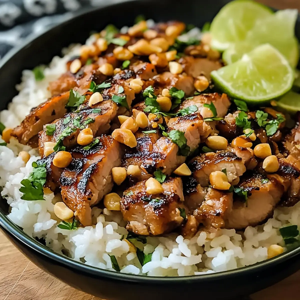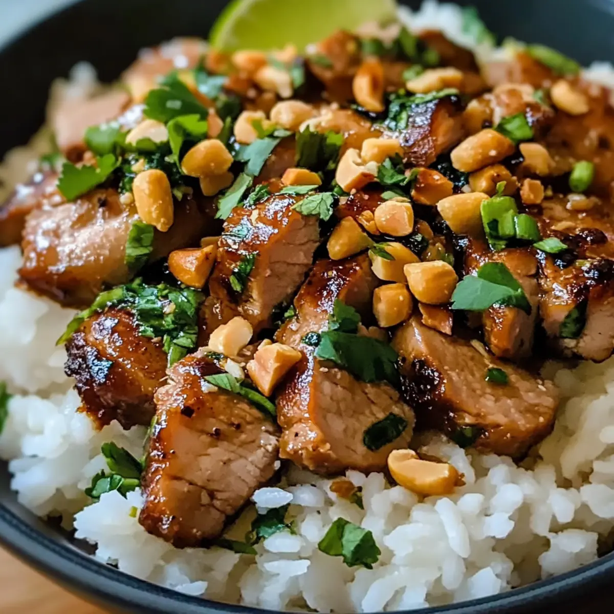 Während ich die lebhaften Aromen der asiatischen Küche erkunde, stieß ich auf eine Kombination, die meine Geschmacksnerven zum Tanzen brachte: Ingwer-Limetten-Schweinefleisch mit Kokosreis. Dieses schnelle Wochentagsgericht hat alles, was man sich wünschen kann – es ist nicht nur in 35 Minuten zubereitet, sondern bringt auch eine reiche Geschmackstiefe und die perfekte Balance zwischen Süße und Säure auf den Tisch. Die zarte Textur des Schweinefleischs, kombiniert mit dem cremigen Kokosreis, macht es zu einem echten Familienliebling, der selbst eingefleischte Fast-Food-Liebhaber überzeugen kann. Seine Vielseitigkeit erlaubt es, mit verschiedenen Fleischsorten zu experimentieren, sei es zartes Hühnchen oder würziges Hackfleisch. Bereit für ein bisschen tropischen Genuss? Lass uns gemeinsam kochen! Warum du dieses Rezept lieben wirst Einfachheit: Die Zubereitung ist unkompliziert und erfordert nur grundlegende Kochfähigkeiten, perfekt für eine schnelle Woche unter der Woche. Würzige Aromen: Die Kombination aus Ingwer und Limette sorgt für einen geschmacklichen Höhepunkt, der deine Sinne verführt. Vielseitigkeit: Ob du Schweinefleisch, Hühnchen oder Hackfleisch verwendest, dieses Gericht passt sich an deine Vorlieben an, sodass du es immer wieder anders genießen kannst. Schnelle Zubereitung: In nur 35 Minuten bist du bereit, deine Familie mit einem köstlichen Gericht zu verwöhnen, das an Restaurantqualität erinnert. Gesunde Optionen: Mit glutenfreien Zutaten wie Tamari kannst du problemlos eine leckere, gesunde Mahlzeit zubereiten. Perfekte Textur: Der cremige Kokosreis ergänzt perfekt das zarte Fleisch und sorgt für ein rundum befriedigendes Essgefühl. Wenn du nach weiteren Rezeptideen suchst, schau dir auch unsere Pasta Mit Spargel oder den Gemueseauflauf Mit Creme an! Ingwer-Limetten-Schweinefleisch Zutaten Für das Fleisch Schweinefilet – Die Hauptproteinquelle, bietet eine zarte Textur; kann durch gemahlenes Schweinefleisch oder Hähnchenschenkel ersetzt werden. Minz-Ingwer – Fügt wärmende Würze und Tiefe hinzu; frischer Ingwer wird empfohlen, kann bei Bedarf durch gemahlenen Ingwer ersetzt werden (weniger verwenden). Limettensaft – Verleiht dem Gericht Säure und Frische; kann bei Bedarf durch Zitronensaft ersetzt werden. Sojasauce – Führt umami Geschmack und Salzgehalt ein; verwende Tamari für eine glutenfreie Variante. Brauner Zucker – Fügt notwendige Süße hinzu und balanciert die Aromen aus; kann durch Kokoszucker ersetzt werden. Knoblauch – Verstärkt den Gesamtgeschmack; frischer, gehackter Knoblauch ist bevorzugt, aber Knoblauchpulver kann auch verwendet werden (weniger nehmen). Sriracha – Fügt einen scharfen Kick hinzu; kann weggelassen oder reduziert werden, wenn weniger Schärfe gewünscht ist. Für den Kokosreis Kokosmilch – Basis für den cremigen Kokosreis; kann auch fettreduzierte Kokosmilch für eine leichtere Option verwendet werden. Jasminreis – Wichtig für die Textur des Kokosreis; kann bei Bedarf durch Basmatireis ersetzt werden. Gemüseöl – Zum Braten des Fleisches; Olivenöl oder ein anderes neutrales Öl können als Ersatz genutzt werden. Für die Garnitur Frische Kräuter (Koriander, Minze, Thai-Basilikum) – Werden als Garnitur verwendet und verleihen Frische und Geschmack; jede Kombination ist möglich, und normales Basilikum kann verwendet werden, wenn Thai-Basilikum nicht verfügbar ist. Erdnüsse – Optionale knusprige Garnitur für zusätzlichen Biss; Cashews oder Mandeln können zur Abwechslung verwendet werden. Schritt-für-Schritt-Anleitung für Ingwer-Limetten-Schweinefleisch mit Kokosreis Step 1: Fleisch vorbereiten Schneide das Schweinefilet in 2,5 cm große Medaillons oder bereite gemahlenes Schweinefleisch vor. Achte darauf, dass die Stücke gleichmäßig geschnitten sind, sodass sie gleichmäßig garen. Lege das vorbereitete Fleisch beiseite, während du die Marinade anrührst. Step 2: Marinade herstellen Vermische in einer Schüssel den minced Ingwer, den Limettensaft, die Sojasauce, den braunen Zucker, den Knoblauch und die Sriracha. Rühre die Zutaten gründlich um, bis sich der Zucker auflöst. Diese würzige Marinade wird dem Ingwer-Limetten-Schweinefleisch mit Kokosreis seine köstlichen Aromen verleihen. Step 3: Schweinefleisch marinieren Lege das Schweinefleisch in die Marinade und lasse es mindestens 5 Minuten ziehen, idealerweise 15 Minuten. Je länger es mariniert, desto intensiver wird der Geschmack. Während das Fleisch zieht, kannst du mit der Zubereitung des Kokosreises beginnen. Step 4: Reis zubereiten Spüle den Jasminreis in einem feinen Sieb ab, bis das Wasser klar ist. Gib den Reis zusammen mit der Kokosmilch, 240 ml Wasser und einer Prise Salz in einen Topf. Bring alles zum Kochen, reduziere dann die Hitze und lass den Reis zugedeckt 18 Minuten köcheln, bis die Flüssigkeit aufgesogen ist. Step 5: Fleisch anbraten Erhitze in einer großen Pfanne das Öl bei mittelhoher Hitze. Nimm das marinatierte Schweinefleisch heraus und würze es mit Salz und Pfeffer. Brate die Medaillons für etwa 3-4 Minuten pro Seite an, bis sie goldbraun sind und eine Innentemperatur von 63°C erreichen. Wenn du gemahlenes Schweinefleisch verwendest, koche es etwa 6-8 Minuten. Step 6: Soße herstellen Nimm das Fleisch aus der Pfanne und lasse es kurz ruhen. Füge die restliche Marinade in die Pfanne hinzu und deglaziere sie für 2-3 Minuten bei mittlerer Hitze. Koche die Marinade, bis sie sirupartig wird und den Pfannenboden löst. Diese Soße wird das endgültige Geschmackserlebnis perfekt abrunden. Step 7: Reis auflockern Nachdem der Jasminreis gekocht ist, nimm ihn vom Herd und lasse ihn einige Minuten abgedeckt stehen. Fluffe den Reis mit einer Gabel auf und mische eventuell etwas Butter darunter, um die Cremigkeit zu erhöhen. Garniere den Reis mit gerösteten Kokosraspeln für zusätzlichen Geschmack. Step 8: Anrichten und servieren Serviere das Ingwer-Limetten-Schweinefleisch auf einer 