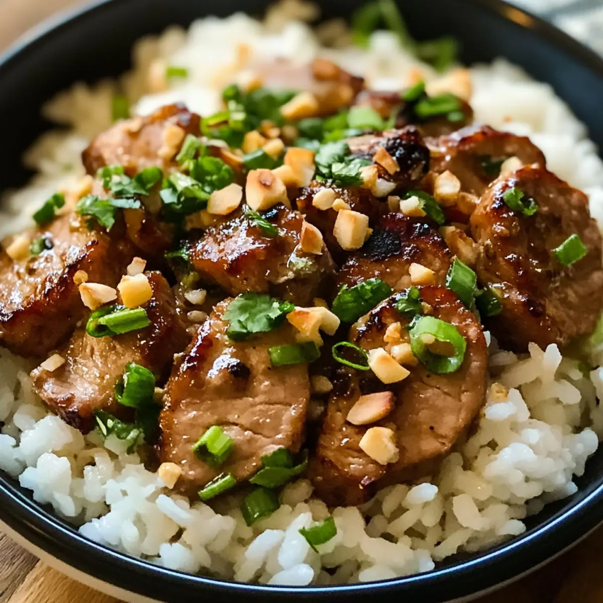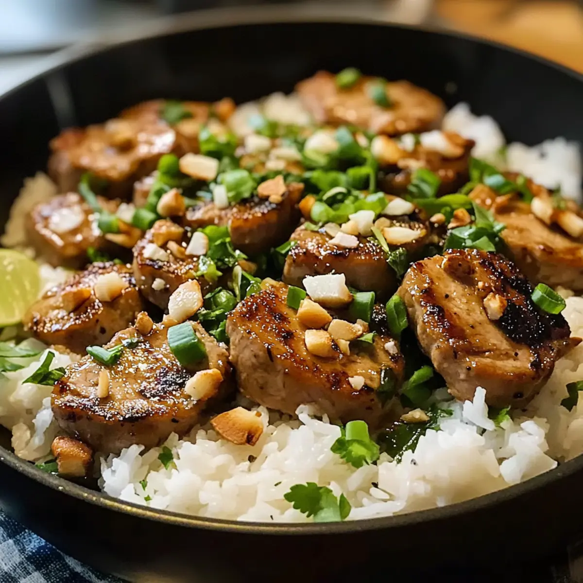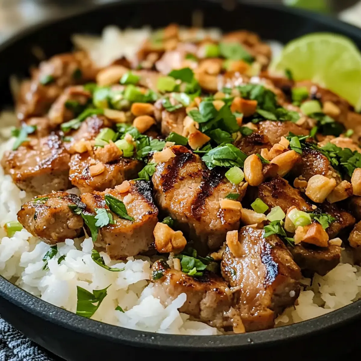 „Wieso bleibt das leckere Aroma der Fernostküche nur den Restaurants vorbehalten?“ Diese Frage hat mich dazu inspiriert, ein Gericht zu kreieren, das uns auf eine kulinarische Reise entführt, ohne unser Zuhause verlassen zu müssen. Das Ingwer-Limetten-Schweinefleisch mit Kokosreis bringt den Geschmack Asiens direkt in unsere Küche. Mit nur wenigen Zutaten und in nur 35 Minuten zubereitet, ist dieses Rezept nicht nur ein echter Crowd-Pleaser, sondern auch perfekt für hektische Wochentage. Die zarten Medaillons werden in einer aromatischen Marinade aus Ingwer und Limette geschmort und dazu servieren wir cremigen Kokosreis – ein Genuss für Gaumen und Seele. Bist du bereit, dein Abendessen in ein tropisches Erlebnis zu verwandeln? Warum wirst du dieses Rezept lieben? Einfachheit mit Geschmack: Die Zubereitung ist kinderleicht und erfordert nur grundlegende Kochfähigkeiten – perfekt für jeden Hobbykoch! Tropisches Highlight: Die Kombination aus Ingwer und Limette verleiht dem Schweinefleisch einen frischen, exotischen Geschmack, der Erinnerungen an den Urlaub weckt. Schnell und Stressfrei: Mit nur 35 Minuten Kochzeit ist dieses Gericht ideal für hektische Wochentage; du wirst begeistert sein, wie schnell ein delikates Essen auf dem Tisch stehen kann. Vielfältige Variationen: Egal ob für das Abendessen oder als Füllung für Wraps, die Möglichkeit, dieses Rezept mit gemahlenem Schweinefleisch oder Hähnchenschenkeln zu variieren, bietet dir viele Optionen! Crowd-Pleaser: Die Kombination aus zartem Fleisch und cremigem Kokosreis wird deine Familie oder Gäste garantiert beeindrucken – für jeden Geschmack ist etwas dabei. Genieße es als Hauptgericht mit einer Beilage wie Gemueseauflauf Mit Creme oder frischem Knoblauchbrot Mit Kaese! Ingwer-Limetten-Schweinefleisch Zutaten Hier sind die Zutaten für ein köstliches Ingwer-Limetten-Schweinefleisch mit Kokosreis. Für das Schweinefleisch Schweinefilet – Hauptprotein, sorgt für eine zarte Textur; kann durch gemahlenes Schweinefleisch oder Hähnchenschenkel ersetzt werden. Ingwer – Gibt Wärme und Tiefe; frischer Ingwer ist ideal, aber Pulver kann im Notfall verwendet werden. Limettensaft – Verleiht Frische und Säure; frischer Limettensaft sorgt für das beste Aroma. Sojasoße – Fügt umami Geschmack hinzu; kann durch Tamari für eine glutenfreie Option ersetzt werden. Brauner Zucker – Balanciert die herzhaften Aromen mit Süße; Kokoszucker ist ein guter Ersatz. Knoblauch – Bringt aromatischen Geschmack; kann weggelassen werden, wenn gewünscht. Sriracha – Fügt einen würzigen Kick hinzu; die Menge je nach Schärfewunsch anpassen oder für eine mildere Variante weglassen. Für den Kokosreis Jasminreis – Grundlage des Gerichts und sorgt für eine fluffige Konsistenz; Basmati-Reis ist eine gute Alternative. Kokosmilch – Verleiht dem Reis Cremigkeit; halbe und halbe kann als nicht-dairy Alternative verwendet werden. Gemüsesirup – Zum Kochen; kann durch Kokosöl ersetzt werden, um zusätzlichen Geschmack zu erhalten. Salz und Pfeffer – Grundgewürze; nach Geschmack anpassen. Zum Garnieren Frühlingszwiebeln – Bringt Frische und Knusprigkeit; kann durch Frühlingszwiebeln oder Schnittlauch ersetzt werden. Geröstete Kokosnussflocken – Optionale Garnitur für zusätzliche Textur; Nüsse sind eine alternative Option. Frische Kräuter (Koriander, Minze, Thai-Basilikum) – Erfrischt das Gericht und fügt geschmackliche Nuancen hinzu; andere frische Kräuter können ebenfalls verwendet werden. Mit diesen Zutaten bereitest du ein geschmackvolles Ingwer-Limetten-Schweinefleisch zu, das in Kombination mit Kokosreis einfach unwiderstehlich ist! Step-by-Step Instructions für Ingwer-Limetten-Schweinefleisch mit Kokosreis Step 1: Schweinefilet vorbereiten Schneide das Schweinefilet in etwa 2,5 cm dicke Medaillons. Mische in einer Schüssel frischen Ingwer, Limettensaft, Sojasoße, braunen Zucker, Knoblauch und Sriracha zu einer Marinade. Lege die Medaillons in die Marinade und lasse sie mindestens 5 Minuten ziehen, damit die Aromen gut einziehen können. Step 2: Kokosreis kochen Spüle den Jasminreis unter fließendem Wasser ab, bis das Wasser klar bleibt. In einem Topf mische den Reis mit Kokosmilch, Wasser und einer Prise Salz. Bring die Mischung zum Kochen und reduziere dann die Hitze. Bedecke den Topf und lasse den Reis 18 Minuten lang auf niedriger Hitze garen, ohne den Deckel anzuheben. Step 3: Schweinefilet braten Erhitze in einer Pfanne etwas Gemüsesirup bei mittelhoher Hitze. Würze die marinierten Schweinefilet-Medaillons mit Salz und Pfeffer und brate sie 3-4 Minuten pro Seite, bis sie goldbraun sind und die Innentemperatur 63°C erreicht. Nimm die Medaillons aus der Pfanne und lasse sie kurz ruhen, damit die Säfte sich setzen können. Step 4: Reis fertigstellen Nachdem der Reis gekocht ist, nimm den Topf vom Herd und lockere den Kokosreis mit einer Gabel auf. Füge ein Stück Butter hinzu und rühr die gerösteten Kokosnussflocken unter, um zusätzlichen Geschmack und eine cremige Textur zu erhalten. Step 5: Soße zubereiten Nutze die Restmarinade aus der ersten Schüssel, um die Pfanne zu deglazieren. Gieße die Marinade in die heiße Pfanne und lasse sie kurz einkochen, bis sie sirupartig wird. Dies bringt tolle Aromen, die dein Ingwer-Limetten-Schweinefleisch perfekt abrunden. Step 6: Anrichten Verteile die aufgeschnittenen Schweinemedaillons auf einem Teller über dem Kokosreis. Träufle die eingekochte Soße darüber und garniere das Gericht mit gehackten Erdnüssen, frischen Kräutern und Frühlingszwiebeln für zusätzlichen Geschmack und Farbe. Aufbewahrungstipps für Ingwer-Limetten-Schweinefleisch Zimmertemperatur: Lass das Ingwer-Limetten-Schweinefleisch und den Kokosreis nicht länger als 2 Stunden bei Zimmertemperatur stehen, um die Frische zu bewahren. Kühlschrank: Du kannst die Reste bis zu 3 Tage im Kühlschrank aufbewahren. Packe das Fleisch und den Reis in luftdichte Behälter,
