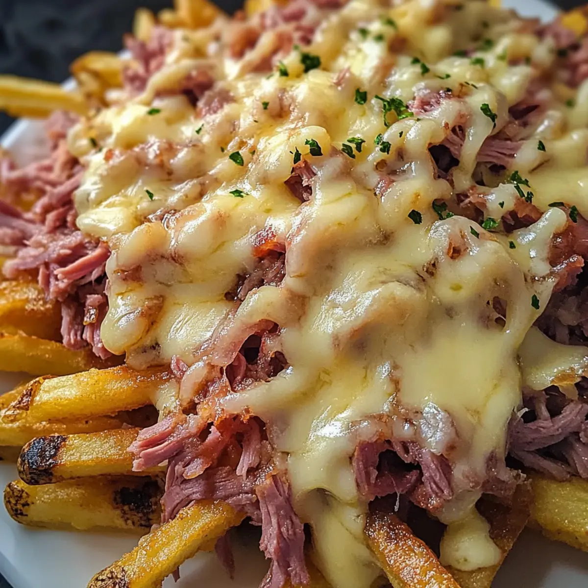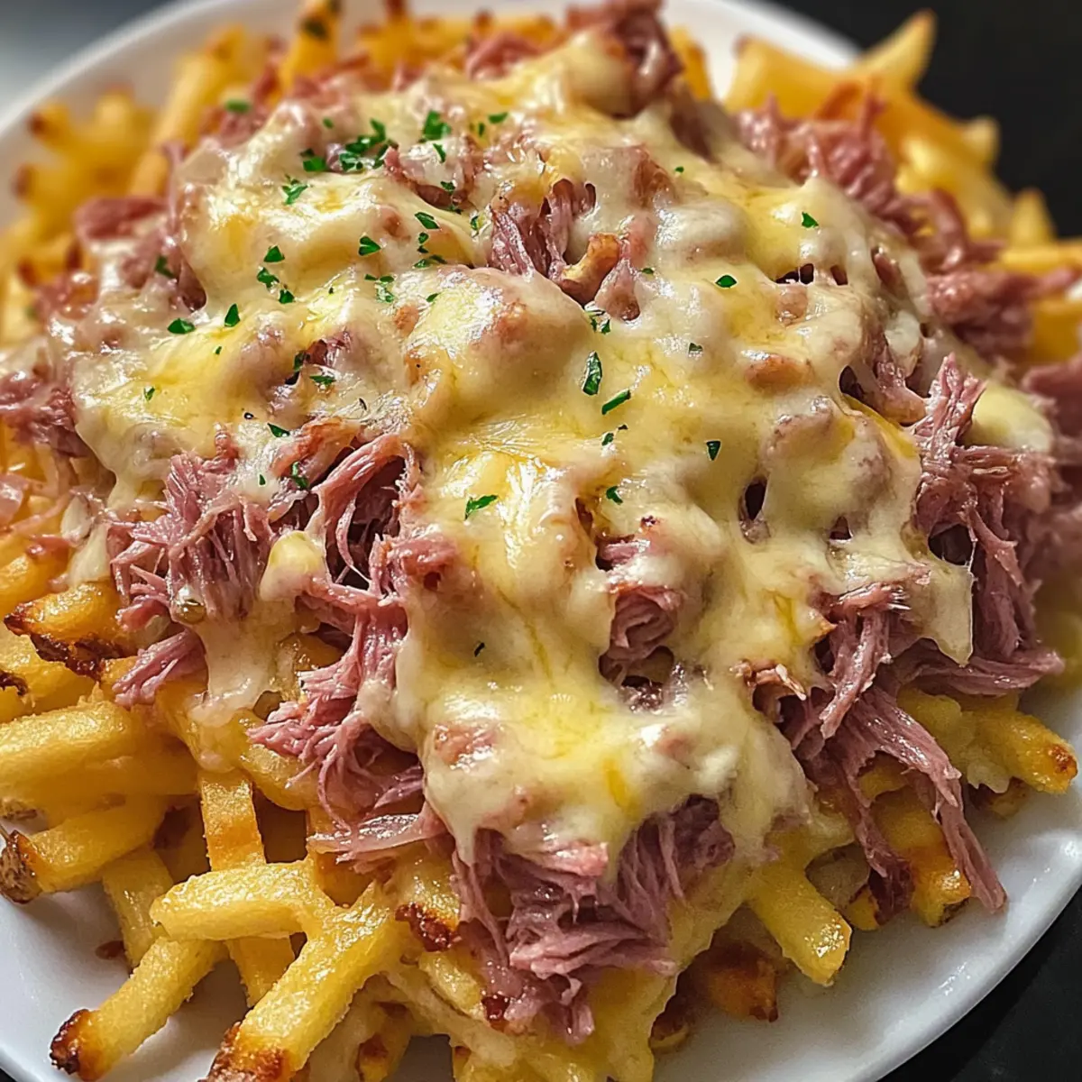 Es gibt nichts Besseres, als den köstlichen Duft von frisch gebackenem Essen in der Luft zu spüren! Die Irischen Nachos sind eine himmlische Kombination aus knusprigen Waffel-Pommes, herzhaftem, zartem Corned Beef und geschmolzenem Emmental-Käse, die perfekt für ein schnelles Abendessen oder eine fröhliche Party sind. In nur 15 Minuten verwandeln diese köstlichen Nachos Reste in ein unwiderstehliches Gericht, das garantiert jeden begeistern wird. Sie lassen Raum für Kreativität und können ganz nach Ihrem Geschmack angepasst werden, sodass Sie die besten Zutaten auswählen können. Bereit, Ihre Gäste oder Familie mit einem neuen Partyfavoriten zu überraschen? Warum sind Irische Nachos so besonders? Kreativität in der Küche: Diese nachahmungswürdigen Irischen Nachos bieten Ihnen unendliche Möglichkeiten zur Anpassung, damit Sie mit verschiedenen Toppings experimentieren können. Schnelle Zubereitung: In nur 15 Minuten verwandeln Sie einfache Reste in einen herzhaften Genuss, ideal für eilige Abende oder spontane Partys. Vielseitigkeit in den Aromen: Kombinieren Sie unterschiedliche Käsesorten oder fügen Sie Ihren Lieblingsbelag hinzu, um jedes Mal ein neues Geschmackserlebnis zu kreieren. Crowd-Pleaser: Ihre Freunde und Familie werden von dem köstlichen Aroma und den Texturen begeistert sein – von knusprigen Pommes zu zartem Fleisch und cremigem Käse. Dieses Gericht ist sicher ein Hit, egal ob für einen gemütlichen Abend zu Hause oder als beeindruckende Vorspeise bei der nächsten Feier. Irische Nachos Zutaten • Diese Zutatenliste hilft Ihnen, die köstlichen Irischen Nachos schnell zuzubereiten! Für die Waffel-Pommes Waffel-Pommes – Sie bilden die knusprige Grundlage für diese Nachos und können entweder gefroren oder selbst gemacht sein. Für das Belag Corned Beef – Verleiht den Nachos eine herzhafte Tiefe. Stellen Sie sicher, dass es gut zerkleinert ist, um noch mehr Geschmack zu erzielen. Sauerkraut – Fügt eine köstliche Säure und Knusprigkeit hinzu; Sie können es durch eingelegten Kohl ersetzen, wenn gewünscht. Emmental-Käse – Ein schmelzender Käse, der eine buttrige Note hinzufügt. Alternativ können Sie Gruyère oder normalen Schweizer Käse verwenden. Thousand Island Dressing – Sorgt für Cremigkeit und Geschmack; selbstgemacht ist ideal, aber aus dem Geschäft spart Zeit. Schritt-für-Schritt-Anleitung für Irische Nachos Step 1: Waffel-Pommes zubereiten Heizen Sie den Ofen auf 200°C vor. Legen Sie die gefrorenen Waffel-Pommes auf ein Backblech und backen Sie sie für 20–25 Minuten, bis sie golden und knusprig sind. Drehen Sie die Pommes nach der Hälfte der Backzeit um, um eine gleichmäßige Bräunung zu erzielen. Diese knusprige Basis wird das Fundament für Ihre Irischen Nachos bilden. Step 2: Zutaten schichten Nehmen Sie die fertigen Waffel-Pommes aus dem Ofen und bringen Sie sie auf einem großen Servierteller an. Verteile gleichmäßig das zerkleinerte Corned Beef und dann das Sauerkraut über die Pommes. Achten Sie darauf, eine großzügige Menge zu verwenden, um den herzhaften Geschmack in jedem Bissen zu garantieren. Step 3: Käse schmelzen Streuen Sie eine großzügige Menge des geriebenen Emmental-Käses über die belegten Pommes. Stellen Sie den Servierteller für 5–7 Minuten unter den Grill (Broiler) im Ofen, bis der Käse schön geschmolzen und Blasen wirft. Beobachten Sie dies genau, damit der Käse nicht verbrennt und Sie eine köstliche, goldene Oberfläche erhalten. Step 4: Dressing hinzufügen Entnehmen Sie die Irischen Nachos vorsichtig aus dem Ofen. Träufeln Sie das Thousand Island Dressing gleichmäßig über die geschmolzene Käseschicht. Dies verleiht dem Gericht eine cremige Komponente und unterstreicht den herzhaften Geschmack der Nachos. Sie können optional gehackte Schnittlauch darüber streuen, um frisches Aroma hinzuzufügen. Step 5: Sofort servieren Genießen Sie die Irischen Nachos heiß, solange sie frisch und knusprig sind! Diese Nachos sind perfekt für einen schnellen und geschmackvollen Snack oder als sättigende Vorspeise bei Ihrer nächsten Feier. Reichen Sie dazu einen erfrischenden Salat oder Getränke, um das Erlebnis abzurunden. Aufbewahrungstipps für Irische Nachos Zimmertemperatur:: Genießen Sie die Irischen Nachos frisch und heiß. Lassen Sie sie nicht länger als 1 Stunde bei Zimmertemperatur stehen, um die beste Qualität zu erhalten. Kühlschrank:: Reste sollten innerhalb von 2 Tagen im Kühlschrank aufbewahrt werden. Achten Sie darauf, Pommes und Beläge getrennt in luftdichten Behältern zu lagern, um die Frische zu maximieren. Gefrierschrank:: Irische Nachos können leider nicht gut eingefroren werden, da die Pommes beim Auftauen weich werden. Bereiten Sie sie lieber frisch zu, um die beste Konsistenz zu erhalten. Wieder aufwärmen:: Zum Aufwärmen die Reste im Ofen bei 180°C für etwa 10 Minuten backen, bis sie wieder knusprig sind. Vermeiden Sie die Mikrowelle, um die knusprige Textur zu bewahren. Irische Nachos Variationen und Abwandlungen Fördern Sie Ihre Kreativität in der Küche und passen Sie diese köstlichen Irischen Nachos ganz nach Ihrem Geschmack an! Süßkartoffelpommes: Verwenden Sie Süßkartoffelpommes für eine süßere Note und eine tolle Farbe, die das Gericht aufwertet. Würzige Extras: Fügen Sie Jalapeños oder scharfe eingelegte Gewürzgurken hinzu, um etwas Hitze und Würze zu erzeugen. Ihre Gäste werden begeistert sein! Alternatives Fleisch: Statt Corned Beef können Sie auch gezupftes Schweinefleisch oder zartes Hähnchen verwenden. Diese Optionen bringen einen neuen Geschmack und überraschen Ihre Freunde. Käsemix: Experimentieren Sie mit einer Mischung aus verschiedenen Käsesorten, wie Cheddar und Gouda, um einen reichhaltigen Geschmack zu erreichen. So wird jeder Biss besonders! Vegetarische Option: Für eine fleischlose Variante verwenden Sie sautierte Champignons oder schwarze Bohnen als herzhaften Belag. Diese Abwandlung ist nicht nur ge