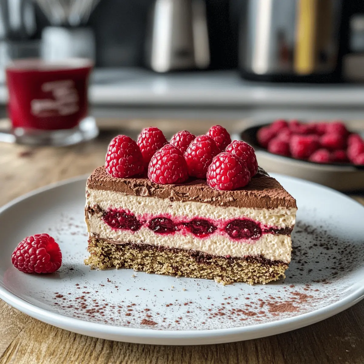 Die Kaffeemousse-Torte mit Himbeeren bietet eine himmlische Kombination aus intensivem Kaffeegeschmack und frischen Himbeeren.