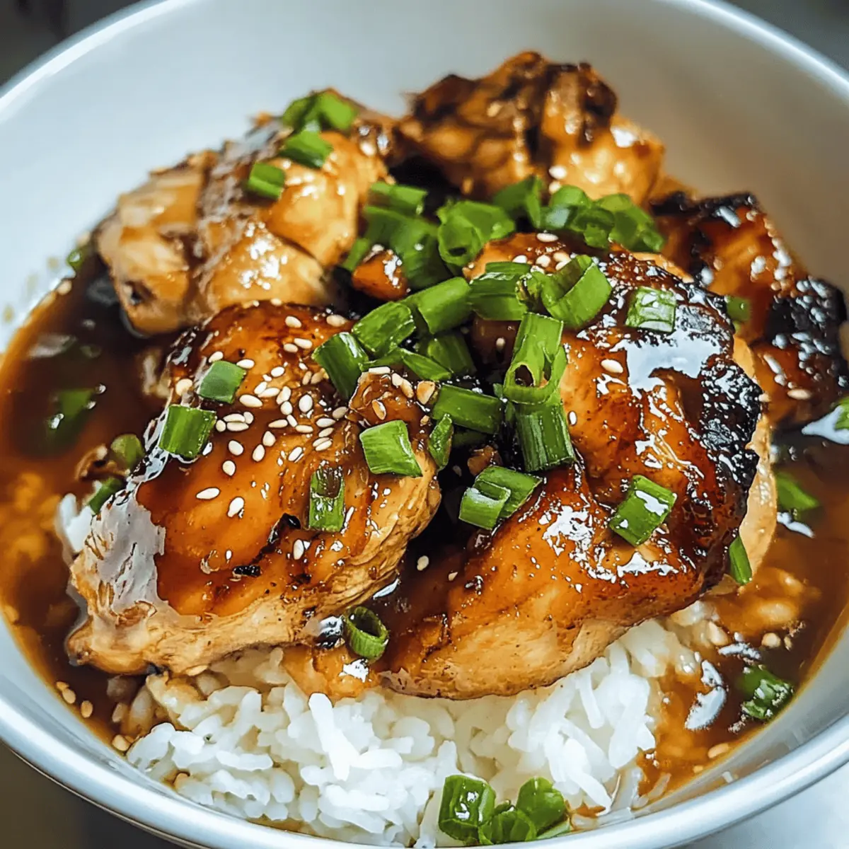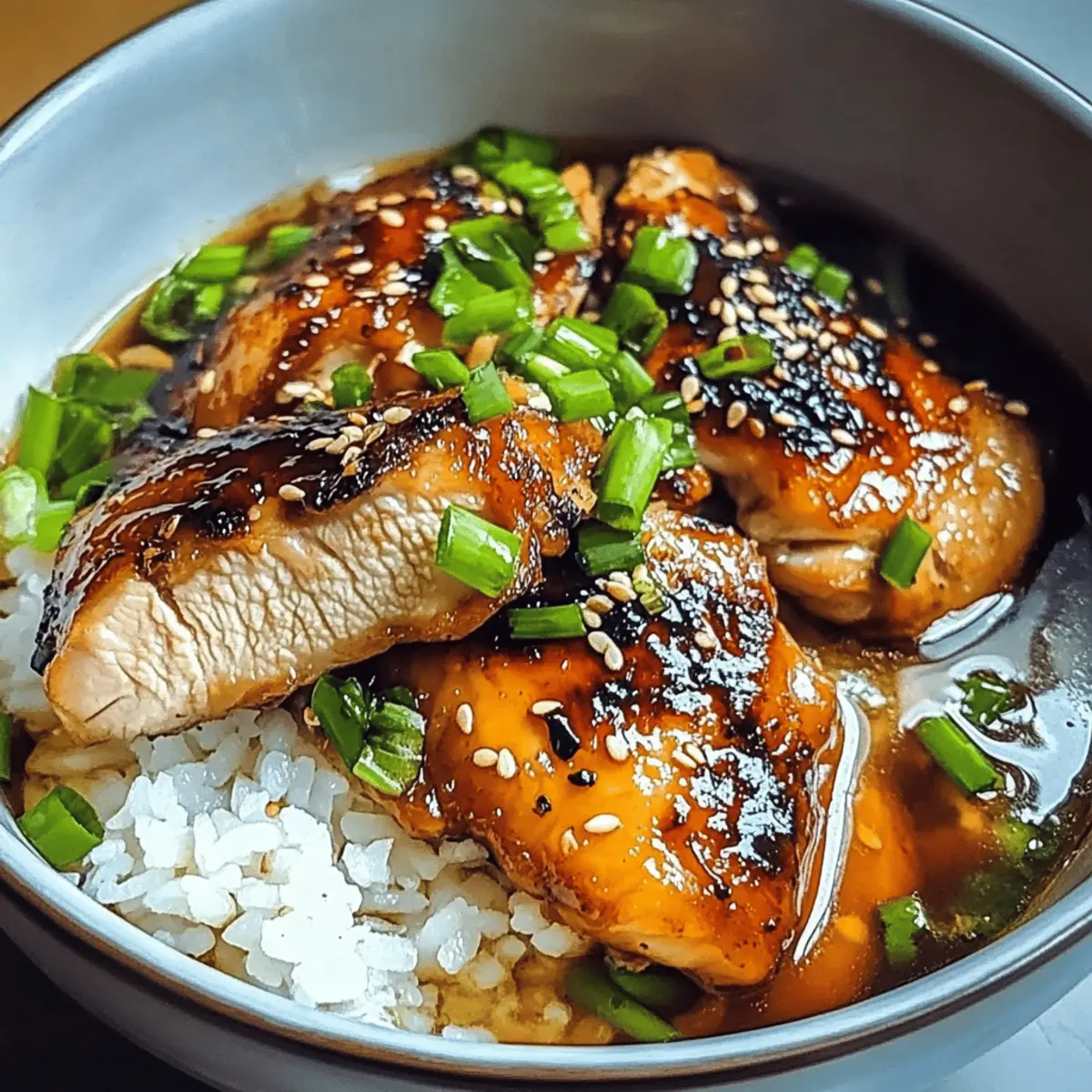 Der köstliche Duft von bratenem Hähnchen in einer herzhaften Brühe aus Knoblauch und Ingwer zieht mich in die Küche, wo ich mit Vorfreude die Zubereitung des Karamellisierten Sojasauce-Hähnchens in Knoblauch-Ingwer-Brühe mit Reis beginne. Dieses Rezept bietet nicht nur eine zarte und saftige Mahlzeit, sondern verführt auch mit einem wunderbaren Zusammenspiel von süßen und herzhaften Aromen. Perfekt für eine gemütliche Abendmahlzeit oder gesellige Zusammenkünfte, ist es die Art von Gericht, die nicht nur den Gaumen, sondern auch die Seele nährt. Und das Beste daran? Es gibt auch köstliche vegetarische Varianten, die jedem Geschmack gerecht werden. Bist du bereit, die Magie dieser asiatisch inspirierten Speise zu entdecken? Warum wirst du dieses Rezept lieben? Einfachheit: Die Zubereitung ist kinderleicht und erfordert keine komplizierten Kochkünste. Vielfalt: Dieses Rezept bietet auch eine köstliche vegetarische Variante mit Tofu oder saisonalem Gemüse. Aromatische Zutaten: Die Kombination aus Knoblauch und Ingwer verleiht dem Gericht eine unverwechselbare, einladende Note. Schnell und lecker: Perfekt für geschäftige Abende, sodass du in kürzester Zeit eine herzhafte Mahlzeit auf den Tisch zaubern kannst. Gemütliche Atmosphäre: Die harmonischen Aromen bringen ein Stück asiatischer Gastfreundschaft auf deinen Tisch. Probiere es aus und genieße es! Wenn du zusätzlich etwas Leckeres zur Seite servieren möchtest, wie unser Knoblauchbrot mit Käse, wird das Meal noch vielseitiger. Zutaten für Karamellisiertes Sojasauce-Hähnchen Für die Marinade • Boneless Chicken Thighs – sorgt für eine saftige und zarte Textur; wähle Hähnchenschenkel mit etwas Fett für noch mehr Geschmack. • Soy Sauce – die wichtigste Quelle für umami; verwende natriumarme Varianten für eine gesündere Option. • Dark Soy Sauce – fügt Tiefe und Reichtum hinzu. • Brown Sugar – bringt Süße ins Spiel und balanciert die herzhaften Aromen; mit Ahornsirup kann man es ersetzen. • Honey – liefert Komplexität in der Süße. • Rice Vinegar – harmonisiert die Aromen mit einer angenehmen Säure. Für die Brühe • Garlic (minced) – unerlässlich für den robusten Geschmack der Brühe. • Fresh Ginger (grated) – verleiht wärmenden Gewürzgeschmack und bereichert die Komplexität des Gerichts. • Chicken Broth – die Grundlage für die Brühe; qualitativ hochwertige Brühe hebt den Geschmack; Gemüsebrühe kann für vegetarische Optionen verwendet werden. • Vegetable Oil – ideal zum Anbraten; kann durch Oliven- oder Sesamöl ersetzt werden. • Sesame Oil – fügt ein nussiges Aroma hinzu, das die Brühe abrundet. Für das Gericht • Cooked White Rice – dient als wohltuende Basis; kann auch durch Naturreis oder Quinoa ersetzt werden. • Chopped Green Onions (for garnish) – sorgt für Frische und Farbe. • Sesame Seeds (for garnish) – gibt einen zusätzlichen Crunch und visuelle Attraktivität. Diese köstlichen Zutaten machen das Karamellisierte Sojasauce-Hähnchen in Knoblauch-Ingwer-Brühe mit Reis zu einer wahren Geschmacksexplosion. Bereite dich auf ein unvergessliches Erlebnis vor, das du unbedingt ausprobieren musst! Schritt-für-Schritt-Anleitungen für karamellisiertes Sojasoße-Hähnchen in Knoblauch-Ingwer-Brühe mit Reis Schritt 1: Marinade vorbereiten In einer großen Schüssel die Sojasauce, die dunkle Sojasauce, den braunen Zucker, den Honig und den Reisessig gut miteinander vermengen, bis der Zucker vollständig aufgelöst ist. Diese aromatische Marinade verleiht dem Hähnchen eine herrliche Süße und Tiefe. Schritt 2: Hähnchen marinieren Die Hähnchenschenkel in die Marinade geben und darauf achten, dass sie gleichmäßig bedeckt sind. Die Schüssel mit Frischhaltefolie abdecken und das Hähnchen mindestens 20 Minuten lang marinieren lassen, idealerweise jedoch ein paar Stunden im Kühlschrank ruhen lassen, damit die Aromen besser einziehen. Schritt 3: Hähnchen searien Eine große Pfanne bei mittlerer Hitze erhitzen und das Pflanzenöl hinzufügen. Das marinierte Hähnchen in die Pfanne geben und es etwa 5-7 Minuten pro Seite braten, bis es goldbraun und karamellisiert ist. Das Hähnchen sollte durchgegart sein und eine knusprige Oberfläche haben. Danach aus der Pfanne nehmen und beiseite stellen. Schritt 4: Aromaten anbraten In derselben Pfanne geriebenen Knoblauch und frischen Ingwer hinzufügen. Bei mittlerer Hitze 1-2 Minuten lang anbraten, bis sie duften. Achte darauf, die Aromaten nicht anbrennen zu lassen, da dies Bitterkeit erzeugen könnte. Schritt 5: Brühe zubereiten Nun die Hühnerbrühe und das Sesamöl in die Pfanne gießen. Alles zum Kochen bringen und dann die Hitze reduzieren, um die Brühe leicht köcheln zu lassen. Nach etwa 5 Minuten sollte die Brühe etwas eingedickt und aromatisch sein. Schritt 6: Kombinieren und servieren Das vorher gebratene Hähnchen in die Brühe zurücklegen und in Scheiben schneiden. Umrühren, damit das Hähnchen die Aromen der Brühe aufnehmen kann. Das karamellisierte Sojasoße-Hähnchen in Knoblauch-Ingwer-Brühe auf einer Schüssel mit gekochtem weißen Reis servieren und nach Belieben mit frischen, gehackten Frühlingszwiebeln und Sesamkörnern garnieren. Was passt gut zu karamellisierten Sojasoße-Hähnchen in Knoblauch-Ingwer-Brühe mit Reis? Ein perfektes Abendessen erfordert eine harmonische Komposition von Aromen und Texturen, die dein Geschmackserlebnis vervollständigen. Cremiger Kartoffelpüree: Die weiche Textur des Pürees sorgt für einen kontrastierenden Genuss zu den zarten Hähnchenteilen und der Brühe. Gedämpfter Brokkoli: Frisches Gemüse bringt eine knackige Frische ins Spiel und ergänzt die herzhaften Noten des Hähnchens. Es ist nicht nur gesund, sondern auch optisch ansprechend. Crispy Frühlingsrollen: Diese knusprigen Leckerbissen sind ideal, um eine zusätzliche Textur und Geschmackstiefe zu bieten. Perfekt für eine asiatische Fusion! Schüssel mit Quinoa: Die