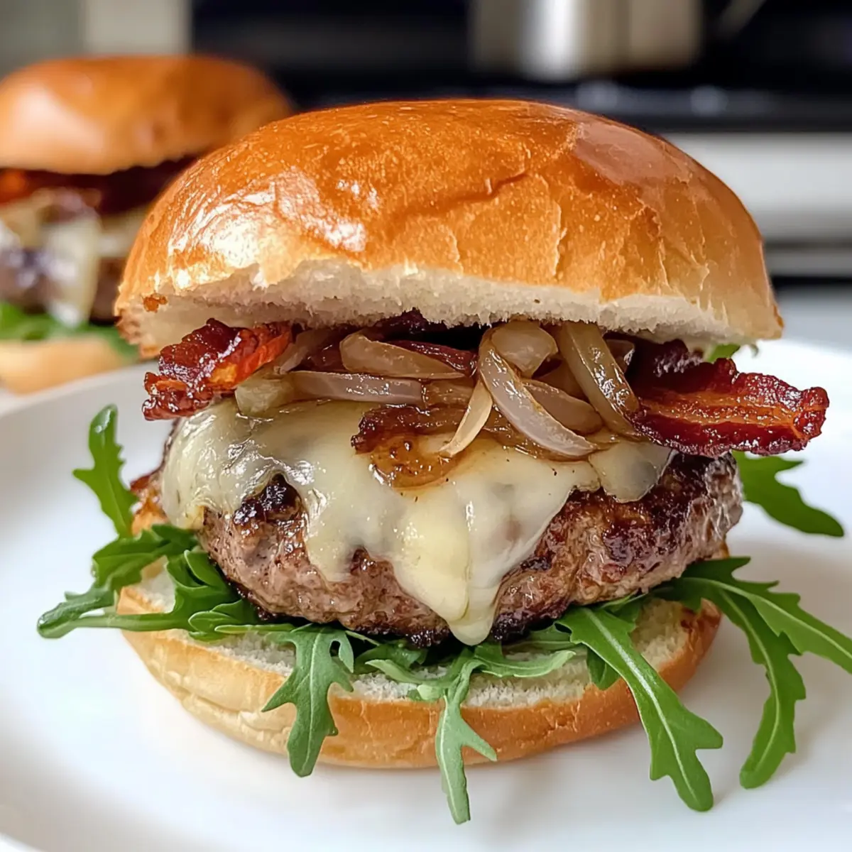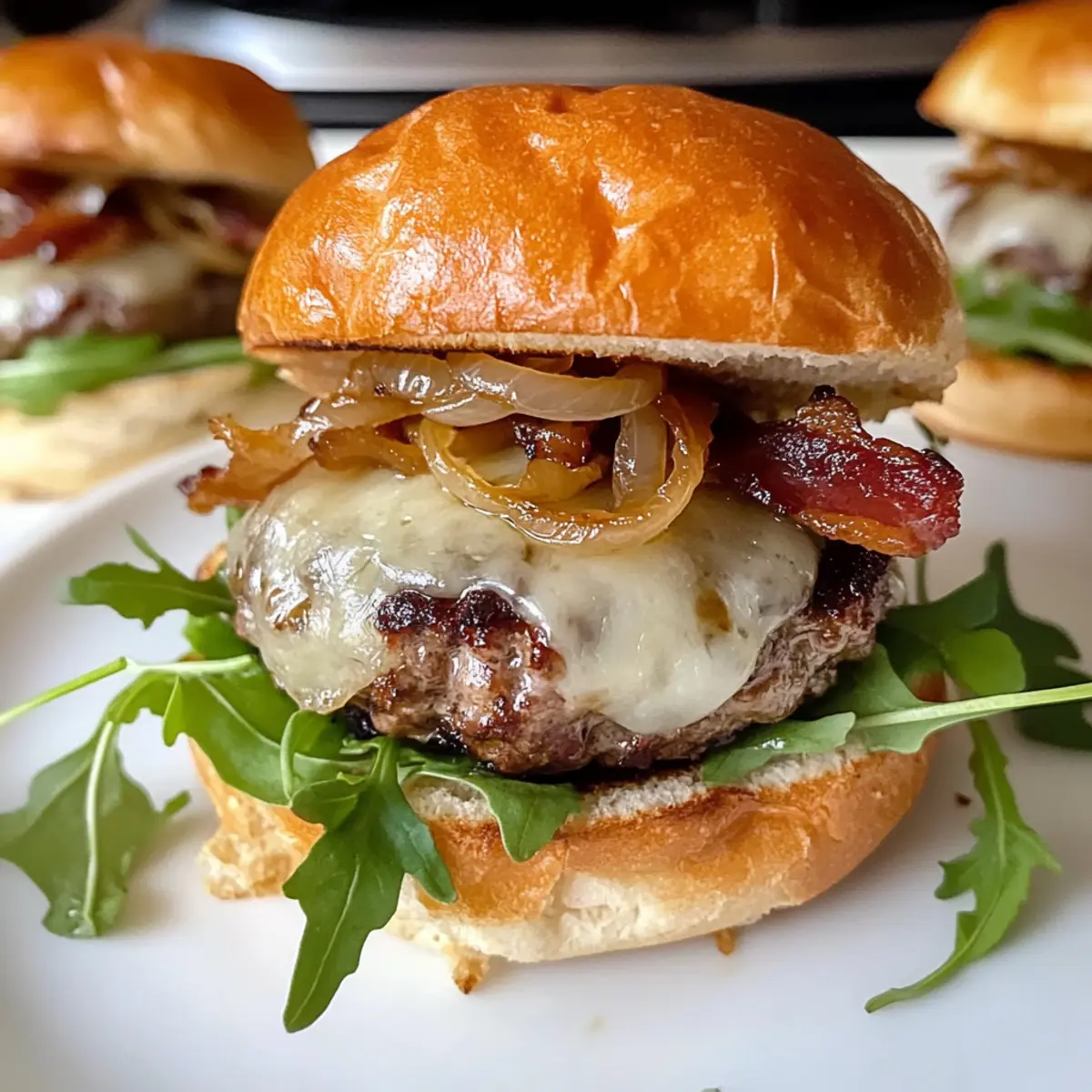 Als ich neulich beim Kochen die Zwiebeln anbraten wollte, durchströmte der süße Duft von karamellisierten Zwiebeln meine Küche und ließ mir das Wasser im Mund zusammenlaufen. Diese Karamellisierten Zwiebel Sliders sind nicht nur ein Fest für die Sinne, sondern auch eine praktische Lösung für alle, die sich nach herzhaftem Komfortessen sehnen. Mit geschmolzenem Gruyere-Käse und knusprigem Bacon bieten diese kleinen Leckerbissen eine perfekte Mischung aus Geschmack und Textur. Sie sind ganz einfach zuzubereiten und eignen sich hervorragend für gesellige Abende oder als köstliche Mahlzeit für die Familie. Wer könnte schon dem Reiz widerstehen, die Gäste mit solch klitzekleinen, aber oho! Sliders zu verwöhnen? Neugierig, wie ihr die perfekte Portion Freude auf den Teller zaubern könnt? Warum werden Sie diese Sliders lieben? Einfachheit: Diese Karamellisierten Zwiebel Sliders sind so unkompliziert in der Zubereitung, dass selbst Kochanfänger sie meistern können. Reicher Geschmack: Die süßen, karamellisierten Zwiebeln in Kombination mit köstlichem Gruyere-Käse sorgen für ein Geschmackserlebnis, das Ihre Gäste begeistern wird. Vielseitigkeit: Ob für Partys oder als Lieblingsessen für die Familie, diese Sliders passen zu jeder Gelegenheit und lassen sich leicht anpassen – probieren Sie verschiedene Käsesorten oder würzen Sie sie nach Ihrem Geschmack. Vorbereitungsfreundlich: Sie können die Zwiebeln und die Sauce im Voraus zubereiten, was Ihnen Zeit spart und den Stress am Abend der Veranstaltung reduziert. Crowd-Pleaser: Diese kleinen Leckerbissen sind perfekt zum Teilen und sorgen für Gesprächsstoff bei Ihren Gästen. Servieren Sie sie mit knusprigen Karamellisierten Soja Hähnchen oder einem Rinderbraten mit Zwiebelsoße für ein vollständiges Festmahl! Karamellisierte Zwiebel Sliders Zutaten • Hinweis: Hier sind die köstlichen Zutaten, die Sie für Ihre Karamellisierten Zwiebel Sliders benötigen. Für die Zwiebelmischung Gelbe Zwiebeln – die Basis für Süße und Reichhaltigkeit; substituieren Sie mit Vidalia für einen milderen Geschmack. Frischer Thymian – verleiht ein aromatisches Kräuteraroma; verwenden Sie getrockneten Thymian, wenn frisch nicht verfügbar. Butter – sorgt für Feuchtigkeit und Reichtum beim Karamellisieren; Sie können auch Olivenöl verwenden. Für die Patties Rinderhackfleisch oder Brisket – sorgt für saftige Patties; für eine leichtere Option verwenden Sie mageres Putenhack. Rinderbrühewürfel – fügt Tiefe dem Fleisch hinzu; verwenden Sie Rinderbrühe als Alternative. Getrocknete Zwiebelstücke – verstärken das herzhafte Aroma des Fleisches; frische Zwiebeln können ebenfalls verwendet werden, aber in anderen Mengen. Selleriesamen – sorgt für einen erdigen Crunch; weglassen, wenn nicht verfügbar. Getrocknete Petersilie und Thymian – fügen Kräuternoten hinzu; frische Kräuter können für mehr Geschmack ersetzt werden. Schwarzer Pfeffer – bringt Würze und balanciert die Süße; verwenden Sie frisch gemahlenen Pfeffer für intensiveren Geschmack. Für den Belag Gruyere-Käse – schmilzt schön und bietet einen nussigen Geschmack; ersetzen Sie ihn durch Schweizer Käse für einen ähnlichen Schmelz. Bacon – fügt Crunch und herzhaften Tiefgang hinzu; verwenden Sie Truthahn-Bacon für eine gesündere Variante. Mayonnaise – dient als cremige Basis für die Sauce; griechischer Joghurt kann eine leichtere Alternative sein. A1 Steak Sauce – bringt eine würzige, umami Note in die Mayonnaise; verwenden Sie Worcestershire-Sauce für ein anderes Aroma. Slider-Brötchen – halten alle Zutaten zusammen; achten Sie darauf, sie zu toasten für die beste Textur. Glutenfreie Brötchen sind ebenfalls geeignet. Rucola – sorgt für eine frische, pfeffrige Note; Spinat oder gemischte Blattsalate können ähnliche Frische bieten. Schritt-für-Schritt-Anleitung für Karamellisierte Zwiebel Sliders Step 1: Zwiebeln karamellisieren Erhitzen Sie eine große Pfanne auf mittlerer bis niedriger Hitze und fügen Sie 3 Esslöffel Butter hinzu. Geben Sie die in dünne Scheiben geschnittenen gelben Zwiebeln und frischen Thymian hinein. Braten Sie die Zwiebeln 40 Minuten lang langsam, bis sie tiefbraun und vollständig karamellisiert sind. Rühren Sie gelegentlich um, um sicherzustellen, dass sie gleichmäßig bräunen und nicht anbrennen. Step 2: Bacon backen Heizen Sie Ihren Ofen auf 200 °C vor. Legen Sie die Speckscheiben auf ein mit Backpapier ausgelegtes Blech und backen Sie sie etwa 15-20 Minuten lang, bis sie knusprig sind. Überprüfen Sie während des Backens regelmäßig den Gargrad, um sicherzustellen, dass der Bacon nicht verbrennt. Lassen Sie den gebratenen Speck danach auf Küchenpapier abtropfen, um überschüssiges Fett zu entfernen. Step 3: Sauce zubereiten In einer kleinen Schüssel kombinieren Sie ½ Tasse Mayonnaise mit 2 Esslöffeln A1 Steak Sauce und einer Prise frisch gemahlenem schwarzen Pfeffer. Rühren Sie alles gut um, bis die Mischung homogen ist. Stellen Sie die Sauce für mindestens 10 Minuten in den Kühlschrank, damit sich die Aromen entfalten können. Step 4: Patties formen In einer großen Schüssel kombinieren Sie 500 g Rinderhackfleisch, 1 Rinderbrühewürfel und die getrockneten Zwiebelstücke, Selleriesamen, Petersilie sowie Thymian. Mischen Sie alles gut durch und formen Sie daraus gleich große Patties. Sie sollten etwa 12 Patties erhalten, die gleichmäßig geformt und gewürzt sind. Step 5: Patties braten Erhitzen Sie eine Pfanne über mittlerer Hitze und legen Sie die Patties für 2 Minuten ohne Umrühren hinein. Drücken Sie dann jede Patty leicht mit einem Spatel nieder und braten Sie sie weitere 2 Minuten, bis sie eine schöne Kruste entwickelt haben. Legen Sie einige Scheiben Gruyere-Käse auf die Patties, damit sie in den letzten letzten Minuten schmelzen können. Step 6: Sliders zusammensetzen Nehmen Sie die gerösteten Slider-Brötchen und legen Sie auf jedes Brötchen einen 