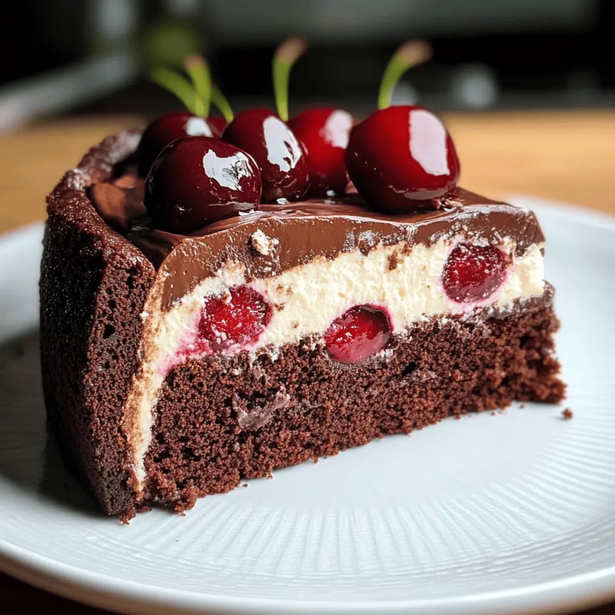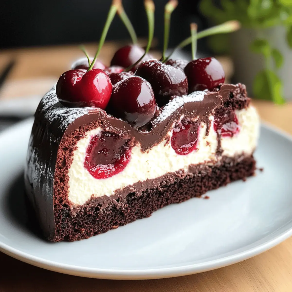 Einzigartige Kombination: Dieser Käsekuchen-Schokoladenkuchen mit Kirschen bietet eine köstliche Fusion aus leckerem Käsekuchen und schokoladiger Süße – ein wahrer Genuss für alle Schokoladenliebhaber.