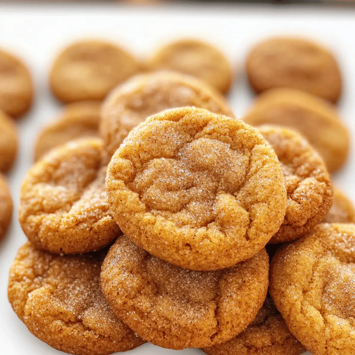 „Kürbisse sind nicht nur für die Halloween-Deko da!“ dachte ich mir, als ich die frische Herbstluft einatmete. Der Duft von gebackenem Kürbis und Zimt erweckte Erinnerungen an gemütliche Nachmittage in der Küche. Heute teile ich mit euch mein Rezept für diese unwiderstehlich weichen und zähen Kürbis Snickerdoodle Kekse. Sie sind nicht nur perfekt für eure Herbstfeiern, sondern auch kinderleicht zuzubereiten – ein Genuss für die ganze Familie! Mit einer himmlischen Mischung aus echtem Kürbis und süßem Zimt-Zucker belagert, werden diese Kekse schnell zum Star jeder Kaffeepause. Seid ihr bereit, euren Backofen aufzuheizen und euch dem verführerischen Aroma hinzugeben? Warum sind Kürbis Snickerdoodles so beliebt? Einzigartiger Geschmack: Diese Kekse kombinieren den klassischen Snickerdoodle-Geschmack mit der wärmenden Note von Kürbis. Perfekt für die Herbstsaison! Einfache Zubereitung: Schwingt mit mir den Kochlöffel! Mit nur wenigen Zutaten sind sie schnell gemacht und erfordern keine komplizierten Techniken. Wunderbar weich: Dank der speziellen Zubereitungsweise bleiben diese Kekse außen knusprig und innen zart und chewy – ein wahrer Genuss! Familienfreundlich: Ideal für Kinder und Erwachsene, perfekt für jede Kaffeepause oder als Snack nach dem Abendessen. Und falls ihr mehr Inspiration sucht, könnt ihr auch unsere Schokoladenstückchen Variante ausprobieren! Herbstlicher Duft: Euer Zuhause wird vom verführerischen Aroma der frisch gebackenen Kürbis Snickerdoodles erfüllt sein – eine wahre Gaumenfreude. Genießt die Zeit in der Küche und lasst euch von den positiven Rückmeldungen eurer Familie überraschen! Kauige Kürbis Snickerdoodle Kekse Zutaten • Die perfekten Zutaten für herbstliche Leckereien! Für den Teig Weißmehl – sorgt für die Struktur der Kekse; darauf achten, es mit einem Löffel zu messen, um Übermenge zu vermeiden. Kürbiskuchengewürz – verleiht den Keksen ihren charakteristischen Herbstgeschmack; kann durch eine Mischung aus Zimt, Muskatnuss und Ingwer ersetzt werden. Gemahlener Zimt – fügt eine süße, warme Note hinzu, die perfekt zur Kürbisse passt. Backsoda – hilft beim Aufgehen der Kekse; sorgt für die fluffige Konsistenz. Weinsteinpulver – stabilisiert die Teigstruktur und fügt einen leicht säuerlichen Geschmack hinzu; kann durch Backpulver ersetzt werden. Salz – balanciert die Süße und verstärkt den Geschmack; ein Muss in jedem Gebäck. Ungesalzene Butter (weich) – sorgt für Reichtum und Feuchtigkeit; sicherstellen, dass sie Zimmertemperatur hat für einfaches Arbeiten. Zucker – sorgt für Süße und hilft beim Ausbreiten der Kekse während des Backens. Brauner Zucker – verleiht Feuchtigkeit und einen karamellartigen Geschmack. Eidotter – bindet die Zutaten und trägt zu einem reichen Geschmack bei. Vanilleextrakt – bietet eine tiefe Geschmacksnote; ein unverzichtbarer Bestandteil. Kürbispüree – ist unerlässlich für den Kürbissaatgeschmack und die Feuchtigkeit; darauf achten, dass es nicht zu wässrig ist. Für die Beschichtung Zucker (zum Wälzen) – sorgt für die süße Kruste der Kekse. Gemahlener Zimt (zum Wälzen) – intensiviert den Geschmack in der Zuckermischung und macht die Kekse unwiderstehlich. Eure Kauige Kürbis Snickerdoodle Kekse sind nur wenige Schritte entfernt! Step-by-Step Instructions for Kauige Kürbis Snickerdoodle Kekse Step 1: Trockene Zutaten vermengen Vermischt in einer mittelgroßen Schüssel das Weißmehl, Kürbiskuchengewürz, gemahlenen Zimt, Backsoda, Weinsteinpulver und Salz. Nutzt einen Schneebesen, um die Zutaten gut zu vermengen und eventuell Klumpen zu lösen. Dies sorgt für eine gleichmäßige Verteilung der Aromen in euren Kauigen Kürbis Snickerdoodle Keksen. Step 2: Butter und Zucker cremig schlagen In einer separaten, großen Schüssel die weiche, ungesalzene Butter mit dem Granulat- und braunen Zucker birn Bäcker bis die Mischung leicht und fluffig ist – etwa 3-4 Minuten. Fügt das Eidotter, den Vanilleextrakt und das Kürbispüree hinzu und mixt weiter, bis alles gut kombiniert ist. Dies bildet die Grundlage für die köstlichen Kauigen Kürbis Snickerdoodle Kekse. Step 3: Trockene Zutaten hinzufügen Langsam fügt die trockenen Zutatenmischung zur feuchten Mischung hinzu, während ihr mit einem Spatel vorsichtig unterhebt. Es ist wichtig, dass ihr nicht zu lange rührt, um eine zähe Textur zu vermeiden. Wenn alles gut vermischt ist, sollte der Teig dick und leicht klebrig sein – perfekt für eure Kauigen Kürbis Snickerdoodle Kekse. Step 4: Teig kühlen Deckt die Schüssel mit Frischhaltefolie ab und stellt den Teig für mindestens 30 Minuten in den Kühlschrank. Dies hilft dabei, das Austreten des Teigs beim Backen zu verhindern und sorgt für eine bessere Textur. In der Zwischenzeit könnt ihr euren Ofen vorheizen und die Backbleche vorbereiten. Step 5: Ofen vorheizen und Blech vorbereiten Heizt euren Ofen auf 180 °C (350 °F) vor. Während der Ofen aufheizt, belegt zwei Backbleche mit Backpapier, um ein Ankleben der Kauigen Kürbis Snickerdoodle Kekse zu verhindern. Bereitet alles vor, damit ihr die Kekse gleich backen könnt, wenn der Teig bereit ist. Step 6: Kekse formen Nehmt den gekühlten Teig aus dem Kühlschrank und formt mit einem Esslöffel gleichmäßige Teigportionen auf die vorbereiteten Backbleche. Achtet darauf, genügend Platz zwischen den Teigkugeln zu lassen, da sie beim Backen auseinanderlaufen werden. So erhalten eure Kauigen Kürbis Snickerdoodle Kekse die perfekte Form. Step 7: In Zucker-Zimt-Mischung wälzen In einer kleinen Schüssel vermischt ihr den Zucker mit dem gemahlenen Zimt für die äußere Beschichtung. Rollt jede Teigkugel in dieser Mischung, bis sie gut bedeckt ist, und platziert sie dann gleichmäßig auf den Backblechen. Dies verleiht den Keksen die charakteristische süße Kruste, die perfekt zu eurem Herbstgeschmack passt. Step 8: Backen Backt die Kauigen Kürbis Snickerdoodle Kekse im v
