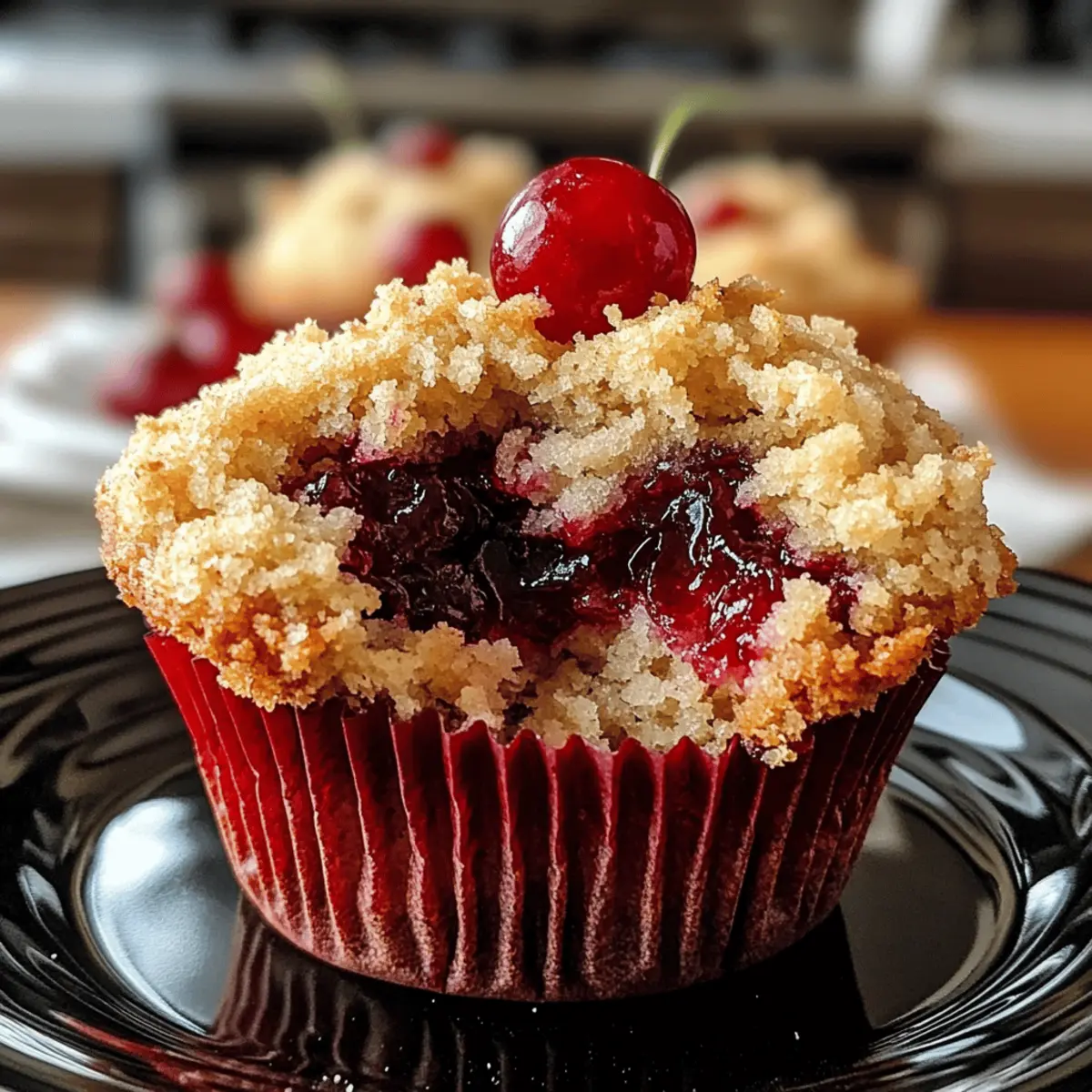 Für beste Ergebnisse, verwende kalte Butter und vermische den Teig nicht zu lange. Die Kirschfüllung sollte abgekühlt sein, bevor sie in die Muffins kommt.