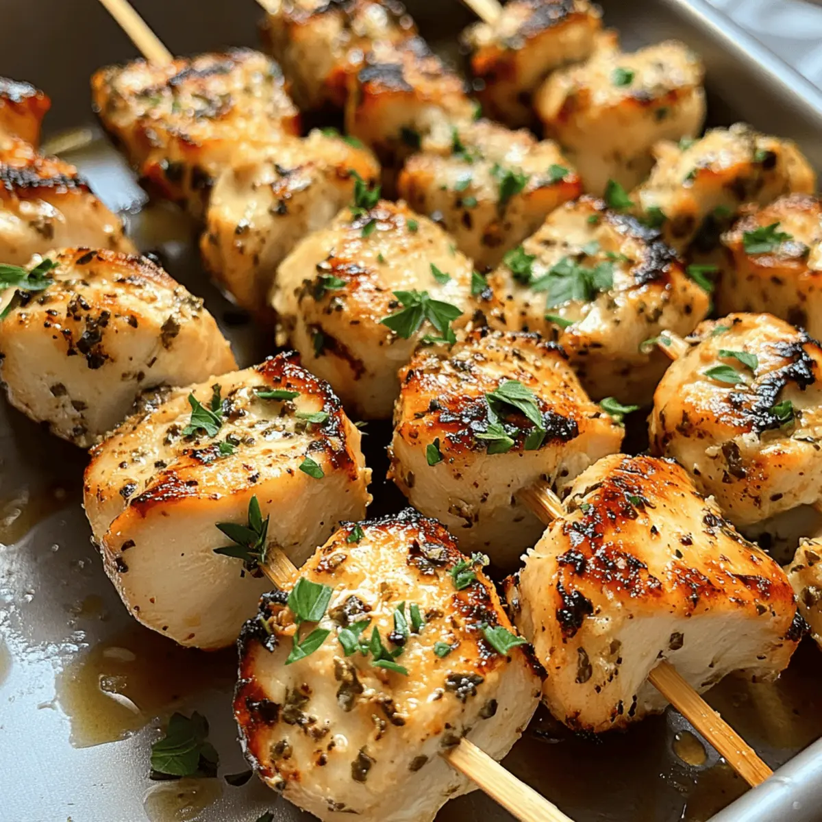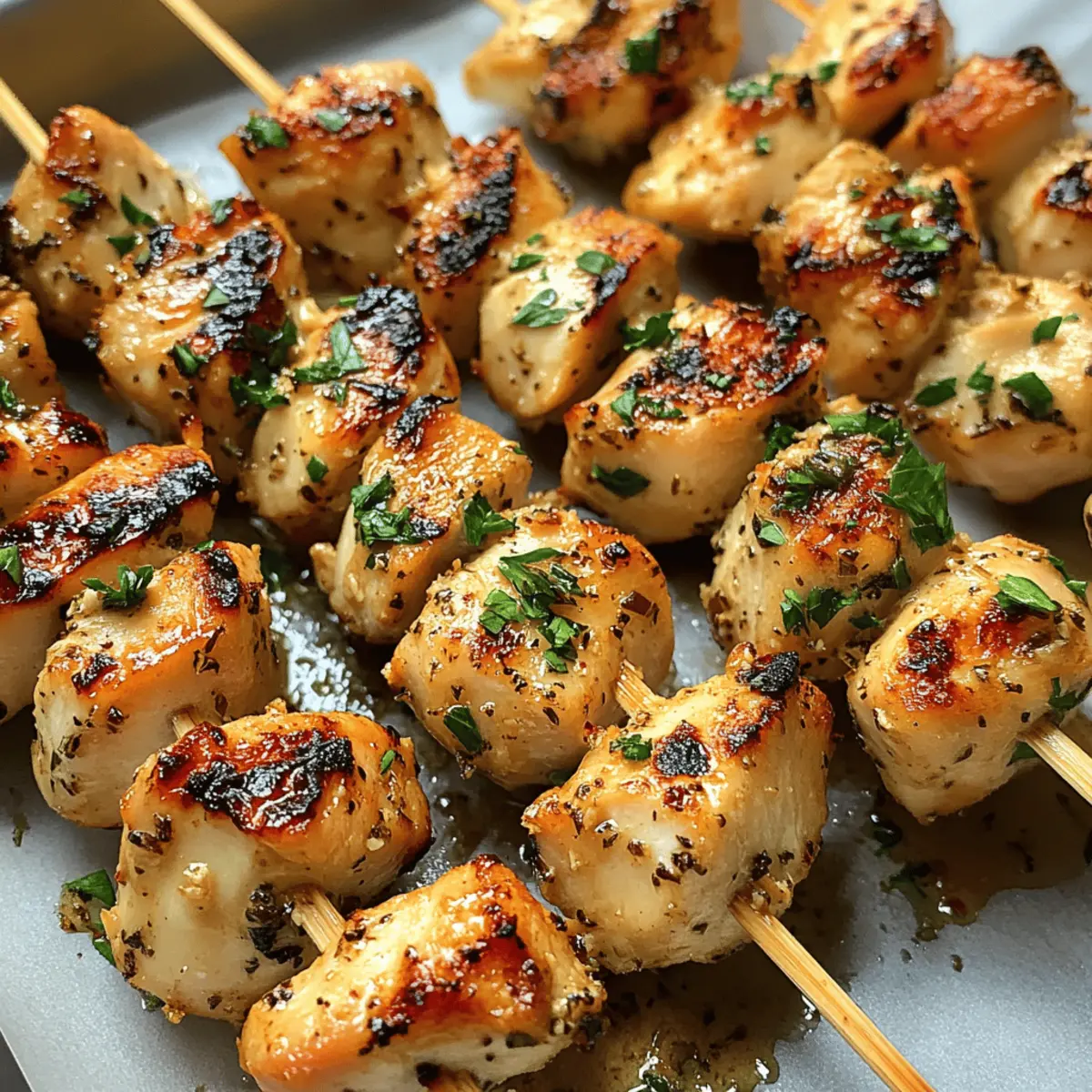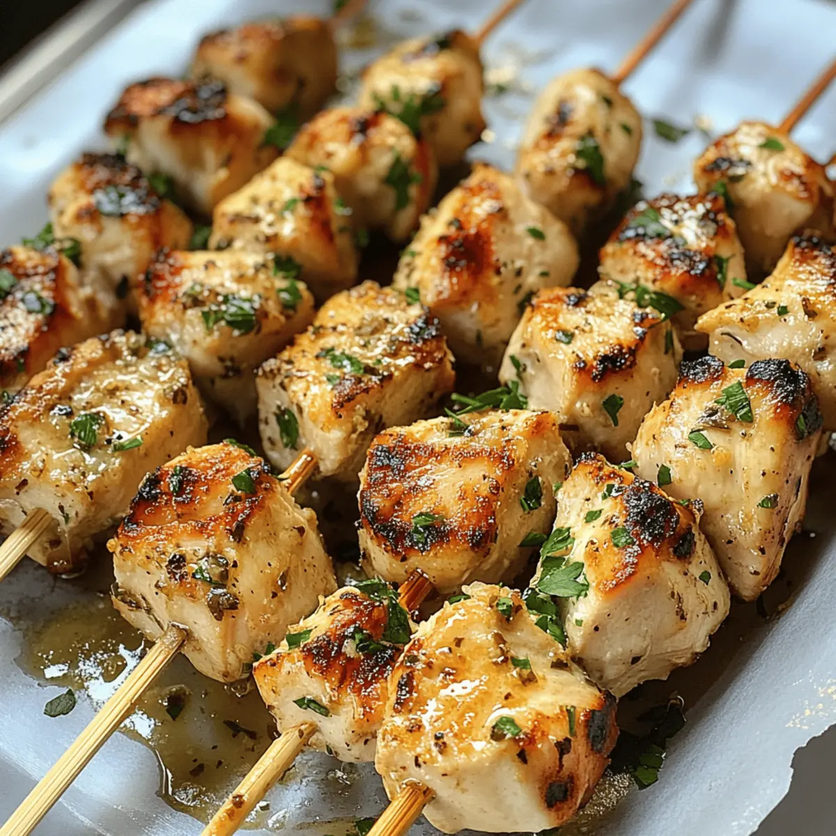 Es gibt Tage, an denen die Vorstellung von auf dem Grill brutzelndem Fleisch mein Herz höher schlagen lässt. Wenn die Sonne scheint und der Duft von frisch gegrilltem Essen in der Luft hängt, gibt es nichts Besseres, als meine Knoblauch Parmesan Hähnchen Spieße zuzubereiten. Diese köstlichen Spieße sind nicht nur blitzschnell zubereitet, sondern zudem auch ein perfekter Genuss für Grillabende oder ein einfaches Familienessen. Das zarte Hähnchen, mariniert in einer aromatischen Mischung aus Knoblauch und italienischen Kräutern, wird aufgereiht und erhält beim Grillen eine unwiderstehliche goldbraune Kruste mit einem verführerischen Geschmack. Bereit, die Geschmacksnerven deiner Liebsten zu verwöhnen? Lass uns gemeinsam in diese Rezeptwelt eintauchen! Warum werden Sie diese Spieße lieben? Einfachheit, die begeistert: Die Zubereitung dieser Knoblauch Parmesan Hähnchen Spieße ist kinderleicht und erfordert nur grundlegende Kochkenntnisse. Intensiver Geschmack: Die Kombination aus aromatischem Knoblauch und würzigem Parmesan sorgt für eine Geschmacksexplosion, die Ihre Gäste begeistern wird. Vielfältige Variationen: Experimentieren Sie mit Gemüse oder verwenden Sie statt Hähnchen Garnelen für einen anderen Genuss – die Möglichkeiten sind vielfältig! Perfekte Textur: Außen knusprig und innen zart – jede Biss ist ein Genuss, der an das unvergessliche Grillvergnügen erinnert. Zeitsparend: Diese Spieße sind schnell mariniert und in kurzer Zeit auf dem Grill. Ideal für einen stressfreien Grillabend. Familienfreundlich: Ob für ein großes Barbecue oder ein einfaches Familienessen, diese Spieße sind der Hit auf jedem Tisch. Probieren Sie auch unsere anderen köstlichen Rezepte wie Zartschmelzender Knoblauch Parmesan oder die Knoblauch Parmesan Cheeseburger Bomben aus! Knoblauch Parmesan Hähnchen Spieße Zutaten • Diese köstlichen Spieße sind ein Genuss für jeden Grillabend! Für die Marinade Hähnchenbrust – Hauptquelle des Proteins; kann auch durch Putenfleisch oder festen Tofu ersetzt werden. Olivenöl – Sorgt für Feuchtigkeit und verhindert das Ankleben; avocadoöl kann für einen höheren Rauchpunkt verwendet werden. Knoblauch – Verleiht ein intensives Aroma; verwende gerösteten Knoblauch für einen süßeren Geschmack. Parmesankäse – Fügt salzige, nussige Noten hinzu, die das Hähnchen ergänzen; für eine vegane Variante kann Nährhefe verwendet werden. Getrocknete italienische Gewürzmischung – Infundiert einen aromatischen Kräutergeschmack; frische Kräuter sorgen für ein lebendigeres Aroma. Salz – Gut zur Abstimmung der Aromen; nach Geschmack anpassen. Schwarzer Pfeffer – Liefert eine milden Schärfe; kann für ein milderes Gericht weggelassen werden. Frische Petersilie – Fügt Farbe und frischen Geschmack hinzu; andere frische Kräuter wie Basilikum sind ebenfalls möglich. Für die Spieße Holzspieße – Essentiell für die Zubereitung; vor dem Grillen 30 Minuten in Wasser einweichen, um das Verbrennen zu verhindern. Schritt-für-Schritt-Anleitung für Knoblauch Parmesan Hähnchen Spieße Step 1: Hähnchen vorbereiten Beginnen Sie, indem Sie die Hähnchenbrust in gleichmäßige 2,5 cm große Würfel schneiden. Achten Sie darauf, dass die Stücke gleichmäßig sind, damit sie gleichmäßig garen. Legen Sie die Würfel in eine große Schüssel, die genügend Platz bietet, um sie gut mit der Marinade zu vermengen. Step 2: Marinade zubereiten In einer separaten Schüssel kombinieren Sie das Olivenöl, den gehackten Knoblauch, den geriebenen Parmesan, die getrocknete italienische Gewürzmischung, das Salz und den schwarzen Pfeffer. Rühren Sie alles gut um, bis eine homogene Mischung entsteht. Diese aromatische Marinade wird die Grundlage für die saftigen Knoblauch Parmesan Hähnchen Spieße sein. Step 3: Hähnchen marinieren Fügen Sie die Hähnchenwürfel in die Marinade bowl und werfen Sie alles sorgfältig um, sodass die Hähnchenstücke gut mit der Marinade bedeckt sind. Decken Sie die Schüssel mit Frischhaltefolie ab und lassen Sie das Hähnchen mindestens 30 Minuten im Kühlschrank marinieren. Dies sorgt dafür, dass die Aromen tief in das Hähnchen eindringen. Step 4: Spieße vorbereiten Während das Hähnchen mariniert, können Sie die Holzspieße vorbereiten. Weichen Sie die Holzspieße für mindestens 30 Minuten in Wasser ein, damit sie beim Grillen nicht verbrennen. Dieser Schritt ist entscheidend für die Zubereitung der Knoblauch Parmesan Hähnchen Spieße, da er ihnen die nötige Stabilität verleiht. Step 5: Hähnchen aufspießen Nachdem das Hähnchen gut mariniert ist, nehmen Sie die Spieße und fädeln Sie die Hähnchenwürfel darauf. Lassen Sie zwischen den Stückchen etwas Platz für eine gleichmäßige Garung und um eine schöne Grillmarkierung zu erhalten. Diese Vorbereitung machen die Knoblauch Parmesan Hähnchen Spieße einfach umwerfend beim Grillen. Step 6: Grill vorheizen Heizen Sie den Grill auf eine mittelhohe Temperatur vor (ca. 200 °C). Warten Sie, bis er gleichmäßig heiß ist, um ein perfektes Grillbild und ein gleichmäßiges Garen der Spieße zu gewährleisten. Ein gut vorgeheizter Grill gibt den Hähnchenstücken eine schöne Kruste und verhindert, dass sie am Grill haften bleiben. Step 7: Spieße grillen Legen Sie die Hähnchen Spieße auf den Grill und grillen Sie sie für etwa 12 Minuten. Wenden Sie die Spieße alle paar Minuten, um eine gleichmäßige Bräunung zu gewährleisten. Die Hähnchen sind fertig, wenn sie durchgegart sind und eine goldbraune Farbe sowie Grillstreifen aufweisen. Step 8: Servieren Nehmen Sie die Knoblauch Parmesan Hähnchen Spieße vom Grill und lassen Sie sie einen Moment ruhen. Vor dem Servieren können Sie die Spieße mit frisch gehackter Petersilie bestreuen. Diese frische Note bietet einen farbenfrohen Akzent und bringt noch mehr Geschmack, während Sie diese himmlischen Spieße genießen! Lagerungstipps für Knoblauch Parmesan Hähnchen Spieße Zimmertemper