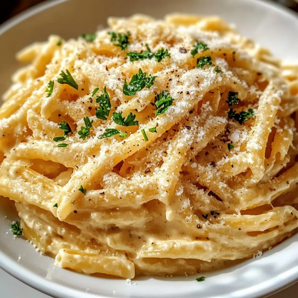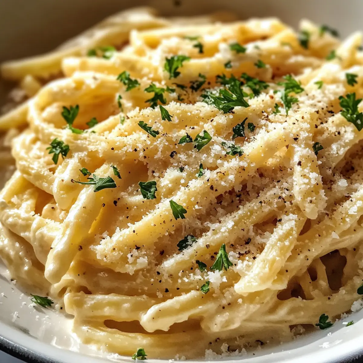 Als ich kürzlich in meiner Küche stand und den verführerischen Duft von frisch angebratenem Knoblauch wahrnahm, erinnerte ich mich daran, warum ich das Kochen so liebe. Heute teile ich ein Rezept für One Pot Creamy Garlic Pasta, das perfekt für stressige Wochentage ist. Es vereint gleich mehrere Vorteile: die einfache Zubereitung in nur einem Topf und die cremige, herzhafte Sauce machen es zu einem echten Genuss. Diese Knoblauch Pasta ist nicht nur ein schneller Lebensretter, sondern verführt auch mit einem Aroma, das selbst die größten Fast-Food-Fans umstimmen könnte. Neugierig, wie du in kürzester Zeit ein köstliches Gericht kreieren kannst? Lass uns gleich loslegen! Warum wirst du diese Knoblauch Pasta lieben? Ein Topf, ein einfaches Rezept: Diese Knoblauch Pasta wird in nur einem Topf zubereitet, was dir nicht nur Zeit spart, sondern auch den Abwasch minimiert. Cremiger Genuss: Die reichhaltige, cremige Sauce umhüllt die Nudeln perfekt und bietet ein unglaubliches Geschmackserlebnis. Knoblauch-Aroma: Frischer Knoblauch sorgt für einen verführerischen Duft, der deine Küche durchzieht und selbst der anspruchsvollsten Gaumen begeistert. Vielseitig: Du kannst ganz leicht Zutaten variieren, wie zum Beispiel Gemüse oder Proteine hinzufügen, um das Gericht an deine Vorlieben anzupassen. Und das Beste? Schnell zubereitet: Ideal für stressige Wochentage, ohne auf Geschmack zu verzichten! Probiere auch meine Zitronen Knoblauch Haehnchenbaellchen oder den Garnelen Pasta Auflauf für weitere leckere Inspirationen! Knoblauch Pasta Zutaten • Die perfekte Basis für dein Gericht. Nudeln (Pasta) – Sie bilden die Grundlage des Gerichts und sorgen für die richtige Struktur; für Glutenunverträglichkeit kannst du glutenfreie Nudeln verwenden. Öl oder Butter (Oil or Butter) – Sorgt für Reichhaltigkeit und hilft beim Sautieren der Aromen; wähle Olivenöl für eine gesündere Option oder Butter für einen volleren Geschmack. Knoblauch (Garlic) – Der zentrale Geschmacksgeber dieser Knoblauch Pasta; frischer Knoblauch macht einen erheblichen Unterschied in der Aromenstärke. Milch (Milk) – Trägt zur Cremigkeit der Sauce bei; whole milk sorgt für das beste Ergebnis, während pflanzliche Milchoptionen für eine vegane Variante geeignet sind. Wasser (Water) – Benötigt, um die Nudeln zu kochen; passe die Menge an, um die Nudeln gleichmäßig zu bedecken. Parmesan (Parmesan Cheese) – Fügt umami Geschmack und Cremigkeit hinzu, wenn er schmilzt; ersetze ihn durch Pecorino oder Hefeflocken für eine milchfreie Version. Salz (Salt) – Verstärkt die Gesamtgeschmäcker; passe die Menge nach deinem persönlichen Geschmack an. Schwarzer Pfeffer (Black Pepper) – Bringt Würze und Tiefe; frisch gemahlener Pfeffer bietet das beste Aroma. Italienische Kräuter (Italian Herbs) – Verleiht dem Gericht einen aromatischen Geschmack; frische Kräuter können durch getrocknete ersetzt werden, wenn nötig. Optional: Frischkäse (Cream Cheese) – Fügt zusätzliche Cremigkeit hinzu; frische Kräuter wie Petersilie oder Basilikum als Garnitur machen das Gericht noch appetitlicher. Schritt-für-Schritt-Anleitungen für Knoblauch Pasta Step 1: Zutaten vorbereiten Schneide den Knoblauch und die Petersilie fein, würfle die Zwiebel, falls du sie verwendest, und reibe den Parmesan. Bereite alle Zutaten vor, sodass du während des Kochens schnell darauf zugreifen kannst. Dieser Schritt gewährleistet, dass deine Knoblauch Pasta gleichmäßig und schnell zubereitet wird. Step 2: Aromen anbraten Erhitze in einem großen Topf bei mittlerer Hitze das Öl oder die Butter. Gib den gehackten Knoblauch hinzu und sautiere ihn etwa 30-60 Sekunden, bis er duftet, aber nicht braun wird. Achte darauf, den Knoblauch gut zu beobachten, damit er nicht verbrennt – dies ist der erste Schritt zu einer aromatischen Knoblauch Pasta. Step 3: Zutaten kombinieren Füge die Nudeln, Milch, Wasser, Salz, Pfeffer und italienische Kräuter in den Topf hinzu. Rühre alles um, bis die Nudeln gut beschichtet sind. Bringe die Mischung zum Kochen und achte darauf, dass die Flüssigkeit die Nudeln gleichmäßig bedeckt – dies ist entscheidend für die perfekte Konsistenz deiner Knoblauch Pasta. Step 4: Pasta kochen Reduziere die Hitze auf niedrig, decke den Topf ab und lasse die Mischung 8-12 Minuten lang köcheln. Rühre alle 2-3 Minuten um, bis die Nudeln al dente und die Sauce dickflüssig ist. Diese Technik sorgt für einen nährstoffreichen Geschmack, während die Aromen sich entfalten können – das Herzstück deiner Knoblauch Pasta. Step 5: Sauce verfeinern Nimm den Topf vom Herd und rühre den Parmesan (und optional den Frischkäse) unter. Schmecke die Sauce ab und füge bei Bedarf Salz, Pfeffer und einen Spritzer Zitronensaft hinzu. Diese Schritte verleihen deiner Knoblauch Pasta die perfekte Cremigkeit und einen frischen Biss, den du lieben wirst. Step 6: Servieren Richte die Knoblauch Pasta sofort an, garniere sie mit frischer Petersilie oder Basilikum. Serviere sie zusammen mit einem Beilagensalat oder einem knusprigen Brot, um das Geschmackserlebnis zu vervollständigen. Mit jedem Bissen wirst du die vollmundigen Aromen und die gelungene Kombination schätzen – das Ergebnis deiner köstlichen Knoblauch Pasta. Storage Tips for Knoblauch Pasta Fridge: Bewahre die übrig gebliebene Knoblauch Pasta in einem luftdichten Behälter im Kühlschrank auf. So bleibt sie bis zu 3 Tage frisch und geschmackvoll. Freezer: Wenn du die Pasta länger aufbewahren möchtest, kannst du sie portionsweise einfrieren. Achte darauf, sie gut einzupacken, um Gefrierbrand zu vermeiden – so bleibt der cremige Genuss erhalten. Reheating: Zum Erwärmen die gefrorene Knoblauch Pasta über Nacht im Kühlschrank auftauen lassen und dann auf dem Herd bei mittlerer Hitze mit einem Spritzer Milch oder etwas Wasser erwärmen. So bleibt die Sauce schön cremig. Knoblauch Pasta Variationen und Alternativen Lass deiner Kreativität freien Lauf u