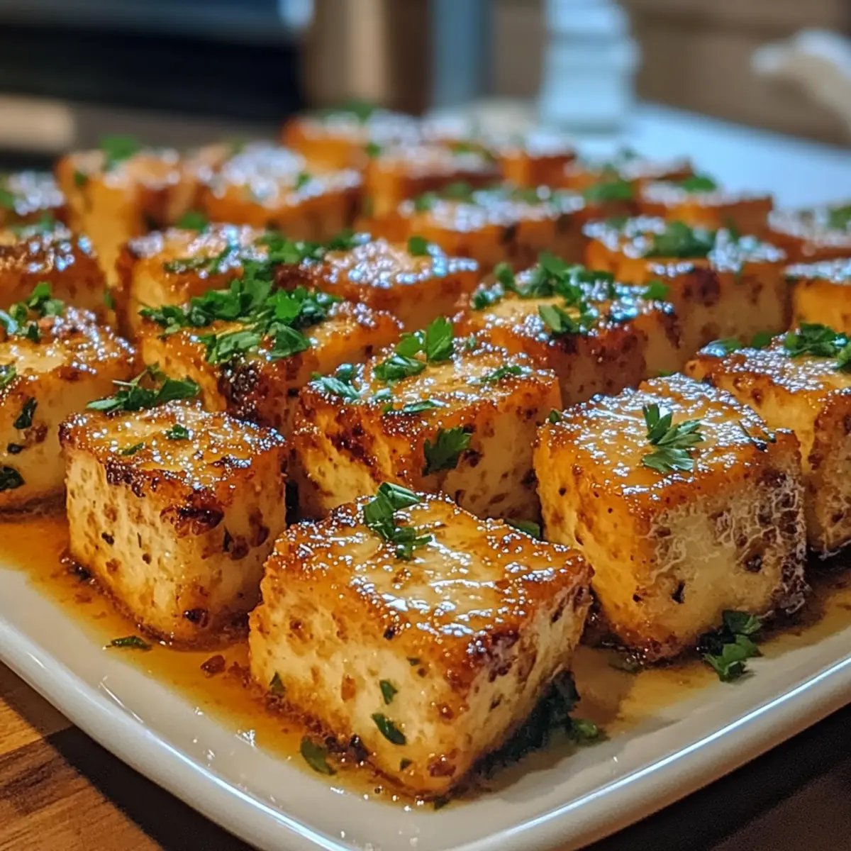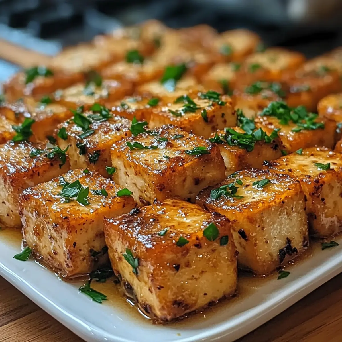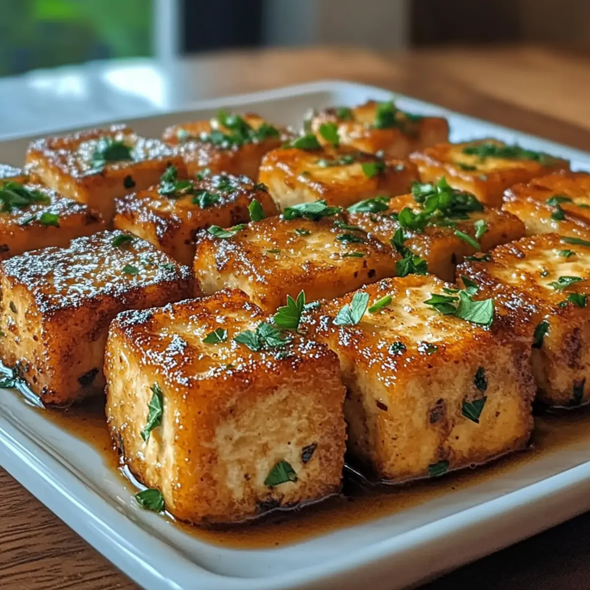 Knusprige Knoblauchbutter-Tofu-Bissen