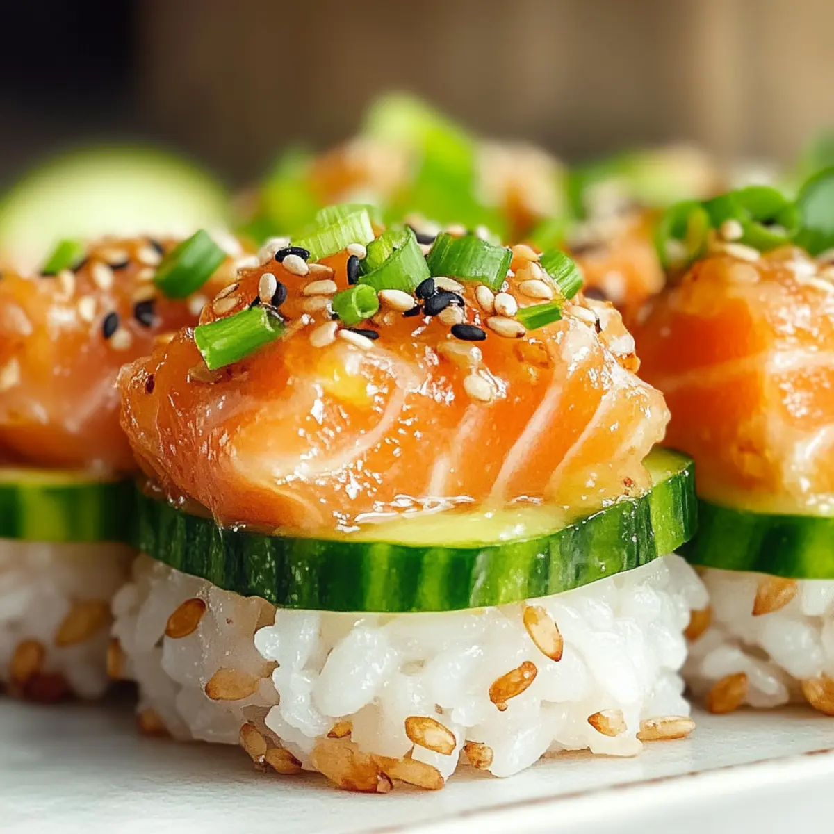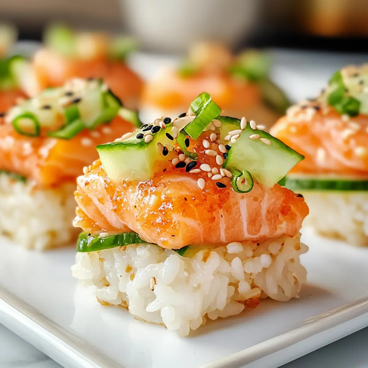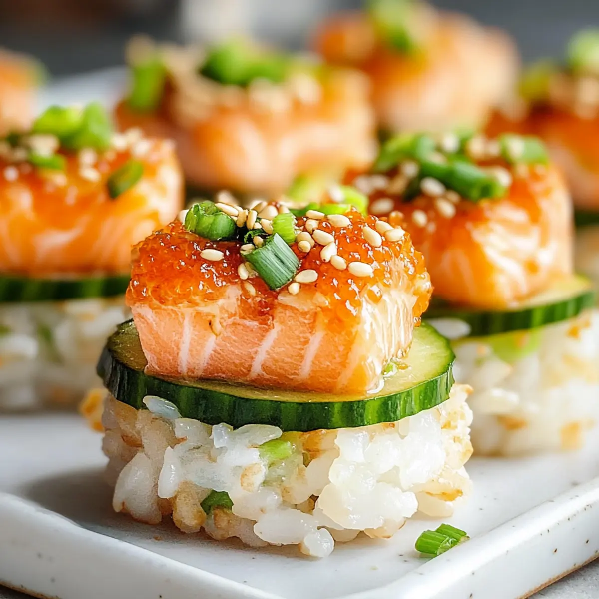 Eines Abends, als ich die hellen Lichter der Stadt bewunderte, überkam mich das Verlangen nach einem Snack, der sowohl köstlich als auch innovativ ist. So entstand die Idee für meinen Knusprigen Reis Lachs! Diese kleinen Häppchen sind eine aufregende Mischung aus frisch gefangenem Lachs und dem spritzigen Geschmack von Yuzu Kosho, auf knusprigem, goldbraunem Sushi-Reis serviert. Ideal für ein geselliges Beisammensein oder einfach, um den kleinen Hunger zu stillen, bieten sie eine perfekte Kombination aus Textur und Geschmack. Darüber hinaus sind sie glutenfrei und lassen sich in kürzester Zeit zubereiten. Hast du Lust, dein eigenes Sushi-Abenteuer zu beginnen? Lass uns gemeinsam in die Welt der knusprigen Leckereien eintauchen! Warum wirst du dieses Rezept lieben? Einfachheit: Die Zubereitung ist unkompliziert und erfordert nur grundlegende Kochfähigkeiten, sodass du dich ganz auf den Genuss konzentrieren kannst. Knusprige Textur: Der perfekt gebratene Sushi-Reis sorgt für einen unwiderstehlichen Crunch, während die cremige Lachsfüllung ein harmonisches Geschmackserlebnis bietet. Vielseitigkeit: Du kannst das Rezept leicht anpassen, indem du zum Beispiel Lachs durch Thunfisch ersetzt, um neue Geschmäcker zu entdecken. Zeitersparnis: In nur wenigen Schritten erhältst du ein beeindruckendes Gericht, das selbst Gäste in Staunen versetzen wird. Gesunde Wahl: Mit einer Portion von etwa 238 Kalorien ist dies eine nahrhafte Option, die reich an Eiweiß ist und dich langfristig sättigt. Ideal für jeden Anlass: Ob als Fingerfood für Partys oder als schneller Snack – diese kleinen Häppchen sind der perfekte Publikumsmagnet! Knuspriger Reis Lachs Zutaten Für den Reis • Sushi-Reis – Bietet die perfekte Basis für diesen knusprigen Snack; verwende kurzen, trockenen Sushi-Reis und spüle ihn, bis das Wasser klar ist. • Wasser – Essentiell zum Kochen des Reis. • Salz – Verstärkt den Geschmack des Reises. • Reisessig – Fügt Säure hinzu, um die Süße auszugleichen. • Zucker – Fügt der Reismischung eine leichte Süße hinzu. • Geröstetes Sesamöl – Verleiht dem Reis einen nussigen Geschmack. Für den Lachs • Lachs – Sushi-Qualität Lachs ist der Hauptdarsteller, der frischen und reichen Geschmack bietet. • Kewpie-Mayonnaise – Sorgt für eine cremige Konsistenz in der Lachsfüllung. • Yuzu Kosho – Eine würzige Paste aus Yuzu-Zitrusfrüchten und Chili, die Helligkeit und Schärfe bringt. • Yuzu-Saft – Frischer Zitrusgeschmack, der den Lachs ergänzt. • Sojasauce – Fügt Umami und Salzgehalt zur Lachsmischung hinzu. • Sesamöl – Verstärkt den Geschmack. Für die Garnitur • Gurken – Für die Garnitur; sorgt für Frische und Knusprigkeit. • Geröstete Sesamsamen – Liefert Textur und visuelle Attraktivität. • Frühlingszwiebeln – Für die Garnitur; gibt einen Hauch von Zwiebelgeschmack. Mit dieser Auswahl an hochwertigen Zutaten kannst du deinen knusprigen Reis Lachs wunderbar zubereiten und ein geschmackliches Erlebnis schaffen, das begeistert! Schritt-für-Schritt-Anleitung für Knuspriger Reis Lachs Step 1: Reis vorbereiten Spüle den Sushi-Reis gründlich unter kaltem Wasser, bis das Wasser klar ist. Koche den Reis anschließend in einem Reiskocher oder auf dem Herd mit der entsprechenden Wassermenge für etwa 20 Minuten, bis er weich und klebrig ist. Achte darauf, dass der Reis nicht anbrennt; eine mittlere Hitze ist ideal. Step 2: Reis würzen Mische in einer Schüssel Salz, Reisessig, Zucker und geröstetes Sesamöl zu einer glatten Paste. Diese Mischung dann vorsichtig unter den warmen, gekochten Reis heben, bis der Reis gleichmäßig gewürzt ist. Der Reis sollte glänzend und aromatisch sein, bevor du mit dem nächsten Schritt fortfährst. Step 3: Formen und kühlen Verteile den gewürzten Reis gleichmäßig in einer mit Backpapier ausgelegten Auflaufform. Drücke den Reis mit einem feuchten Löffel auf eine Dicke von etwa 1,5 cm zusammen. Decke die Form mit Frischhaltefolie ab und stelle sie für mindestens 3 Stunden oder über Nacht in den Kühlschrank, damit der Reis fest wird. Step 4: Reis schneiden Nachdem der Reis gut gekühlt ist, nimm ihn aus dem Kühlschrank und schneide ihn mit einem scharfen Messer in gleichmäßige, fingertip-große Rechtecke. Tupfe die Stücke vorsichtig mit einem Küchentuch trocken, um überschüssige Feuchtigkeit zu entfernen, was für einen besseren Crunch sorgt. Step 5: Reis anbraten Erhitze in einer großen Pfanne bei mittlerer Hitze ausreichend Öl, sodass der Boden bedeckt ist. Brate die Reiskekse für etwa 2 Minuten auf jeder Seite, bis sie goldbraun und knusprig sind. Achte darauf, die Stücke nicht zu überfüllen, damit sie gleichmäßig braten können, und lasse sie anschließend auf einem Kuchengitter abtropfen. Step 6: Lachs mischen In einer Schüssel den fein gehackten Lachs, Kewpie-Mayonnaise, Yuzu Kosho, Yuzu-Saft, Sojasauce und etwas Sesamöl gut vermengen. Die Mischung sollte cremig und gut gewürzt sein, um den perfekten Geschmack für die Knusprigen Reis Lachs-Häppchen zu erzielen. Step 7: Anrichten Lege die knusprigen Reisteile auf einen Servierteller. Platziere darauf einige Gurkenscheiben und füge die würzige Lachsmischung großzügig darüber. Zum Schluss mit gerösteten Sesamsamen und fein gehackten Frühlingszwiebeln garnieren, um dem Gericht eine frische und ansprechende Note zu verleihen. Meal Prep für Knuspriger Reis Lachs Die Zubereitung von Knusprigem Reis Lachs ist optimal für Meal Prep und spart dir wertvolle Zeit an hektischen Wochentagen! Du kannst den Sushi-Reis bis zu 24 Stunden im Voraus zubereiten und kühl stellen, sodass er perfekt zum Schneiden und Braten ist. Die gewürzte Reismischung sollte in einer Auflaufform verteilt und abgedeckt für mindestens 3 Stunden oder über Nacht gekühlt werden, um die Struktur zu festigen. Wenn du bereit bist, zu servieren, einfach die Reiskekse anbraten und die Lachsmischung zubereiten, die frisch un