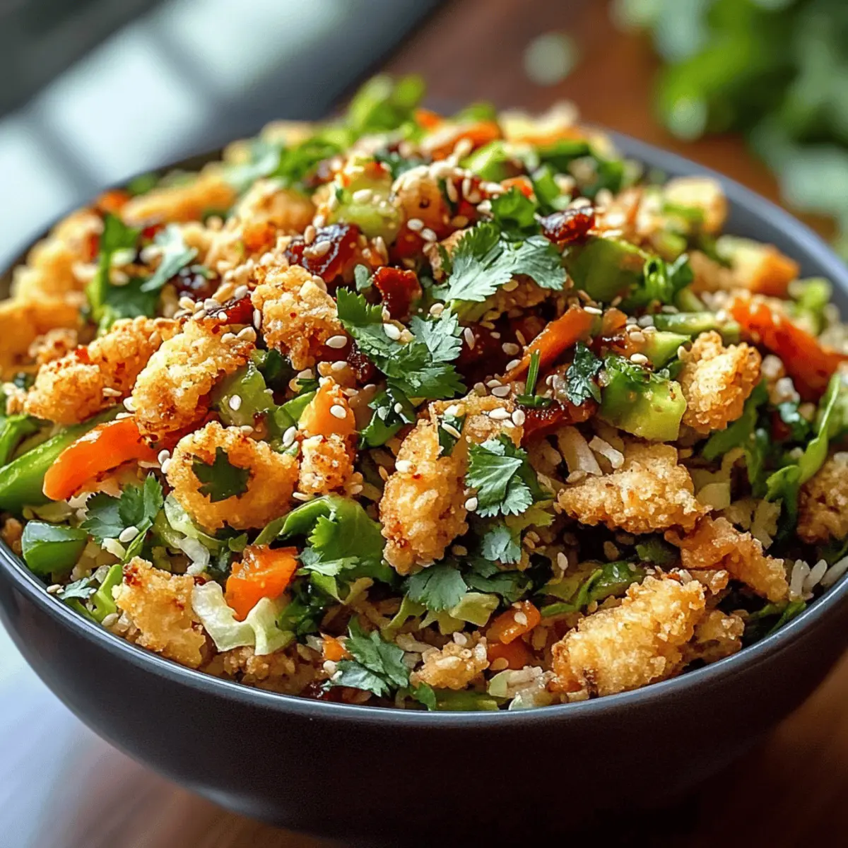 Stell dir vor, du beißt in einen knusprigen Bissen, der das Gefühl von Sommer in deinen Mund bringt! Mein knuspriger Reissalat ist eine erfrischende Kombination aus goldenen, knusprigen Reisknubbeln und frischen, knackigen Kräutern – perfekt für warme Tage oder gesellige Abende. Dieses Gericht ist nicht nur schnell und einfach zubereitet, sondern auch vielseitig. Egal, ob du einen legeren Abendessen-Favoriten oder das Highlight deiner nächsten Grillfeier suchst, diese Rezept wird deine Gäste begeistern. Und das Beste? Du kannst es ganz nach deinem Geschmack anpassen, sei es mit knackigem Gemüse oder deiner Lieblingsproteinquelle. Wer hätte gedacht, dass der Genuss so einfach sein kann? Bist du bereit, in die Welt des knusprigen Reissalats einzutauchen? Warum wird dieser Reissalat zum Favoriten? Einfachheit: Mit nur wenigen Zutaten und einfachen Schritten ist dieser knusprige Reissalat ein Kinderspiel. Selbst wenn du ein Kochanfänger bist, wirst du ihn im Handumdrehen zubereiten können. Vibrante Aromen: Die Kombination aus frischen Kräutern und knackigem Gemüse sorgt für eine Geschmacksexplosion, die den Sommer auf deinen Tisch bringt. Vielseitigkeit: Egal, ob du Tofu, Chicken oder Garnelen hinzufügst, du kannst dieses Gericht ganz nach deinem Geschmack anpassen. Probiere auch unser veganes Rezept, um eine pflanzliche Variante zu genießen! Zuschauerliebling: Ideal für Partys oder Grillabende, der knusprige Reissalat zieht alle in seinen Bann und bleibt bei den Gästen unvergessen. Gesunde Wahl: Mit frischen Zutaten ist dieser Salat nicht nur lecker, sondern auch nahrhaft und perfekt für eine ausgewogene Ernährung. Knuspriger Reissalat Zutaten Für den Salat • Gekochter Sushi-Reis – sorgt für die Basis und den Crunch. Am besten eignet sich ein Tag alter Reis für die perfekte Knusprigkeit. • Neutrales Öl (Pflanzen- oder Rapsöl) – wird zum Frittieren und Knusprigmachen des Reises verwendet. Essenziell für eine goldene Kruste. • Sojasauce – fügt Umami und Würze hinzu. Tamari kann als glutenfreie Alternative verwendet werden. • Sesamöl – bringt einen reichhaltigen, nussigen Geschmack. Unentbehrlich für das Dressing. • Napa-Kohl & Römersalat – sorgt für Frische und Knackigkeit. Können mit anderen Blattsalaten wie Spinat ersetzt werden. • Geriebene Karotten – bringen Süße und Farbe ins Spiel. Optionale Zugabe für zusätzlichen Crunch. • Rote Paprika – bietet Süße und Knackigkeit. Kann durch Paprika jeder Farbe ersetzt werden. • Frühlingszwiebeln – sorgt für einen milden Zwiebelgeschmack. Schnittlauch kann als Ersatz verwendet werden. • Koriander – fügt ein frisches, aromatisches Element hinzu. Kann für einen milderen Geschmack weggelassen werden. • Proteinwahl (Garnelen, Hähnchen, Tofu, Edamame) – fügt Substanz hinzu und macht den Salat zu einer kompletten Mahlzeit. Wähle je nach diätetischen Vorlieben oder verfügbaren Resten. Für das Dressing • Mayonnaise – als Grundlage für das Dressing, die Cremigkeit hinzufügt. Veganer Mayo kann für eine pflanzliche Version verwendet werden. • Reisessig – sorgt für eine würzige Note im Dressing. Apfelessig kann als Ersatz dienen. • Honig oder Ahornsirup – bringt eine süße Balance in die Aromen. Ahornsirup ist eine großartige vegane Option. • Geriebener Ingwer & gehackter Knoblauch – fügt aromatischen Geschmack hinzu. Frisch ist am besten; Pulver kann jedoch im Notfall verwendet werden. • Sriracha – fügt Wärme und Schärfe hinzu. Je nach persönlicher Schärfetoleranz anpassen. • Wasser – wird verwendet, um die Konsistenz des Dressings anzupassen. Langsam hinzufügen, um die gewünschte Dicke zu erreichen. Für die Garnitur • Sesamsamen, zerdrückte Erdnüsse, gewürfelte Avocado, scharfe Mayo – verbessern die Präsentation und fügen zusätzlichen Geschmack hinzu. Anpassbar basierend auf Geschmackspräferenzen. Schritt-für-Schritt-Anleitungen für Knuspriger Reissalat Step 1: Reis-Mischung vorbereiten Kombiniere den abgekühlten Sushi-Reis mit Sojasauce und Sesamöl in einer großen Schüssel. Rühre gut um, sodass der Reis gleichmäßig beschichtet ist und die Aromen aufnehmen kann. Dies sorgt für den perfekten Geschmack in deinem Knusprigen Reissalat. Lass die Mischung dann etwa 10 Minuten ruhen, damit die Aromen durchziehen können. Step 2: Öl erhitzen Erhitze in einer großen Pfanne etwa 2–3 Esslöffel neutrales Öl bei mittelhoher Hitze. Warte, bis das Öl leicht schimmert, was auf die richtige Temperatur hinweist. Dies ist entscheidend, um den Reis knusprig zu machen. Wähle eine große Pfanne, damit der Reis gleichmäßig braten kann. Step 3: Reis knusprig anbraten Verteile die Reis-Mischung gleichmäßig in der heißen Pfanne und lasse sie 5–7 Minuten ohne Rühren braten. Achte darauf, dass sie eine goldene Farbe annimmt und leicht knusprig wird. Diese erste Schicht sollte schön knusprig sein, um einen hervorragenden Texturkontrast in deinem Knusprigen Reissalat zu bieten. Step 4: Reis wenden Nutze einen Spatel, um den Reis vorsichtig umzudrehen. Koche die andere Seite weitere 5–7 Minuten, bis sie ebenfalls goldbraun und knusprig ist. Diese Technik sorgt dafür, dass dein Knuspriger Reissalat die perfekte Textur erhält. Achte darauf, dass die Hitze nicht zu hoch ist, um ein Anbrennen zu vermeiden. Step 5: Reis aufbrechen Nimm den knusprigen Reis aus der Pfanne und lass ihn einige Minuten abkühlen. Sobald er lauwarm ist, breche ihn in mundgerechte Stücke. Dies ermöglicht ein einfaches Mischen und sorgt für knusprige Bissen in deinem Salat. Lege die Stücke beiseite, während du die anderen Zutaten vorbereitest. Step 6: Grünes kombinieren In einer großen Schüssel mische den Napa-Kohl, Römersalat, geriebene Karotten, rote Paprika, Frühlingszwiebeln und Koriander. Diese Mischung sorgt für Frische und Knackigkeit der Zutaten in deinem Knusprigen Reissalat. Sicherstellen, dass alles gut vermischt ist, damit jede