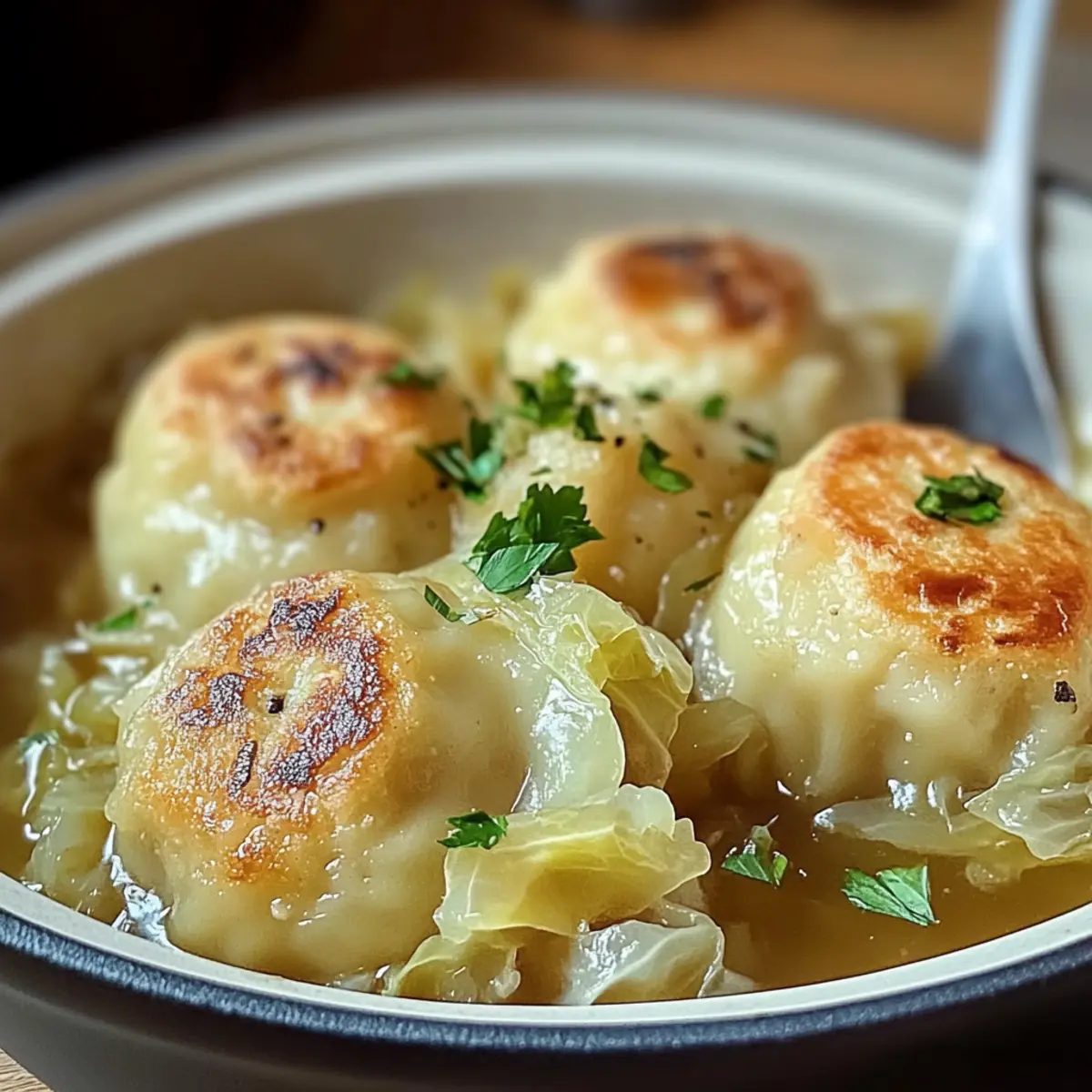 Kaum etwas löst bei mir so viele Erinnerungen aus wie der herrliche Duft von Kohl und Knödel, der durch die Küche zieht. In dieser herzhaften Kombination aus zartem, geschmortem Kohl und fluffigen Knödeln finde ich nicht nur ein Wohltat für den Magen, sondern auch eine Verbindung zu den Familienmomenten, die ich so liebe. Diese Rezeptur für Savory German Cabbage & Dumplings ist nicht nur einfach zuzubereiten, sondern auch unglaublich vielseitig – ideal für ein schnelles Mittagessen oder ein gemütliches Abendessen. Egal, ob Sie die glutenfreie Variante ausprobieren oder Ihren eigenen Twist mit zusätzlichen Aromen hinzufügen möchten, dieses Gericht bringt nicht nur Wärme in die Küche, sondern auch Freude auf die Teller. Bereit, diese wohltuende Speise auszuprobieren? Warum werden Sie dieses Rezept lieben? Einfachheit: Die Zubereitung von Kohl und Knödel ist unkompliziert und benötigt nur grundlegende Kochkenntnisse. Vielfältige Variationen: Egal ob glutenfrei oder pflanzlich – dieses Rezept lässt sich leicht anpassen und sorgt für Abwechslung auf dem Tisch. Herzlicher Geschmack: Die Kombination aus zartem Kohl und fluffigen Knödeln schafft ein unvergleichliches Geschmackserlebnis, das Gemütlichkeit verspricht. Zeitsparend: Ideal für hektische Tage, lässt sich das Gericht schnell zubereiten, ohne Anstrengung. Perfekt für die Familie: Die ganze Familie wird begeistert sein von diesem Rezept, das Erinnerungen an liebevolle gemeinsame Mahlzeiten weckt. Entdecken Sie auch Mediterraner Orzo Gesund für eine erfrischende Beilage oder probieren Sie eine andere köstliche Kombination wie Honig Huehnchen Koestlich. Kohl und Knödel Zutaten Für den Kohl • Kohl – Wählen Sie frische, feste Köpfe von grünem oder Wirsingkohl für den besten Geschmack. • Zwiebel – Serviert als aromatische Basis; verwenden Sie gelbe oder weiße Zwiebeln. • Butter – Zum Anbraten und Würzen; kann durch Olivenöl ersetzt werden. • Salz & Pfeffer – Für die perfekte Würze; frisch gemahlener Pfeffer sorgt für ein besseres Aroma. Für die Knödel • Mehl – Bietet die Struktur für die Knödel; verwenden Sie Allzweck- oder Vollkornmehl. • Backpulver – Lässt die Knödel schön aufgehen; achten Sie auf Frische für optimale Ergebnisse. • Milch – Bindet die Zutaten und sorgt für Feuchtigkeit; alternativ können Sie Mandel- oder Hafermilch verwenden. • Ei – Wirkt als Bindemittel für die Knödel. • Petersilie – Gibt Frische und Farbe; kann durch Schnittlauch ersetzt werden. Entdecken Sie, wie gut Kohl und Knödel nicht nur für die Seele, sondern auch für die Gesundheit sind! Schritt-für-Schritt-Anleitung für Kohl und Knödel Step 1: Kohl und Zwiebel vorbereiten Zerhacken Sie den Kohl in feine Streifen und würfeln Sie die Zwiebel. Beide Zutaten sind die Grundlage für unser köstliches Gericht. Legen Sie die geschnittenen Zutaten auf einen Teller bereit, damit Sie sie im nächsten Schritt schnell verwenden können. Step 2: Zwiebeln anbraten Erhitzen Sie in einer großen Pfanne bei mittlerer Hitze die Butter. Geben Sie die Zwiebeln hinzu und dünsten Sie sie für etwa 3-4 Minuten, bis sie leicht transparent und goldgelb sind. Diese aromatische Basis verleiht dem gesamten Gericht eine wohltuende Tiefe. Step 3: Kohl hinzufügen Fügen Sie den geschnittenen Kohl in die Pfanne und würzen Sie ihn mit Salz und frisch gemahlenem Pfeffer. Kochen Sie alles für etwa 7-10 Minuten, bis der Kohl zart und leicht karamellisiert ist. Rühren Sie gelegentlich um, damit nichts anbrennt. Step 4: Knödelteig herstellen In einer großen Schüssel vermengen Sie das Mehl, Backpulver, Milch und das Ei. Rühren Sie alles gut um, bis eine homogene Masse entsteht. Der Teig sollte glatt und nicht zu flüssig sein, um die perfekte Konsistenz für Ihre Knödel zu erreichen. Step 5: Knödel in den Kohl geben Löffeln Sie den Knödelteig vorsichtig in die köchelnde Kohlmischung. Decken Sie die Pfanne ab und lassen Sie alles für etwa 10 Minuten dämpfen. Der Dampf sorgt dafür, dass die Knödel schön fluffig und durchgegart werden. Step 6: Garstärke überprüfen Nach 10 Minuten nehmen Sie den Deckel ab und überprüfen die Knödel auf ihre Garstärke. Sie sollten leicht aufgegangen und durchgegart sein. Wenn sie noch nicht ganz fertig sind, einfach noch ein paar Minuten dämpfen. Step 7: Servieren Rühren Sie vorsichtig die Knödel und den Kohl zusammen und garnieren Sie das Gericht mit frisch gehackter Petersilie. Servieren Sie den Kohl und Knödel heiß als herzhaftes Hauptgericht und genießen Sie die liebevollen Aromen dieses traditionellen Rezepts. Kohl und Knödel Variationen Lassen Sie Ihrer Kreativität freien Lauf und passen Sie dieses Rezept nach Ihrem Geschmack an! Glutenfrei: Ersetzen Sie das Allzweckmehl durch eine glutenfreie Mehlmischung für die Knödel. Pflanzenbasiert: Tauschen Sie die Milch durch Mandel- oder Hafermilch aus und verwenden Sie einen Leinsamen-Ei-Ersatz. Herzhafte Optionen: Fügen Sie geräucherte Wurst oder Kielbasa hinzu für einen deftigen Twist. Der zusätzliche Geschmack macht das Gericht unvergesslich. Aromen verstärken: Integrieren Sie frische Kräuter wie Thymian oder Dill und Käse wie Cheddar oder Schweizer für eine herzliche Note. Texturvariationen: Bestreuen Sie das Gericht vor dem Servieren mit gerösteten Samen oder gehackten Nüssen, um einen knusprigen Effekt zu erzielen. Sie können auch Geroesteter Gruener Rezept als köstliche Beilage in Betracht ziehen oder probieren Sie das Rezept für Kohlrabi Kartoffel Auflauf für weitere Abwechslung. Lagerungstipps für Kohl und Knödel Zimmertemperatur: Lagerung bei Zimmertemperatur ist nicht empfehlenswert, da das Gericht frisch am besten schmeckt. Genießen Sie es direkt nach der Zubereitung. Kühlschrank: Im Kühlschrank aufbewahren für bis zu 3 Tage. Stellen Sie sicher, dass das Gericht in einem luftdichten Behälter gut verpackt ist, um Austrocknung zu vermeiden. Gefrierer: Kohl und Knöd