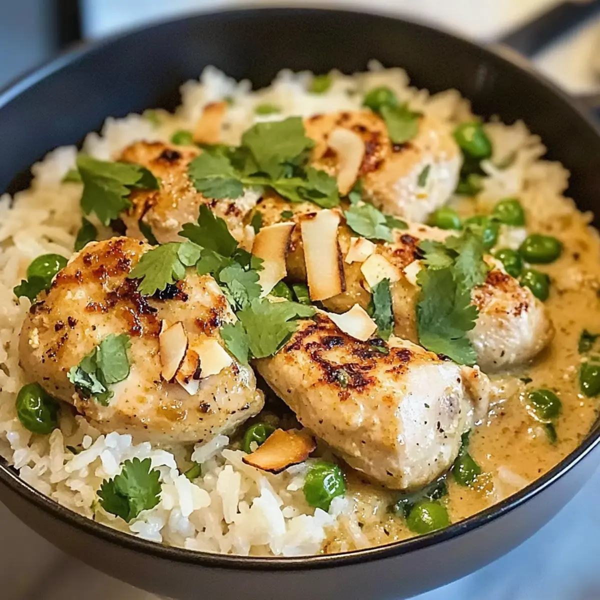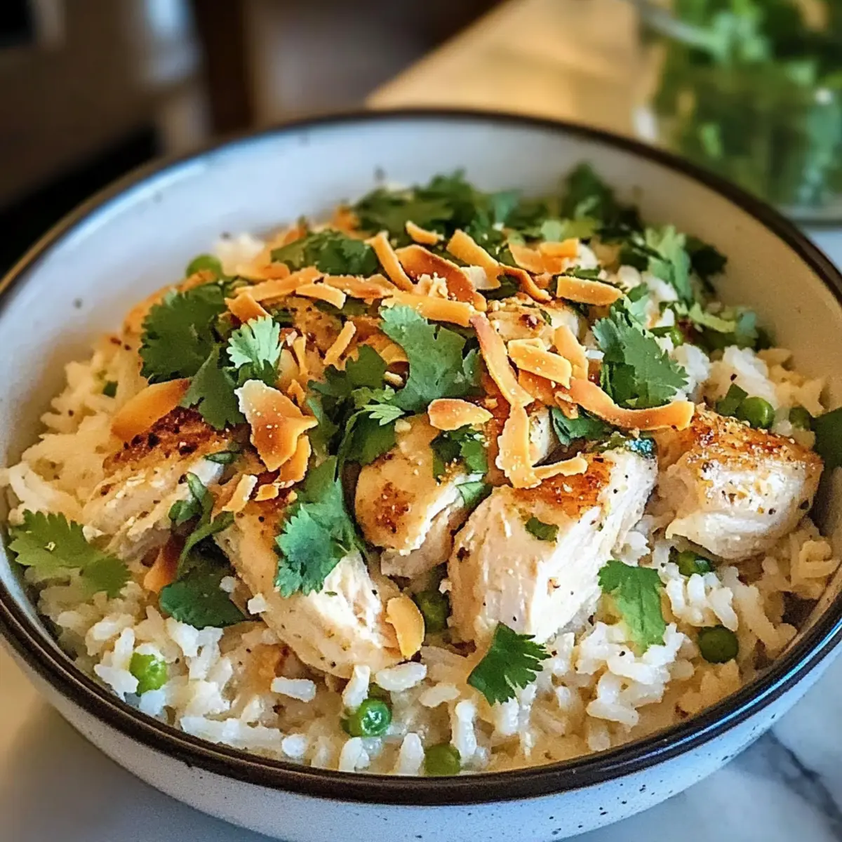 Es war einmal an einem ruhigen Abend, als ich entschied, etwas Besonderes für das Abendessen zuzubereiten. Gerade als ich die Tür zum Kühlschrank öffnete, fiel mein Blick auf eine Dose Kokosnussmilch – und da war es, das Rezept für Kokosnuss Hähnchen und Reis war geboren! Dieses Gericht vereint zartes Hähnchen, cremige Kokosnussmilch und aromatische Gewürze zu einer tropischen Geschmacksreise, die selbst die gemütlichsten Abende in etwas Luxuriöses verwandelt. Neben der exquisiten Geschmackskomposition begeistert es vor allem durch die einfache Zubereitung. Es ist die perfekte Wahl, um Freunde zu beeindrucken oder sich selbst zu verwöhnen. Wenn du also auf der Suche nach einem Rezept bist, das sowohl heimisches Wohlgefühl als auch eine Prise Exotik verspricht, dann bist du hier genau richtig. Was denkst du, könnte dieser köstliche Gericht auch dein Herz erobern? Warum ist Kokosnuss Hähnchen und Reis so beliebt? Einfachheit: Die Zubereitung ist kinderleicht und benötigt nur grundlegende Kochfähigkeiten. Du wirst erstaunt sein, wie schnell das Gericht auf dem Tisch steht! Tropischer Genuss: Der herzhafte Geschmack von Kokosnussmilch und aromatischen Gewürzen verwandelt jedes Abendessen in ein exotisches Festmahl. Vielseitigkeit: Personalisiere das Rezept nach deinen Vorlieben, indem du zusätzliche Gemüse wie Erbsen oder Paprika hinzufügst – jede Variante ist ein Geschmackserlebnis! Perfekte Mischung: Die zarten Hähnchenstücke, eingebettet in cremigem Kokosreis, bieten eine himmlische Kombination von Texturen. Beeindruckende Präsentation: Mit frischem Koriander oder gerösteter Kokosnuss garniert sieht das Gericht nicht nur toll aus, sondern schmeckt auch so! Wenn du nach weiteren köstlichen Rezepten suchst, wie Herzhafter Reis Mit oder Karamellisierte Soja Reis, entdecke sie unbedingt! Kokosnuss Hähnchen und Reis Zutaten • Entdecke die geheimen Zutaten für dein perfektes Gericht! Für das Hähnchen Hähnchenbrust oder -schenkel – zart und saftig; Hähnchenschenkel bieten zusätzlichen Geschmack. Knoblauch – frisch gehackt verstärkt das Aroma; verwende getrockneten, wenn nötig. Ingwer – frisch gerieben bringt eine angenehme Schärfe ins Spiel. Für den Reis Jasminreis – leicht blumig und angenehm; Basmati kann für eine andere Textur genutzt werden. Kokosmilch – sorgt für eine cremige Konsistenz und tropische Note; wähle fettarme Kokosmilch für eine leichtere Version. Wasser – zum Kochen des Reises; die Brühe kann verwendet werden, um mehr Geschmack hinzuzufügen. Für die Gemüse Paprika – gibt Farbe und Crunch; wähle deine Lieblingsfarbe! Erbsen – perfekt für zusätzliche Nährstoffe und Süße. Zum Garnieren Frischer Koriander – bringt Frische ins Gericht; optional, wenn nicht verfügbar. Geröstete Kokosnuss – verleiht eine nussige Textur und Optik; kann auch weggelassen werden. Schritt-für-Schritt-Anleitung für Kokosnuss Hähnchen und Reis Step 1: Hähnchen vorbereiten Zuerst das Hähnchen in gleichmäßige Stücke schneiden und mit gehacktem Knoblauch, geriebenem Ingwer sowie Salz und Pfeffer würzen. In einer großen Pfanne 1-2 Esslöffel Öl bei mittlerer Hitze erhitzen und die gewürzten Hähnchenstücke etwa 5-7 Minuten anbraten, bis sie goldbraun sind. Achte darauf, das Hähnchen regelmäßig zu wenden, damit es gleichmäßig brät. Step 2: Reis hinzufügen Nachdem das Hähnchen schön gebräunt ist, den Jasminreis in die Pfanne geben und kurz mit dem Hähnchen anrösten. Dadurch wird der Reis aromatischer. Dann 400 ml Kokosmilch sowie 200 ml Wasser hinzugießen und alles gut umrühren. Stelle sicher, dass der Reis gleichmäßig mit Flüssigkeit bedeckt ist, bevor du die nächste Zubereitungsphase beginnst. Step 3: Köcheln lassen Die Hitze reduzieren, die Pfanne abdecken und das Gericht etwa 20-25 Minuten köcheln lassen. In dieser Zeit wird der Reis die Flüssigkeit aufnehmen und zart werden. Nach weiteren 15 Minuten vorsichtig prüfen, ob der Reis gar ist. Sollte er noch zu hart sein, gib einen Schuss Wasser hinzu und lasse das Gericht weiter köcheln. Step 4: Gemüse hinzufügen Falls du dich für Paprika oder Erbsen entschieden hast, füge diese in den letzten 5 Minuten der Kochzeit hinzu. Rühre sie leicht unter, damit sie gleichmäßig erhitzt werden. Dies gibt dem Gericht eine schöne Farbe und verleiht zusätzlichen Geschmack. Step 5: Garnieren und servieren Nachdem der Reis zart und die Kokosmilch vollständig eingezogen ist, nimm die Pfanne vom Herd. Mit einer Gabel den Reis leicht auflockern. Das fertige Kokosnuss Hähnchen und Reis auf Teller anrichten und mit frischem Koriander sowie gerösteter Kokosnuss garnieren. Sofort servieren und genießen! Expertentipps für Kokosnuss Hähnchen und Reis Hähnchen anbraten: Sorge dafür, dass das Hähnchen gut gebräunt ist, um einen intensiven Geschmack zu erzielen. Ein häufiges Missverständnis ist, es zu lange unbewegt zu lassen. Reis überwachen: Achte beim Kochen darauf, dass der Reis nicht anbrennt. Sollte er zu trocken erscheinen, füge etwas Wasser hinzu, um die Textur zu retten. Würze anpassen: Passe die Gewürze ganz nach deinem Geschmack an. Überlege, mehr Ingwer oder Chili hinzuzufügen, um die Aromen des Kokosnuss Hähnchen und Reis zu intensivieren. Gemüse für Farbe: Ergänze das Gericht mit buntem Gemüse für eine ansprechende Optik. Das Verzichten auf Gemüse kann die Nährstoffe und Vielfalt mindern. Kokosraspeln rösten: Wenn du geröstete Kokosnuss verwendest, achte darauf, sie nur kurz zu rösten, damit sie nicht verbrennt. Das gibt zusätzlichen Crunch und Aroma. Variationen für Kokosnuss Hähnchen und Reis Gestalte dieses köstliche Gericht ganz nach deinem Geschmack und lasse deiner Kreativität freien Lauf! Vegetarisch: Tausche das Hähnchen gegen Tofu oder Kichererbsen aus, um eine herzhafte, fleischfreie Variante zu zaubern. Diese pflanzlichen Alternativen sorgen für ebenso viel Geschmack und Fülle. Mehr Gemüse: Füge Spinat ode