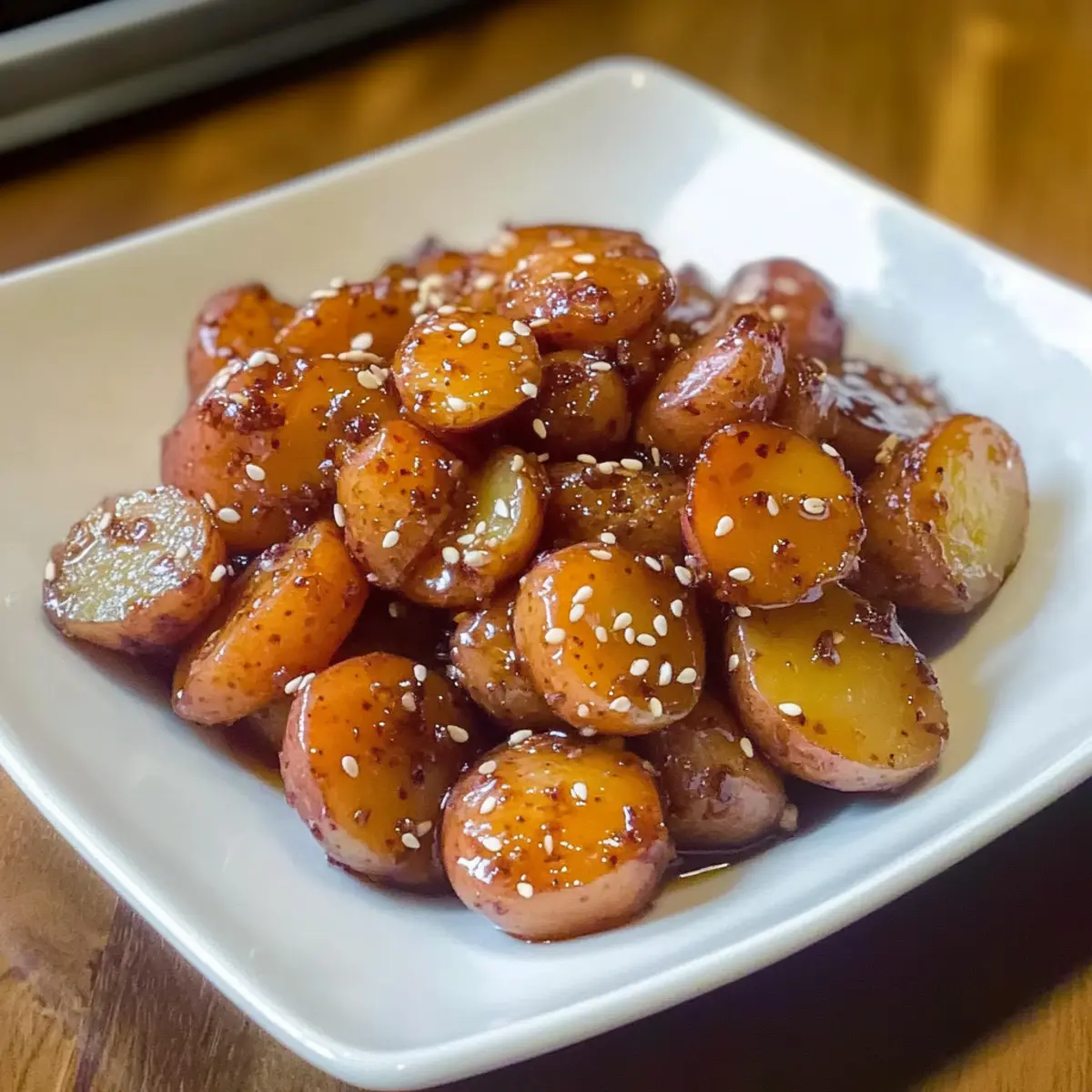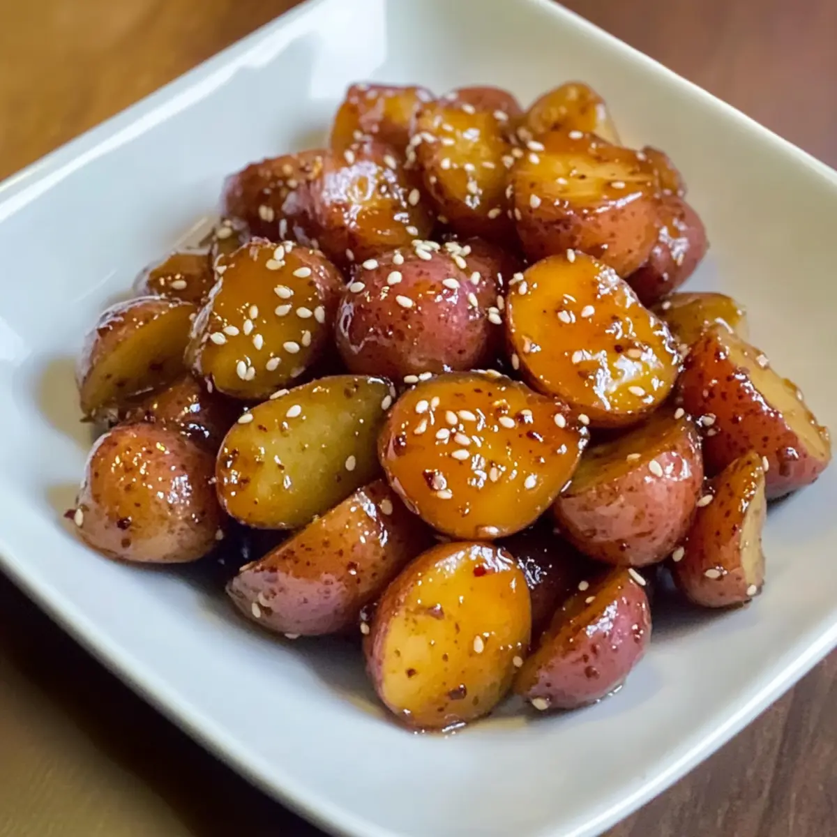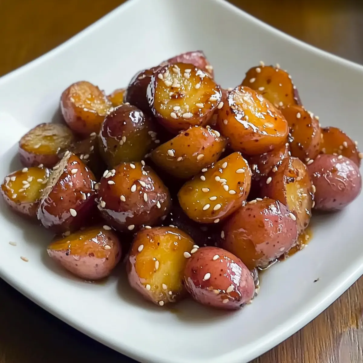 Als ich kürzlich in einem kleinen koreanischen Restaurant war, fiel mir sofort der verführerische Duft von süß-salzigen Aromen auf, der durch den Raum strömte. Das besondere Gericht? Koreanische geschmorte Kartoffeln, oder Gamja Jorim, wie sie in ihrer Heimat heißen. Diese köstliche Beilage vereint eine zarte, klebrige Textur mit der perfekten Balance aus Süße und Salzigkeit. In nur 25 Minuten zubereitet, ist dieses vegetarische Rezept nicht nur schnell und einfach, sondern auch ein wahres Highlight für jede Mahlzeit. Ob als Beilage zu deinem Lieblingsgericht oder als Teil eines vielfältigen Buffets, diese geschmorten Kartoffeln werden deine Gäste begeistern. Möchtest du wissen, welche Geheimzutat den besonderen Pfiff ausmacht? Lass uns direkt in die Zubereitung eintauchen! Warum wirst du diese geschmorten Kartoffeln lieben? Einfachheit: Die Zubereitung ist kinderleicht und erfordert keine besonderen Kochkünste. Perfekt für Anfänger und alle, die schnelle Ergebnisse schätzen. Vielseitigkeit: Diese koreanischen geschmorten Kartoffeln passen zu nahezu jedem Gericht – sei es als Beilage zu Reis oder als Teil eines banchan Buffets. Himmlischer Geschmack: Der süß-salzige Aromenmix wird deine Geschmacksknospen verwöhnen und alle am Tisch begeistern. Gesunde Wahl: Vollständig vegetarisch und glutenfrei, ist dieses Gericht eine großartige Option für jeden, der gesund essen möchte. Schnell zubereitet: In nur 25 Minuten hast du eine köstliche Beilage auf dem Tisch – ideal für den hektischen Alltag. Für weitere einfache und schmackhafte Rezepte, schau dir auch unsere schnellen Beilagen an! Koreanische geschmorte Kartoffeln Zutaten • Entdecke die Geheimnisse hinter dem Geschmackswunder! Für die Hauptzutaten Kartoffeln – ideal sind rote neue Kartoffeln, da sie eine wachsartige Textur haben und sich gut für das Schmoren eignen. Neutrales Öl – verwende Avocado-, Raps- oder Pflanzenöl zum Anbraten der Kartoffeln; jedes dieser Öle sorgt für eine perfekte Bräunung. Sojasauce – bringt die salzige Umami-Note ins Spiel; für eine glutenfreie Variante greif zu glutenfreier Sojasauce. Zucker – sorgt für die süße Balance; du kannst Honig oder Ahornsirup als alternative Süßungsmittel verwenden. Sesamöl – fügt ein nussiges Aroma hinzu; es kann auch weggelassen werden, wenn du es nicht zur Hand hast. Wasser – bildet die Basis für die Sauce, die beim Kochen eindickt und die Kartoffeln umhüllt. Für die Garnierung Geröstete Sesamsamen – verleihen der Speise ein knuspriges Element und einen zusätzlichen Geschmackskick; sie sind eine schöne Dekoration und verstärken den Genuss. Mit diesen Zutaten wird dein Gericht der Star auf dem Tisch und der Fokus deiner nächsten Mahlzeit – die koreanischen geschmorten Kartoffeln werden bestimmt zu einem Liebling! Step-by-Step Instructions für koreanische geschmorte Kartoffeln Step 1: Kartoffeln vorbereiten Wasche die roten neuen Kartoffeln gründlich und schneide sie in etwa einen Zoll große Stücke. Dieses gleichmäßige Schneiden sorgt dafür, dass die Kartoffeln während des Kochens gleichmäßig garen. Bereite eine große Schüssel vor, um die zugeschnittenen Kartoffeln bereit zu halten. Step 2: Sauce zubereiten In einer kleinen Schüssel kombinierst du die Sojasauce, den Zucker, das Sesamöl und das Wasser. Verrühre die Mischung gut, bis der Zucker vollständig aufgelöst ist. Diese aromatische Sauce wird später über die Kartoffeln gegossen und verleiht den koreanischen geschmorten Kartoffeln ihren charakteristischen Geschmack. Step 3: Kartoffeln anbraten Erhitze in einer großen, beschichteten Pfanne bei mittlerer Hitze 2 Esslöffel neutrales Öl. Füge die Kartoffelstücke hinzu und brate sie für etwa 5-6 Minuten an, bis sie leicht goldbraun sind. Rühre gelegentlich um, damit die Kartoffeln gleichmäßig bräunen und nicht anhaften. Step 4: Sauce hinzufügen Gieße die vorbereitete Sauce über die angebratenen Kartoffeln in der Pfanne. Decke die Pfanne mit einem Deckel ab und lasse die Kartoffeln bei niedriger bis mittlerer Hitze 5-7 Minuten garen, bis sie zart sind. Der Dampf hilft, die Kartoffeln gleichmäßig zu garen und durch die Sauce zu aromatisieren. Step 5: Glazing Nimm den Deckel ab, um den Dampf entweichen zu lassen, und lasse die Sauce einige Minuten köcheln, damit sie eindickt. Wende die Kartoffeln vorsichtig mit einem Kochlöffel, um sie gleichmäßig mit der klebrigen Glasur zu überziehen. Bei Bedarf ein wenig Wasser hinzufügen, wenn die Sauce zu dick ist. Step 6: Servieren Schalte die Hitze aus und gib die koreanischen geschmorten Kartoffeln in eine Servierschüssel. Bestreue sie mit gerösteten Sesamsamen für zusätzlichen Geschmack und eine hübsche Dekoration. Serviere die Kartoffeln warm und genieße sie als köstliche Beilage zu deinen Lieblingsgerichten. Was passt gut zu koreanischen geschmorten Kartoffeln? Die perfekte Begleitung zu einem Gericht, das so geschmackvoll und verführerisch ist, lässt sich leicht finden. Dampfkartoffeln: Diese zarten Kartoffeln bieten eine schöne Ergänzung, da ihre neutrale Note die süß-salzigen Aromen der Gamja Jorim hervorhebt. Sie sind auch eine tolle Texturvariante. Kimchi: Die scharfe und saure Note von traditionellem Kimchi bringt eine erfrischende Balance zu den gesüßten Kartoffeln und rundet das koreanische Erlebnis perfekt ab. Es ist die ideale Beilage, die beim Essen für ein wenig Würze sorgt. Reis: Klassischer, gedämpfter Reis ist die Basis der koreanischen Küche. Er nimmt die köstliche Sauce der geschmorten Kartoffeln auf und macht die Mahlzeit sättigender. Gemeinsam ein wahrer Genuss! Schüssel mit Miso-Suppe: Diese herzhafte Suppe bietet ein umami-lastiges Element, das die Aromen vertieft und die Geschmacksknospen beruhigt. Sie schafft zudem eine angenehme Wärme, die perfekt zu einem gemütlichen Abendessen passt. Nachspeise aus frischem Obst: Ein subtiler Obstsalat mit saisonalen Früchten ergänzt die süßen Aro