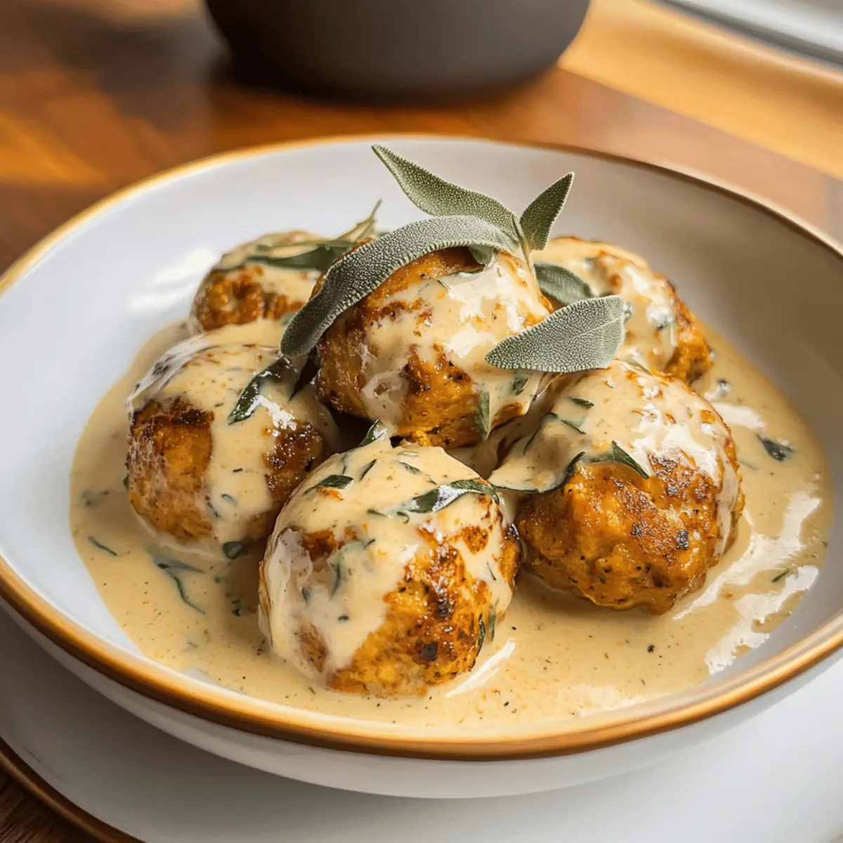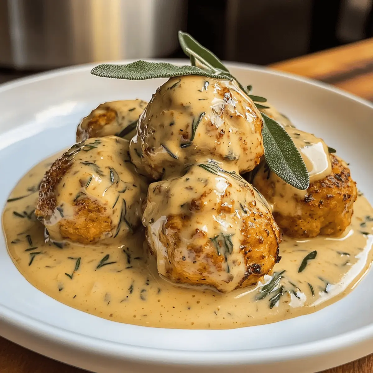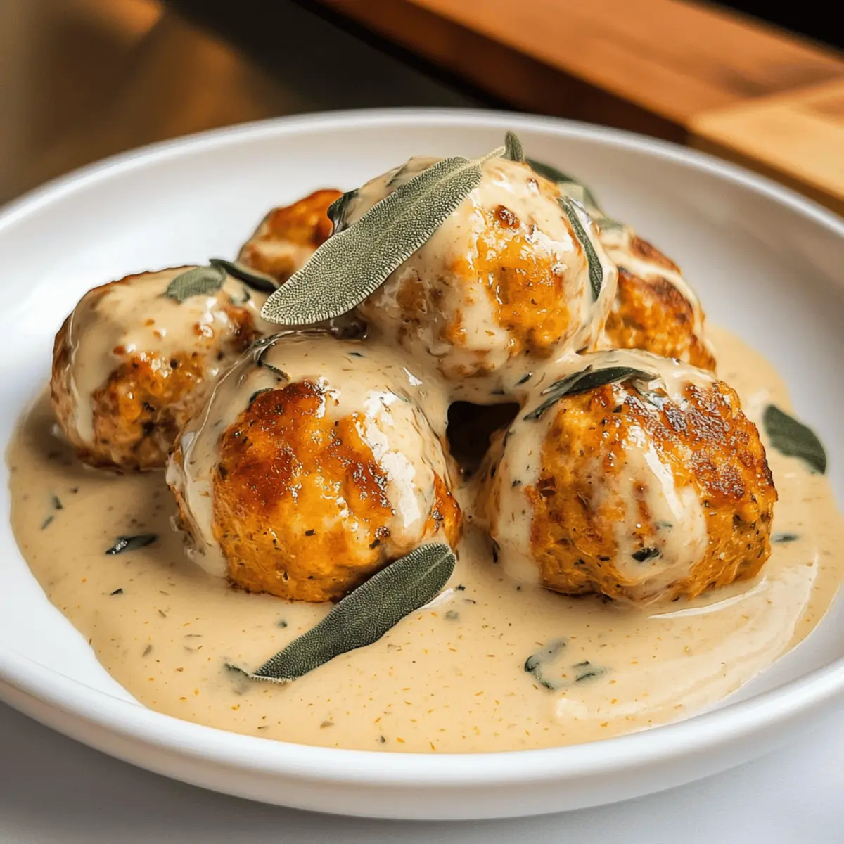 Die kühle Jahreszeit lädt uns ein, die Küche mit einladenden Aromen zu füllen, und ich habe die perfekte Lösung für all jene, die sich nach etwas Warmem und Herzhaftem sehnen: Kürbis-Hühnchen-Fleischbällchen in Salbeisahne-Sauce! Diese außergewöhnlichen Fleischbällchen sind nicht nur einfach zuzubereiten, sondern bringen auch die gemütlichen Geschmäcker des Herbstes direkt auf den Tisch. Der feine Kürbis sorgt für eine saftige Textur, während die cremige Salbeisauce eine erdige Wärme hinzufügt, die ideal für ein schnelles Abendessen oder um Freunde zu bewirten ist. Und das Beste? Sie sind glutenfrei und können mit ein paar Anpassungen sogar laktosefrei zubereitet werden! Welche Begleitung planst du für diese köstliche Kombination? Warum wirst du dieses Rezept lieben? Einfachheit: Die Zubereitung der Kürbis-Hühnchen-Fleischbällchen ist kinderleicht und erfordert nur grundlegende Kochfähigkeiten. Herzhaftes Aroma: Die Kombination aus Kürbis und Salbei verleiht diesen Fleischbällchen einen herzhaften und saisonalen Geschmack, der jeden begeistert. Vielseitigkeit: Egal ob zu Pasta, pürierten Kartoffeln oder einem frischen Salat, dieses Gericht passt zu vielen Beilagen! Gesunde Wahl: Mit magerem Hühnerfleisch und der Möglichkeit, glutenfreie und laktosefreie Optionen zu verwenden, ist dies ein nahrhaftes Abendessen für jeden. Zeitersparnis: Perfekt für schnelle Abendessen oder vorbereitbare Mahlzeiten – die Fleischbällchen können auch im Voraus zubereitet werden! Saisonale Freude: Bereite diese leckeren Fleischbällchen für deine nächste Feier vor und bringe die Herbststimmung auf den Tisch! Kürbis-Hühnchen-Fleischbällchen Zutaten • Verwandle deine Küche in ein Herbstparadies mit diesen wunderbaren Zutaten! Für die Fleischbällchen Gemahlenes Hähnchen – liefert eine proteinreiche Basis; du kannst auch gemahlenen Truthahn verwenden. Kürbispüree (aus der Dose) – sorgt für Feuchtigkeit und Geschmack; ein direkter Ersatz ist nicht empfohlen. Semmelbrösel – binden die Zutaten und helfen, die Fleischbällchen in Form zu halten; nutze glutenfreie Semmelbrösel für eine glutenfreie Version. Ei – fungiert als Binder für die Mischung; kein Ersatz vorgeschlagen. Knoblauchzehe (gerieben) – verbessert den Geschmack; frischer Knoblauch ist ideal. Zwiebelpulver – fügt Tiefe hinzu; frisch geriebene Zwiebeln sind auch verwendbar. Salz und schwarzer Pfeffer – essentielle Gewürze für den Geschmack. Olivenöl – zum Braten der Fleischbällchen; du kannst auch andere Öle verwenden, wenn gewünscht. Für die Sauce Ungesalzene Butter – verleiht der Sauce Reichhaltigkeit; tausche sie gegen laktosefreie Butter für eine laktosefreie Variante. Frischer Salbei (gehackt) – bringt ein aromatisches, herzhaftes Aroma in die Sauce; getrockneter Salbei kann verwendet werden, wenn nötig. Schlagsahne – kreiert die cremige Sauce; denk daran, laktosefreie Sahnealternativen wie Hafer- oder Cashewcreme zu verwenden. Muskatnuss (optional) – verleiht der Sauce Wärme und Tiefe; kann weggelassen werden, wenn nicht gewünscht. Schritt-für-Schritt-Anleitung für Kürbis-Hühnchen-Fleischbällchen in Salbeisahne-Sauce Step 1: Mischung der Zutaten In einer große Schüssel das gemahlene Hähnchen, Kürbispüree, Semmelbrösel, Ei, geriebenen Knoblauch, Zwiebelpulver, Salz und Pfeffer gut vermengen, bis alles gerade so verbunden ist. Diesen Schritt etwa 3 Minuten lang durchführen, um die Zutaten gut zu kombinieren und eine gleichmäßige Mischung zu erzielen. Step 2: Formen der Fleischbällchen Die Mischung mit feuchten Händen zu 1,5 Zoll großen Fleischbällchen formen; du solltest etwa 16 Fleischbällchen erhalten. Dabei darauf achten, gleichmäßige Bällchen zu formen, damit sie gleichmäßig garen. Leg sie auf einen großen Teller, während du die nächsten Schritte vorbereitest. Step 3: Anbraten der Fleischbällchen Olivenöl in einer großen Pfanne bei mittlerer Hitze erhitzen. Die Fleischbällchen in Chargen hinzufügen und etwa 2-3 Minuten pro Seite braten, bis sie goldbraun und knusprig sind. Zu viele Fleischbällchen auf einmal in die Pfanne geben vermeiden, um ein Dämpfen zu verhindern. Step 4: Zubereitung der Sauce Während die Fleischbällchen braten, in einem kleinen Topf die ungesalzene Butter bei mittlerer Hitze schmelzen. Den geriebenen Knoblauch und den gehackten Salbei für etwa 30 Sekunden hinzufügen und anbraten, bis sie aromatisch sind. Rühren, um sicherzustellen, dass der Knoblauch nicht anbrennt. Step 5: Sahnesauce fertigstellen Die Schlagsahne zur Knoblauch-Salbei-Mischung geben und mit Salz, Pfeffer und optionaler Muskatnuss würzen. 3-4 Minuten leicht köcheln lassen, bis die Sauce leicht dicklich wird. Regelmäßig umrühren, um ein Anbrennen zu verhindern und eine glatte Konsistenz zu erhalten. Step 6: Fleischbällchen in der Sauce vereinen Die goldbraun gebratenen Fleischbällchen vorsichtig in die Sauce geben und vorsichtig umrühren. Bei niedriger Temperatur weitere 5-7 Minuten köcheln lassen, bis die Fleischbällchen durchgegart sind und gut mit der Sauce überzogen sind. Die Fleischbällchen sollten in der Mitte nicht mehr rosa sein. Step 7: Servieren Die Kürbis-Hühnchen-Fleischbällchen in Salbeisahne-Sauce auf einem Teller anrichten und nach Belieben mit zusätzlichem gehacktem Salbei und frisch gemahlenem schwarzen Pfeffer garnieren. Sofort servieren und das geschmackvolle Zusammenspiel von Kürbis und Salbei genießen. Expertentipps für Kürbis-Hühnchen-Fleischbällchen • Nicht übermixen: Achte darauf, die Fleischballmasse nicht zu lange zu mischen, um zarte und lockere Fleischbällchen zu erhalten. • In Chargen braten: Brate die Fleischbällchen in kleinen Mengen, um Überfüllung und Dämpfen zu vermeiden, wodurch sie außen nicht knusprig werden. • Perfekte Garzeit: Stelle sicher, dass die Fleischbällchen innen nicht mehr rosa sind; benutze ein Fleischthermometer, um die ideale Temperatur zu prüfe