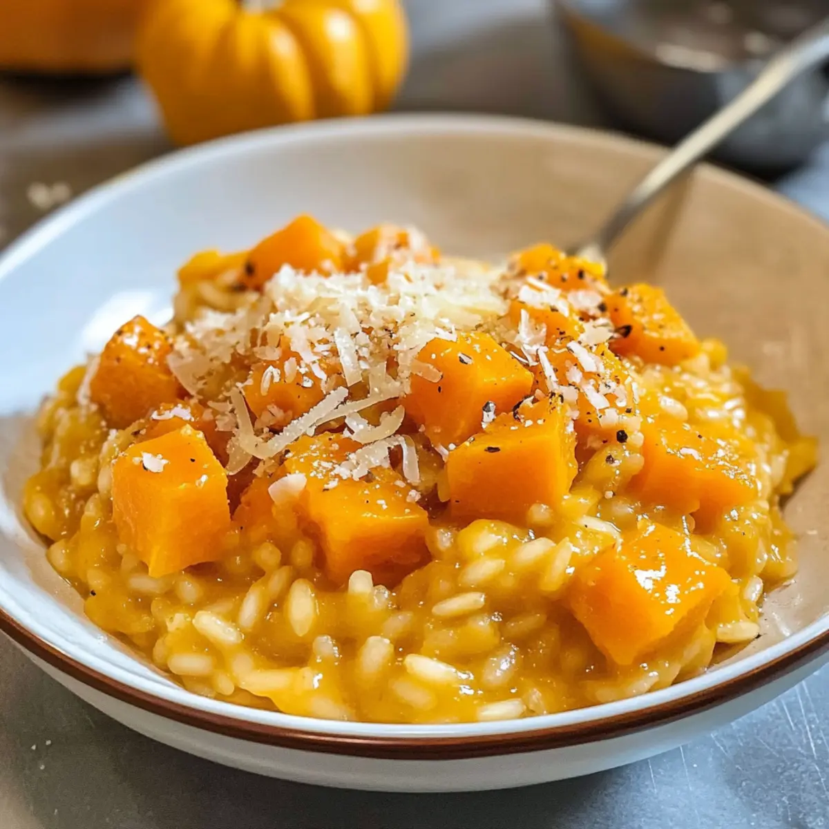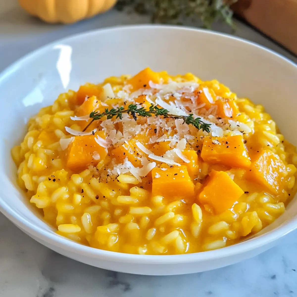 Wenn der Herbst vor der Tür steht, verwandelt sich meine Küche in ein wahres Musikstück der Aromen. Ein wahrer Star dieser Saison ist das Kürbisrisotto – mit Hokkaido. Diese einfache und köstliche Spezialität bringt nicht nur die süßlichen, erdigen Noten des Kürbisses zur Geltung, sondern verleiht auch jeder Gabel vollcremiges Wohlgefühl. Das cremige Risotto überrascht zudem mit seiner Schnelligkeit in der Zubereitung, ideal für alle, die nach einer gesunden und doch befriedigenden Mahlzeit suchen. Außerdem ist es ein echtes Seelenessen, das bei jedem Familienessen oder gemütlichen Abendessen mit Freunden ein Lächeln auf die Gesichter zaubert. Neugierig, wie Sie mit ein paar frischen Zutaten in nur 30 Minuten ein herbstliches Festmahl zaubern können? Warum solltest du dieses Kürbisrisotto lieben? Einfachheit, die begeistert: Dieses Rezept erfordert nur grundlegende Kochkenntnisse und ist in weniger als 30 Minuten zubereitet. Kreative Variationen: Du kannst mit verschiedenen Kräutern und Gemüse experimentieren, um neue Geschmäcker zu entdecken. Cremige Konsistenz: Der Hokkaido-Kürbis sorgt für eine unvergleichliche, samtige Textur, die einfach zum Schwelgen einlädt. Gesundheit trifft Genuss: Vollgepackt mit Vitaminen und Mineralien wird dieses Gericht für Körper und Seele zum Wohlfühlessen. Crowd-Pleaser: Ideal für Familienessen oder gesellige Abende mit Freunden – es bringt garantiert jeden zum Schmelzen, während du an die Aromen von saisonalen Zutaten denkst! Perfekte Begleiter: Serviere es mit einem frischen Salat oder knusprigem Brot für ein rundum gelungenes Essen. Kürbisrisotto – mit Hokkaido Zutaten • Das Kürbisrisotto bringt die herbstliche Atmosphäre in deine Küche! Für das Risotto Hokkaidokürbis – verleiht dem Gericht seine süße, nussige Note und schöne Farbe. Risottoreis – wähle Arborio oder Carnaroli für die perfekte, cremige Konsistenz. Schalotten – sorgen für eine milde Zwiebel-Aromatik; kannst sie durch gelbe Zwiebeln ersetzen. Knoblauch – zaubert eine tiefe Geschmacksdimension; frischer Knoblauch ist ideal, aber Knoblauchpulver funktioniert auch. Öl – verwende Olivenöl oder Pflanzenöl zum Sautieren. Weißwein – bringt eine angenehme Säure, die das Risotto belebt; für eine alkoholfreie Variante einfach mit Gemüsebrühe ersetzen. Gemüsebrühe – sorgt für Flüssigkeit und Geschmack; immer mit kochendem Wasser vorbereiten für das beste Ergebnis. Butter – für eine reichhaltige, cremige Textur; kann durch pflanzliche Alternativen ersetzt werden. Parmesan – fügt eine herzhafte Tiefe hinzu; für Veganer einfach durch Hefeflocken ersetzen. Pfeffer, Salz & Thymian – wichtige Gewürze zur Geschmacksverstärkung; frische Kräuter geben das beste Aroma. Schritt-für-Schritt-Anleitung für Kürbisrisotto – mit Hokkaido Step 1: Kürbis vorbereiten Halbiere den Hokkaidokürbis, entferne die Kerne und schneide das Fruchtfleisch in kleine Würfel. Diese sollten etwa 1 cm groß sein, damit sie gleichmäßig garen. Bereite außerdem eine große Pfanne oder einen breiten Topf vor, den du später zum Sautieren und Kochen des Risottos verwenden wirst. Step 2: Schalotten und Knoblauch hacken Schäle die Schalotten und den Knoblauch, und hacke beides fein. Die Schalotten geben dem Risotto eine sanfte Süße, während der Knoblauch eine herzhafte Note hinzufügt. Stelle sicher, dass alles gut vorbereitet ist, damit du schnell arbeiten kannst, wenn du das Risotto zubereitest. Step 3: Schalotten anschwitzen Erhitze einen Esslöffel Öl in deinem großen Topf bei mittlerer Hitze. Gib die fein gehackten Schalotten hinzu und brate sie unter gelegentlichem Rühren etwa 3-4 Minuten lang, bis sie glasig sind. Achte darauf, dass sie nicht zu braun werden, denn das Risotto soll mild und aromatisch bleiben. Step 4: Kürbis hinzufügen Füge die Kürbiswürfel zu den Schalotten in den Topf hinzu und brate sie 5-7 Minuten lang an, bis sie leicht weich sind und ein wenig Farbe annehmen. Rühren nicht vergessen, damit alles gleichmäßig gart und nichts anbrennt. Der Kürbis wird langsam seine süßen Aromen entfalten. Step 5: Knoblauch und Reis hinzufügen Gib den gehackten Knoblauch und den Risottoreis in den Topf. Rühre alles gut um und lasse den Reis etwa 1-2 Minuten lang mitrösten, bis er leicht glasig wird. Dies gibt dem Kürbisrisotto – mit Hokkaido eine zusätzliche Geschmackstiefe und fördert die cremige Textur. Step 6: Mit Weißwein ablöschen Gieße einen Schuss Weißwein in den Topf und rühre um, bis der Wein fast vollständig aufgesogen ist. Dies sollte etwa 2-3 Minuten dauern. Der Wein bringt eine angenehme Säure in das Gericht und hebt die Aromen des Kürbisses hervor. Step 7: Brühe nach und nach hinzufügen Beginne jetzt, die heiße Gemüsebrühe schrittweise hinzuzufügen. Gib dabei immer nur eine Kelle Brühe dazu und rühre häufig um, damit der Reis die Flüssigkeit gut aufnehmen kann. Dies sollte insgesamt 20-25 Minuten dauern, bis der Reis al dente ist. Geduld führt zu einer schön cremigen Konsistenz! Step 8: Fertigstellung mit Butter und Parmesan Wenn der Risotto die gewünschte Konsistenz erreicht hat, rühre zum Schluss die Butter und frisch geriebenen Parmesan ein. Dies sorgt für eine reichhaltige und cremige Textur. Schmecke das Kürbisrisotto – mit Hokkaido mit Pfeffer ab und füge nach Belieben etwas Salz hinzu. Step 9: Anrichten und Garnieren Sobald das Risotto fertig ist, serviere es sofort heiß in tiefen Tellern oder Schalen. Garniere das Gericht mit frischen Thymianblättchen für einen zusätzlichen aromatischen Kick. Dieses Kürbisrisotto ist der perfekte Begleiter an kalten Herbstabenden! Lagerungstipps für Kürbisrisotto – mit Hokkaido Raumtemperatur: Kürbisrisotto sollte nicht länger als 2 Stunden bei Raumtemperatur stehen, um die Sicherheit der Lebensmittel zu gewährleisten. Kühlschrank: Bewahre Reste in einem luftdichten Behälter im Kühlschrank auf, um die Frische zu erh