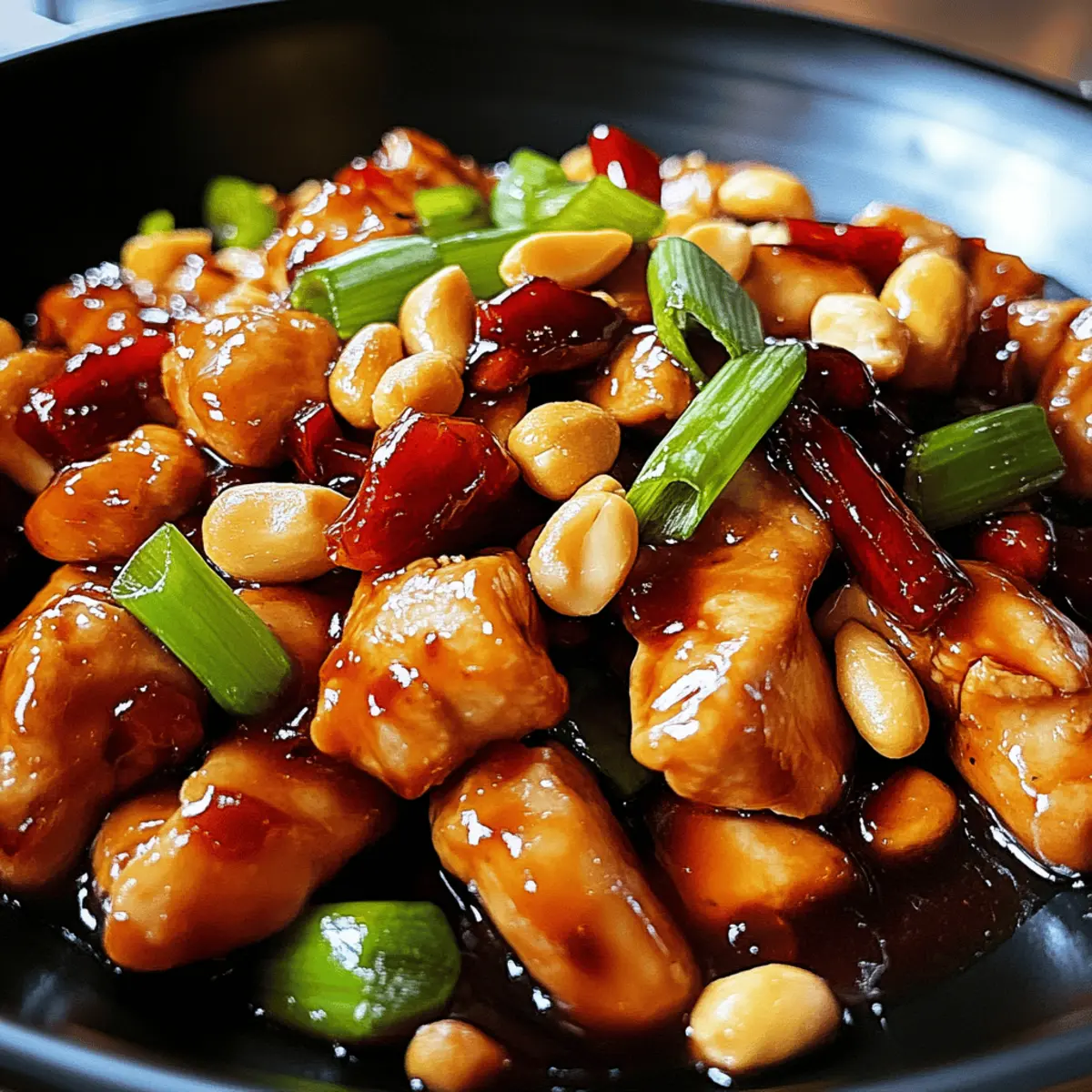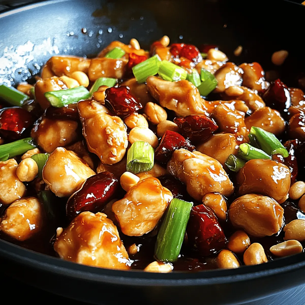 Es gibt nichts Schöneres, als den verlockenden Duft eines selbstgekochten Essens, der durch die Küche zieht. Wenn ich an klassische asiatische Gerichte denke, kommt mir sofort das Kung-Pao-Hühnchen in den Sinn. Diese köstliche Kombination aus zartem Hähnchen, knackigen Erdnüssen und einer perfekt ausgewogenen Sauce bringt nicht nur Vielfalt auf den Tisch, sondern ist auch super schnell zubereitet – in weniger als 30 Minuten! Ganz gleich, ob du ein schnelles Abendessen nach einem langen Arbeitstag suchst oder bei einem speziellen Asia-Abend beeindrucken möchtest, dieses Rezept ist der Schlüssel zu einem unvergesslichen Esserlebnis. Hast du schon einmal überlegt, dein eigenes Kung-Pao-Hühnchen zuzubereiten? Lass uns gemeinsam in die Welt der Gewürze und Aromen eintauchen! Warum ist Kung-Pao-Hühnchen so beliebt? Einfachheit: Die Zubereitung ist unkompliziert und erfordert lediglich grundlegende Kochkünste. Authentisch: Dieses Rezept bringt dir den unverwechselbaren Geschmack der asiatischen Küche direkt auf den Tisch. Vielseitig: Du kannst mit verschiedenen Zutaten experimentieren, sei es durch die Verwendung von Tofu oder variierenden Gemüsesorten. Schnell: In weniger als 30 Minuten bereit! Ideal für hektische Tage oder spontane Dinner-Einladungen. Crowd-Pleaser: Dieses Gericht überzeugt Familie und Freunde gleichermaßen – so gut, dass sie nach dem Rezept fragen werden! Wenn du nach weiteren leckeren Hähnchenrezepten suchst, schau dir auch das Hähnchen Longhorn Art oder die Hähnchen Nuggets Rezept an. Kung-Pao-Hühnchen Zutaten • Für alle, die in die aromatische Welt des Kung-Pao-Hühnchens eintauchen möchten, sind hier die Zutaten, um dieses köstliche Gericht nachzukochen! Für das Hähnchen Hähnchenbrust – Die Hauptproteinquelle; für Abwechslung kannst du auch Tofu oder Garnelen verwenden. Sojasauce – Liefern umami und Salzigkeit; verwende eine niedrige Natriumvariante für eine leichtere Option. Reisessig – Fügt Säure hinzu; du kannst auch Apfelessig verwenden, wenn der Reisessig nicht zur Hand ist. Zucker – Balanciert die Aromen mit Süße; Honig oder Agavendicksaft sind natürliche Alternativen. Für die Würze Sichuan-Pfefferkörner – Bieten einzigartige Würze und florale Noten; für einen milderen Geschmack kann schwarzer Pfeffer verwendet werden. Getrocknete Chili-Schoten – Sie sorgen für Schärfe; die Menge kann je nach gewünschtem Schärfegrad angepasst werden. Für den Crunch Erdnüsse – Fügen einen herrlichen Crunch hinzu; du kannst sie durch Cashews ersetzen oder ganz weglassen für eine nussfreie Variante. Frühlingszwiebeln – Sorgen für Frische und Farbe; die Verwendung von grünen Zwiebeln ist eine gute Substitution. Für die aromatische Basis Knoblauch – Verstärkt den Geschmack; frischer Knoblauch ist der beste; vermeide abgepackte Varianten für maximalen Geschmack. Für die Beilage Jasminreis – Eine empfohlene Beilage; du kannst Braunen Reis oder Quinoa für eine gesunde Alternative verwenden. Mit diesen Zutaten schaffst du ein authentisches Kung-Pao-Hühnchen, das sowohl einfach als auch köstlich ist! Schritt-für-Schritt-Anleitung für Kung-Pao-Hühnchen Step 1: Zutaten vorbereiten Schneide die Hähnchenbrust in mundgerechte Stücke und hacke den Knoblauch sowie die Frühlingszwiebeln fein. Stelle sicher, dass alle Zutaten bereit sind, bevor du mit dem Kochen beginnst. Ein gut vorbereiteter Arbeitsplatz erleichtert die Zubereitung des Kung-Pao-Hühnchens und sorgt dafür, dass die Aromen harmonisch zusammenfließen. Step 2: Hähnchen marinieren Vermische die Hähnchenstücke mit Sojasauce, Reisessig und Zucker in einer Schüssel. Lass das Ganze für etwa 10 Minuten marinieren, damit das Hähnchen die Aromen aufnehmen kann. Diese Marinade verleiht dem Kung-Pao-Hühnchen tieferen Geschmack und sorgt dafür, dass das Fleisch saftig bleibt. Step 3: Hähnchen anbraten Erhitze einen Wok oder eine große Pfanne bei hoher Hitze und füge etwas Öl hinzu. Gib das marinierte Hähnchen in die heiße Pfanne und brate es für etwa 5-7 Minuten an, bis es außen braun und durchgegart ist. Achte darauf, dass das Hähnchen nicht zu stark zusammengeballt ist, damit es gleichmäßig anbräunt. Step 4: Aromastoffe hinzufügen Füge den gehackten Knoblauch, die Frühlingszwiebeln und die getrockneten Chili-Schoten zum Hähnchen in der Pfanne hinzu. Rühre alles für etwa 1-2 Minuten um, bis der Knoblauch duftet und die Zwiebeln leicht weich sind. Achte darauf, dass der Knoblauch nicht anbrennt, um die Aromen optimal zur Geltung zu bringen. Step 5: Sauce kombinieren Gib die restliche Sojasauce, die Sichuan-Pfefferkörner und noch etwas Zucker in die Pfanne. Rühre gründlich um, sodass alle Zutaten gut vermischt sind und die Sauce gleichmäßig das Hähnchen umhüllt. Lass die Mischung bei mittlerer Hitze für weitere 2-3 Minuten köcheln, damit die Aromen sich gut verbinden. Step 6: Erdnüsse hinzufügen Füge nun die gerösteten Erdnüsse in die Pfanne und rühre alles nochmals gut durch. Lasse das Kung-Pao-Hühnchen für etwa 1 Minute auf der Hitze, damit die Erdnüsse warm werden und sich die Aromen weiter entfalten können. Die Erdnüsse sorgen für einen angenehmen Crunch und eine zusätzliche Geschmackstiefe. Step 7: Servieren Richte das fertige Kung-Pao-Hühnchen auf Tellern an und serviere es zusammen mit dampfendem Jasminreis. Die Kombination aus zartem Hähnchen, knackigen Erdnüssen und der aromatischen Sauce sorgt für ein unvergessliches Geschmackserlebnis. Genießen Sie Ihr selbstgemachtes Gericht in vollen Zügen! Kung-Pao-Hühnchen für die Wochenvorbereitung Das Kung-Pao-Hühnchen ist ideal für die Wochenvorbereitung – es spart nicht nur Zeit, sondern sorgt auch für köstliche Mahlzeiten an geschäftigen Abenden! Du kannst das Hähnchen bis zu 24 Stunden im Voraus marinieren, indem du es mit Sojasauce, Reisessig und Zucker vermischst; dies intensiviert den Geschmack und hält das Fleisch saftig. Auch das Zerk