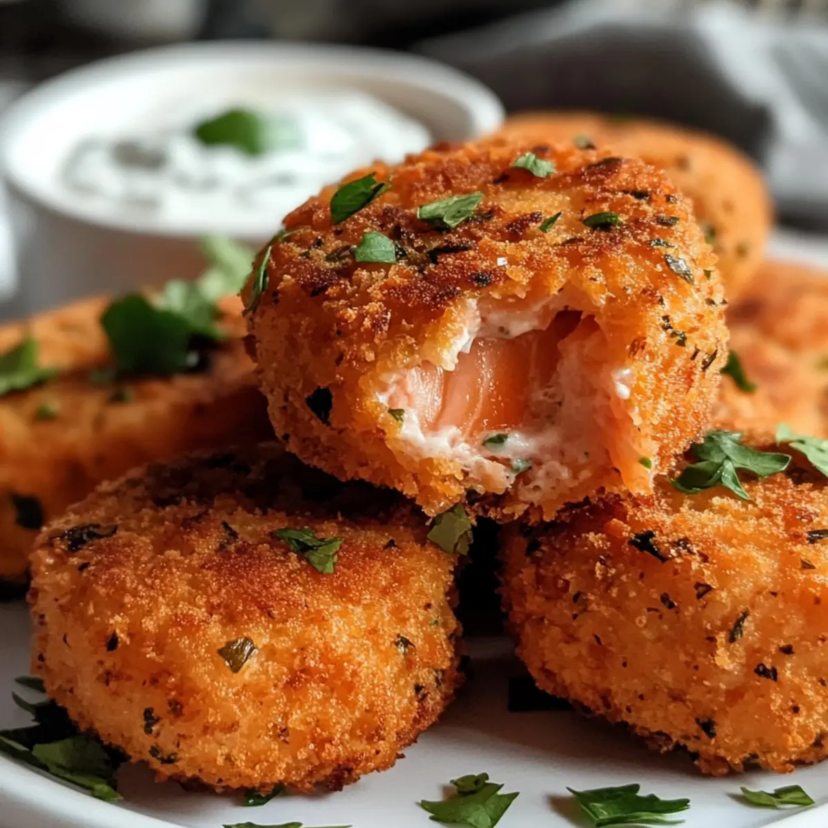 Der verführerische Duft von knusprigen Lachsfrikadellen weckt sofort meine Vorfreude auf ein köstliches Essen. Diese kleinen Häppchen sind nicht nur ein echter Genuss, sondern auch unglaublich einfach zuzubereiten. Egal, ob du frischen Lachs oder die praktische Dose wählst, in nur 15 Minuten zauberst du mit diesem Rezept ein beeindruckendes Fingerfood. Lachsfrikadellen sind perfekt als Appetizer geeignet und bieten die Freiheit, sie zu frittieren oder zu backen – so kannst du die gesündere Variante wählen, wenn du magst. Zudem sind sie ein Hit auf jeder Party und lassen sich hervorragend mit verschiedenen Dips kombinieren. Bist du bereit, deine Gäste mit diesen leckeren Bissen zu überraschen? Lass uns loslegen! Warum sind diese Lachsfrikadellen ein Muss? Einfachheit: Die Zubereitung ist kinderleicht und benötigt nur minimale Kochkenntnisse, sodass auch Anfänger im Handumdrehen schmackhafte Lachsfrikadellen zaubern können. Vielseitig: Egal ob gebacken oder frittiert, du kannst diese Häppchen nach deinem Geschmack anpassen und sogar die Zutaten variieren. Köstlicher Geschmack: Die Kombination aus frischem Lachs und aromatischen Gewürzen sorgt für einen intensiven Genuss, der jeden begeistert. Perfekte Portion: Ideal als Appetizer für Partys oder als leichtes Mittagessen – diese kleinen Bissen sind der Hit auf jedem Tisch. Zeitsparend: Mit einer Zubereitungszeit von nur 15 Minuten ist dieses Rezept der perfekte Rettungsanker für spontane Einladungen. Gesund genießen: Du kannst die Lachsfrikadellen gesund halten, indem du sie backst – eine köstliche Variante, die dennoch kalorienarm ist. Lachsfrikadellen Zutaten • Für die Frikadellen: Lachsflocken – Hochwertige Eiweißquelle, die die Hauptgeschmacksträger sind; für Bequemlichkeit kannst du auch Dosenlachs verwenden. Panko-Semmelbrösel – Sorgt für die knusprige Textur; ersetzbar durch normale Semmelbrösel, wenn nötig. Allzweckmehl – Gibt den Frikadellen Struktur; kann weggelassen werden, wenn du glutenfrei kochen möchtest. Knoblauchpulver – Verstärkt den Geschmack; frischer Knoblauch sorgt für ein intensiveres Aroma. Salz und schwarzer Pfeffer – Grundlegende Gewürze zur Geschmacksverstärkung; nach Geschmack würzen. Grüne und rote Paprika – Fügen Frische und Farbe hinzu; ersetzbar durch beliebige süße Paprika oder ganz weglassen. Ei – Dient als Bindemittel für die Mischung; ein Leinsamen-Ei kann als vegane Alternative verwendet werden. Mayonnaise – Macht die Mischung saftig und reichhaltig; griechischer Joghurt ist eine gesunde Variante. Worcestershire-Sauce – Führt umami und Tiefe ein; Sojasauce kann für eine vegane Version verwendet werden. Koriander – Frische Kräuter, die den Lachs perfekt ergänzen; Petersilie oder Dill können als Alternativen dienen. Avocadoöl – Bevorzugtes Öl zum Frittieren aufgrund seines hohen Rauchpunkts; auch Pflanzenöl oder Olivenöl sind geeignet. • Für die Dips (optional): Remoulade – Eine köstliche Ergänzung, die den Geschmack der Lachsfrikadellen unterstreicht. Zitronen-Aioli – Eine erfrischende Wahl, die perfekt zu den frischen Aromen der Frikadellen passt. Schritt-für-Schritt-Anleitung für Lachsfrikadellen Schritt 1: Mise en Place Bereite alle Zutaten vor und messe sie sorgfältig ab, um den Kochprozess zu optimieren. Lebe die Arbeitsfläche auf und sorge dafür, dass alle Utensilien wie Schüssel, Schneidebrett und Löffel bereitstehen. Diese Vorbereitung hilft dir, die Lachsfrikadellen effizient zuzubereiten und Zeit zu sparen. Schritt 2: Lachs zerkleinern Wenn du frischen Lachs verwendest, stelle sicher, dass er gekocht und abgekühlt ist. Zerkleinere den Lachs vorsichtig in kleine Stücke. Falls du Dosenlachs nutzt, lasse ihn abtropfen und zerteile ihn leicht mit einer Gabel. So erhältst du die perfekte Konsistenz für deine Lachsfrikadellen. Schritt 3: Trockene Zutaten vermengen In einer großen Schüssel mischst du die Panko-Semmelbrösel und das Allzweckmehl gründlich. Verquirle die Mischung mit einem Schneebesen, damit die Zutaten gleichmäßig verteilt sind und eine gute Basis für deine Lachsfrikadellen entsteht. Diese Kombination sorgt für den knusprigen Biss in den fertigen Häppchen. Schritt 4: Nasse Zutaten kombinieren In einer separaten Schüssel vermengst du die zerkleinerten Lachsflocken, die Mayonnaise, die Worcestershire-Sauce, die gehackten Paprika, die frischen Kräuter und das Ei. Rühre alles gut um, bis die Mischung gleichmäßig ist und alle Zutaten harmonisch zusammenfinden. Dies wird die saftige Füllung deiner Lachsfrikadellen. Schritt 5: Mischungen integrieren Füge die nassen Zutaten vorsichtig in die Schüssel mit den trockenen Zutaten und falte sie sanft zusammen, bis alles gerade vermischt ist. Achte darauf, die Mischung nicht zu überarbeiten, damit die Lachsfrikadellen eine luftige Textur behalten. Wenn die Mischung zu feucht ist, kannst du zusätzliche Semmelbrösel hinzufügen. Schritt 6: Kühlen (optional) Lasse die Mischung für etwa 15-20 Minuten im Kühlschrank ruhen. Dies hilft, sie zu festigen und erleichtert das Formen der Lachsfrikadellen. Durch das Kühlen verhinderst du auch, dass die Frikadellen beim Braten auseinanderfallen, was für ein besseres Endergebnis sorgt. Schritt 7: Frikadellen formen Befeuchte deine Hände leicht, um ein Kleben der Mischung zu verhindern, und forme gleichmäßige Kugeln oder Patties. Achte darauf, dass sie nicht zu groß sind, damit sie gleichmäßig garen und die Knusprigkeit erhalten bleibt. Das Formen eröffnet dir die Möglichkeit, deine eigenen Lachsfrikadellen individuell anzupassen. Schritt 8: Braten oder Backen Erhitze Öl in einer Pfanne auf 180°C (350°F), um die Lachsfrikadellen für 2-3 Minuten pro Seite zu braten, bis sie goldbraun und knusprig sind. Alternativ kannst du sie auch im vorgeheizten Ofen bei 200°C (400°F) für 20-24 Minuten backen, wobei du sie nach der Hälfte der Garzeit wendest. So erhältst du eine köstliche und ge