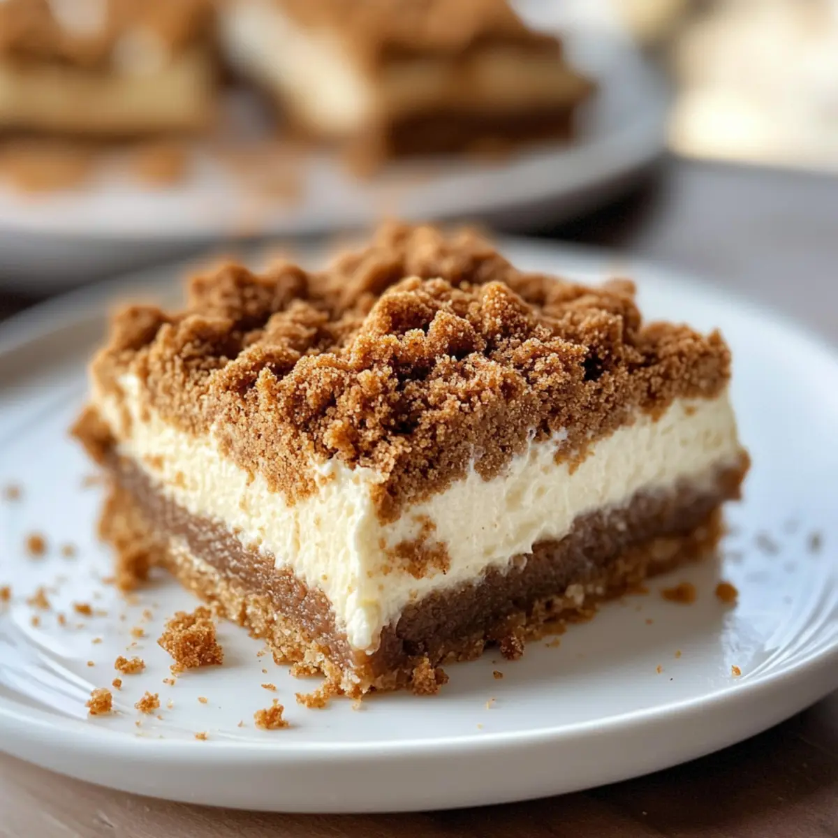Gerade als ich die ersten winterlichen Gewürze in der Luft schnüffelte, überkam mich die Vorfreude auf die festliche Jahreszeit. Diese Lebkuchen-Käsekuchen-Riegel sind genau das, was ich brauche, um meine Feiertagsstimmung aufzuhellen! Die Kombination aus würzigem Lebkuchenteig und einer samtigen Käsekuchenfüllung ist nicht nur ein Traum für alle Naschkatzen, sondern auch ein ganz einfacher Genuss, den man im Voraus zubereiten kann. So hast du mehr Zeit für deine Lieben bei all den festlichen Zusammenkünften. Und das Beste? Sie sind sogar freezer-friendly, sodass du jederzeit süße Überraschungen bereithalten kannst. Neugierig darauf, wie du diese festlichen Köstlichkeiten zu Hause zubereiten kannst? Lass uns gleich loslegen! Warum wirst du dieses Rezept lieben? Einfachheit: Die Zubereitung der Lebkuchen-Käsekuchen-Riegel ist kinderleicht und benötigt nur grundlegende Backfähigkeiten. Würzige Aromen: Die harmonische Kombination aus würzigen Lebkuchengewürzen und cremiger Käsekuchenfüllung wird deine Geschmacksnerven verzaubern. Vielseitigkeit: Diese Riegel sind perfekt für alle Feiertagsanlässe und lassen sich leicht anpassen – probiere doch mal einige Variation Ideen. Vorbereiten leicht gemacht: Du kannst sie im Voraus zubereiten und sogar einfrieren, was sie zu einem großartigen Snack für unerwartete Gäste macht. Köstliche Texturen: Der weiche, aber zugleich knackige Boden und die samtige Füllung ergeben ein perfektes Geschmackserlebnis in jedem Bissen. Publikumsliebling: Deine Freunde und Familie werden begeistert sein und dich als den Star des Desserttischs feiern! Lebkuchen-Käsekuchen-Riegel Zutaten • Die perfekten Zutaten für ein festliches Dessert! Für den Boden Ungesalzene Butter – verleiht den Riegeln einen reichen Geschmack und Feuchtigkeit; gesalzene Butter kann für eine interessante Geschmacksvariation verwendet werden. Zucker – sorgt für die Süße und Struktur; brauner Zucker bringt zusätzlich tiefere Aromen. Brauner Zucker – trägt zur Feuchtigkeit bei und bringt einen Hauch von Melasse-Geschmack; helle oder dunkle Variante ist austauschbar. Melasse – sorgt für die charakteristische Lebkuchennote; verwende am besten ungeschwefelte Melasse. Eier – wirken als Bindemittel und halten die Struktur; Zimmertemperatur hilft beim Mischen. Weißes Mehl – verleiht den Riegeln Struktur; kann durch eine glutenfreie Mischung ersetzt werden. Backpulver – hilft den Riegeln beim Heben; achte darauf, frisch zu sein. Backsoda – unterstützt die Bräunung durch seine Reaktion mit säurehaltigen Zutaten. Salz – balanciert die Süße und hebt den Gesamtgeschmack. Gemahlener Zimt, Ingwer, Muskatnuss, Nelken, Piment – diese Gewürze bringen die warmen Aromen der Feiertage; passe die Mengen nach deinem Geschmack an. Für die Käsekuchenfüllung Frischkäse – bildet die cremige Füllung; Vollfett sorgt für den besten Geschmack und die beste Textur. Zucker (für die Käsekuchenfüllung) – sorgt für die nötige Süße; passe die Menge an deinen persönlichen Vorlieben an. Mehl (für die Käsekuchenfüllung) – stabilisiert die Füllung; kann für eine cremigere Textur reduziert werden. Vanilleextrakt – hebt den Geschmack hervor; reiner Vanilleextrakt ist am besten. Hier hast du alles, was du benötigst, um diese köstlichen Lebkuchen-Käsekuchen-Riegel zuzubereiten! Schritt-für-Schritt-Anleitung für Lebkuchen-Käsekuchen-Riegel Step 1: Ofen vorheizen und Backform vorbereiten Heize deinen Backofen auf 175 °C vor (160 °C für Glasformen). Bereite eine 23×33 cm große Backform vor, indem du sie mit Backpapier auslegst und leicht mit einer Antihaftspray einfettest. Dies sorgt dafür, dass deine Lebkuchen-Käsekuchen-Riegel nach dem Backen leicht herausgenommen werden können und eine schöne Form behalten. Step 2: Teig für den Boden zubereiten In einer großen Schüssel schlage die ungesalzene Butter mit dem Kristallzucker cremig, bis die Mischung leicht und fluffig ist. Füge den braunen Zucker, die Melasse und die Eier hinzu und verrühre alles gut, bis eine homogene Masse entsteht. Die feuchten Zutaten verleihen den Lebkuchen-Käsekuchen-Riegel eine köstliche, saftige Textur. Step 3: Trockene Zutaten hinzufügen In einer separaten Schüssel mische das Mehl, Backpulver, Backnatron, Salz und die gemahlenen Gewürze (Zimt, Ingwer, Muskatnuss, Nelken und Piment). Gib die trockenen Zutaten nach und nach zu der feuchten Mischung und rühre, bis alles gerade so verbunden ist. Übermische den Teig nicht, damit die Riegel nicht zäh werden. Step 4: Teig in die Backform drücken Nimm 2 Tassen des Teigs ab und stelle sie beiseite. Drücke den Rest des Teigs gleichmäßig in den Boden der vorbereiteten Backform, sodass er eine gleichmäßige Schicht bildet. Das Drücken sorgt dafür, dass die Basis stabil und knusprig wird, während sie beim Backen aufsteigt. Step 5: Füllung für den Käsekuchen zubereiten In einer separaten Schüssel den Frischkäse mit einem Mixer glatt rühren. Füge den Zucker, das Mehl, die Eier und den Vanilleextrakt hinzu und vermische alles gut, bis eine cremige Füllung entsteht. Achte darauf, dass der Frischkäse Zimmertemperatur hat, um ein Klumpenbilden zu vermeiden und eine samtige Textur zu erhalten. Step 6: Käsekuchenfüllung auf den Boden gießen Gieße die vorbereitete Käsekuchenfüllung gleichmäßig über den Riegelsboden in der Backform und streiche die Oberseite glatt. Diese köstliche Schicht wird eine perfekte Balance zu dem würzigen Lebkuchenteig bieten, und das gleichmäßige Verteilen sorgt für eine schöne Optik nach dem Backen. Step 7: Teigkrümel hinzufügen Zerbrösele den beiseitegelegten Teig gleichmäßig über die Füllung. Dies bildet eine zusätzliche Textur und trägt zur köstlichen Verbindung der Aromen für die Lebkuchen-Käsekuchen-Riegel bei, sodass jeder Bissen sowohl die Käsekuchen- als auch die Lebkuchenschicht umfasst. Step 8: Backen Backe die Riegel im vorgeheizten Ofen 