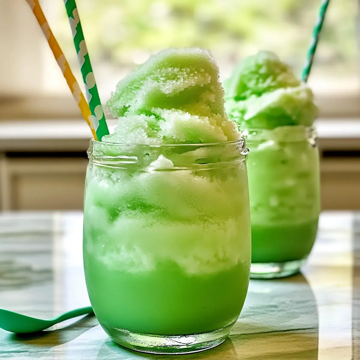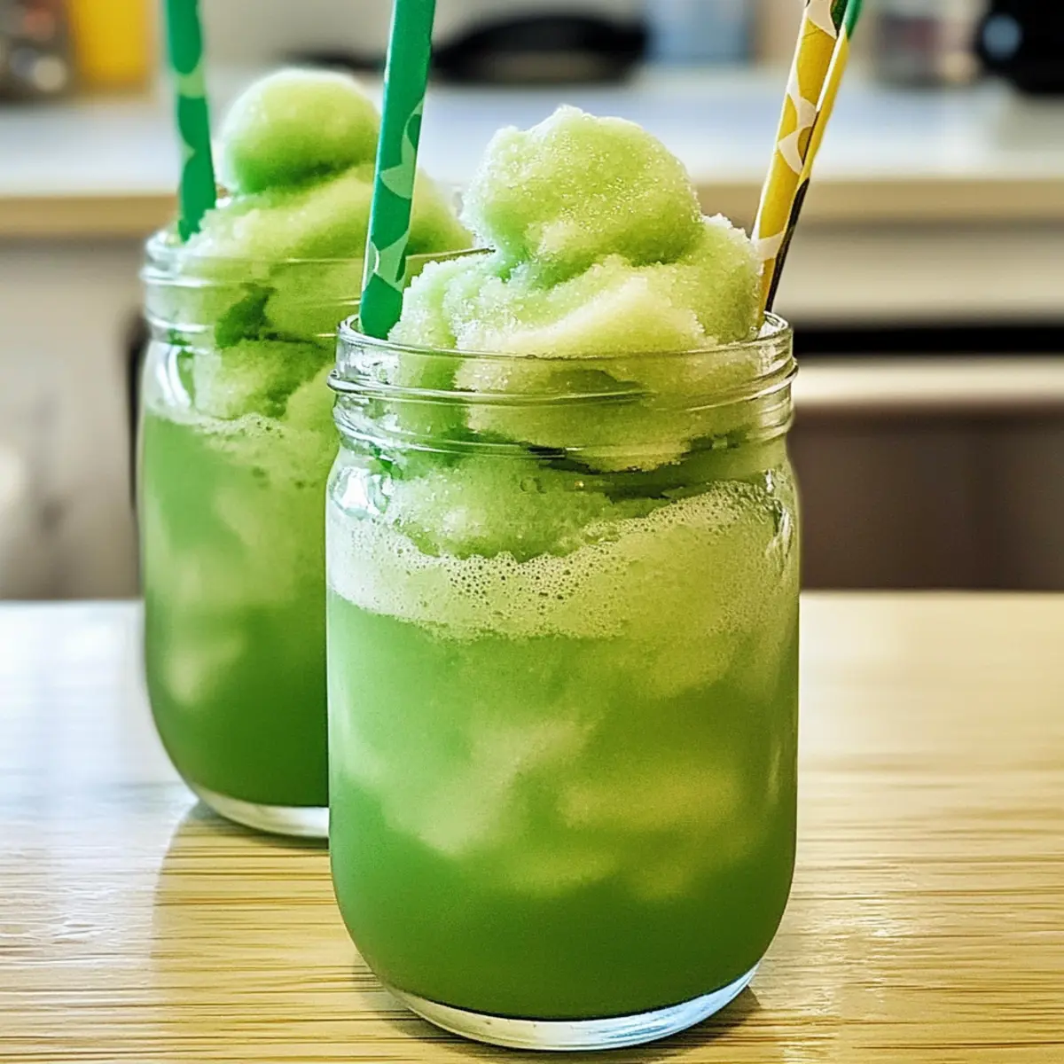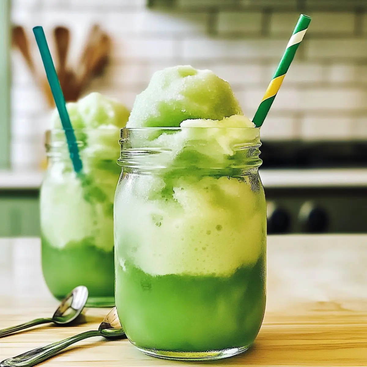 Um den festlichen Touch zu erhöhen, serviert die Limonade-Sorbet-Schorlen mit bunten Papierstrohhalmen und kleinen Löffeln. Diese kleinen Details machen das Trinken noch lustiger und vermitteln die fröhliche Atmosphäre des St. Patrick’s Day.