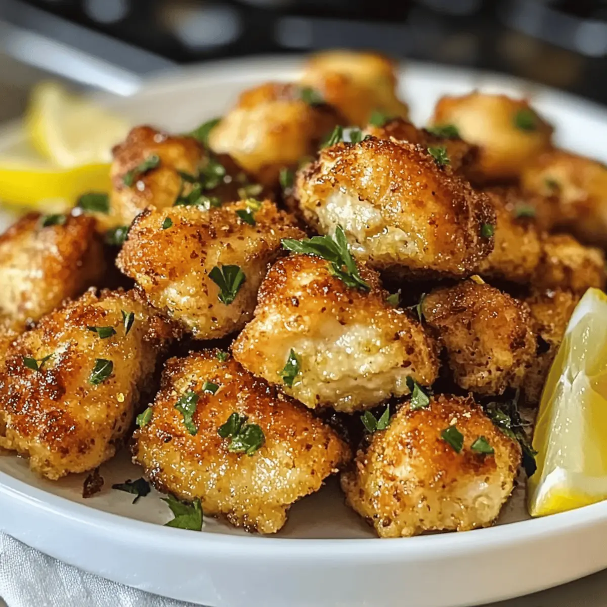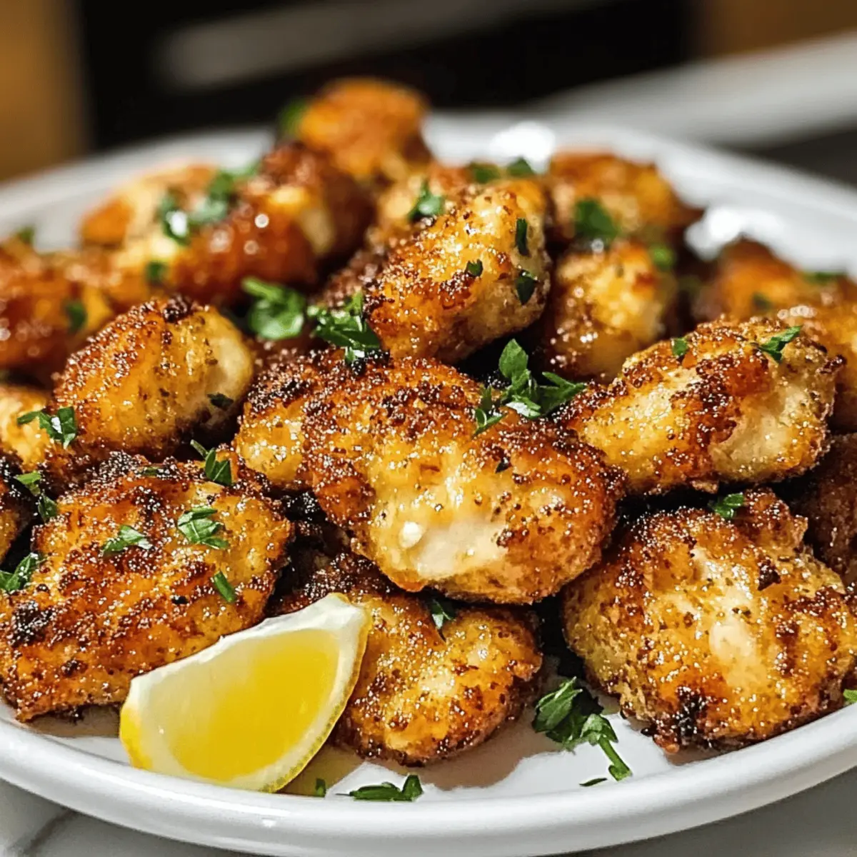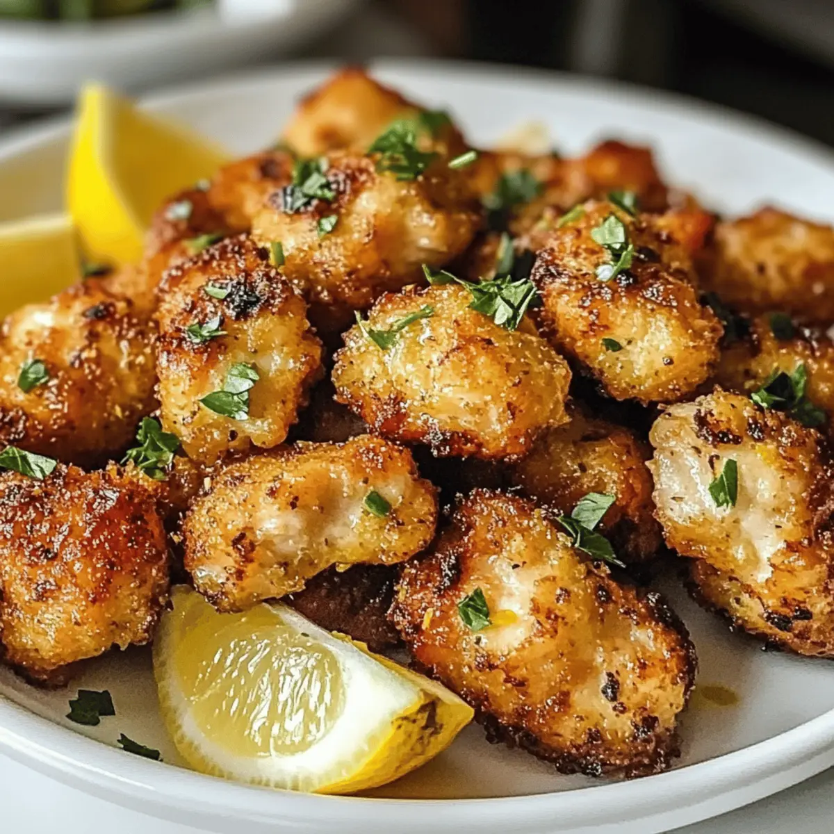 Die Zitronenfrische dieser kleinen Häppchen erinnert mich an einen sonnigen Frühlingstag, als die ersten Blumen zu blühen beginnen. Diese Luftfritteuse Zitronen-Hühnchen Stücke sind nicht nur ein Genuss für den Gaumen, sondern auch eine einfache Möglichkeit, gesunde und knusprige Mahlzeiten für die Familie zuzubereiten. Mit minimalem Aufwand sind sie perfekt für hektische Wochentage oder als beliebter Snack beim nächsten Treffen mit Freunden. Du wirst die saftigen Hähnchenstücke lieben, die in einer würzigen Marinade aus frischem Zitronensaft und aromatischen Gewürzen baden, und während sie in der Luftfritteuse goldbraun werden, wird der köstliche Duft auch deine Liebsten an die Küchentür ziehen. Bist du bereit, deine Küche mit einem frischen, gesunden Rezept zu beleben? Lass uns loslegen! Warum sind Luftfritteuse Zitronen-Hühnchen Stücke so beliebt? Einfachheit: Mit nur wenigen Zutaten und minimalen Vorbereitungen ist dieses Rezept ideal für alle, die ein schnelles und gesundes Abendessen zubereiten möchten. Knuspriger Genuss: Die Luftfritteuse sorgt dafür, dass die Hähnchenstücke außen perfekt knusprig und innen saftig bleiben. Zitronenfrische: Der frische Geschmack von Zitrone gibt jedem Bissen eine leichte, erfrischende Note, die du lieben wirst. Vielseitig: Diese Hähnchenstücke sind nicht nur ein tolles Hauptgericht, sondern auch ein schmackhafter Snack oder eine Partybeilage. Familienfreundlich: Mit einem köstlichen Aroma werden selbst die wählerischsten Esser in deiner Familie begeistert sein – perfekt mit einem frischen Salat oder über Reis! Belohne dich mit einem einfachen Rezept, das du zusammen mit der ganzen Familie genießen kannst, und schau dir auch unsere Tipps für das perfekte Grillen an! Luftfritteuse Zitronen-Hühnchen Stücke Zutaten Für die Marinade: Zitronensaft – Frisch gepresst sorgt er für einen intensiven Geschmack; Bottled Juice kann verwendet werden, verschenkt aber die Frische. Olivenöl – Bringt Feuchtigkeit und hilft, die Knusprigkeit zu erreichen; Avocadoöl ist eine gesunde Alternative. Knoblauchpulver – Fügt eine herzhafte Tiefe hinzu; frischer Knoblauch kann ebenfalls verwendet werden, wenn du einen intensiveren Geschmack magst. Zwiebelpulver – Verstärkt die Geschmacksnuancen; kann durch Schalottenpulver ersetzt werden. Salz & Pfeffer – Grundlegende Gewürze, um das Aroma abzurunden; nach Geschmack anpassen. Für das Hähnchen: Hähnchenbrust – Die Hauptproteinquelle; verwende aufgetautes Hähnchen für eine optimale Knusprigkeit. Garnitur: Frische Petersilie – Als optionale Garnitur bringt sie Frische und Farbe auf den Teller. Mit diesen Zutaten zauberst du die perfekten Luftfritteuse Zitronen-Hühnchen Stücke! Schritt-f ür Schritt Anleitungen für Luftfritteuse Zitronen-Hühnchen Stücke Step 1: Hähnchen vorbereiten Schneide die Hähnchenbrust in mundgerechte Stücke. Achte darauf, gleichmäßige Stücke zu schneiden, damit sie gleichmäßig garen und schön knusprig werden. Lege die geschnittenen Hähnchenstücke in eine große Schüssel, während du die Marinade vorbereitest. Step 2: Marinade zubereiten In einer separaten Schüssel vermische den frisch gepressten Zitronensaft, Olivenöl, Knoblauchpulver, Zwiebelpulver, Salz und Pfeffer. Rühre alles gut um, bis sich die Zutaten vermischt haben. Diese würzige Marinade wird den Luftfritteuse Zitronen-Hühnchen Stücke einen herrlichen Geschmack verleihen. Step 3: Hähnchen marinieren Gieße die Marinade über die Hähnchenstücke in der Schüssel und vermische alles gründlich, sodass jedes Stück gut eingekleidet ist. Decke die Schüssel ab und lasse das Hähnchen 30 Minuten bis zu 2 Stunden im Kühlschrank marinieren. So können die Aromen tief ins Fleisch eindringen. Step 4: Luftfritteuse vorheizen Heize die Luftfritteuse auf 200°C (400°F) vor, während das Hähnchen mariniert. Dies sorgt dafür, dass die Hähnchenstücke beim Garen sofort mit der richtigen Temperatur in Kontakt kommen und eine knusprige Außenschicht bilden. Step 5: Hähnchen in den Fritteusenkorb legen Nehme die marinierten Hähnchenstücke aus der Schüssel und platziere sie in einer einzigen Schicht im Korb der Luftfritteuse. Achte darauf, die Stücke nicht zu überladen, damit die heiße Luft frei zirkulieren kann und alles gleichmäßig gart. Step 6: Hähnchen garen Koche die Hähnchenstücke in der Luftfritteuse für 10 bis 12 Minuten. Wende die Stücke nach der Hälfte der Garzeit, um sicherzustellen, dass sie von allen Seiten gleichmäßig knusprig werden. Die Hähnchenstücke sollten goldbraun und durchgegart sein. Step 7: Gargrad überprüfen Um sicherzustellen, dass die Luftfritteuse Zitronen-Hühnchen Stücke durchgegart sind, überprüfe die Innentemperatur mit einem Fleischthermometer. Die Hähnchenstücke sollten eine Mindesttemperatur von 75°C (165°F) erreichen, um sicher zu sein, dass sie vollkommen gar sind. Step 8: Ruhen lassen und servieren Lass die Hähnchenstücke nach dem Garen kurz ruhen, damit sich die Säfte setzen können. Optional kannst du sie mit frischer Petersilie und Zitronenscheiben garnieren, bevor du sie servierst. Diese Hähnchenstücke sind der perfekte, gesunde Snack oder Hauptgericht, das deine Familie sicher lieben wird! Tipps für die besten Luftfritteuse Zitronen-Hühnchen Stücke Marinade-Zeit: Nicht über Nacht marinieren: Maximiere die Marinierzeit auf 2 Stunden, um eine übermäßige Weichheit zu vermeiden und die perfekte Textur zu erreichen. Hähnchen vorbereiten: Verwende aufgetautes Hähnchen: Gefrorenes Hähnchen sollte vollständig aufgetaut sein, um gleichmäßiges Garen und optimale Knusprigkeit zu gewährleisten. Luftzirkulation: Überfüllung vermeiden: Achte darauf, den Korb der Luftfritteuse nicht zu überladen. Dadurch kann die heiße Luft zirkulieren und sorgt für die besten, knusprigen Luftfritteuse Zitronen-Hühnchen Stücke. Garzeit anpassen: Überwachung ist wichtig: Überprüfe die Hähnchenstücke beim G