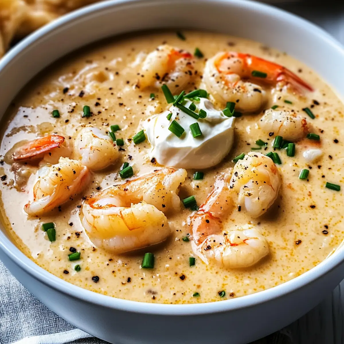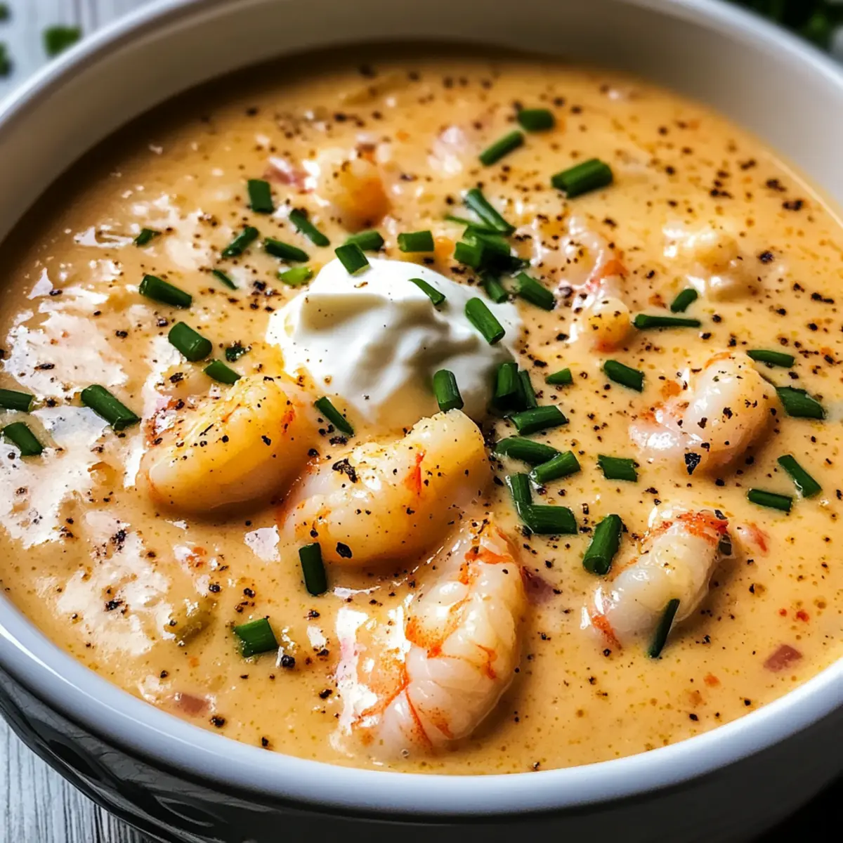 Während ich am Herd stehe und die Aromen von Butter und frischem Gemüse in der Luft schweben, kann ich nicht umhin, mich an die vielen wunderbaren Abendessen zu erinnern, die ich mit meinen Liebsten geteilt habe. Heute lade ich euch ein, eine exquisite Meeresfrüchtebisque zuzubereiten, die mit saftigen Garnelen und zartem Krabbenfleisch begeistert. Diese cremige Köstlichkeit ist nicht nur ein Fest für den Gaumen, sondern auch im Handumdrehen zubereitet – in nur 30 Minuten! Genießt den luxuriösen Geschmack, der euch ein Gefühl von gehobener Küche vermittelt, ohne dass ihr euer Zuhause verlassen müsst. Wer könnte da widerstehen? Bereit, den Kochlöffel zu schwingen und diese köstliche Reise zu beginnen? Warum ist diese Meeresfrüchtebisque ein Muss? Einfachheit: Die Zubereitung ist unkompliziert und erfordert nur grundlegende Kochkenntnisse, sodass ihr in 30 Minuten ein Restaurantniveau erreicht. Reichhaltiger Geschmack: Der harmonische Mix aus frischen Meeresfrüchten und aromatischen Gewürzen verleiht der Bisque eine unverwechselbare Tiefe. Vielseitige Optionen: Ihr könnt die Meeresfrüchte nach Belieben variieren – probiert doch einmal Hummer oder Jakobsmuscheln! Begeisterung garantiert: Diese Bisque ist ein Hit bei Familie und Freunden und wird mit Sicherheit die Herzen Ihrer Gäste erobern. Perfekte Konsistenz: Die seidige, cremige Textur macht jeden Löffel zu einem Genuss. Es ist, als würde man einen Hauch von Luxus auf der Zunge spüren! Entdeckt auch unsere Tipps zur Lagerung und Zubereitung im Voraus, um das Kochen noch einfacher und noch genussvoller zu gestalten. Meeresfrüchtebisque Zutaten • Diese köstliche Meeresfrüchtebisque vereint frische Zutaten für ein unvergleichliches Geschmackserlebnis. Für die Basis Ungesalzene Butter – Kreiert eine reichhaltige Basis und fügt Geschmack hinzu. Verwenden Sie gesalzene Butter als Ersatz, passen Sie jedoch die Salzmenge im Rezept an. Mittlere Süßzwiebel – Fein gehackt für Süße und aromatische Tiefe. Kann durch Schalotten für einen milderen Geschmack ersetzt werden. Selleriestangen – Fein gehackt für Geschmack und Textur; trägt zur aromatischen Basis bei. Kann weggelassen werden, wenn nicht verfügbar. Knoblauchzehen – Fein gehackt, um den Geschmack und das Aroma zu verstärken. Frischer Knoblauch ist empfohlen; Pulver kann im Notfall verwendet werden. Für die Creme Allzweckmehl – Verdickt die Bisque. Verwenden Sie glutenfreies Mehl für eine glutenfreie Option. Fischfond – Schafft eine fundierte Meeresfrüchtebasis; Muschelsaft gemischt mit Hühnerbrühe kann im Falle von Mangel an Fischfond verwendet werden. Vollmilch – Das Erwärmen der Milch hilft, Klumpen zu vermeiden; kann durch Magermilch für eine leichtere Version ersetzt werden. Schlagrahm – Sorgt für ein luxuriöses Mundgefühl. Für eine leichtere Option können Sie halb und halb verwenden. Tomatenmark – Fügt Tiefe und Reichhaltigkeit hinzu. Kann durch frische, gehackte Tomaten ersetzt werden, wenn gewünscht. Lorbeerblätter – Verleihen einen subtlen erdigen Geschmack; sind für den authentischen Geschmack unerlässlich. Für die Meeresfrüchte Riesen-Garnelen – Die Hauptzutat, die eine süße Meeresfrüchte-Essenz hinzufügt. Kann durch zusätzliches Krabbenfleisch oder gekochten Hummer ersetzt werden. Krabbenfleisch – Verleiht Süße und Textur; stellen Sie sicher, dass es frei von Schalen ist. Fester, weißer Fisch kann als Alternative verwendet werden. Für das Aroma Trockener Sherry – Ein Spritzer verstärkt die Geschmacksvielfalt; trockener Weißwein ist eine geeignete Substitution. Old Bay Gewürz – Fügt eine charakteristische Meeresfrüchte-Note hinzu; kann durch eine Mischung aus Paprika und Cayennepfeffer ersetzt werden. Weißer Pfeffer – Bietet milde Schärfe, ohne die Farbe zu verändern. Schwarzer Pfeffer kann ersetzen werden, wenn weiß nicht verfügbar ist. Salz – Nach Geschmack anpassen. Frische Schnittlauch/Estragon – Fein gehackt zur Garnitur; bringt Frische. Kann mit Petersilie ersetzt werden. Crème Fraîche (optional) – Für eine luxuriöse Garnierung; kann durch Sauerrahm ersetzt werden. Schritt-für-Schritt-Anleitung für Meeresfrüchtebisque Step 1: Butter schmelzen In einem großen Dutch Oven die ungesalzene Butter bei mittlerer Hitze schmelzen. Achten Sie darauf, dass die Butter geschmolzen ist und leicht schäumt, was etwa 2 Minuten dauert. Diese aromatische Basis wird die Grundlage unserer cremigen Meeresfrüchtebisque bilden. Step 2: Zwiebeln und Sellerie hinzufügen Fügen Sie die fein gehackte mittlere Süßzwiebel und die Selleriestangen hinzu. Kochen Sie die Mischung unter häufigem Rühren, bis die Zwiebeln weich und leicht transparent sind, was etwa 5 Minuten benötigt. Diese Aromen werden dazu beitragen, die perfekte Tiefe in Ihrer Bisque zu erzeugen. Step 3: Knoblauch einrühren Rühren Sie den gehackten Knoblauch in das Gemüse und lassen Sie ihn etwa 1 Minute lang mitbraten, bis er duftet. Achten Sie darauf, nicht zu lange zu kochen, da der Knoblauch sonst bitter werden könnte. Dies wird den Geschmack der Meeresfrüchtebisque intensivieren. Step 4: Mehl hinzufügen Streuen Sie das Allzweckmehl gleichmäßig über das Gemüse und rühren Sie konstant für etwa 2 Minuten. Diese Technik wird dazu dienen, eine klumpenfreie Basis zu schaffen und die Bisque gut zu binden. Sie werden feststellen, dass die Masse leicht dick wird. Step 5: Flüssigkeiten einrühren Gießen Sie langsam die erwärmte Vollmilch und den Fischfond ein, während Sie kontinuierlich rühren. Dies hilft, Klumpen zu vermeiden und schafft eine cremige Konsistenz, die für unsere Meeresfrüchtebisque entscheidend ist. Kochen Sie diese Mischung bei mittlerer Hitze für etwa 5 Minuten, bis sie zu köcheln beginnt. Step 6: Tomatenmark und Gewürze hinzufügen Rühren Sie das Tomatenmark, die Lorbeerblätter und das Old Bay Gewürz in die Mischung. Lassen Sie die Bisque für weitere 5 Minuten sanft köch