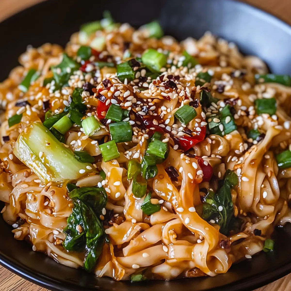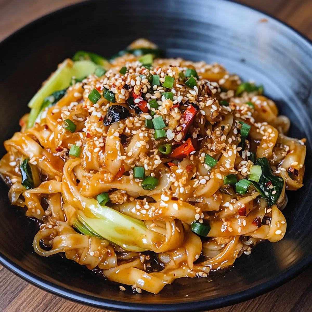 Eines Abends, als ich durch die Straßen einer pulsierenden Stadt schlenderte, fiel mir der verführerische Duft von Gewürzen und frisch gekochten Nudeln auf. Die Idee kam mir, ein schnelles, aber zugleich geschmackvolles Gericht zuzubereiten: Miso-Chili-Nudeln. Diese Kombination aus herzhaftem Miso und einer feurigen Note Chiliöl zaubert in wenigen Minuten ein asiatisches Gericht auf den Tisch, das sowohl Anfänger als auch erfahrene Köche begeistert. Die perfekte Lösung für hektische Wochentage, das Rezept bietet nicht nur eine schmackhafte Mahlzeit, sondern ist auch vielseitig und kann problemlos glutenfrei und vegan zubereitet werden. Wer kann da schon widerstehen? Lass uns gemeinsam in die Welt der Miso-Chili-Nudeln eintauchen und entdecken, wie einfach und köstlich eine schnelle Mahlzeit sein kann! Warum wirst du dieses Rezept lieben? Schnelligkeit: Miso-Chili-Nudeln sind in wenigen Minuten fertig, ideal für stressige Wochentage. Herzhafter Geschmack: Die harmonische Kombination aus umami-reichem Miso und der Schärfe des Chiliöls sorgt für ein unvergessliches Geschmackserlebnis. Vielseitigkeit: Ob als vegane Variante oder mit deinem Lieblingsprotein – du kannst das Rezept nach deinem Geschmack anpassen. Frische Zutaten: Nutze saisonales Gemüse, um die Frische und Farbe deines Gerichts zu steigern. Um deine Küchenfähigkeiten zu erweitern, schaue dir auch unsere anderen schnellen Rezepte an, die perfekt für die ganze Familie sind. Einfachheit: Selbst Anfänger werden mit diesem Gericht mühelos glänzen und ihrer Kreativität freien Lauf lassen – ganz ohne lange Vorbereitung! Miso-Chili-Nudeln Zutaten • Ein schnelles und schmackhaftes Zusammenspiel der Aromen! Für die Sauce Miso-Paste – verleiht dem Gericht einen reichen Umami-Geschmack; wähle weiße für milderen oder rote für intensiven Geschmack. Chiliöl – sorgt für die nötige Schärfe; dosiere vorsichtig, um das Gericht nicht zu überpowern. Für die Nudeln Udon-Nudeln – bieten eine köstliche, zähe Textur; auch Reisnudeln oder Soba sind hervorragende Alternativen. Für das Gemüse Bok Choy – fügt Frische und Knackigkeit hinzu; saisonale Gemüse sind ebenfalls eine tolle Wahl. Karotten – bringen Farbe und süßen Geschmack ins Spiel; achte darauf, sie dünn zu schneiden für eine schnellere Garzeit. Rote Paprika – verleihen dem Gericht eine schöne Süße und zusätzlichen Crunch; perfekt für einen Hauch von Frische. Für das Protein Tofu – eine großartige, pflanzliche Eiweißquelle; ersetze ihn nach Belieben durch deine bevorzugte Proteinquelle. Sautéierte Pilze – bringen einen herzhaften Geschmack und eine tolle Textur; auch lecker in Kombination mit Gemüse. Entdecke die Aromen und genieße die Miso-Chili-Nudeln, die sich schnell zubereiten lassen und in jedem Bissen Freude bereiten! Schritt-für-Schritt-Anleitung für Miso-Chili-Nudeln Schritt 1: Sauce zubereiten In einer Schüssel Miso-Paste und Chiliöl vermischen. Achte darauf, dass die Sauce gut vermengt ist, bis eine dickflüssige Konsistenz entsteht. Je nach persönlichem Geschmack kannst du die Schärfe des Chiliöls anpassen. Nach der Zubereitung sollte die Farbe der Sauce lebhaft und einladend sein. Schritt 2: Nudeln kochen Setze einen Topf mit ausreichend Wasser auf den Herd und bringe es zum Kochen. Sobald das Wasser sprudelt, die Udon-Nudeln hinzufügen und gemäß den Packungsanweisungen etwa 5-7 Minuten kochen, bis sie al dente sind. Achte darauf, gelegentlich umzurühren, damit die Nudeln nicht zusammenkleben, und anschließend gut abtropfen lassen. Schritt 3: Nudeln mit Sauce kombinieren In einer großen Pfanne bei mittlerer Hitze etwas Öl erhitzen. Die abgetropften Nudeln in die Pfanne geben und gleichmäßig mit der vorbereiteten Miso-Sauce vermengen. Gut umrühren, sodass alle Nudeln eine glänzende Schicht Sauce erhalten. Dies sollte etwa 2-3 Minuten dauern, damit sich die Aromen gut verbinden. Schritt 4: Gemüse hinzufügen Füge nun dein gewähltes Gemüse, wie Bok Choy, Karotten und rote Paprika hinzu. Rühre alles gut um, um das Gemüse gleichmäßig zu verteilen, und lasse es etwa 2-3 Minuten mit den Nudeln erhitzen. Das Gemüse sollte weich, aber noch bissfest sein, um eine ansprechende Textur zu bewahren. Schritt 5: Servieren Die Miso-Chili-Nudeln auf Teller anrichten und nach Belieben mit gerösteten Sesamsamen und frischen Kräutern garnieren. Achte darauf, dass die Farbspielereien der Zutaten sichtbar sind, um ein einladendes Gericht zu präsentieren. Sofort servieren und genießen! Expertentipps für Miso-Chili-Nudeln Qualität der Zutaten: Verwende hochwertige Miso-Paste für ein besseres Aroma und einen ausgewogenen Geschmack. Billige Varianten können den Genuss beeinträchtigen. Die richtige Schärfe: Beginne mit einer kleinen Menge Chiliöl und steigere die Menge nach Geschmack, um das Gericht nicht zu überwürzen. Gemüsewahl: Nutze frisches, saisonales Gemüse für mehr Geschmack und Nährstoffe. Vermeide übergekochte Zutaten, die ihre Textur verlieren. Nudeln al dente: Achte darauf, die Nudeln nur bis zur al dente Konsistenz zu kochen, um ein angenehmes Bissgefühl zu gewährleisten und ein Verkleben zu verhindern. Schnelle Zubereitung: Bereite die Sauce im Voraus vor und bewahre sie im Kühlschrank auf. So sparst du Zeit, wenn du die Miso-Chili-Nudeln zubereitest. Miso-Chili-Nudeln Variationen Kreativität ist der Schlüssel zur Anpassung! Lass deiner Fantasie freien Lauf und kreiere einzigartige Geschmackserlebnisse. Glutenfrei: Verwende glutenfreie Reisnudeln oder Zucchini-Nudeln für eine wunderbare, glutenfreie Variante. Vegan: Stelle sicher, dass alle Zutaten pflanzlich sind, um eine köstliche vegane Mahlzeit zu genießen. Nudel-Alternativen: Spaghetti oder Shirataki-Nudeln sind tolle Ersatzoptionen, die deine Lieblingsnudeln ersetzen können. Proteinreiche Option: Füge gebratene Garnelen oder Shredded Chicken hinzu, um das Gericht proteinreicher zu gestalten. Scharfe Note: Experi