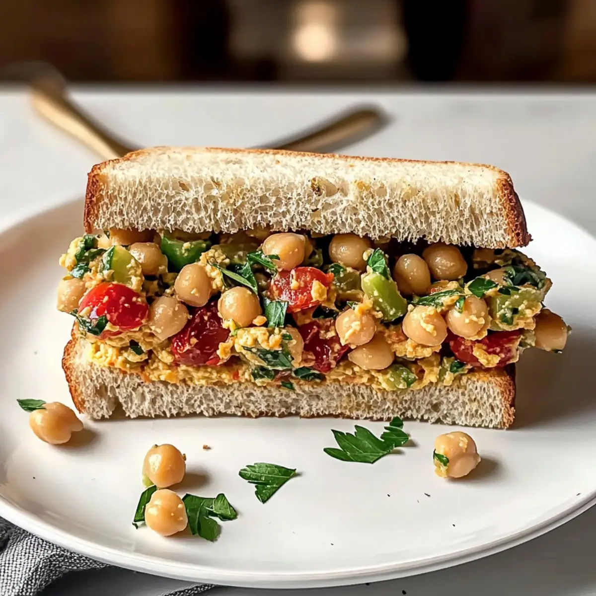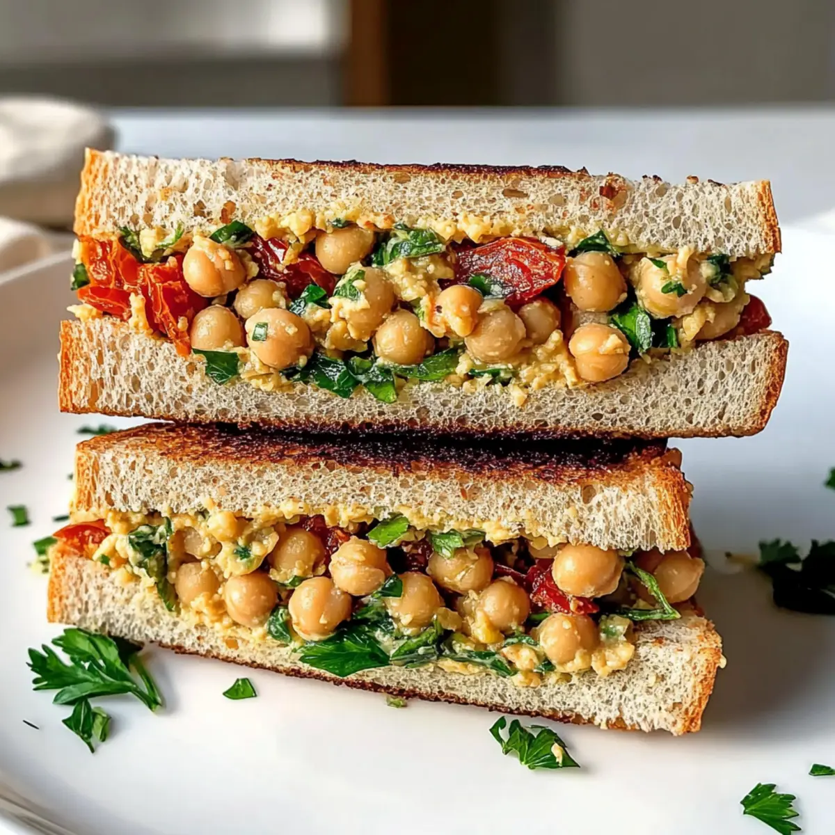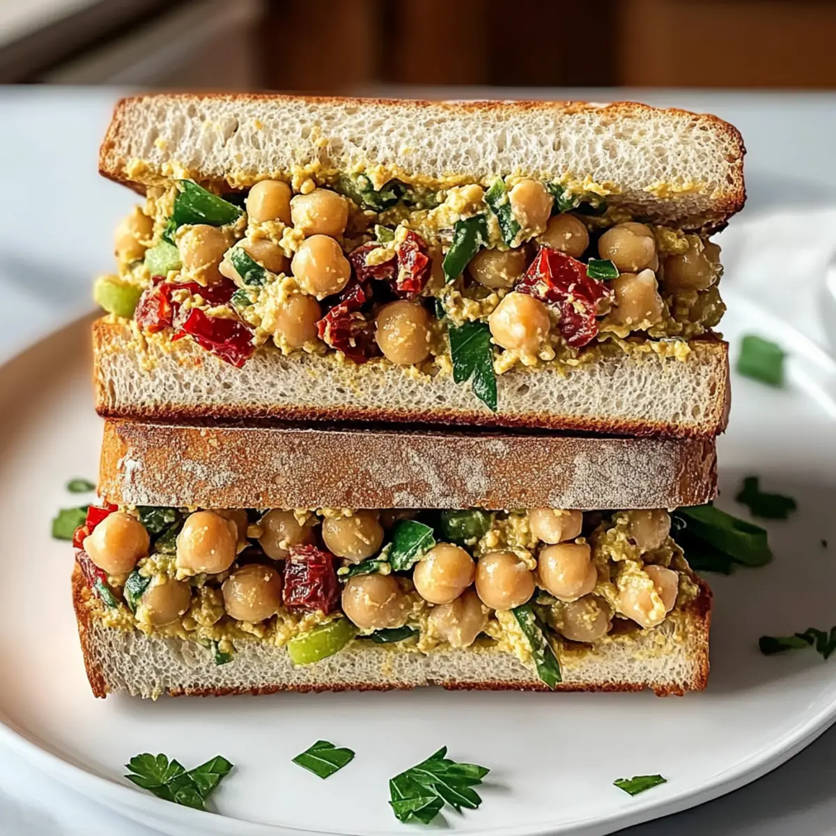 Wenn der Duft frischer Kräuter und die knackige Textur von Gemüse aufeinandertreffen, weiß ich, dass ein außergewöhnliches Rezept in der Luft liegt. Mein Mittelmeer Kichererbsensalat Sandwich ist nicht nur ein Hochgenuss für die Geschmacksknospen, sondern auch eine proteinreiche, vegetarische Option für den hektischen Alltag. In nur wenigen Minuten zubereitet, ist es perfekt für ein schnelles Mittagessen und bleibt im Kühlschrank bis zur nächsten Mahlzeit frisch. Die Kombination aus cremigen Kichererbsen, buntem Gemüse und aromatischen Gewürzen macht jedes Biss zu einem kleinen Fest der Aromen. Seid ihr bereit, in die Welt der mediterranen Küche einzutauchen und euer nächstes Lieblingssandwich zu entdecken? Warum ist dieses Sandwich so besonders? Vielfältige Aromen: Dieses Mittelmeer Kichererbsensalat Sandwich vereint die Frische von Kräutern und die Süße von Gemüse in jeder Schicht. Schnelle Zubereitung: In nur wenigen Minuten ist dieses proteinreiche, vegetarische Sandwich für euren hektischen Alltag bereit. Perfekt für Meal Prep: Ideal zum Vorausmachen, der Salat schmeckt sogar am nächsten Tag noch besser! Gesunde Zutaten: Mit Kichererbsen und frischem Gemüse versorgt es euch nachhaltig mit Energie. Einfache Anpassungen: Variiert die Zutaten nach Belieben – fügt Gurken hinzu oder wechselt das Brot, um neue Geschmäcker zu entdecken! Probiert auch mal unseren Mediterraner Orzo Salat oder die Erdbeer Cheesecake Sandwiches für abwechslungsreiche Mahlzeiten! Mittelmeer Kichererbsensalat Sandwich Zutaten Für die Kichererbsenmasse • Kichererbsen – Die Hauptquelle für Protein; Verwendung von Dosenkichererbsen für Bequemlichkeit; gut abtropfen und abspülen. • Paprika – Bietet Süße und Crunch; jede Farbe ist geeignet, klein würfeln. • Frühlingszwiebeln – Fügt Zwiebelgeschmack und Frische hinzu; fein hacken. • Getrocknete Tomaten – Bringt eine würzige Note; fein hacken für gleichmäßige Verteilung. • Oliven – Schafft eine salzige Brise; wählt schwarze oder grüne Oliven. • Datteln – Verleiht subtile Süße; klein hacken für gleichmäßige Verteilung. • Kräuter (Petersilie, Minze) – Frischer Geschmack und Helligkeit; grob hacken. • Gewürze (Oregano, Koriander, Kreuzkümmel, Zwiebelpulver, schwarzer Pfeffer, Zaatar, Chiliflocken, Salz) – Für komplexen Geschmack; über die Kichererbsen streuen, bevor sie gematscht werden. • Tahini – Dient als cremige Dressing-Basis, vorzugsweise glatt und flüssig; mit heißem Wasser nach Bedarf verdünnen. • Zitronensaft – Bringt frische und Helligkeit; frisch gepresster Zitronensaft wird bevorzugt. Für das Sandwich • Brot (geröstet) – Unterstützt die Füllung und verhindert Nässe; wählt ein stabiles Brot. • Blattgemüse – Optional für das Topping; bringt Frische. Genießt mit diesem Mittelmeer Kichererbsensalat Sandwich ein schnelles und einfaches Gericht, das auch für die Mahlzeitenplanung perfekt geeignet ist! Schritt-für-Schritt-Anleitung für das Mittelmeer Kichererbsensalat Sandwich Step 1: Zutaten vorbereiten Beginne damit, die Paprika fein zu würfeln und die Frühlingszwiebeln sowie die getrockneten Tomaten und Datteln klein zu hacken. Die frischen Kräuter wie Petersilie und Minze grob schneiden. Achte darauf, dass alles gleichmäßig vorbereitet ist, damit die Aromen sich später gut vermischen können und das Mittelmeer Kichererbsensalat Sandwich lecker wird. Step 2: Brot toasten Erhitze einen Toaster oder eine Pfanne auf mittlerer Hitze und toaste die Brotscheiben, bis sie goldbraun und knusprig sind. Dies dauert etwa 3-5 Minuten. Richtig getoastetes Brot sorgt dafür, dass das Sandwich stabil bleibt und nicht durchweicht. Die knusprige Textur des Brotes wird das Geschmackserlebnis des Kichererbsensalats unterstreichen. Step 3: Kichererbsen vorbereiten Öffne die Dose Kichererbsen, lasse sie gut abtropfen und spüle sie unter kaltem Wasser ab. Gib die abgetropften Kichererbsen in eine große Schüssel und zerdrücke sie mit einer Gabel, bis sie größtenteils eine grobe, stückige Konsistenz haben. Achte darauf, dass sie noch etwas Struktur behalten, um dem Mittelmeer Kichererbsensalat Sandwich das gewisse Etwas zu verleihen. Step 4: Gewürze hinzufügen Streue die getrockneten Gewürze wie Oregano, Koriander, Kreuzkümmel, Zwiebelpulver, schwarzen Pfeffer, Zaatar und Salz über die zerdrückten Kichererbsen. Mische alles gut durch, um sicherzustellen, dass sich die Aromen gleichmäßig verteilen. Dies ist ein wichtiger Schritt, um die Geschmackstiefe des Kichererbsensalats zu maximieren. Step 5: Zutaten vermengen Füge die vorbereiteten Zutaten – Paprika, Frühlingszwiebeln, getrocknete Tomaten, gehackte Datteln und Oliven – vorsichtig zur Kichererbsenmasse hinzu. Rühre alles sanft um, bis alles gut verteilt ist. Dabei werden alle Aromen zusammengeführt und das Mittelmeer Kichererbsensalat Sandwich erhält eine köstliche und bunte Füllung. Step 6: Dressing zubereiten In einer separaten Schüssel die Tahini mit frisch gepresstem Zitronensaft und etwas heißem Wasser verrühren. Rühre kräftig, bis eine glatte, cremige Konsistenz entsteht. Dieses Dressing bringt Frische und Cremigkeit in das Mittelmeer Kichererbsensalat Sandwich und sorgt dafür, dass alle Zutaten perfekt miteinander harmonieren. Step 7: Salat kombinieren Gieße das vorbereitete Tahini-Dressing in die Schüssel mit der Kichererbsenmasse und falte es vorsichtig unter, bis alles gut beschichtet ist. Lass die Mischung für etwa 5-10 Minuten ruhen, damit sich die Aromen entfalten können. Dies gibt deinem Mittelmeer Kichererbsensalat Sandwich eine geschmackliche Intensität, die du nicht verpassen möchtest. Step 8: Sandwich zusammenstellen Verteile die Kichererbsenfüllung gleichmäßig auf den gerösteten Brotscheiben und füge optional frisches Blattgemüse hinzu. Klappe die Sandwiches zusammen und serviere sie sofort. Die Kombination aus knusprigem Brot und cremiger Füllung ma