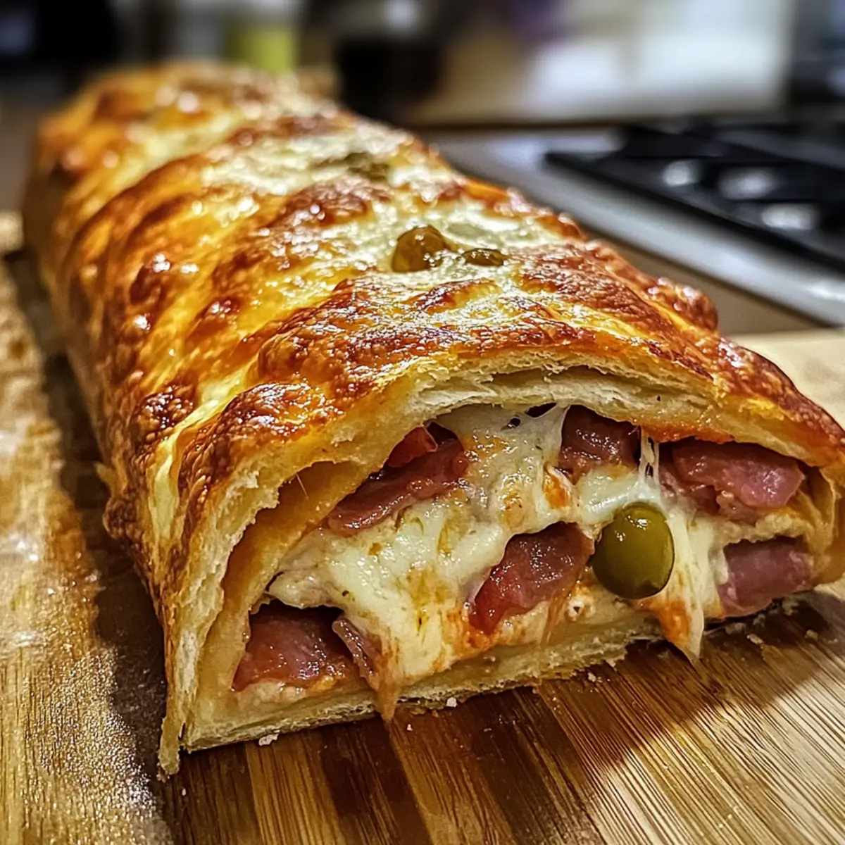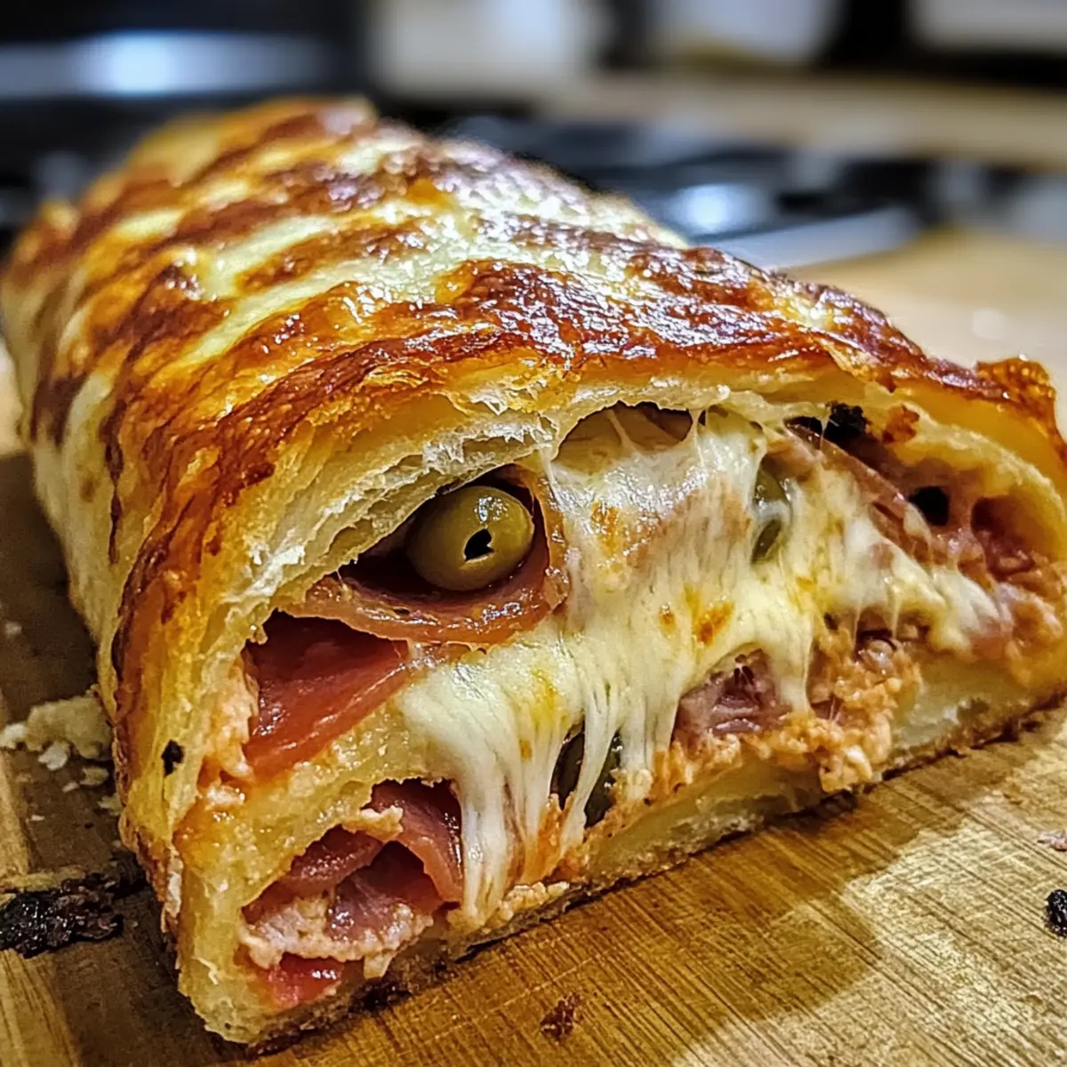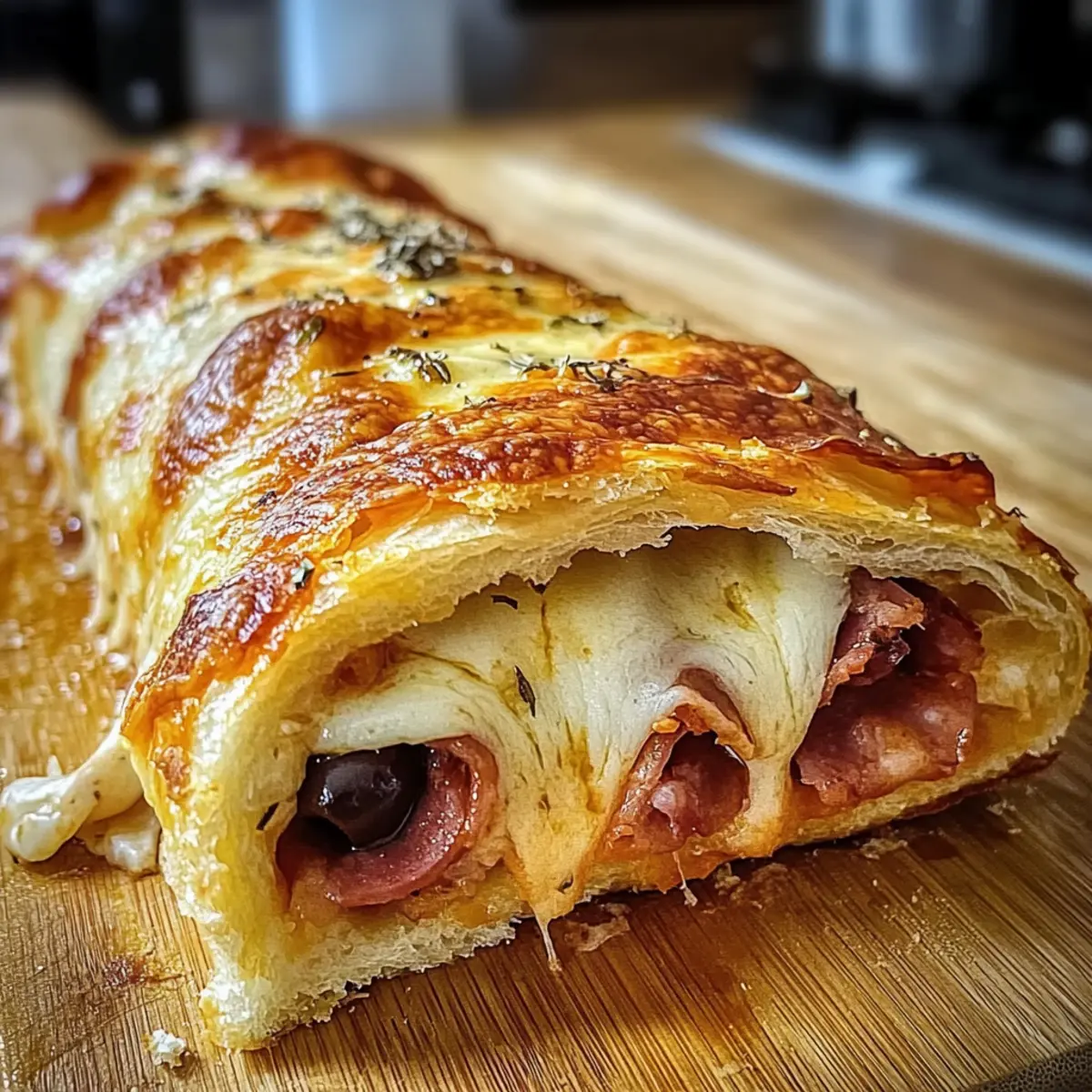Als ich neulich dem verlockenden Duft von frisch gebackenem Brot begegnete, konnte ich nicht widerstehen. Diese Aromen lassen mich sofort an die Traditionen der italienischen Küche denken, in der jedes Gericht eine Geschichte erzählt. Heute teile ich mit euch mein Rezept für den Mundwässernden italienischen Stromboli – ein absolutes Muss für alle, die sich nach einer schnellen und doch bemerkenswert leckeren Mahlzeit sehnen. Die Vielseitigkeit dieses Gerichts ist einfach einzigartig: Ob für eine gemütliche Familiennacht oder als beeindruckender Snack für Gäste, es ist ein echter Publikumsliebling. Mit einem goldbraunen, knusprigen Äußeren und einer Auswahl an köstlichen Füllungen – von würzigem Fleisch bis hin zu frischen Gemüsesorten – bietet dieser Stromboli nicht nur eine schnelle Zubereitung, sondern auch jede Menge Raum für kreative Anpassungen. Habt ihr schon eure Lieblingsfüllung im Kopf? Warum ist dieser Stromboli ein Muss? Vielseitigkeit: Dank seiner anpassbaren Füllungen – seien es würzige Fleischsorten oder frische Gemüse – ist dieser Stromboli perfekt für jeden Geschmack. Schnelle Zubereitung: In nur 30 Minuten servierbereit, ist er ideal für hektische Abende. Familienfreundlich: Ob als Hauptgericht oder Snack, dieser Stromboli begeistert Groß und Klein. Herzhafter Geschmack: Der Mix aus zartem Käse und saftigen Füllungen lässt keine Wünsche offen. Probiert auch mal unseren würzige Hühnersuppe Italienischer Art als Begleitung! Mundwässernder italienischer Stromboli Zutaten • Für den Teig Pizzateig – Verwenden Sie hochwertigen, elastischen Teig, um die perfekte Basis für Ihren Stromboli zu schaffen. • Für die Soße Marinara-Sauce – Sie sorgt für Feuchtigkeit und reichhaltigen Geschmack; probieren Sie auch Pesto für eine besondere Note. • Für den Käse Mozzarella-Käse – Er schafft eine klassische cremige Textur; Provolone kann für einen intensiveren Geschmack verwendet werden. • Für die Füllungen Herzhafte Fleischsorten (Pepperoni, Salami, Schinken) – Sie verleihen Proteine und Reichtum; tauschen Sie sie gegen gegrilltes Gemüse oder Tofu für eine vegetarische Option aus. Oliven (optional) – Sie bringen eine salzige Note; geröstete Paprika können für einen süßeren Geschmack verwendet werden. • Für die Glasur Ei – Es sorgt für eine glänzende, ansprechende Oberfläche des Teigs. Schritt-für-Schritt-Anleitungen für Mundwässernder italienischer Stromboli Step 1: Ofen Vorheizen Heizen Sie Ihren Ofen auf 200°C (400°F) vor, um eine perfekte, goldbraune Kruste zu erzielen. Achten Sie darauf, dass der Ofen vollständig heiß ist, bevor Sie mit der Zubereitung Ihres Mundwässernden italienischen Stromboli beginnen. Step 2: Teig Ausrollen Rollen Sie den Pizzateig auf einer bemehlten Arbeitsfläche zu einem Rechteck von etwa 30×40 cm aus. Achten Sie darauf, dass der Teig gleichmäßig dick ist, um ein gleichmäßiges Backen zu gewährleisten. Dies bildet die Grundlage für Ihren köstlichen Stromboli. Step 3: Soße Verteilen Tragen Sie großzügig die Marinara-Sauce auf den ausgerollten Teig auf, dabei einen Rand von etwa 2 cm am Rand freilassen. Diese Soße sorgt für Feuchtigkeit und Geschmack in Ihrem Stromboli und bildet eine leckere Grundlage für die weiteren Füllungen. Step 4: Käse Hinzufügen Streuen Sie eine gleichmäßige Schicht Mozzarella-Käse über die Sauce. Der Käse wird beim Backen schmelzen und eine cremige Textur bieten. Achten Sie darauf, dass der Käse gut verteilt ist, um jedes Stück des Stromboli lecker zu machen. Step 5: Füllungen Schichten Verteilen Sie Ihre gewählten herzhaften Fleischsorten und optional die Oliven gleichmäßig über den Käse. Dabei sollten Sie vermeiden, den Teig zu überfüllen, um ein Auslaufen während des Backens zu verhindern. Dies verleiht Ihrem Mundwässernden italienischen Stromboli Geschmack und Fülle. Step 6: Teig Rollen Beginnen Sie an einer der langen Kanten und rollen Sie den Teig straff auf, sodass eine Logform entsteht. Drücken Sie die Naht fest zu, um sicherzustellen, dass der Stromboli beim Backen nicht aufplatzt und die köstlichen Füllungen erhalten bleiben. Step 7: Für das Backen Vorbereiten Legen Sie den gerollten Stromboli mit der Naht nach unten auf ein mit Backpapier ausgelegtes Blech. Schneiden Sie einige Schlitze in die Oberseite des Stromboli, um Dampf entweichen zu lassen und ein gleichmäßiges Backen zu fördern. Step 8: Mit Ei Glasieren Verquirlen Sie ein Ei und bestreichen Sie die Oberseite des Stromboli großzügig mit der Eimischung. Dies sorgt für eine glänzende, appetitliche Kruste, die außen knusprig und innen weich ist. Diese letzte Berührung rundet den Mundwässernden italienischen Stromboli perfekt ab. Step 9: Backen Backen Sie den Stromboli im vorgeheizten Ofen für 25-30 Minuten oder bis die Kruste goldbraun und aufgeblasen ist. Behalten Sie ihn im Auge: Wenn er schön bräunt, ist er bereit, herausgenommen zu werden. Step 10: Abkühlen und Schneiden Lassen Sie den Stromboli 10-15 Minuten auf einem Kuchengitter abkühlen, bevor Sie ihn in Scheiben schneiden. Dies erleichtert das servieren und sorgt dafür, dass sich die Füllungen setzen und leckere Stücke entstehen. Zeit sparen mit Mundwässerndem italienischen Stromboli Der Mundwässernde italienische Stromboli ist eine ausgezeichnete Wahl für Heimköche, die Zeit sparen möchten! Sie können den Pizzateig und die Füllungen bis 24 Stunden im Voraus vorbereiten, indem Sie den Teig im Kühlschrank aufbewahren und die Füllungen in separaten Behältern lagern, um die Frische zu bewahren. Am Tag des Backens rollen Sie einfach den Teig aus, fügen die vorbereiteten Zutaten hinzu und backen ihn wie gewohnt. Um die Qualität zu erhalten, achten Sie darauf, die Füllungen in einem luftdichten Behälter zu lagern, damit sie nicht austrocknen. Nach dem Backen lassen Sie den Stromboli 10-15 Minuten abkühlen, bevor Sie ihn in Scheiben schneiden und servieren 