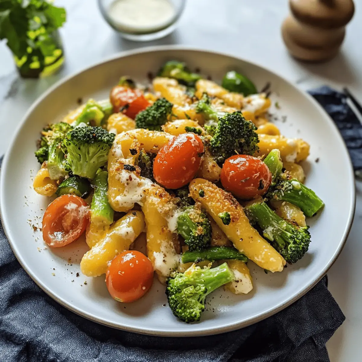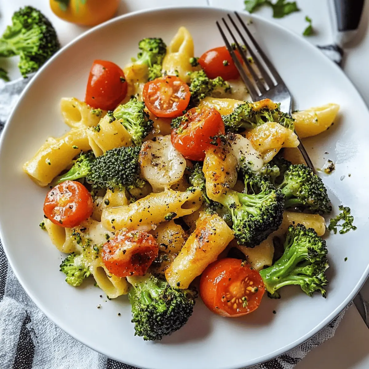 Inmitten eifriger Küchenszenen und dem verführerischen Duft von frisch gebratenen Nudeln, habe ich neulich ein Gericht entdeckt, das meine Abendessen-Repertoire sofort bereichert hat: One-Pan Brokkoli Schupfnudeln mit Hirtenkäse und Tomaten. Diese schnelle und beeindruckende Mahlzeit ist nicht nur ein Augenschmaus, sondern auch ein wahrer Genuss für die Sinne, ideal für hektische Abende oder entspannte Mittagessen. Mit der Kombination aus knusprigen Schupfnudeln, saftigem Brokkoli und der cremigen Note des Hirtenkäses sind die Zubereitung und der Geschmack kaum zu überbieten – und das alles in weniger als 15 Minuten. Wer kann da widerstehen? Neugierig, wie du dieses tolle Rezept zu Hause nachkochen kannst? Warum wirst du dieses Rezept lieben? Schnelligkeit: In nur 15 Minuten zubereitet, perfekt für hektische Tage. Vielseitigkeit: Ersetze die Zutaten nach Belieben für einen neuen Genuss – probiere zum Beispiel Feta anstelle von Hirtenkäse! Alleskönner: Ideal für Lunch oder Dinner, wenn du eine schnelle und leckere Mahlzeit brauchst. Aromen: Der mix aus gerösteten Tomaten und frischem Brokkoli bringt Farbe und Geschmack auf deinen Teller. Gesundheit: Eine ausgewogene, vegetarische Option, die sowohl lecker als auch nahrhaft ist! Vergiss nicht, dazu einen leichten Beilagensalat zu servieren. Onepan Brokkoli Schupfnudeln Zutaten • Bereite dich darauf vor, deinen Gaumen zu verwöhnen, während wir die köstlichen Zutaten für die Onepan Brokkoli Schupfnudeln mit Hirtenkäse und Tomaten erkunden! Für die Schupfnudeln Schupfnudeln – Die perfekte Grundlage für dieses Gericht; bei Bedarf kannst du auch andere Pasta oder Gnocchi verwenden. Für das Gemüse Broccoli – Sorgt für Frische und Farbe; als Alternative eignen sich auch grüne Bohnen oder Spinat. Tomaten – Bringt Säure und Süße ins Spiel; am besten eignen sich Kirschtomaten, die du auch durch Paprika ersetzen kannst. Für den Geschmack Hirtenkäse – Fügt Cremigkeit und Geschmack hinzu; du kannst ihn durch Feta oder Ziegenkäse ersetzen, je nach Vorliebe. Olivenöl – Zum Anbraten verwendet; dieses kannst du auch durch jedes andere Kochöl substituieren. Salz & Pfeffer – Unverzichtbar für die Würze; passe sie nach deinem Geschmack an. Schritt-für-Schritt-Anleitung für Onepan Brokkoli Schupfnudeln mit Hirtenkäse und Tomaten Schritt 1: Öl erhitzen Erhitze in einer großen Pfanne bei mittlerer Hitze etwa 2 Esslöffel Olivenöl. Achte darauf, dass das Öl gleichmäßig in der Pfanne verteilt ist. Dies ist der erste Schritt, um die Schupfnudeln knusprig zu braten und den köstlichen Geschmack zu entfalten. Schritt 2: Schupfnudeln braten Sobald das Öl heiß ist, gib die Schupfnudeln in die Pfanne. Brate sie für etwa 3-4 Minuten, bis sie goldbraun und knusprig sind. Schüttele die Pfanne gelegentlich, um sicherzustellen, dass die Nudeln gleichmäßig bräunen und nicht aneinander kleben bleiben. Schritt 3: Brokkoli hinzufügen Füge nach den 3-4 Minuten die grob gehackten Brokkoliröschen hinzu. Lasse alles zusammen für weitere 3-4 Minuten kochen, bis der Brokkoli zart, aber immer noch lebendig grün ist. Beobachte, dass der Brokkoli nicht zu weich wird, um die Textur des Gerichts zu bewahren. Schritt 4: Tomaten und Hirtenkäse einmischen Nach dem Brokkoli füge die halbierten Kirschtomaten und den gewürfelten Hirtenkäse hinzu. Rühre alles vorsichtig um, so dass sich die Zutaten gut vermischen und der Hirtenkäse beginnt zu schmelzen. Dies sollte etwa 1-2 Minuten dauern, um die Aromen zu vereinen. Schritt 5: Würzen und servieren Schmecke das Gericht mit Salz und Pfeffer ab. Koche die Mischung für zusätzlich 2 Minuten, damit sich die Gewürze gut entfalten. Der Hirtenkäse sollte schön cremig werden und sich mit den anderen Zutaten verbinden. Serviere die Onepan Brokkoli Schupfnudeln sofort für das beste Geschmackserlebnis. Onepan Brokkoli Schupfnudeln Variationen Lass deiner Kreativität freien Lauf und passe dieses Rezept nach deinem Geschmack an, um jeden Biss noch aufregender zu gestalten! Vegetarisch: Ersetze den Hirtenkäse durch zerbröselten Feta oder Ziegenkäse für eine salzige Note. Vegan: Verwende pflanzliche Käsealternativen für eine vegane Variante, die trotzdem cremig schmeckt. Kräuter: Füge frische Kräuter wie Basilikum oder Thymian hinzu, um einen frischen Geschmack zu erzielen. Scharf: Gib eine Prise Chili oder etwas Paprika hinzu, um dem Gericht eine angenehme Schärfe zu verleihen. Textur: Brate einige Pinienkerne oder Mandeln an und streue sie darüber für einen crunchy Effekt. Variieren: Tausche Brokkoli gegen Zucchini oder Mangold aus, um den Nährstoffmix bunter zu gestalten. Experimente sind der Schlüssel zur Küchenfreude! Einfrieren: Bereite eine größere Portion vor und friere sie als schnelles Gericht für später ein, perfekt für beschäftigte Tage. Dips: Serviere deinen Schupfnudeln mit einem Kräuter-Dip oder einer leichten Joghurtsoße für den extra Frischekick. Aufbewahrungstipps für Onepan Brokkoli Schupfnudeln Kühlschrank: Bewahre die Reste in einem luftdichten Behälter im Kühlschrank auf, wo sie bis zu 3 Tage frisch bleiben. Gefrierer: Du kannst die Onepan Brokkoli Schupfnudeln portionsweise in gefriergeeigneten Behältern einfrieren. So bleiben sie bis zu 3 Monate haltbar, jedoch kann die Textur beim Auftauen beeinträchtigt werden. Wiedererwärmen: Zum Aufwärmen erwärmst du die Schupfnudeln am besten in einer Pfanne bei mittlerer Hitze, eventuell mit einem Spritzer Wasser, um ein Austrocknen zu vermeiden. Nicht überladen: Wenn du die Reste in der Pfanne erwärmst, achte darauf, nicht zu viele gleichzeitig zu erwärmen, damit sie gleichmäßig warm werden und ihre Knusprigkeit behalten. Was passt zu Onepan Brokkoli Schupfnudeln mit Hirtenkäse und Tomaten? Eine köstliche Mahlzeit ist der perfekte Anlass, verschiedene Beilagen zu kombinieren und ein vollmundiges Erlebnis zu schaffen. Frischer Gartensalat: Knackige Blätter und bunte Gemüse