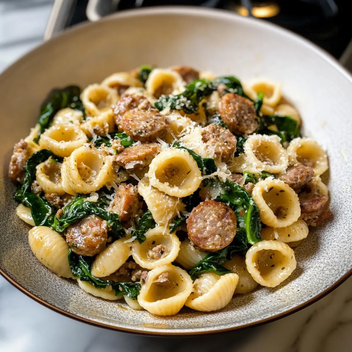 Um die besten Ergebnisse zu erzielen, achte darauf, frische Zutaten zu verwenden. Die Orecchiette sollten fest und frei von Rissen sein. Die Wurst sollte von hoher Qualität sein, idealerweise frisch und gut gewürzt. Frischer Spinat muss kräftig grün und frei von dunklen Flecken sein – verwende ihn am besten am gleichen Tag, an dem du ihn kaufst.