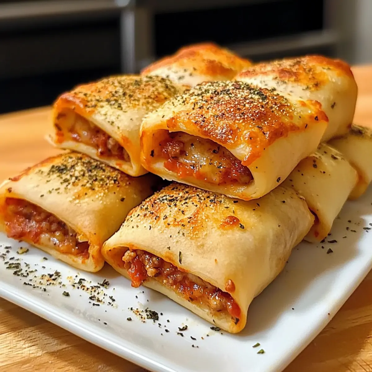 • Schärfer: Fügen Sie etwas gehackte Jalapeños oder eine Prise Cayennepfeffer zur Gewürzmischung hinzu, um Ihren Pizzaröllchen eine scharfe Note zu verleihen. Ideal für Liebhaber von Gewürzen!