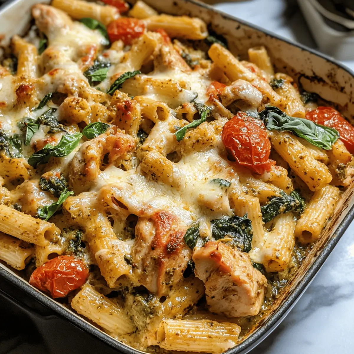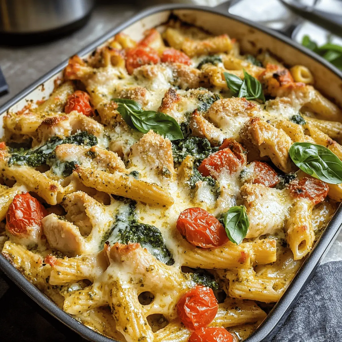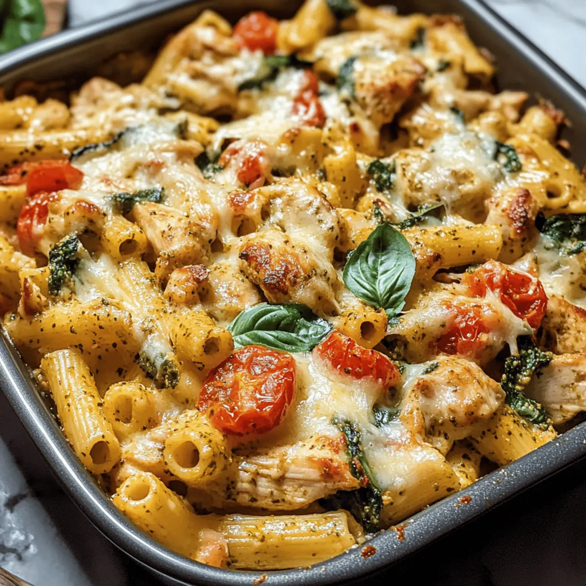 Als ich neulich in meiner Küche stand, um etwas Neues auszuprobieren, wurde ich von dem köstlichen Duft von frischem Basilikum und gerösteten Tomaten verführt. Der star des Abends? Ein cremiger Pesto Hähnchen Nudeln Auflauf, der nicht nur unheimlich lecker, sondern auch unglaublich einfach zuzubereiten ist. Diese Familienlieblingsgericht vereint zarte Hähnchenstücke, frischen Spinat und aromatischen Pesto in einer herzhaften Kombination, die sich perfekt für ein schnelles Abendessen eignet. Die Vorteile sind gleich doppelt: nicht nur ist es ideal als Feierabendessen, sondern die Reste sind im Kühlschrank und Gefrierfach wunderbar lagerfähig! Neugierig, wie du dieses fantastische Gericht zubereiten kannst? Lass uns gemeinsam in die Details eintauchen! Warum ist diese Rezeptur ein Hit? Simplicity, die Zubereitung könnte nicht einfacher sein! Es erfordert nur grundlegende Kochkünste und schon hast du ein köstliches Gericht. Vielfalt, du kannst das Rezept leicht anpassen, indem du Hähnchen durch Pute oder pflanzliche Proteine ersetzt. Reichhaltige Aromen, die Kombination aus Pesto, frischem Spinat und gerösteten Tomaten sorgt für eine harmonische Geschmacksexplosion. Ein perfektes Familienessen, das auch bei Kindern sehr beliebt ist und die ganze Familie satt macht. Und nicht zu vergessen, die Reste sind hervorragend geeignet für dein Mittagessen oder belegte Brote für unterwegs – einfach ideal für Meal-Prep-Fans! Wenn du nach weiteren Ideen suchst, schau dir unbedingt auch unser Rezept für Zitronengras Hähnchen Lecker an! Pesto Hähnchen Nudeln Auflauf Zutaten Für die Nudeln • Pasta – 12 oz. röhrenförmige Pasta wie Rigatoni oder Tortiglioni, bildet die herzhaften Grundlage des Gerichts. Tipp: Vollkornpasta sorgt für mehr Ballaststoffe. Für das Hähnchen • Hähnchenbrust – 1 lb. ohne Knochen und Haut, gewürfelt; sorgt für Protein und Textur. Hinweis: Verwende für eine schnellere Zubereitung Rotisserie-Hähnchen. • Italienische Gewürzmischung – 1 EL für Geschmack; essenziell für eine vollmundige italienische Note. • Paprika – 1 TL für einen milden pfeffrigen Geschmack. Substitution: Geräucherte Paprika verleiht einen reicheren Geschmack. • Grobes Salz – 1 1/4 TL, geteilt; hebt den Gesamgeschmack. • Schwarzer Pfeffer – 1/2 TL zur Würze. Für die Sauce • Olivenöl – 1 bis 2 EL zum Anbraten; verwende alternativ das Öl von gerösteten Tomaten für zusätzlichen Geschmack. • Schalotten – 3/4 Tasse, gehackt; fügt eine süße, milde Zwiebelnote hinzu. • Knoblauch – 4 Zehen, gehackt; sorgt für aromatische Tiefe. • Rote Pfefferflocken – Eine Prise für subtile Schärfe. Nach Geschmack anpassen. • Geröstete Tomaten – 1 Tasse, in Scheiben; sorgt für eine würzige Reichhaltigkeit. • Babyspinat – 2 bis 3 Handvoll; bringt Frische und grüne Notes. • Pesto – 1/2 Tasse, ein Schlüsselzutaten für den Geschmack. Kann durch hausgemachtes Pesto oder andere Kräutersaucen ersetzt werden. • Sahne – 1/2 Tasse für Cremigkeit. Für eine leichtere Variante kannst du halb und halb oder nicht-milchige Alternativen verwenden. • Parmigiano-Reggiano – 1/2 Tasse, gerieben; fügt eine nussige, herzhafte Komponente hinzu. • Frischer Mozzarella – 3 bis 4 oz., zerrissen; sorgt für einen schmelzenden Käsebelag. • Frisches Basilikum – Zur Garnierung; hebt Präsentation und Geschmack. Schritt-für-Schritt-Anleitung für Pesto Hähnchen Nudeln Auflauf Step 1: Nudeln kochen Koche die röhrenförmige Pasta in einem großen Topf mit gesalzenem Wasser, bis sie gerade al dente sind, etwa 8-10 Minuten. Achte darauf, einen Becher des Kochwassers aufzuheben, bevor du die Nudeln abgießt. Dies wird später helfen, die Cremigkeit der Sauce zu erhöhen. Step 2: Hähnchen würzen und anbraten In einer großen, ofenfesten Pfanne das gewürfelte Hähnchen mit 1-2 Esslöffeln Olivenöl, italienischer Gewürzmischung, Paprika, grobem Salz und Pfeffer vermengen. Brate das Hähnchen bei mittlerer Hitze etwa 8 Minuten lang, bis es durchgegart und nicht mehr rosa ist. Übertrage das Hähnchen anschließend auf einen Teller. Step 3: Aromatische Zutaten anbraten In derselben Pfanne die gehackten Schalotten hinzufügen und für etwa 3 Minuten anbraten, bis sie weich sind. Anschließend den Knoblauch und die roten Pfefferflocken hinzugeben und für eine weitere Minute rösten, bis der Knoblauch duftet. Rühre dann die gerösteten Tomaten und den Spinat unter, bis der Spinat leicht verwelkt. Step 4: Sauce zubereiten Füge nun das Pesto und die Sahne in die Pfanne hinzu und rühre gut um. Gib die gekochte Pasta und das aufbewahrte Kochwasser dazu, während du weiter rührst, bis die Sauce die Nudeln gleichmäßig umhüllt und leicht eindickt. Der Pesto Hähnchen Nudeln Auflauf beginnt jetzt, seinen cremigen Charakter zu zeigen. Step 5: Backen Verteile die Mischung gleichmäßig in der Pfanne und bestreue sie mit geriebenem Parmigiano-Reggiano und zerrissenem Mozzarella. Stelle die Pfanne unter den Grill im Ofen und lasse sie etwa 3-5 Minuten lang brodeln, bis der Käse geschmolzen und goldbraun ist. Halte die Backzeit im Auge, um ein Verbrennen zu vermeiden. Step 6: Servieren Nehme den Pesto Hähnchen Nudeln Auflauf aus dem Ofen und garniere ihn mit frischem Basilikum. Lass das Gericht kurz ruhen, damit es sich setzen kann, bevor du es servierst. Die Kombination aus zartem Hähnchen, cremiger Sauce und geschmolzenem Käse wird deine Familie begeistern! Meal Prep für deinen Pesto Hähnchen Nudeln Auflauf Du bist auf der Suche nach einer einfachen Möglichkeit, um Zeit in der Küche zu sparen? Der Pesto Hähnchen Nudeln Auflauf eignet sich perfekt für die Vorbereitung im Voraus! Du kannst die Nudeln und das Hähnchen bereits bis zu 24 Stunden vorher zubereiten und im Kühlschrank aufbewahren. Bereite die Sauce aus Pesto, Sahne, und den sautierten Gemüsekomponenten ebenfalls vor und lagere sie separat. Achte darauf, die Pasta nur al dente zu koc