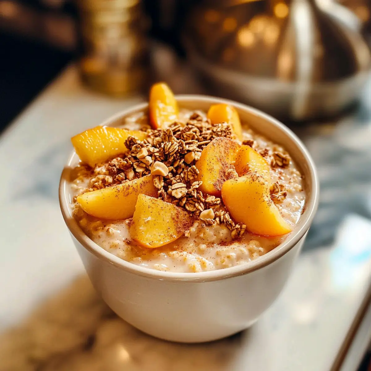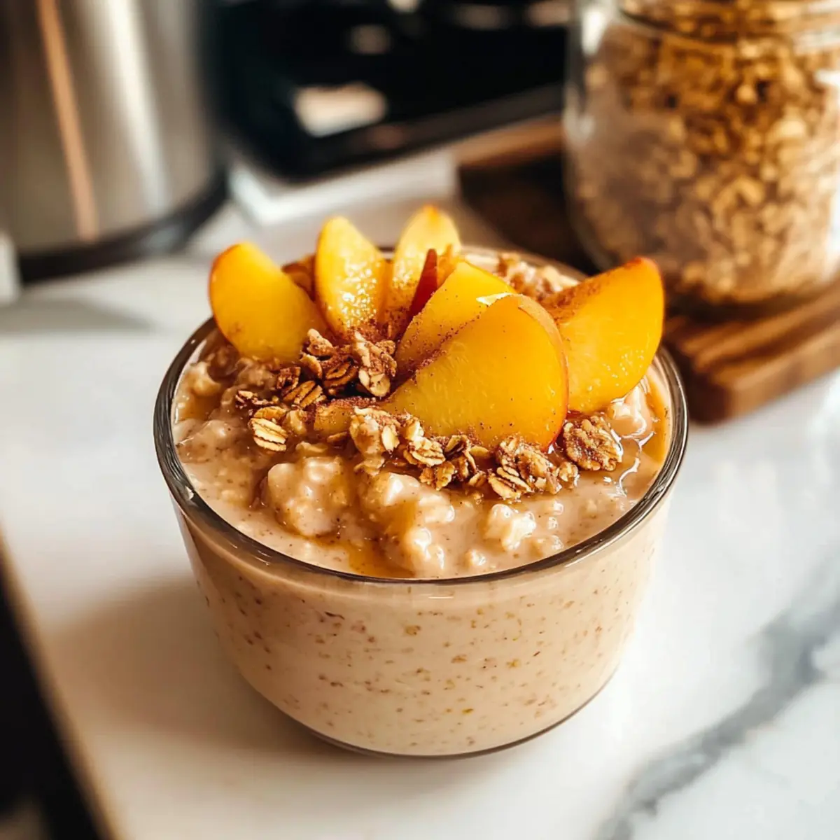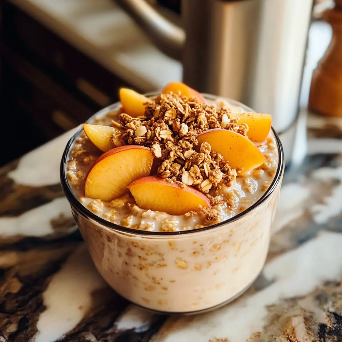 Die Sonne scheint durch das Fenster und ich kann den verlockenden Duft von frischen Pfirsichen und Zimt riechen. Es gibt nichts Schöneres, als mit einem Frühstück zu starten, das gleichzeitig gesund und köstlich ist. Mit meinen Pfirsich-Cobbler-Übernacht-Haferflocken erleben wir die süße Leichtigkeit eines klassischen Desserts, ohne dabei auf die gesunden Zutaten zu verzichten. Dieses einfache Rezept ist nicht nur ein wahrer Genuss, sondern auch ein perfekter Begleiter für hektische Morgen: Du mischst einfach die Zutaten, lässt sie über Nacht einweichen und voilà – ein cremiges, nahrhaftes Frühstück wartet auf dich! Zudem sind die Haferflocken glutenfrei und bieten dir die Möglichkeit, sie vegan zuzubereiten. Bist du bereit, die sanften Aromen von Pfirsich-Cobbler in einem einfachen Frühstück zu genießen? Lass uns zusammen in dieses Rezept eintauchen! Warum sind diese Overnight Oats einzigartig? Einfachheit: Dieses Rezept ist kinderleicht und erfordert keine Kochkünste – einfach mischen und über Nacht kühlen! Gesundheit: Die Pfirsich-Cobbler-Übernacht-Haferflocken sind eine nahrhafte Frühstücksoption, die mit Ballaststoffen und wenig Zucker begeistert. Vielseitigkeit: Du kannst deine Oats ganz nach Geschmack anpassen – probiere sie mit verschiedenen Früchten oder Toppings wie gerösteten Nüssen! Zeitersparnis: Perfekt für hektische Morgen – alles wird im Voraus zubereitet, sodass du morgens nur noch genießen musst. Crowd-Pleaser: Diese Haferflocken sind nicht nur nahrhaft, sondern schmecken auch unglaublich lecker, sodass sie die ganze Familie begeistern werden! Pfirsich-Cobbler-Übernacht-Haferflocken Zutaten Für die Haferflocken • Rollende Haferflocken – Basis des Rezepts, die Ballaststoffe und Substanz liefern; verwende glutenfreie Haferflocken für eine glutenfreie Option. • Milch (tierisch oder pflanzlich) – Flüssigkeitskomponente zum Einweichen der Haferflocken; kann durch Mandel-, Hafer- oder Kokosmilch für eine milchfreie Variante ersetzt werden. • Frischer Pfirsich – Sorgt für natürliche Süße und fruchtigen Geschmack; kann durch gefrorene oder gut abgetropfte Dosenpfirsiche ersetzt werden. • Chiasamen – Fügt Dicke und zusätzliche Ballaststoffe hinzu; kann durch Leinsamen ersetzt oder leicht die Milchmenge verringert werden, wenn weggelassen. • Vanilleextrakt – Intensiviert den Geschmack und ist für die Tiefe unerlässlich. • Zimt – Gibt warme Gewürznoten; nach Geschmack anpassen. • Ahornsirup oder Honig – Sorgt für Süße; kann weggelassen oder reduziert werden, um es weniger süß zu machen. Für das Topping • Granola oder gehackte Nüsse – Fügt Crunch und Textur hinzu; ein optionaler Honigüberzug verstärkt die Süße. Schritt-für-Schritt-Anleitungen für Pfirsich-Cobbler-Übernacht-Haferflocken Step 1: Pfirsich vorbereiten Halbiere einen frischen Pfirsich und schneide ihn in kleine, mundgerechte Stücke. Die Stücke sollten gleichmäßig klein sein, damit sie beim Mischen der Zutaten gut verteilt werden können. Dies sorgt für eine gleichmäßige Süße und Frische in den Pfirsich-Cobbler-Übernacht-Haferflocken. Step 2: Zutaten mischen In einem Einmachglas vermischt du die rollenden Haferflocken, Milch deiner Wahl (tierisch oder pflanzlich), Chiasamen, Vanilleextrakt, Zimt und den geschnittenen Pfirsich. Rühre alles gut um, bis alle Zutaten gleichmäßig verteilt sind. Du solltest eine cremige Konsistenz bekommen, die Lust auf das Frühstück macht. Step 3: Kühlen Decke das Einmachglas ab und stelle es in den Kühlschrank. Lass die Haferflocken mindestens 4 Stunden, besser über Nacht, durchziehen. Dies ermöglicht den Haferflocken, die Flüssigkeit aufzusaugen und die Aromen gut zu vermischen, was zu einer samtigen Textur führt. Step 4: Servieren Am Morgen nimm die Pfirsich-Cobbler-Übernacht-Haferflocken aus dem Kühlschrank und rühre sie gut um. Je nach Wunsch kannst du etwas zusätzliche Milch hinzufügen, um die Konsistenz zu verfeinern. Die Haferflocken sollten jetzt weich und cremig sein, mit einem verlockenden Duft von Pfirsich und Zimt. Step 5: Toppings hinzufügen Vervollständige dein Frühstück mit Granola oder gehackten Nüssen für einen zusätzlichen Crunch. Du kannst auch einen optionalen Überzug aus Honig hinzufügen, um die Süße zu intensivieren. Diese Textur- und Geschmacksvielfalt macht die Pfirsich-Cobbler-Übernacht-Haferflocken zu einem wahren Genuss! Tipps zur Vorbereitung der Pfirsich-Cobbler-Übernacht-Haferflocken Die Pfirsich-Cobbler-Übernacht-Haferflocken sind ideal für die Vorbereitung im Voraus, sodass du dir an hektischen Morgen wertvolle Zeit sparst! Du kannst die Haferflocken bis zu 24 Stunden im Voraus zubereiten, indem du die Zutaten einfach in einem Einmachglas mischst und über Nacht im Kühlschrank kühlst. Die Kombination aus rollenden Haferflocken, Milch, Chiasamen und frischen Pfirsichen zieht so optimal durch und intensiviert den Geschmack. Achte darauf, die Haferflocken in einem luftdichten Behälter zu lagern, damit sie frisch bleiben. Am Morgen kannst du sie einfach umrühren, eventuell mit etwas zusätzlicher Milch auflockern und mit Granola oder Nüssen toppen. So hast du im Handumdrehen ein köstliches Frühstück, das genauso gut schmeckt, wie es frisch zubereitet ist! Expert Tips für Pfirsich-Cobbler-Übernacht-Haferflocken Frische Zutaten verwenden: Achte darauf, reife Pfirsiche zu wählen – sie sorgen für die beste Süße und Geschmack in deinen Pfirsich-Cobbler-Übernacht-Haferflocken. Für extra Cremigkeit: Überlege, griechischen Joghurt oder Kokoscreme hinzuzufügen, um eine reichhaltigere Konsistenz zu erhalten, die dein Frühstück noch köstlicher macht. Protein steigern: Misch einen Esslöffel Vanille-Protein-Pulver hinein, um den Proteinanteil zu erhöhen und ein noch sättigenderes Frühstück zu genießen. Richtige Einweichzeit: Lasse die Haferflocken unbedingt über Nacht im Kühlschrank – so können sie die Flüs