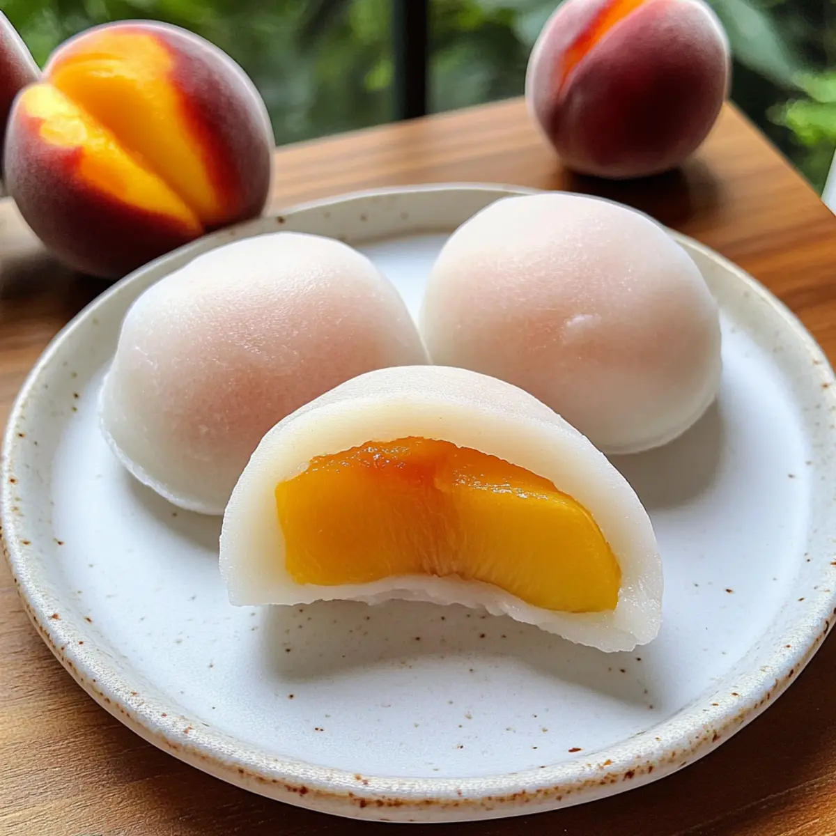 Als ich neulich durch den Markt schlenderte, fielen mir die saftigen, reifen Pfirsiche ins Auge – einfach perfekt für eine erfrischende Süßigkeit! Mit einem Hauch von Neugier wandte ich mich voller Vorfreude dem Rezept für Pfirsich-Mochi zu. Diese kleinen Leckerbissen vereinen die zarte Süße der vollreifen Früchte mit der einzigartigen, weichen und zähen Textur des Mochi, die mich sofort in ihren Bann zog. Mit einfachen Zutaten und einer unkomplizierten Zubereitung sind sie nicht nur ein Spaß für die ganze Familie, sondern auch das perfekte Dessert für sommerliche Zusammenkünfte. Wer kann da schon widerstehen? Ich kann es kaum erwarten, die zarten Hüllen um die saftigen Pfirsiche zu wickeln! Was haltet ihr von einem kleinen Ausflug in die Welt der asiatischen Desserts? Warum werden Sie Pfirsich-Mochi lieben? Einzigartiger Genuss: Die Kombination von zarte, saftige Pfirsiche und chewy Mochi bringt eine überraschende Geschmacksexplosion auf den Teller. Einfache Zubereitung: Mit nur wenigen Zutaten und einem unkomplizierten Prozess ist das Rezept besonders schnell und einfach umsetzbar. Vielseitig: Sie können reife Pfirsiche verwenden oder auf praktische Dosenfrüchte zurückgreifen – perfekt für jede Gelegenheit! Erfrischend: Ideal für heiße Sommertage, servieren Sie die Pfirsich-Mochis kalt, um sich eine köstliche Abkühlung zu gönnen. Familienfreundlich: Ein Spaß für Groß und Klein, das Zubereiten und Verzehren dieser kleinen Leckereien bringt alle zusammen. Verwöhnen Sie Ihre Gäste: Ob bei einem Grillabend oder einem Picknick, die Pfirsich-Mochis sind immer ein Hit und machen Sie zum Star der Veranstaltung! Pfirsich-Mochi Zutaten Für die Mochi-Hülle • Glutinous Rice Flour – ist der Hauptbestandteil für die Mochi-Hülle und verleiht das gewünschte Chewy. Alternativ kann auch Mochiko-Mehl verwendet werden. • Zucker – süßt den Mochi-Teig; passen Sie die Menge nach Geschmack an, Honig oder Agavendicksaft sind ebenfalls tolle Alternativen. • Wasser – bindet die Zutaten zusammen und sorgt für eine geschmeidige Teigkonsistenz. • Cornstarch – wird zum Bestäuben verwendet, um ein Festkleben zu verhindern; zusätzliches kann zur Handhabung des klebrigen Teigs genutzt werden. Für die Füllung • Reife Pfirsiche – bringen Saftigkeit und natürliche Süße; sehr reife Pfirsiche sind ideal, aber auch Dosenpfirsiche können verwendet werden. Machen Sie sich bereit, mit unserem Rezept für Pfirsich-Mochi kreativ zu werden und genießen Sie diesen köstlichen Genuss! Schritt-für-Schritt-Anleitung für Pfirsich-Mochi Step 1: Vorbereitung der Pfirsiche Schneiden Sie ein Kreuz an der Unterseite der reifen Pfirsiche und bringen Sie einen Topf mit Wasser zum Kochen. Die Pfirsiche für etwa 1 Minute in das kochende Wasser tauchen, um die Haut zu lösen. Anschließend in eine Schüssel mit Eiswasser geben, um den Kochvorgang zu stoppen. Nach dem Abkühlen die Pfirsiche schälen und halbieren. Step 2: Mochi-Teig zubereiten Nehmen Sie eine mikrowellengeeignete Schüssel und mischen Sie das glutinous Rice Flour mit dem Zucker. Fügen Sie nach und nach Wasser hinzu, während Sie die Mischung mit einem Schneebesen glatt rühren. Decken Sie die Schüssel mit einem feuchten Papiertuch ab und erwärmen Sie den Teig in der Mikrowelle für 1 Minute. Rühren Sie danach um und wiederholen Sie diesen Vorgang zwei weitere Male, bis der Teig dick und klebrig ist. Lassen Sie den Teig 5-10 Minuten abkühlen. Step 3: Mochi formen Bestäuben Sie eine Arbeitsfläche großzügig mit Maisstärke, um ein Festkleben zu verhindern. Nehmen Sie den abgekühlten Mochi-Teig und rollen Sie ihn auf eine Dicke von etwa ⅙ Zoll aus. Teilen Sie den Teig in vier gleich große Portionen. Diese Vorbereitung ist der Schlüssel zur perfekten Struktur Ihres Pfirsich-Mochi. Step 4: Mochi zusammenstellen Legen Sie eine Pfirsichhälfte in die Mitte jeder Teigportion. Falten Sie den Mochi-Teig vorsichtig über die Pfirsichhälfte, sodass die Pfirsiche vollständig eingehüllt sind. Bestäuben Sie die Außenseite mit mehr Maisstärke, um sicherzustellen, dass nichts kleben bleibt, und legen Sie jede Portion mit der Naht nach unten auf die vorbereitete Fläche. Step 5: Servieren und genießen Ihr Pfirsich-Mochi kann sofort serviert werden, wobei die zarte Süße der Pfirsiche mit der chewy Mochi-Hülle harmoniert. Genießen Sie diese frisch zubereiteten Leckerbissen kalt und lassen Sie sich von ihrer erfrischenden Geschmacksexplosion überraschen, die perfekt für einen sommerlichen Genuss ist. Lagerungstipps für Pfirsich-Mochi Raumtemperatur: Bewahren Sie die Pfirsich-Mochi in einem luftdichten Behälter auf, um ihre Frische zu bewahren, und genießen Sie sie innerhalb von bis zu 3 Tagen. Kühlschrank: Für längere Haltbarkeit können Sie die Mochi im Kühlschrank lagern. Beachten Sie jedoch, dass die weiche und zähe Textur davon leicht beeinträchtigt werden kann. Freezer: Wenn Sie die Mochi einfrieren möchten, legen Sie sie in einen gefriergeeigneten Behälter und verwenden Sie sie innerhalb von 1-2 Monaten für den besten Geschmack. Wiedererwärmung: Zum Servieren können gefrorene Pfirsich-Mochi im Kühlschrank abgetaut oder bei Raumtemperatur aufgetaut werden; sie müssen nicht wieder erhitzt werden. Variationen & Alternativen für Pfirsich-Mochi Lassen Sie Ihrer Kreativität freien Lauf und passen Sie dieses Rezept an Ihren Geschmack an! Dosenfrüchte: Tauschen Sie frische Pfirsiche gegen Dosenpfirsiche aus, um Zeit zu sparen und die Zubereitung zu vereinfachen. Einfach schälen und in den Teig einhüllen – schnell und unkompliziert! Andere Früchte: Experimentieren Sie mit Früchten wie Mangos oder Nektarinen für eine neue Geschmackserfahrung. Jede Frucht bringt ihren eigenen, leckeren Charakter mit ins Spiel! Vegan: Verwenden Sie anstelle von Zucker Agavendicksaft oder Honig, um die Mochis süß zu halten – das passt perfekt zu einer pflanzlichen Ernährung. Einfrieren: Bereiten 