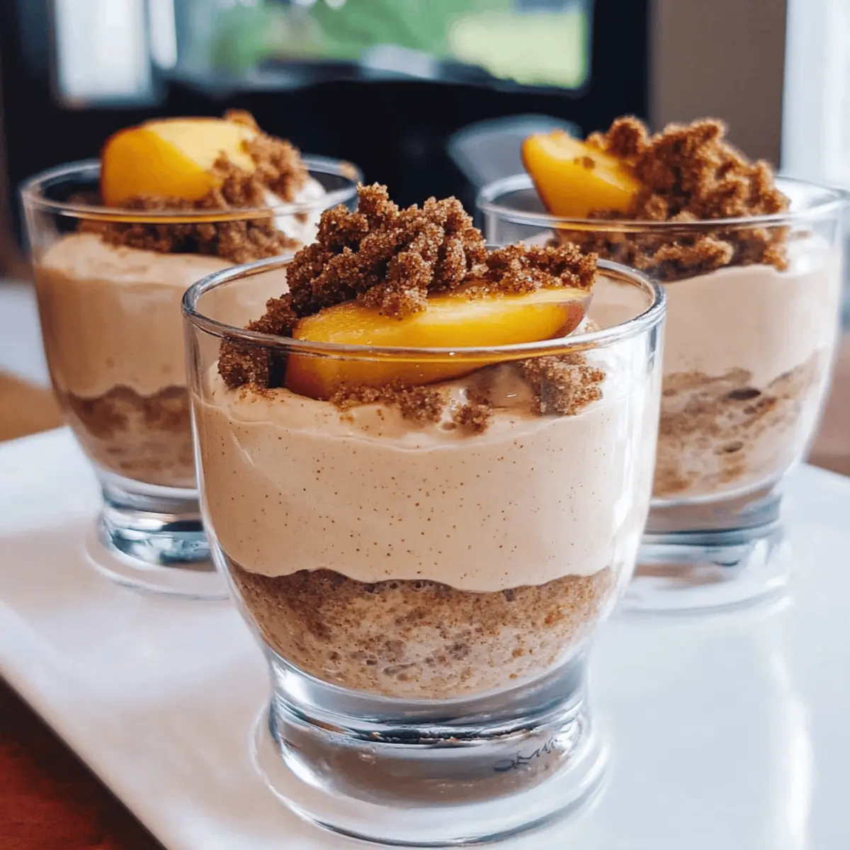 Es gibt kaum etwas Erfrischenderes als eine leichte Pfirsichmousse mit Zimt-Crunch, die den süßen Geschmack von überreifen Sommerpfirsichen mit einer cremigen Textur perfekt kombiniert. Dieses Dessert ist nicht nur ein echter Genuss für die Sinne, sondern lässt sich auch ganz einfach zubereiten – ideal für alle, die sich von Fast Food verabschieden möchten. Der verführerische Zimt-Crunch verleiht dem Gericht zudem eine knusprige Note, die selbst die einfachsten Zusammenkünfte verwandeln kann. Wenn du also nach einer köstlichen Möglichkeit suchst, die fruchtigen Köstlichkeiten der Saison zu genießen, dann wird dir diese Pfirsichmousse mit Zimt-Crunch garantiert den Tag versüßen! Bereit, dich auszuprobieren und die nächste Dinnerparty zu beeindrucken? Warum wirst du dieses Dessert lieben? Einfachheit at its Beste: Die Zubereitung ist unkompliziert und benötigt nur wenige Schritte, ideal für alle, die keine umfangreiche Erfahrung in der Küche haben. Fruchtige Süße: Überreife Pfirsiche liefern eine natürliche Süße, die mit der cremigen Textur der Mousse harmoniert und jeden Bissen zu einem Genuss macht. Köstlicher Zimt-Crunch: Der knusprige Zimt-Crunch bringt Texturabwechsel und Geschmack hinzu, der das Dessert besonders macht und perfekt für jede Zusammenkunft ist. Vielseitigkeit: Du kannst die Pfirsiche durch andere Früchte wie Nektarinen ersetzen oder mit verschiedenen Aromen experimentieren – sei es mit Amaretto oder einem Spritzer Orangensaft. Zeitersparnis: Das Dessert lässt sich wunderbar im Voraus zubereiten. So bleibt mehr Zeit, um dich um deine Gäste zu kümmern. Schlussendlich: Egal, ob für ein entspanntes Abendessen oder eine festliche Feier – diese Pfirsichmousse mit Zimt-Crunch wird garantiert zum Star des Abends! Pfirsichmousse Zutaten • Anmerkung: Mit diesen Zutaten kreierst du eine verführerische Pfirsichmousse mit Zimt-Crunch, die jeden Sommerabend verzaubert. Für den Zimt-Crunch: Dunkler Brauner Zucker – sorgt für eine tiefe Geschmacksnote und Feuchtigkeit im Crunch. Weißer Zucker – süßt sowohl die Mousse als auch den Zimt-Crunch. Zimt – verleiht ein aromatisches, warmes Aroma und hebt den Geschmack hervor. Ungesalzene Butter – bindet den Zimt-Crunch und macht ihn reichhaltig. Vanilleextrakt – intensiviert das gesamte Geschmacksprofil. Für die Mousse: Amaretto-Likör – bringt einen Hauch von Mandelgeschmack in die Mousse; kann durch Wasser und Mandelessenz für eine alkoholfreie Version ersetzt werden. Gelatine – sorgt dafür, dass die Mousse fest wird und eine stabile Textur erhält; kann bei Bedarf durch eine vegetarische Alternative ersetzt werden. Reife Pfirsiche – diese Hauptzutat liefert natürliche Süße und Textur; sie sollten vollständig reif sein, um den besten Geschmack zu erzielen. Schlagsahne – sorgt für die leichte und luftige Textur der Mousse. Schritt-für-Schritt-Anleitung für Pfirsichmousse mit Zimt-Crunch Schritt 1: Zimt-Crunch vorbereiten Heize den Ofen auf 175°C vor und lege ein Backblech mit Backpapier aus. Vermische in einer Schüssel dunklen braunen Zucker, weißen Zucker und Zimt. In einer kleinen Schüssel die geschmolzene Butter mit Vanilleextrakt verrühren und dann zur Zuckermischung hinzufügen, dann gut vermengen. Breite die Mischung gleichmäßig auf dem Backblech aus und backe sie 15–20 Minuten lang, bis sie fest ist. Lass den Crunch abkühlen und zerbrich ihn in Stücke. Schritt 2: Pfirsichmousse zubereiten Bereite die Gelatine vor, indem du sie in Amaretto oder Wasser mit Mandelessenz einweichst und beiseitestellst, während sie sich auflöst. Koche etwas Wasser und tauche die Pfirsiche kurz ein, um die Schale leicht abzuziehen. Püriere die geschälten Pfirsiche in einer Küchenmaschine, bis sie glatt sind. Mische das Pfirsichpüree mit Zucker und füge die aufgelöste Gelatine hinzu. Lass alles 1–2 Stunden im Kühlschrank leicht fest werden. Schritt 3: Sahne schlagen Schlage die Schlagsahne in einer separaten Schüssel, bis sie mittlere Spitzen bildet. Dies dauert etwa 3–5 Minuten. Achte darauf, dass die Sahne nicht übergeschlagen wird, damit sie leicht bleibt und sich gut mit der Pfirsichmischung verbindet. Nimm die leicht festgewordene Pfirsichmousse aus dem Kühlschrank und falte die geschlagene Sahne vorsichtig in die Früchte ein, bis alles gut vermischt ist. Schritt 4: Mousse portionieren und kühlen Fülle die fertige Pfirsichmousse in Gläser oder Schalen und stelle sie für mindestens 6 Stunden, am besten über Nacht, in den Kühlschrank. So kann die Mousse vollständig durchkühlen und fest werden, wodurch sie ihre luftige Textur erhält. Diese Wartezeit ermöglicht es dir, die Mousse in Ruhe vorzubereiten. Schritt 5: Servieren Vor dem Servieren den knusprigen Zimt-Crunch gleichmäßig auf die Pfirsichmousse verteilen, damit er frisch und knusprig bleibt. Verwende eine großzügige Menge, um dem Dessert den perfekten Crunch zu verleihen! Genieße die fruchtige Köstlichkeit dieser Pfirsichmousse mit Zimt-Crunch, die sowohl für die Augen als auch für den Gaumen ein Genuss ist. Pfirsichmousse mit kreativen Varianten Fühle dich eingeladen, diese köstliche Pfirsichmousse ganz nach deinem Geschmack anzupassen und neue Geschmackserlebnisse zu kreieren. Fruchtige Alternativen: Ersetze die Pfirsiche durch andere reife Früchte wie Nektarinen oder Plums, um neue Geschmackstöne zu entdecken. Ganz gleich, welche Frucht du wählst, achte darauf, dass sie ebenfalls vollreif ist, um die Süße zu maximieren. Alkoholfreie Version: Tausche Amaretto gegen einen Spritzer Orangensaft oder Mandelessenz aus. So kannst du die Mousse kinderfreundlich machen, ohne den köstlichen Geschmack zu verlieren. Texturen hinzufügen: Schichte ein wenig Fruchtmarmelade oder frische Pfirsichstückchen zwischen der Mousse für einen spannenden Texturkontrast. Dieser extra Biss bringt Überraschungen in jeden Löffel. Kräuter-Highlight: Füge frische Minzblätter als Garnitur hinzu,