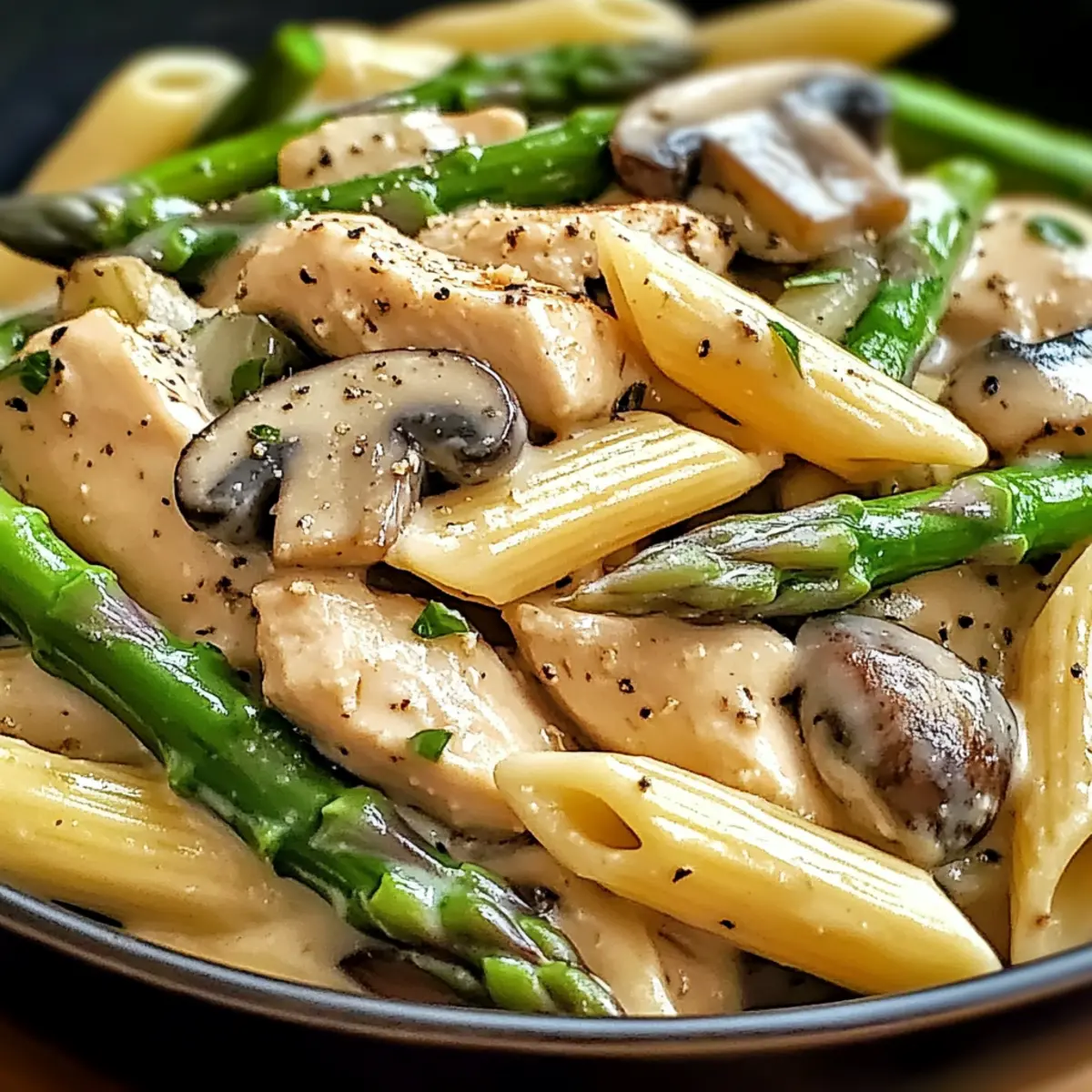 Eines Abends, als der Duft von gebratenem Knoblauch durch meine Küche wehte, wurde mir klar, dass es Zeit war für etwas, das den Alltag aufhellt. Mein Herz schlägt für hausgemachtes Essen, besonders wenn es so unkompliziert ist wie dieses Pilz- und Spargel-Hühnchen-Penne. In nur 30 Minuten zaubern wir ein cremiges, tröstliches Gericht, das nicht nur schnell zubereitet ist, sondern auch ganz nach deinem Geschmack angepasst werden kann. Ob du nun nach einer vegetarischen Variante mit Tofu suchst oder die saftigen Aromen von Hähnchen und frischem Gemüse bevorzugst – diese kreative Pastakombination wird zum Star an deinem Esstisch. Neugierig auf die einfachen Schritte, die dieses wunderbare Rezept zum Leben erwecken? Warum wirst du dieses Rezept lieben? Einfachheit in Perfektion: Die Zubereitung ist kinderleicht und erfordert nur grundlegende Kochkenntnisse. Reicher, herzhaftiger Geschmack: Die Kombination aus Pilzen und Spargel sorgt für ein aromatisches Geschmackserlebnis. Vielseitig anpassbar: Egal, ob du Hähnchen, Tofu oder sogar Garnelen verwendest, das Rezept passt sich deinen Wünschen an. Zeitersparnis: In nur 30 Minuten hast du ein gemütliches Abendessen auf dem Tisch – perfekt für hektische Wochentage. Zufriedenstellende Mahlzeit: Jedes Bisschen ist ein Genuss und bringt Freude am Esstisch. Für eine leckere Ergänzung könntest du auch etwas Knoblauchbrot servieren! Pilz- und Spargel-Hühnchen-Penne Zutaten • Entdecke, wie einfach es ist, ein köstliches Gericht wie Pilz- und Spargel-Hühnchen-Penne zuzubereiten, das nicht nur sättigt, sondern auch begeistert! Für die Pasta Penne-Nudeln – Die perfekte Grundlage für das Gericht; verwende glutenfreie Nudeln, wenn du es verträgst. Hähnchenbrust – Sorgt für einen proteinreichen Genuss; kannst stattdessen auch Garnelen oder Tofu verwenden, um das Rezept vegetarisch zu gestalten. Für das Gemüse Spargel – Bringt Farbe und einen knackigen Biss ins Gericht; frischer oder gefrorener Spargel ist gleichermaßen geeignet. Champignons – Verleiht einen erdigen Geschmack; nutze verschiedene Sorten wie Cremini oder Champignons für Abwechslung. Für die Sauce Schlagsahne – Kreiert eine reichhaltige, cremige Sauce; für eine leichtere Option nimm vollfette Milch oder Kokoscreme. Knoblauch – Intensiviert das Aroma; frischer Knoblauch ist ideal, aber pulverisierter ist auch in Ordnung. Olivenöl – Essentiell zum Anbraten; tausche es gegen Butter aus, wenn du einen reichhaltigeren Geschmack möchtest. Parmesankäse – Fügt Cremigkeit und Umami hinzu; für eine milchfreie Variante kannst du Nährhefe verwenden. Für die Würze Salz & Pfeffer – Unentbehrlich zur Geschmacksverstärkung; passe die Menge einfach deinem Geschmack an. Schritt-für-Schritt-Anleitung für Pilz- und Spargel-Hühnchen-Penne Step 1: Nudeln kochen Bringe in einem großen Topf gesalzenes Wasser zum Kochen. Füge die Penne-Nudeln hinzu und koche sie al dente für etwa 10 bis 12 Minuten. Rühre gelegentlich um, damit sie nicht zusammenkleben. Wenn die Nudeln fertig sind, gieße sie ab und bewahre eine Tasse des Nudelwassers auf. Step 2: Gemüse anbraten In einer großen Pfanne das Olivenöl bei mittlerer Hitze erhitzen. Füge den fein gehackten Knoblauch hinzu und brate ihn für etwa 30 Sekunden, bis er duftet. Gib die Champignons in die Pfanne und brate sie für 5 bis 7 Minuten, bis sie goldbraun sind und eine schöne Farbe bekommen. Step 3: Hähnchen hinzufügen Erhöhe die Hitze und füge die gewürfelte Hähnchenbrust zu den Pilzen in die Pfanne. Würze das Fleisch mit Salz und Pfeffer und brate es für etwa 6 bis 8 Minuten, bis es braun und durchgegart ist. Füge in den letzten 2 Minuten den Spargel hinzu, damit er zart und knusprig bleibt. Step 4: Cremige Sauce kreieren Reduziere die Hitze auf niedrig und rühre die Schlagsahne in die Pfanne. Lass die Mischung für 3 bis 5 Minuten köcheln, bis sie dickflüssig wird. Falls die Sauce zu dick ist, kannst du nach Bedarf etwas von dem reservierten Nudelwasser hinzufügen, um die gewünschte Konsistenz zu erreichen. Step 5: Pasta kombinieren Gib die gekochten Penne in die Pfanne mit der cremigen Sauce. Mische alles gut, bis die Nudeln gleichmäßig mit der Sauce überzogen sind. Achte darauf, dass die Pasta in der leckeren, cremigen Mischung versinkt. Step 6: Servieren und garnieren Serviere das Pilz- und Spargel-Hühnchen-Penne warm auf Tellern. Garniere die Portionen großzügig mit frisch geriebenem Parmesan und frisch gemahlenem schwarzem Pfeffer. Optional kannst du frische Kräuter darüber streuen, um das Gericht noch ansprechender zu gestalten. Was passt zu Pilz- und Spargel-Hühnchen-Penne? Ein köstliches Gericht wie dieses verdient stimmige Begleiter, die das Geschmackserlebnis noch perfekt abrunden und den Esstisch zum Leuchten bringen. Knoblauchbrot: Dieses himmlische, knusprige Brot ist perfekt, um die cremige Sauce aufzusaugen und harmoniert wunderbar mit den zarten Aromen des Gerichtes. Caesar-Salat: Frischer Römersalat mit Parmesan und croutons sorgt für eine erfrischende Abwechslung und balanciert die Cremigkeit der Pasta ideal aus. Gegrilltes Gemüse: Eine Auswahl an buntem, saisonalem Gemüse, leicht gegrillt, ergänzt die Texturen und Aromen und bringt Farbe auf den Teller. Weißwein: Ein frischer, spritziger Weißwein wie Sauvignon Blanc passt hervorragend zur reichhaltigen Soße und hebt die Aromen der Pilze und des Spargels hervor. Zitronensorbet: Ein leichtes Sorbet nach dem Abendessen wirkt erfrischend und reinigt den Gaumen, sodass der Geschmack des nächsten Gangs voller Intensität zur Geltung kommt. Frischer Obstsalat: Die natürlichen Süße von frischem Obst ist ein perfektes, leichtes Dessert, das den Abend angenehm abrundet und die Geschmacksknospen erfreut. Variationen & Alternativen für Pilz- und Spargel-Hühnchen-Penne Lass deiner Kreativität freien Lauf und kombiniere die Geschmäcker, die dir am meisten zusagen! Vegetarische Variante: Tausche das H