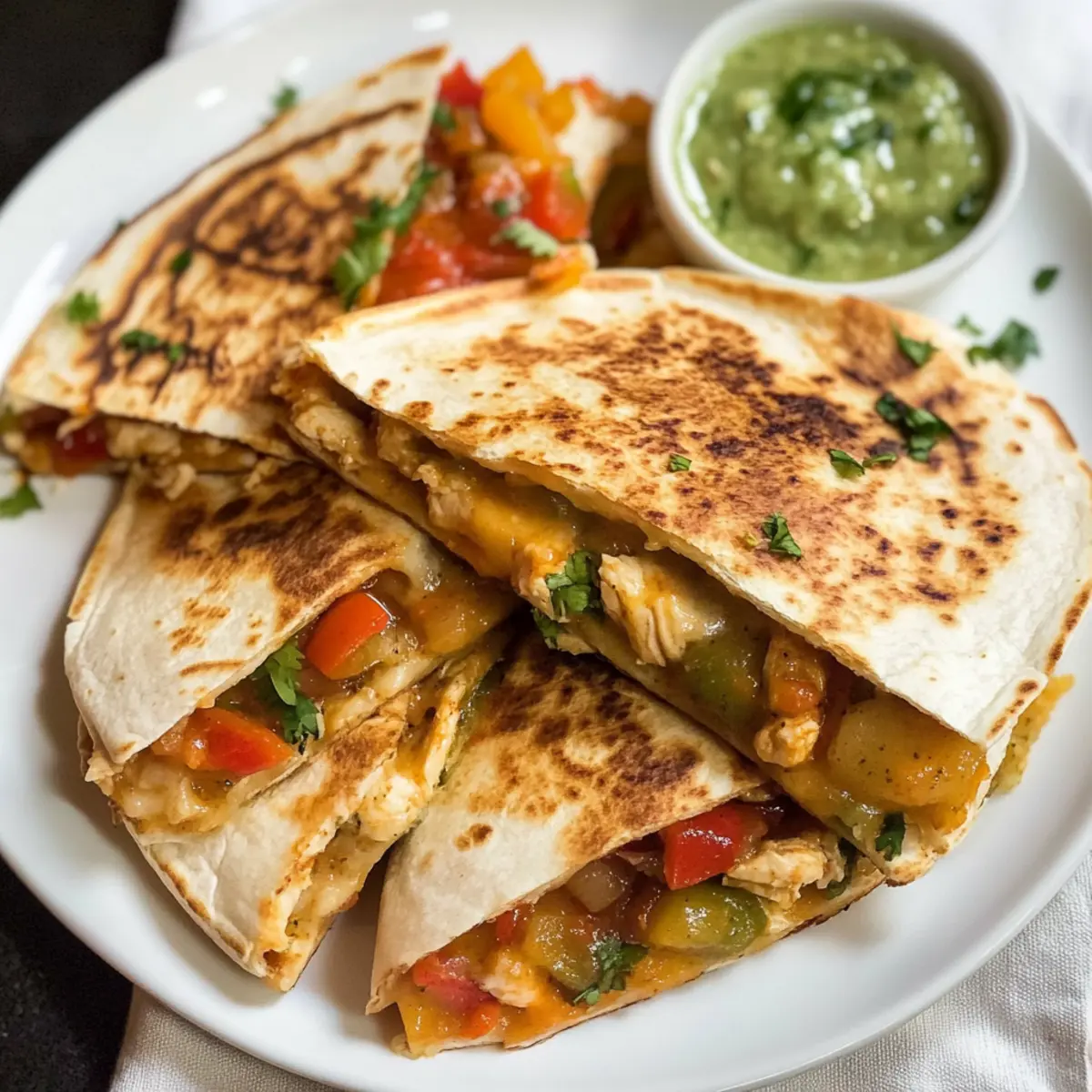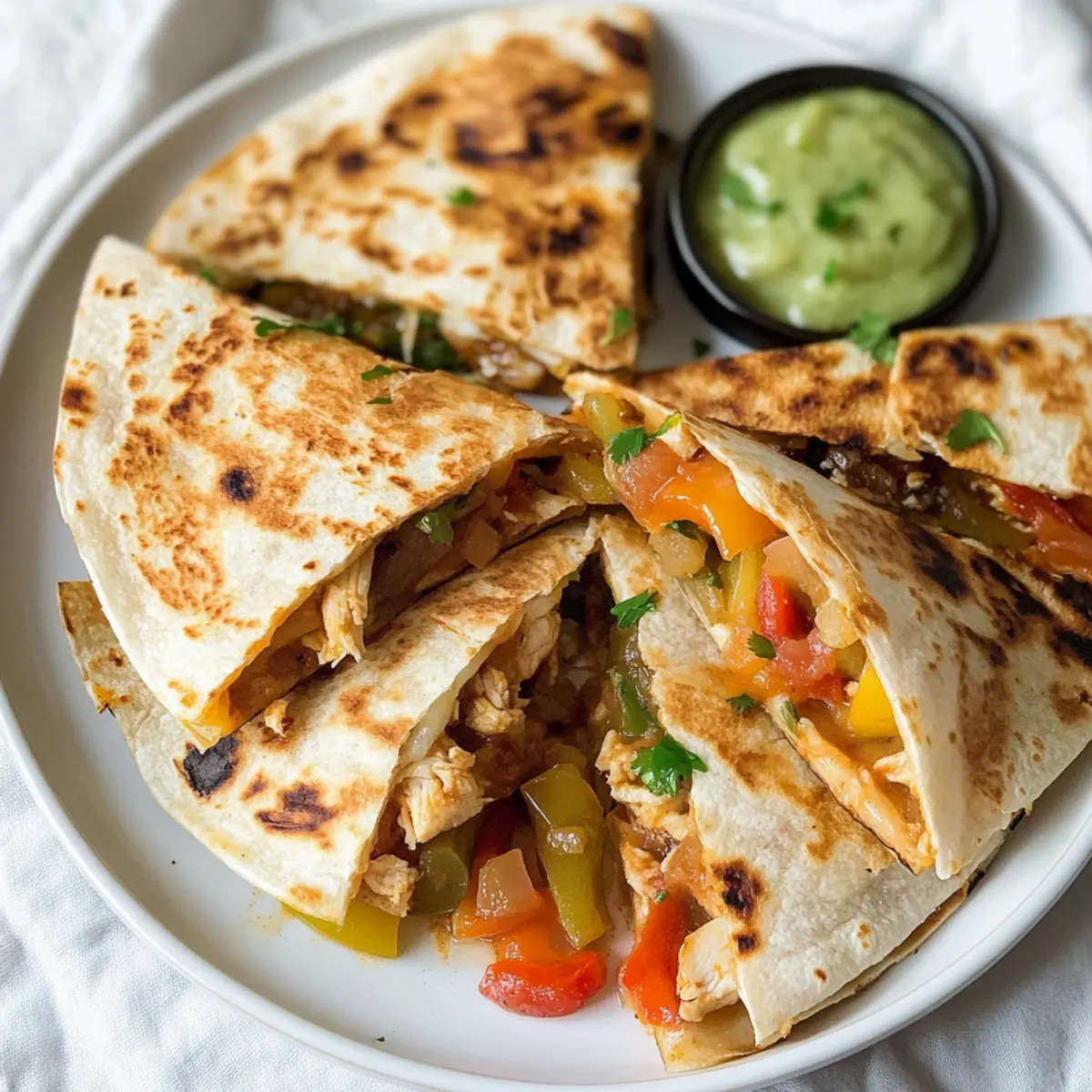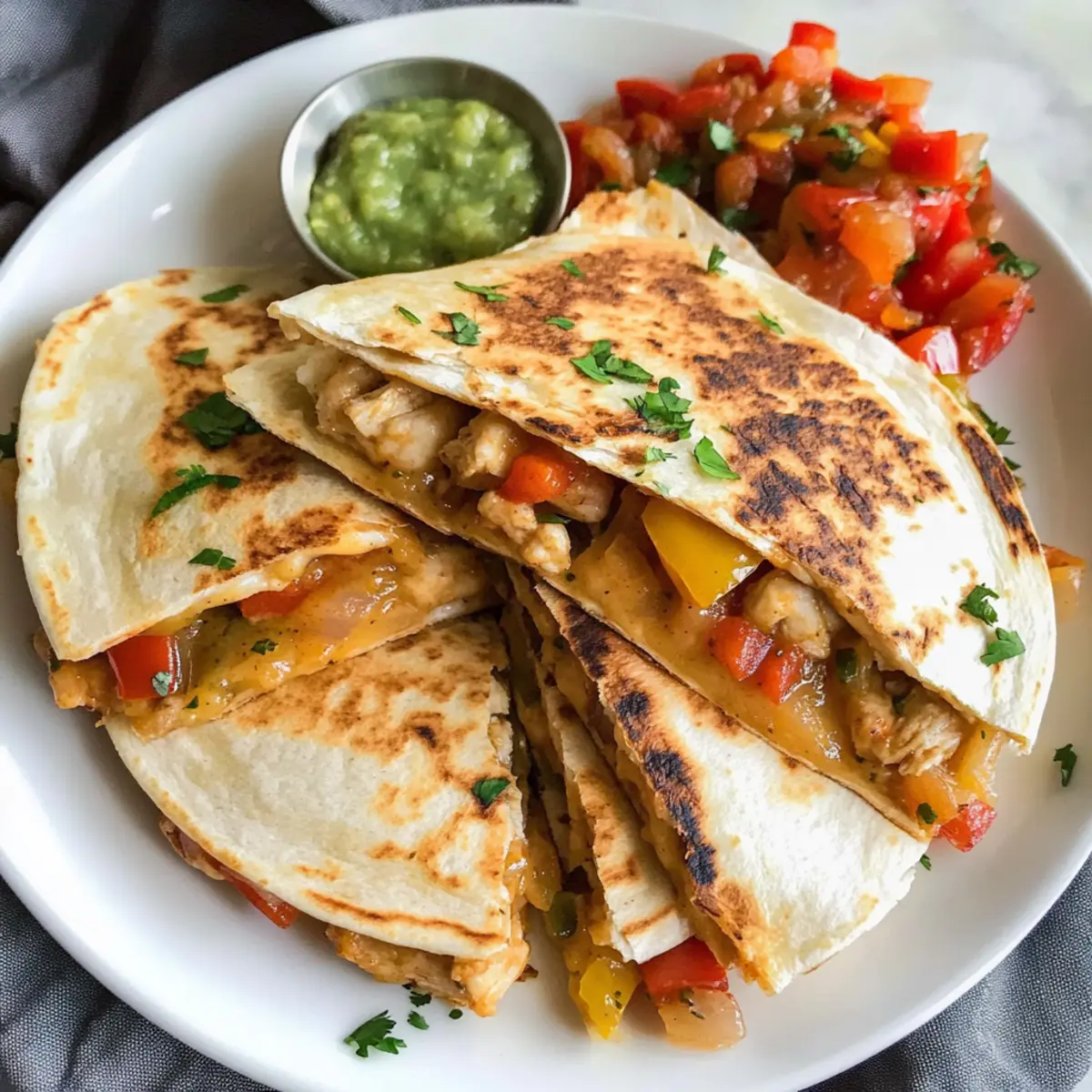 Die Vorstellung eines knusprigen Quesadillas, die mit würzigem, fajita-style Hühnchen und geschmolzenem Käse gefüllt ist, lässt mir das Wasser im Mund zusammenlaufen. Quesadillas sind nicht nur ein Symbol der mexikanischen Komfortküche, sie sind auch wahre Freude für die Sinne. Diese Ultimate Chicken Quesadillas sind schnell zubereitet und eignen sich hervorragend für ein leichtes Mittagessen oder ein herzhaftes Abendessen, perfekt für hektische Tage. Mit ihrer köstlichen Kombination aus Aromen und dem zarten, geschmolzenen Käse werden sie fast jede Geschmacksrichtung glücklich machen. Neugierig, wie Sie dieses köstliche Gericht selbst zaubern können? Warum werden Sie diese Quesadillas lieben? Schnelle Zubereitung: Mit nur wenigen einfachen Schritten können Sie in kürzester Zeit eine köstliche Mahlzeit kreieren. Sie sind perfekt für stressige Tage oder unerwartete Gäste. Vielfältige Variationen: Ob mit Hühnchen, Gemüse oder verschiedenen Käsesorten – dieser Rezeptbasen bieten unzählige kreative Möglichkeiten. Köstliche Geschmacksexplosion: Die Kombination aus würzigem Hühnchen und schmelzendem Käse sorgt für ein Geschmackserlebnis, das Ihre Gäste begeistern wird. Beispiellose Textur: Die knusprige Tortilla trifft auf die zarte, cremige Füllung und schafft ein unwiderstehliches Mundgefühl. Klassischer Komfort: Quesadillas sind nicht nur ein einfaches Gericht, sondern auch eine großartige Möglichkeit, die herzliche mexikanische Küche zu genießen. Vergeuden Sie keine Zeit mehr mit Fast Food – probieren Sie diese Köstlichen Quesadillas aus und erleben Sie selbst die Freude am Kochen! Quesadillas Zutaten Für die Füllung Hühnchenbrust ohne Haut – Hauptquelle für Protein, können Sie durch Hühnchenschenkel oder zerrissenes Rindfleisch ersetzen. Chilipulver – Verleiht eine würzige Note; passen Sie die Menge je nach Schärfetoleranz an. Kreuzkümmel – Sorgt für einen warmen, erdigen Geschmack, der das Gericht bereichert. Salz und Pfeffer – Zum Würzen; verwenden Sie frisch gemahlenen Pfeffer für einen besseren Geschmack. Olivenöl – Zum Sautieren von Hühnchen und Gemüse. Paprika (gehackt) – Fügt Süße und Textur hinzu; kombinieren Sie rote und grüne für mehr Farbe. Rote Zwiebel (gehackt) – Bringt eine dezente Süße und Tiefe in die Füllung. Knoblauch (gehackt) – Verstärkt den Geschmack beim Anbraten. Frisch gepresster Limettensaft – Hellt den Gesamtgeschmack der Füllung auf. Für die Quesadillas Mehl-Tortillas – Die Basis der Quesadilla; verwenden Sie große Tortillas für großzügige Portionen. Cheddar-Käse (gerieben) – Für einen reichen, klassischen Geschmack; kann durch einen halbfesten Käse ersetzt werden. Monterrey Jack Käse (gerieben) – Schmilzt gut und sorgt für Cremigkeit; alternativ Asadero oder Oaxaca Käse für einen traditionelleren Geschmack. Für die Beilagen Guacamole, Sauerrahm, Pico de Gallo oder Salsa – Optionale Toppings zur Geschmacksverstärkung. Schritt-für-Schritt-Anleitung für Köstliche Quesadillas mit Fajita-Hühnchen Step 1: Hühnchen vorbereiten Mischen Sie die Hühnchenbrust mit Chilipulver, Kreuzkümmel, Salz und Pfeffer in einer Schüssel, bis sie gleichmäßig gewürzt ist. Lassen Sie das Hühnchen für etwa 10 Minuten ruhen, damit die Gewürze in das Fleisch einziehen. Dieser Schritt sorgt dafür, dass Ihre Quesadillas mit Fajita-Hühnchen besonders geschmackvoll werden. Step 2: Hühnchen braten Erhitzen Sie 2 Teelöffel Olivenöl in einer großen Pfanne bei mittlerer bis hoher Hitze. Geben Sie das gewürzte Hühnchen hinzu und braten Sie es etwa 6 Minuten lang, bis es goldbraun und vollständig durchgegart ist. Das Hühnchen sollte eine innere Temperatur von mindestens 75 °C erreichen. Nehmen Sie das Hühnchen aus der Pfanne und lassen Sie es in einer Schüssel ruhen. Step 3: Gemüse sautieren Fügen Sie das restliche Olivenöl in die gleiche Pfanne hinzu und erhitzen Sie es. Geben Sie die gehackte Paprika und die rote Zwiebel hinein und sautieren Sie sie für etwa 6 Minuten, bis sie weich und leicht karamellisiert sind. Fügen Sie in den letzten Minuten den gehackten Knoblauch hinzu und rühren Sie alles gut um. Damit bringen Sie zusätzliche Aromen in Ihre Quesadillas. Step 4: Limettensaft hinzufügen Sobald das Gemüse zart ist, drücken Sie frischen Limettensaft über die Mischung und rühren Sie alles gut durch. Dies bringt eine erfrischende Note in die Füllung und hebt die Aromen hervor. Mischen Sie das Hühnchen mit dem Gemüse in der Pfanne, sodass die Quesadilla-Füllung gut kombiniert ist. Step 5: Tortillas vorbereiten Nehmen Sie die Mehl-Tortillas und streichen Sie eine Seite mit geschmolzener Butter ein. Dies sorgt dafür, dass die Quesadillas beim Braten schön knusprig werden. Bereiten Sie alle Tortillas vor, bevor Sie mit dem Füllen beginnen, um einen reibungslosen Ablauf zu gewährleisten. Step 6: Quesadillas füllen Erhitzen Sie eine große beschichtete Pfanne auf mittlerer Hitze. Legen Sie eine Tortilla mit der Butterseite nach unten in die Pfanne. Belegen Sie sie mit einer Schicht Käse, gefolgt von der Hühnchen-Gemüse-Mischung und einer weiteren Käseschicht. Falten Sie die Tortilla vorsichtig in der Mitte zusammen und drücken Sie sie leicht an. Step 7: Quesadillas braten Braten Sie die Quesadilla 2 Minuten lang, bis die Unterseite goldbraun und knusprig ist. Wenden Sie sie dann vorsichtig mit einem Spatel und braten Sie die andere Seite für weitere 2 Minuten. Achten Sie darauf, dass sie nicht anbrennen, denn eine schöne goldene Farbe macht Ihre Quesadillas besonders appetitlich. Step 8: Quesadillas schneiden und servieren Nehmen Sie die fertig gebratenen Quesadillas aus der Pfanne und lassen Sie sie kurz abkühlen. Schneiden Sie sie in Wedges, um sie einfacher zu servieren. Diese köstlichen Quesadillas mit Fajita-Hühnchen stellen Sie am besten warm mit Beilagen wie Guacamole, Sauerrahm oder Salsa auf den Tisch. Lagerung und Einfrieren von Q