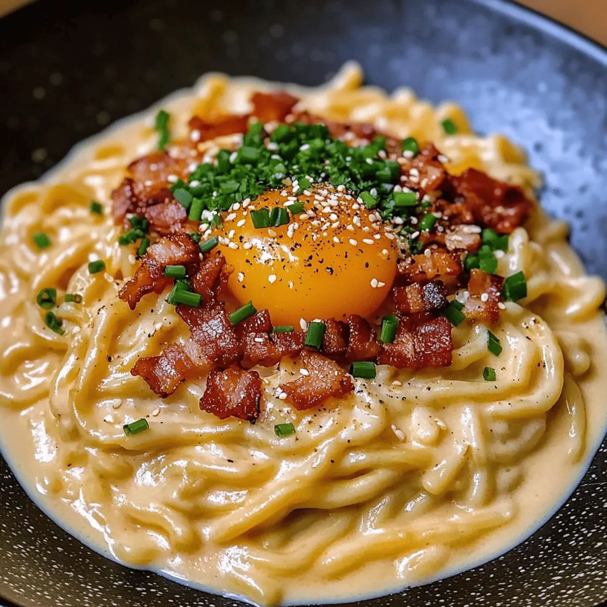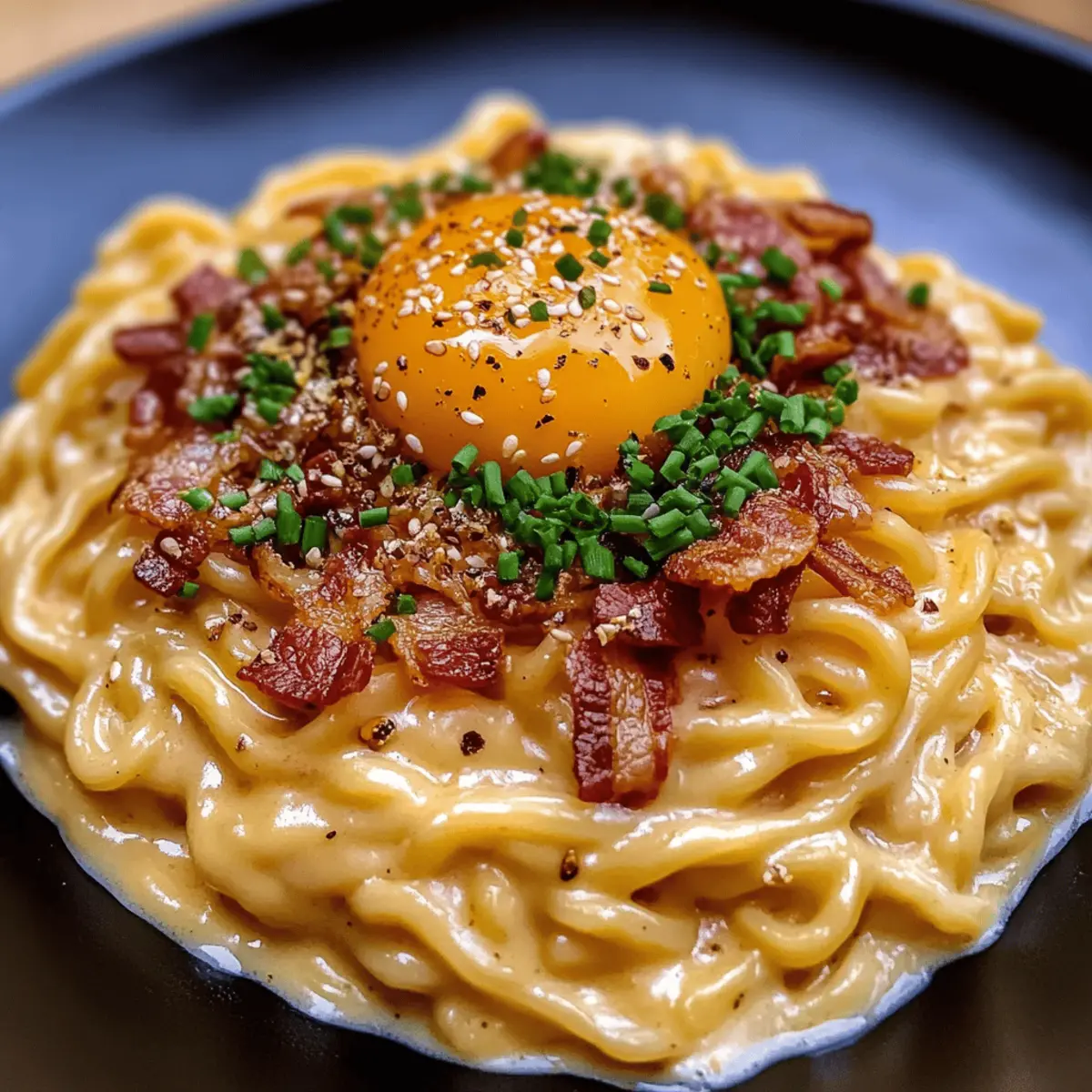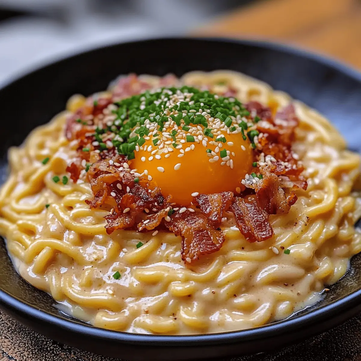 Die Verbindung aus italienischer Pasta und japanischen Aromen ist wie ein kulinarisches Liebesgedicht – und genau das ist die Ramen Carbonara. Diese einzigartige Kombination bringt nicht nur eine Geschmacksexplosion auf den Tisch, sondern benötigt auch weniger als 20 Minuten, was sie zur idealen Wahl für stressige Abende macht, an denen trotzdem ein tolles Essen auf den Tisch soll. Mit ihrer cremigen Sauce und der Kicks von Gochujang wird diese schnelle Fusion zu einem Hit für alle, die sich nach einer herzhaften, hausgemachten Mahlzeit sehnen. Egal, ob du ein fleischfreies Dinner planst oder eine glutenfreie Variante ausprobieren möchtest, diese Ramen Carbonara ist anpassungsfähig und passt zu jeder Gelegenheit. Neugierig, wie du diese köstliche Mischung zubereiten kannst? Lass uns gleich ins Kochvergnügen eintauchen! Warum solltest du Ramen Carbonara ausprobieren? Einzigartiger Geschmack: Diese Ramen Carbonara vereint das Beste aus zwei Welten – die cremige Textur der klassischen Carbonara und das umami-reiche Aroma von japanischen Ramen. Schnelle Zubereitung: In weniger als 20 Minuten hast du ein köstliches Gericht auf dem Tisch, das perfekt für hektische Abende geeignet ist. Vielseitig anpassbar: Egal, ob du ein Vegetarier bist oder glutenfrei kochen möchtest, dieses Rezept kann leicht modifiziert werden, um deinen Vorlieben gerecht zu werden. Zum Beispiel könntest du die Bacon-Stücke einfach durch gebratene Champignons ersetzen. Familienfreundlich: Dieses Gericht ist ein Hit für alle Altersgruppen und wird selbst die anspruchsvollsten Esser begeistern. Um das Erlebnis zu vervollständigen, könntest du es mit einem frischen Salat oder knusprigem Knoblauchbrot servieren. Einfache Zutaten: Mit alltäglichen Zutaten zauberst du in kürzester Zeit eine Gourmet-Mahlzeit. Du wirst dich fragen, warum du es nicht schon früher ausprobiert hast! Ramen Carbonara Zutaten • Du wirst überrascht sein, wie einfach du zu Hause diese Ramen Carbonara zubereiten kannst! Für die Würze Ramen-Nudeln – Sie sind die Grundlage dieses Gerichts und sorgen für die perfekte Textur; frische oder gefrorene Ramen sind hier ideal. Eier – Sie bilden die cremige Sauce, mische sie bei niedriger Hitze, um eine glatte Konsistenz zu erhalten. Eigelb – Verstärkt die Cremigkeit der Sauce und macht sie noch reichhaltiger. Parmesan-Käse – Gibt einen salzigen Geschmack und verstärkt das umami der Ramen Carbonara. Für die Würze Gochujang – Dieses würzige Element verleiht dem Gericht einen aufregenden Kick; passe die Menge nach deinem gewünschten Schärfegrad an. Bacon (oder Alternativen) – Bring eine herzhafte Note; kann für eine vegetarische Variante durch Pilze oder geräucherten Tofu ersetzt werden. Knoblauch – Sorgt für ein aromatisches Geschmacksprofil, wenn du ihn anbrätst. Für das Finish Sesamkörner und Schnittlauch – Diese machen das Gericht hübsch und fügen einen frischen, knackigen Geschmack hinzu. Schwarzer Pfeffer – Würze das Gericht mit einer Prise für wohltuende Wärme. Schritt-für-Schritt-Anleitungen für Ramen Carbonara Step 1: Sauce vorbereiten In einer Schüssel die Eier, das Eigelb, den Parmesan, den Gochujang und eine Prise schwarzen Pfeffer gut miteinander verquirlen. Achte darauf, alles gründlich zu mischen, bis die Mischung eine glatte Konsistenz erreicht hat. Diese cremige Sauce ist die Basis deiner Ramen Carbonara und verleiht dem Gericht seinen unverwechselbaren Geschmack. Step 2: Ramen kochen Bringe in einem großen Topf ausreichend Wasser zum Kochen und füge die Ramen-Nudeln hinzu. Koche sie gemäß der Packungsanweisung, normalerweise etwa 3-4 Minuten, bis sie al dente sind. Bevor du die Nudeln abgießt, hebe eine Tasse des Kochwassers auf, um die Sauce später anzupassen. Die Ramen-Nudeln sind nun bereit, in die Pfanne zu kommen. Step 3: Bacon und Knoblauch anbraten Erhitze eine große Pfanne bei mittlerer Hitze und füge den gewürfelten Bacon hinzu. Brate ihn, bis er knusprig und goldbraun ist, etwa 5-7 Minuten. Reduziere dann die Hitze und füge den gehackten Knoblauch hinzu; brate ihn für etwa 30 Sekunden, bis er aromatisch ist, aber achte darauf, dass er nicht verbrennt. Diese Aromen sind eine wunderbare Grundlage für deine Ramen Carbonara. Step 4: Kombinieren Sobald der Bacon knusprig und der Knoblauch fragrant ist, gieße die abgetropften Ramen-Nudeln in die Pfanne. Überwinde die Hitze auf niedrig und füge die vorbereitete Sauce hinzu. Mische alles gut durch, sodass die Nudeln vollständig von der cremigen Sauce umhüllt werden. Falls die Sauce zu dick ist, gib nach und nach etwas vom reservierten Kochwasser hinzu, bis die gewünschte Konsistenz erreicht ist. Step 5: Servieren Verteile die Ramen Carbonara auf Tellern und garniere sie mit zusätzlichem Parmesan, frisch gehacktem Schnittlauch und Sesamkörnern. Für einen besonderen Genuss kannst du optional ein weiteres Eigelb darüber setzen, um die Cremigkeit zu verstärken. Jetzt ist dein Gericht bereit, serviert zu werden – genieße diese köstliche, schnelle Fusion aus italienischen und japanischen Aromen! Was passt gut zur Ramen Carbonara? Die perfekte Ergänzung zu dieser köstlichen Mischung kann den Abend wirklich abrunden und die Aromen wunderbar zur Geltung bringen. Frischer grüner Salat: Knackige Blätter und leichte Dressing bieten eine erfrischende Ausgewogenheit zur cremigen Ramen Carbonara. Besonders mit einem Spritzer Zitrone harmoniert es hervorragend. Knoblauchbrot: Die knusprige Textur und der aromatische Knoblauchgeschmack ergänzen die herzhaften Noten des Gerichts wunderbar. Perfekt, um jeden Bissen der Ramen Carbonara aufzusaugen. Röstgemüse: Eine bunte Mischung aus saisonalem Gemüse bringt nicht nur Farbe auf den Teller, sondern auch zusätzliche Textur und Nährstoffe. Die Röstaromen sind ein toller Kontrast zur reichen Sauce. Eistee oder Limonade: Ein erfrischendes Getränk, das die Wärme der Gochujang mit einer spritzigen Note ausgleicht. Idea