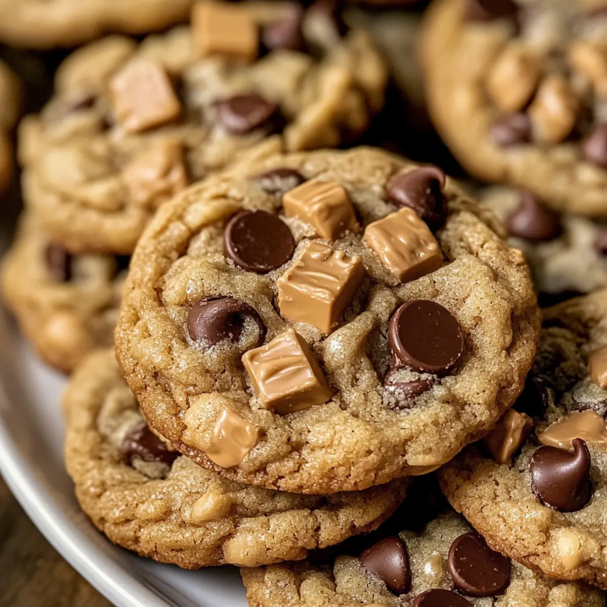 Köstliche Reese's Erdnussbutter Chip Cookies, die zarten Erdnußgeschmack und schokoladige Überraschungen kombinieren – ideal für jede Kaffeepause.