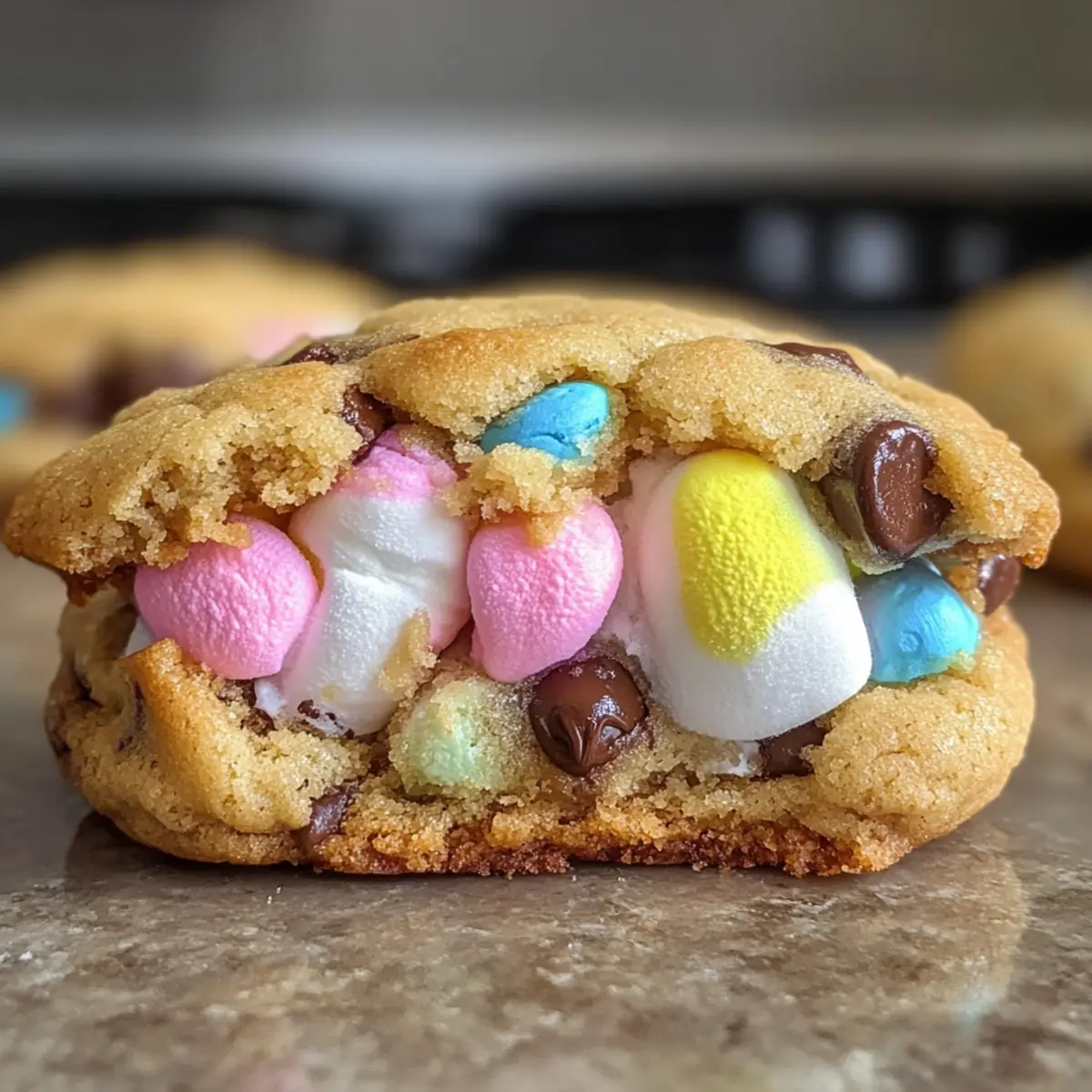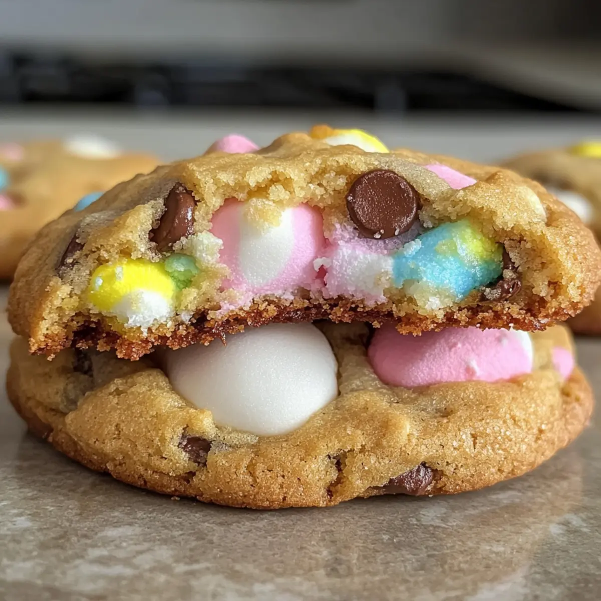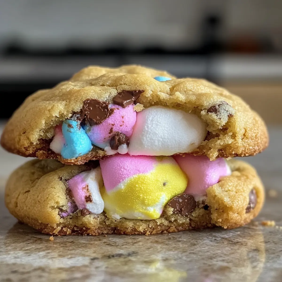 Wenn die Frühlingssonne aufgeht und die Luft nach Blumen duftet, ist es Zeit für die ultimative Leckerei: Riesen-Schokoladenstückchen mit Peeps! Diese riesigen, gefüllten Kekse bringen genau jene Fröhlichkeit auf den Tisch, die wir uns zu Ostern wünschen. Mit ihren dicken, buttrigen Keks außen und dem gooey Marshmallow-Zentrum innen sind sie nicht nur ein absoluter Hit bei jeder Feier, sondern auch schnell zubereitet, damit du mehr Zeit mit deinen Lieben verbringen kannst. Egal, ob du sie für die Familie backst oder deine Freunde beeindrucken möchtest, diese Kekse lassen sich ganz nach deinem Geschmack anpassen. Neugierig, wie du diese köstlichen Riesen-Kekse selbst zaubern kannst? Lass uns loslegen! Warum sind diese Kekse so besonders? Einfachheit: Die Zubereitung ist unkompliziert und benötigt nur grundlegende Backfähigkeiten, sodass jeder mitmachen kann. Festlicher Genuss: Diese Kekse bringen den Spaß und die Freude von Ostern auf den Tisch. Sie sind perfekt für Feiern oder das gemeinsame Backen mit der Familie. Kreative Anpassungsmöglichkeiten: Du kannst die Zutaten ganz nach deinem Geschmack variieren, z.B. mit weißen Schokoladenstückchen oder bunten Peeps. Zeitersparnis: Der Teig kann bis zu 48 Stunden im Voraus zubereitet werden, sodass du weniger Stress während der Feierlichkeiten hast. Ein echter Vorteil! Visuelle Attraktivität: Mit ihrem bunten Äußeren und der Überraschung im Inneren sind sie ein wahrer Augenschmaus, der garantiert für Gesprächsstoff sorgt. Gourmet Geschmack: Der Kontrast zwischen dem knusprigen Keks und dem schmelzenden Marshmallow schafft ein unvergessliches Geschmackserlebnis, das jeden begeistert! Riesen-Schokoladenstückchen Zutaten Für den Keks • Ungesalzene Butter (2 Stücken) – sorgt für Reichtum und Feuchtigkeit; stelle sicher, dass sie Zimmertemperatur hat für bessere Belüftung. • Zucker (½ Tasse) – fügt Süße hinzu und sorgt für knusprige Keksränder. • Brauner Zucker (¾ Tasse) – trägt zur Feuchtigkeit und einem zähen Biss bei. • Große Eier (2) – wirken als Bindemittel und bereichern den Teig; Eier bei Zimmertemperatur verwenden, um das Gerinnen zu verhindern. • Vanilleextrakt (2 TL) – verstärkt die Geschmacksvielfalt. • Backpulver (½ TL) & Natron (½ TL) – sorgt für das Aufgehen der Kekse und macht sie fluffig. • Maisstärke (1 EL) – lockert den Teig auf für eine zarte Textur und hilft, die Kekse dick zu halten. • Salz (¾ TL) – balanciert die Süße und verstärkt den Gesamtgeschmack. • Weißes Mehl (3 Tassen) – das Hauptstruktur gebende Element für die Kekse. • Halbsüße Schokoladenstückchen (2 Tassen) – verleiht schokoladigen Reichtum und Textur. Für die Füllung • Peeps-Easter-Marshmallows (1 Packung, 6-8 Stück) – das Hauptzutat, das eine gooey Überraschung schafft; kann durch große, aromatisierte Marshmallows ersetzt werden, wenn Peeps nicht verfügbar sind. Für die Dekoration • Osterstreusel (½ Tasse) – fügt festliche Deko hinzu, die das Aussehen der Kekse aufpeppt. Diese Riesen-Schokoladenstückchen verzaubern nicht nur mit ihrem köstlichen Geschmack, sondern bieten auch Platz für kreative Anpassungen, um sie zu deinem persönlichen Lieblingskeks zu machen. Schritt-für-Schritt-Anleitung für Riesen-Schokoladenstückchen mit Überraschung Schritt 1: Butter und Zucker cremig schlagen Schlage die ungesalzene Butter in einer Rührschüssel mit einem Standmixer für etwa 5 Minuten cremig, bis sie leicht und fluffig ist. Füge den Granulierten und den Braunen Zucker hinzu und mische alles gut, bis die Mischung eine helle Farbe annimmt. Dies ist der Schlüssel für die perfekten Riesen-Schokoladenstückchen. Schritt 2: Eier und Vanille hinzufügen Gib die großen Eier einzeln zur Butter-Zucker-Mischung und rühre nach jedem Ei gut um. Füge den Vanilleextrakt hinzu und mixe alles, bis die Komponenten vollständig kombiniert sind. Diese Schritte sorgen für die perfekte Konsistenz im Teig der Riesen-Schokoladenstückchen. Schritt 3: Trockene Zutaten vermischen Siebe in einer separaten Schüssel das Mehl, die Maisstärke, das Salz, das Backpulver und das Natron. Gib die trockenen Zutaten langsam bei niedriger Geschwindigkeit zur feuchten Mischung hinzu, bis alles gerade so verbunden ist. Achte darauf, nicht zu viel zu rühren, damit die Cookies schön fluffig bleiben. Schritt 4: Schokoladenstückchen und Streusel einfalzen Falte vorsichtig die halbsüßen Schokoladenstückchen und die bunten Osterstreusel unter den Teig. Hierbei entsteht die köstliche Schokoladen- und Festtagsnote, die die Riesen-Schokoladenstückchen besonders macht. Lass den Teig kurz ruhen, während du die nächsten Schritte vorbereitest. Schritt 5: Teigkugeln formen und kühlen Nutze eine 4-Unzen-Eiskelle, um gleich große Portionen des Teigs zu nehmen. Flachst du jede Teigkugel leicht und lege einen Peep in die Mitte. Wickel den Teig vollständig um diesen und forme wieder eine Kugel. Lege die Kugeln auf ein Backblech und kühle sie mindestens 2 Stunden, um ein Auslaufen der Füllung zu verhindern. Schritt 6: Ofen vorheizen und Kekse backen Heize den Ofen auf 190 °C vor. Lege ein Backblech mit Backpapier aus und verteile darauf 4 Teigkugeln, um genug Platz zum Ausdehnen zu lassen. Backe die Riesen-Schokoladenstückchen für 14-16 Minuten, bis die Ränder goldbraun und fest sind, während die Mitte noch weich bleibt. Schritt 7: Abkühlen lassen Lass die Kekse nach dem Backen für 20-30 Minuten auf dem Blech abkühlen, damit das Marshmallow richtig setzen kann. Dies sorgt für die perfekte gooey Überraschung, die beim ersten Biss herauskommt und die Riesen-Schokoladenstückchen zu einem unvergesslichen Erlebnis macht. Was passt zu Riesen-Schokoladenstückchen mit Überraschung? Mit diesen köstlichen Riesen-Schokoladenstückchen bringst du Frühlingsfreude auf den Tisch. Kombiniere sie mit passenden Beilagen, um dein Festmahl abzurunden. Milch: Perfekt für das Eintauchen! Eine k