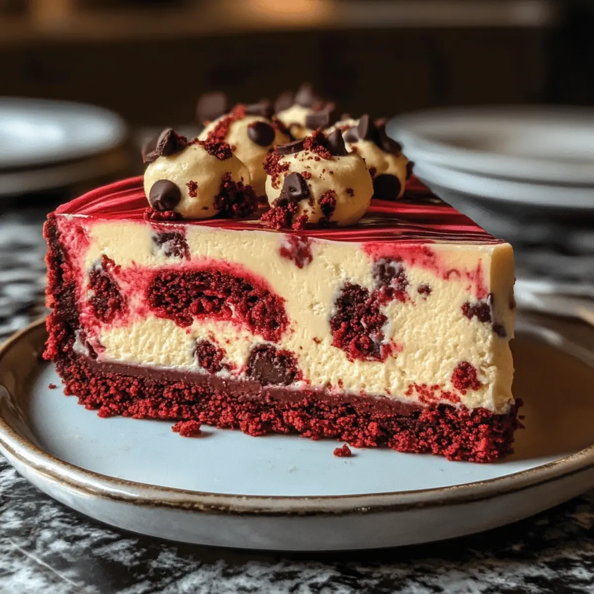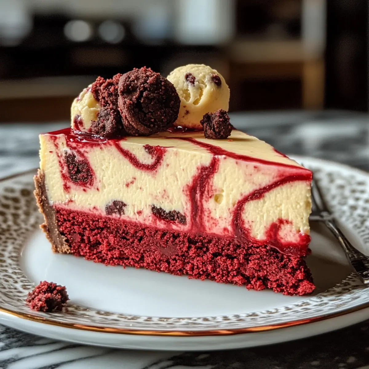 Genieße diesen einzigartigen Rote Samt Keksteig Käsekuchen, eine perfekte Kombination aus Schokolade und Vanille, ideal für festliche Anlässe.