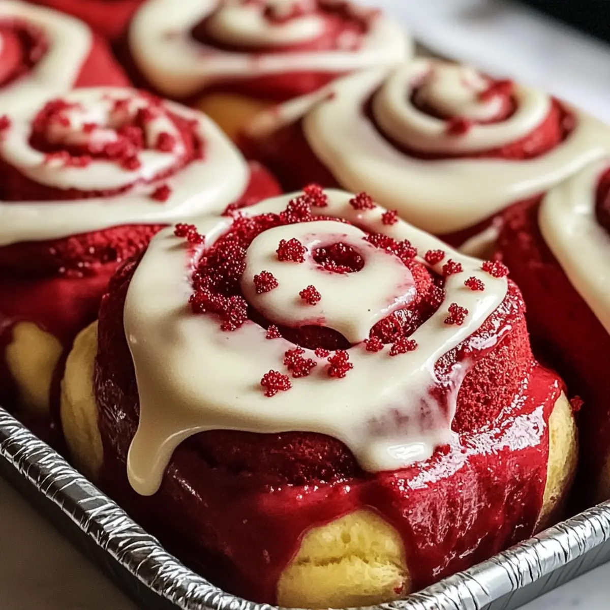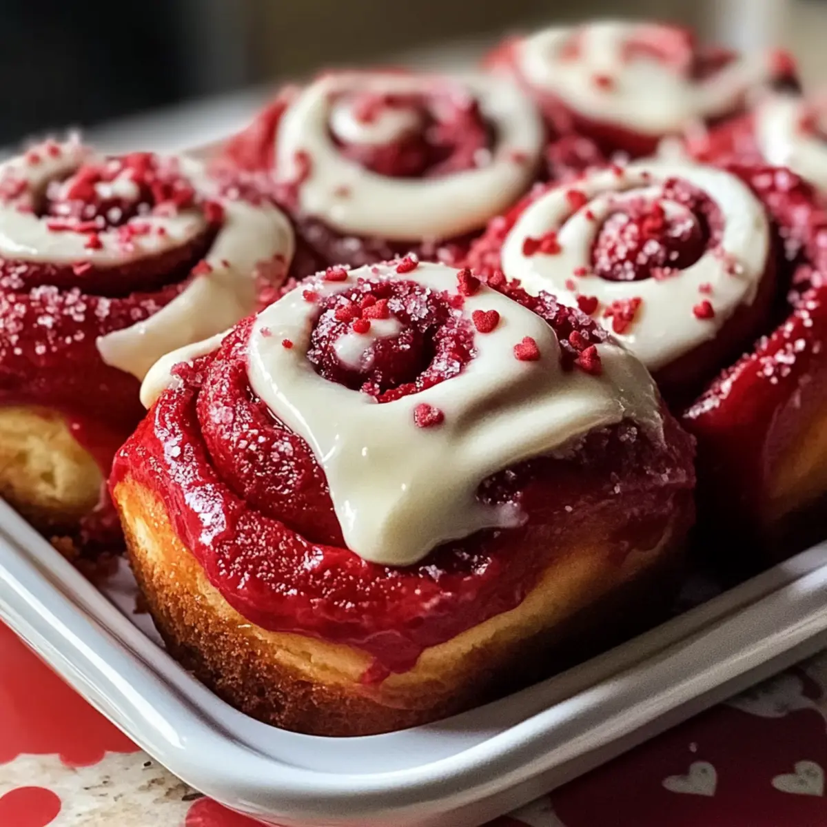 Der Duft frisch gebackener Zimtschnecken kann selbst an grauen Tagen die Stimmung heben. Mit diesen RotSamt Valentinstag Zimtschnecken bringe ich nicht nur Farbe, sondern auch Freude in jede Küche. Diese himmlischen Zimtschnecken kombinieren weich geschlagenen, schokoladigen Teig mit wärmer Gewürzen und einer cremigen Frischkäseglasur, die in jede Lockenwelle eindringt. Perfekt für ein romantisches Frühstück oder einen besonderen Brunch – sie sind ein echter Hingucker und dennoch einfach genug für Hobbybäcker jeder Stufe. Außerdem könnt ihr sie glutenfrei oder vegan zubereiten, was sie zu einer großartigen Wahl für alle macht. Seid ihr bereit, den Stereotypen der langweiligen Backwaren zu entfliehen und eure Liebsten mit einem süßen, unerwarteten Genuss zu überraschen? Warum sind diese Zimtschnecken einzigartig? Vielfältigkeit: Diese RotSamt Valentinstag Zimtschnecken lassen sich leicht anpassen, sodass du aufregende Füllungen oder Frostings ausprobieren kannst. Glutenfreies und veganes Rezept: Jeder kann sich an diesen Leckerbissen erfreuen – einfach die Zutaten anpassen. Einfachheit: Der Prozess ist unkompliziert und perfekt für Bäcker aller Fähigkeiten. Warmes Aroma: Der Duft von Zimt und Schokolade sorgt für Vorfreude beim Backen. Ansprechendes Aussehen: Die leuchtend rote Farbe macht sie zum Highlight jeder Feier. Lass deinen Gaumen nicht auf das Gewöhnliche verzichten – genieße diese besonderen Zimtschnecken bei deinem nächsten Brunch! RotSamt Valentinstag Zimtschnecken Zutaten Hinweis: Diese RotSamt Valentinstag Zimtschnecken sind nicht nur ein Fest für die Augen, sondern auch für den Gaumen! Für den Teig • Weizenmehl – Grundstruktur des Teiges; kann 1:1 durch glutenfreies Mehl ersetzt werden, wobei die Textur leicht variieren kann. • Kakaopulver – Verleiht den Zimtschnecken einen reichhaltigen Schokoladengeschmack; ungesüßte Version empfohlen. • Zucker – Sorgt für die nötige Süße im Teig. • Trockenhefe – Essentiell für das Aufgehen des Teiges; ungefähr 2 1/4 TL pro Packung. • Salz – Verstärkt den Geschmack und stabilisiert den Teig. • Warme Milch – Aktiviert die Hefe; sollte zwischen 40 und 46 °C sein; kann auch durch Buttermilch ersetzt werden. • Ungesalzene Butter – Fügt dem Teig Reichtum hinzu; kann durch geschmolzenes Kokosöl oder vegane Butter ersetzt werden. • Großes Ei – Liefert Feuchtigkeit und Reichhaltigkeit; für eine vegane Option durch ein Flachs-Ei ersetzen (1 EL gemahlener Flachs + 3 EL Wasser). • Rote Lebensmittelfarbe – Verleiht die charakteristische rote Farbe; für eine natürliche Option kann Rote-Bete-Pulver verwendet werden, wird jedoch den Geschmack und die Farbe leicht beeinflussen. • Vanilleextrakt – Fügt dem Teig eine angenehme Geschmacksnote hinzu. • Gemahlener Zimt – Wichtigstes Gewürz für die Füllung. • Brauner Zucker – Sorgt für Süße und Feuchtigkeit in der Füllung; gut gepackt für das beste Ergebnis. Für das Frosting • Frischkäse – Grundlage des Frostings; kann durch veganen Frischkäse ersetzt werden für eine milchfreie Option. • Puderzucker – Süßt das Frosting. • Milch – Verdünnt das Frosting; pflanzliche Milch kann für eine milchfreie Option verwendet werden. Schritt-für-Schritt-Anleitung für RotSamt Valentinstag Zimtschnecken Step 1: Teig vorbereiten Erwärme die Milch auf 40–46 °C und rühre die Trockenhefe ein. Lass die Mischung für etwa 5 Minuten ruhen, bis sie schaumig wird. In einer großen Schüssel vermische das Weizenmehl, Kakaopulver, Zucker und Salz. Füge die Hefemischung, geschmolzene Butter, das Ei, die rote Lebensmittelfarbe und den Vanilleextrakt hinzu. Rühre, bis ein homogener Teig entsteht, und knete ihn dann 5 Minuten lang auf einer bemehlten Arbeitsfläche, bis er glatt ist. Step 2: Teig gehen lassen Legen den gekneteten Teig in eine geölte Schüssel und decke ihn mit einem sauberen Küchentuch ab. Lass den Teig an einem warmen Ort für etwa 1 Stunde gehen, bis er sich verdoppelt hat und schön aufgegangen ist. Dies sorgt dafür, dass die RotSamt Valentinstag Zimtschnecken weich und luftig werden. Step 3: Ausrollen und füllen Nach dem Gehenlassen den Teig auf einer bemehlten Fläche sanft zusammenschlagen und zu einem Rechteck von etwa 30×23 cm ausrollen. Bestreiche den Teig gleichmäßig mit weicher Butter und streue braunen Zucker sowie Zimt gleichmäßig darüber. Diese Füllung verleiht den Zimtschnecken einen köstlichen Geschmack, den man nicht widerstehen kann. Step 4: Formen der Zimtschnecken Rolle den Teig von der langen Seite her straff auf, sodass ein länglicher Zylinder entsteht. Schneide diesen Zylinder in 8-12 gleich große Scheiben und lege sie in eine gefettete Auflaufform. Cover die Zimtschnecken mit einem Handtuch und lass sie noch etwa 30 Minuten an einem warmen Ort ruhen, damit sie erneut gehen können und schön fluffig werden. Step 5: Backen Heize den Ofen auf 175 °C vor. Backe die RotSamt Valentinstag Zimtschnecken für 20-25 Minuten, bis sie fest und leicht federnd in der Mitte sind. Achte darauf, dass sie nicht zu dunkel werden. In der Zwischenzeit kannst du das Frosting vorbereiten, um es gleich nach dem Backen über die warmen Zimtschnecken zu träufeln. Step 6: Frosting zubereiten Schlage in einer Schüssel den Frischkäse, Puderzucker, Milch und Vanilleextrakt zusammen, bis die Mischung cremig und glatt ist. Du kannst das Frosting nach Belieben anpassen, um die perfekte Konsistenz für die RotSamt Valentinstag Zimtschnecken zu erreichen. Halte es bereit, um die noch warmen Zimtschnecken damit zu dekorieren, sobald sie aus dem Ofen kommen. Step 7: Zimtschnecken dekorieren Sobald die Zimtschnecken gebacken sind und leicht abgekühlt haben, verteile das Frosting großzügig über den warmen Teigrollen. Durch die Wärme schmilzt das Frosting leicht und zieht in die Locken der Zimtschnecken ein. Serviere sie am besten warm und genieße den köstlichen Geschmack, den die 