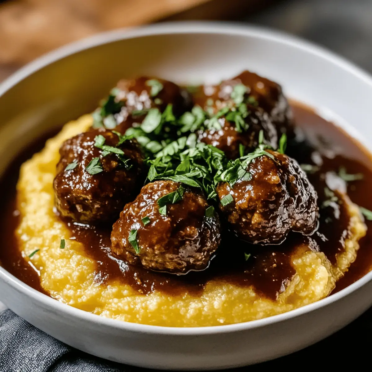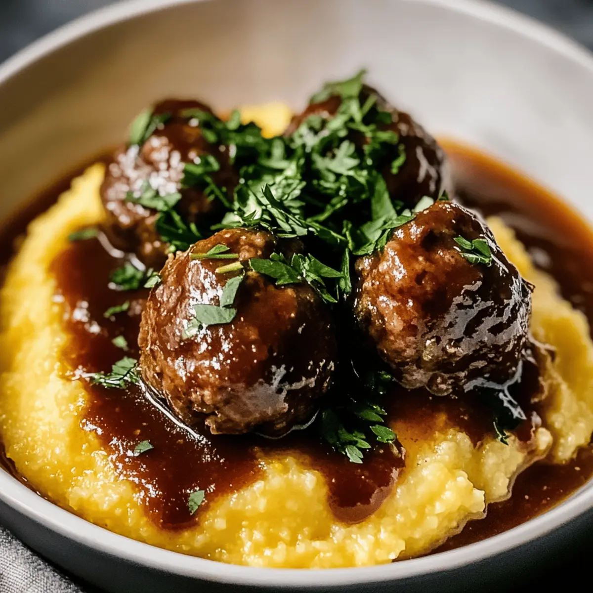 Stell dir vor, du sitzt an einem gemütlichen Tisch, während der Duft von frisch zubereiteten Rotwein geschmorten Fleischbällchen durch die Luft zieht – ein verlockender Moment, den man sich nicht entgehen lassen sollte. Diese zarten Fleischbällchen, umhüllt von einer schmackhaften, tiefroten Sauce, werden perfekt ergänzt durch cremige, käsige Polenta. Das Beste daran? Dieses herzhafte Gericht ist nicht nur ein echter Genuss, sondern auch schnell zubereitet – ideal für geschäftige Wochentage, an denen du trotzdem etwas Besonderes auf den Tisch bringen möchtest. Egal ob du die klassische Variante mit Rinderhack oder eine leichtere Option mit Hähnchen bevorzugst, hier ist für jeden etwas dabei. Bist du bereit, dein Abendessen auf ein neues Level zu heben? Warum wirst du dieses Rezept lieben? Einfachheit: Die Zubereitung der Rotwein geschmorten Fleischbällchen und der Polenta erfordert nur grundlegende Kochkenntnisse, sodass du schnell loslegen kannst. Reiche Aromen: Die Kombination aus Rotwein und Gewürzen schafft einen unvergleichlichen, herzhaften Geschmack, der deine Sinne verzaubert. Vielseitigkeit: Ob mit Rinderhack oder einer leichteren Hähnchenvariante – du kannst die Rezeptur nach deinen Vorlieben anpassen. Schnelligkeit: In nur einer Stunde hast du ein köstliches Gericht, das perfekt für stressige Wochentage ist. Familienfreundlich: Dieses Gericht kommt garantiert gut an und begeistert sowohl große als auch kleine Esser. Deine Lieben werden nach einem Nachschlag fragen! Rotwein geschmorte Fleischbällchen Zutaten Hinweis: Diese Zutatenliste umfasst alles, was du für die Zubereitung der köstlichen Rotwein geschmorten Fleischbällchen mit cremiger Polenta benötigst. Für die Fleischbällchen Hähnchenhackfleisch – Eine leichtere Option, die genauso saftig und schmackhaft ist. Du kannst es auch durch Rinder-, Schweine- oder Lammhack ersetzen. Kleine Zwiebel – Sie sorgt für Aromatik und Süße. Probiere Schalotten, wenn du einen milderen Geschmack bevorzugst. Knoblauch – Erhöht das Gesamtgeschmackserlebnis. Frisch ist am besten; getrocknet kann auch genutzt werden. Semmelbrösel – Sie geben den Fleischbällchen Struktur und Feuchtigkeit. Verwende glutenfreie Semmelbrösel für eine glutenfreie Variante. Geriebener Parmesan – Fügt den Fleischbällchen und der Polenta einen köstlichen Umami-Geschmack hinzu. Nutritional Yeast kann für eine vegane Option verwendet werden. Ei – Bindet die Mischung. Für eine vegane Variante kann gemahlene Leinsamen mit Wasser genutzt werden. Salz und Pfeffer – Unverzichtbar für die Würze. Passe die Menge nach deinem Geschmack an. Olivenöl (zum Anbraten) – Gibt den Fleischbällchen zusätzlichen Geschmack und Feuchtigkeit. Du kannst auch Pflanzenöl verwenden. Tomatenmark – Sorgt für Tiefe und Reichhaltigkeit in der Sauce. Bei Bedarf kann es durch pürierte Dosentomaten ersetzt werden. Rotwein (750 ml) – Eine herzhafte Sorte verstärkt den Geschmack der Sauce. Zinfandel oder Cabernet Sauvignon eignen sich hervorragend. Hühnerbrühe – Sorgt für mehr Tiefe; kann durch Gemüsebrühe für eine vegetarische Option ersetzt werden. Für die Polenta Polenta – Die Basis, die die Sauce aufnimmt und ergänzt. Maismehl kann verwendet werden, wenn Polenta nicht erhältlich ist. Wasser oder Hühnerbrühe (zum Kochen der Polenta) – Ersetze sie durch Gemüsebrühe, um die Polenta vegetarisch zu halten. Butter – Fügt der Polenta Cremigkeit hinzu. Zu diesem Zweck kann auch Olivenöl für eine laktosefreie Option verwendet werden. Schritt-für-Schritt-Anleitung für Rotwein geschmorte Fleischbällchen mit Polenta Step 1: Fleischbällchen vorbereiten In einer großen Schüssel vermischt du das Hähnchenhackfleisch, die Semmelbrösel, den geriebenen Parmesan, das Ei, Salz, Pfeffer, die gehackte Zwiebel und den Knoblauch. Forme die Mischung in gleichmäßige Fleischbällchen von etwa 3 cm Durchmesser. Erhitze in einer großen Pfanne 2 Esslöffel Olivenöl bei mittlerer Hitze und brate die Fleischbällchen, bis sie goldbraun sind (ca. 8-10 Minuten). Dann stelle sie beiseite. Step 2: Sauce zubereiten In derselben Pfanne gibst du bei mittlerer Hitze erneut einen Esslöffel Olivenöl hinzu. Sauté die gewürfelte Zwiebel, die Karotte und den Sellerie etwa 5 Minuten lang, bis sie weich sind. Rühre dann das Tomatenmark ein und koche es für 1 Minute mit. Anschließend gieße den Rotwein und die Hühnerbrühe dazu und lasse die Sauce 15-20 Minuten köcheln, bis sie leicht eingedickt ist. Step 3: Fleischbällchen schmoren Lass die Sauce leicht köcheln und füge die vorher gebratenen Fleischbällchen wieder in die Pfanne. Decke die Pfanne ab und lasse die Fleischbällchen für weitere 20-30 Minuten bei niedriger Hitze schmoren. So können sich die Aromen entfalten und die Fleischbällchen werden zart und saftig. Achte darauf, gelegentlich umzurühren und die Hitze gut zu regulieren. Step 4: Polenta kochen In einem separaten Topf bringst du 4 Tassen Wasser oder Hühnerbrühe zum Kochen. Wenn das Wasser sprudelt, streue die Polenta langsam ein, während du konstant mit einem Schneebesen rührst, um Klumpen zu vermeiden. Lasse die Mischung bei schwacher Hitze 10-15 Minuten köcheln, bis die Polenta dick und cremig ist. Rühre zum Schluss Butter und Parmesan unter und würze nach Geschmack mit Salz. Step 5: Servieren Verteile die cremige Polenta gleichmäßig auf Tellern und platziere die Rotwein geschmorten Fleischbällchen darauf. Garniere das Gericht nach Belieben mit frischer Petersilie. Das Aroma und die Farben machen dein Abendessen zu einem Fest der Sinne! Lagerungstipps für Rotwein geschmorte Fleischbällchen Kühlschrank: Deine Rotwein geschmorten Fleischbällchen können bis zu 3 Tage in einem luftdichten Behälter aufbewahrt werden. Gefrierfach: Die Fleischbällchen lassen sich bis zu 2 Monate einfrieren. Verwende einen gefriergeeigneten Behälter oder -beutel, um Gefrierbrand zu vermeiden. Einfrieren von Polenta