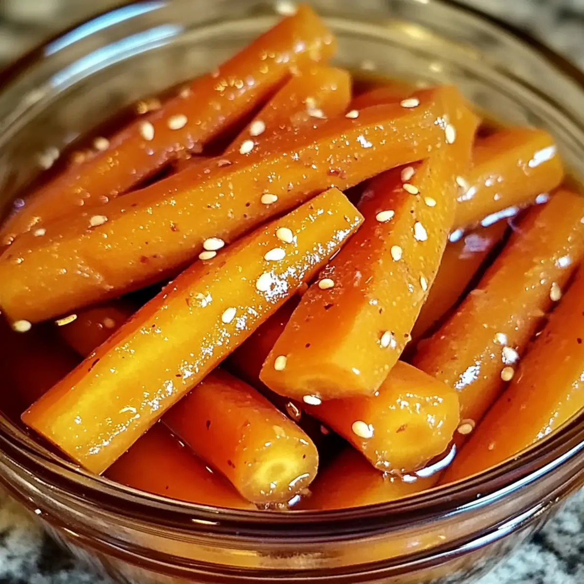 Scharfe Honig-Eingelegte Karotten sind ein bunter Feinschliff für jede Mahlzeit, ideal für Snacks und Beilagen.