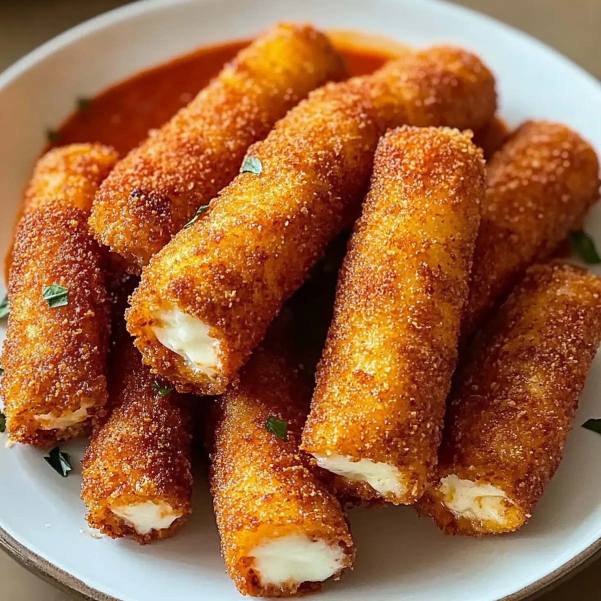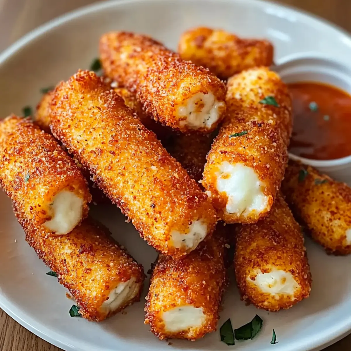 • Mozzarella-Sticks – Hauptzutat, die das köstliche, geschmolzene Innere bietet; halbieren Sie sie für einfacheres Frittieren.
