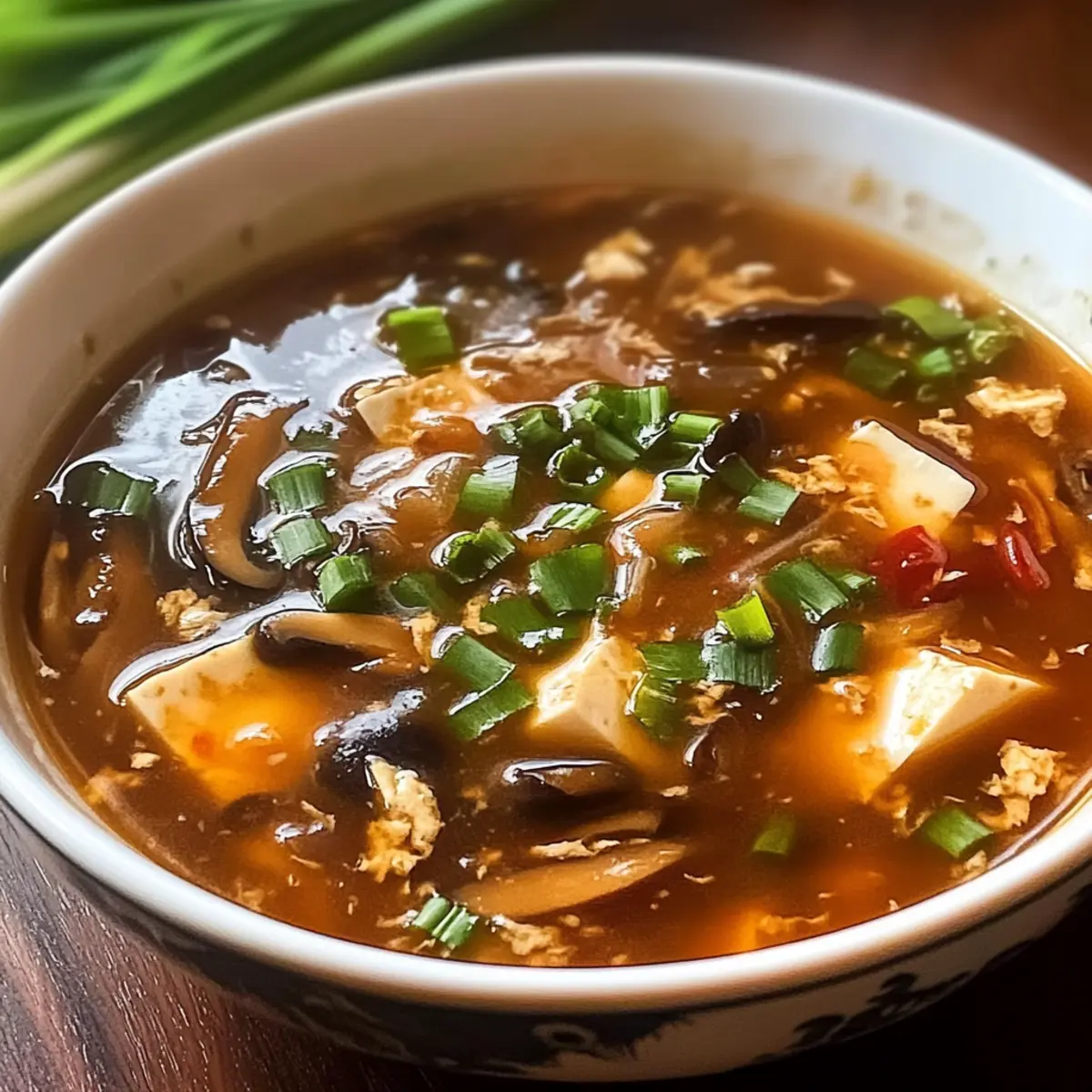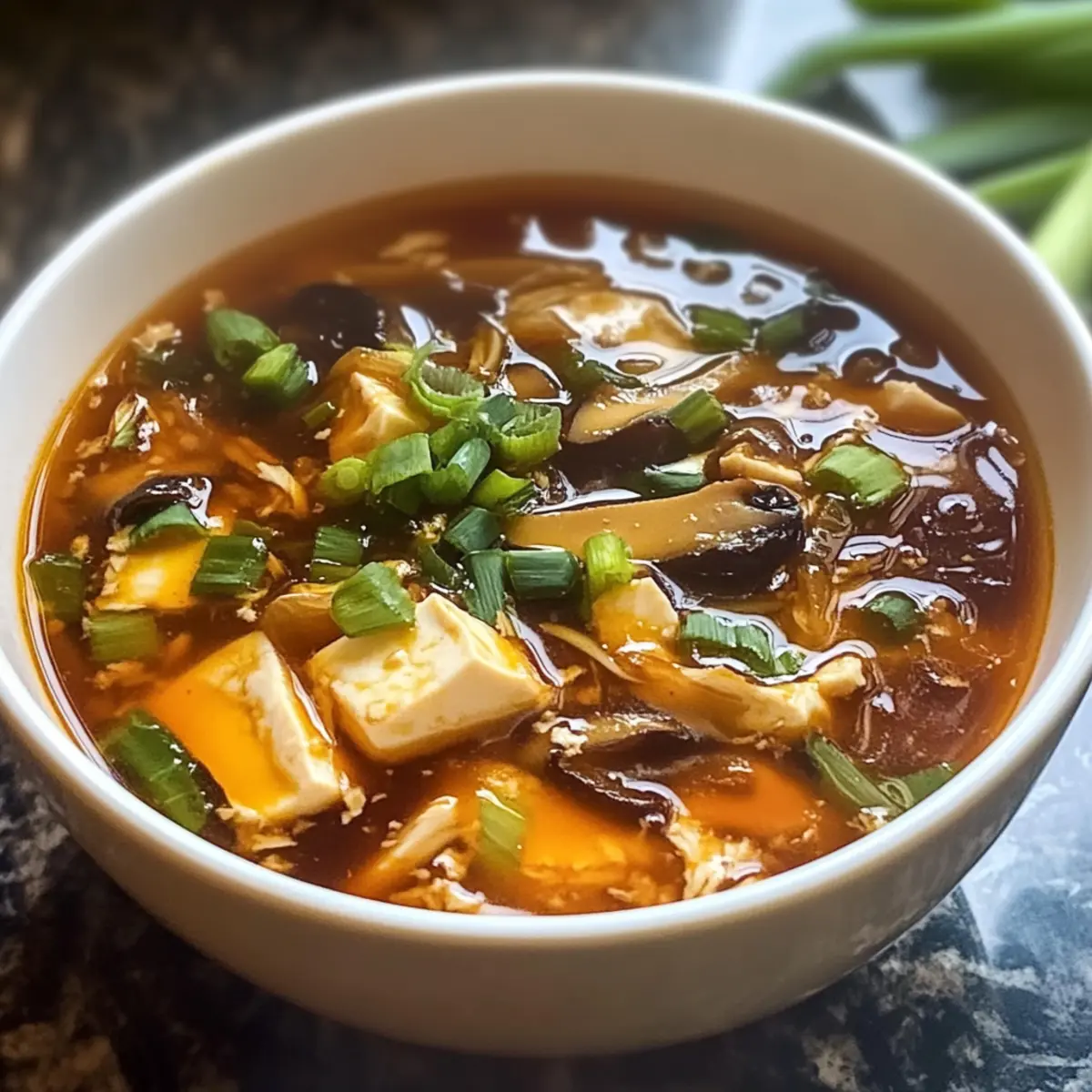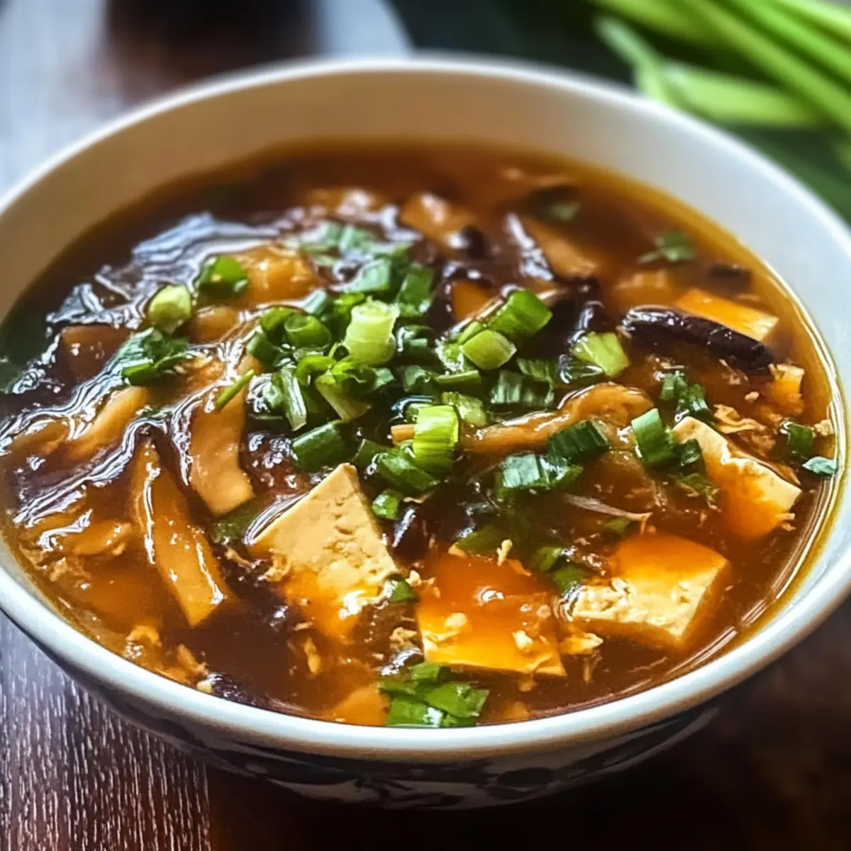 Die kühle Jahreszeit hat begonnen, und ich konnte nicht widerstehen, mich nach einem Rezept umzusehen, das sowohl mein Herz als auch meinen Bauch erwärmt. Schnelle und einfache Zubereitungen sind in dieser hektischen Zeit goldwert, und diese authentische chinesische Scharfe und Saure Suppe ist genau das! In nur 25 Minuten zaubern wir eine dampfende Schüssel voller umami-reicher Shiitake-Pilze, zartem Tofu und einer faszinierenden Mischung aus Schärfe und Säure. Diese Suppe ist nicht nur ein entscheidender Seelenwärmer für kalte Abende, sondern auch anpassungsfähig für Vegetarier und glutenfreie Genießer. Sie ist der perfekte Begleiter für gesellige Abende oder entspannte Familienessen. Neugierig geworden, wie einfach es ist, sich eine Portion Trost und Wärme auf den Tisch zu zaubern? Warum ist diese Suppe so beliebt? Schnell zubereitet: Mit nur 25 Minuten auf der Uhr, zaubern Sie im Handumdrehen ein köstliches Gericht. Vielseitig: Ob vegetarisch oder glutenfrei, die Anpassungsoptionen machen diese Suppe für jeden geeignet! Herzhafter Geschmack: Der Mix aus Shiitake-Pilzen und dem spritzigen schwarzen Essig sorgt für ein unvergessliches Geschmackserlebnis. Perfekte Textur: Genießen Sie die Harmonie aus zartem Tofu und feinen Eiern, die der Suppe eine aufregende Dimension verleihen. Ideal fürs Teilen: Ob für ein Familienessen oder einen geselligen Abend mit Freunden, diese Suppe wird jeden begeistert! Entdecken Sie auch unsere leckeren Varianten wie die Ingwer Limetten Hühnchensuppe für noch mehr Genuss! Scharfe und saure Suppen-Zutaten • Welche Zutaten Sie für diesen Genuss brauchen. Für die Brühe Hühnerbrühe – Sie bildet die geschmackvolle Basis der Suppe; ersetzen Sie sie durch Gemüsebrühe für eine vegetarische Variante. Sojasauce – Fügt Tiefe und Umami hinzu; verwenden Sie Tamari für eine glutenfreie Option. Schwarzer Essig – Sorgt für eine einzigartige Säure; tauschen Sie ihn gegen Reisessig für einen milderen Geschmack. Für die Hauptzutaten Shiitake-Pilze – Bringen einen reichen Umami-Geschmack; einfach durch Cremini- oder Champignons ersetzen, wenn Shiitake nicht verfügbar sind. Bambussprossen – Tragen zur knusprigen Textur bei; nutzen Sie Wasser-Kastanien als alternative, ähnliche Knusprigkeit. Frühlingszwiebeln – Dienen als Garnitur und sorgen für Frische; ein Muss für die Farbenpracht. Tofu – Liefert Proteine und eine angenehme Textur; fester oder seidiger Tofu funktioniert hervorragend hier. Eier – Werden verquirlt und in die Suppe gezogen, um samtige Ribbons zu kreieren; erfordert etwas Übung für die perfekte Technik. Für die Würze und Verdickung Maisstärke – Verdickt die Suppe und kreiert eine cremige Brühe. Weißer Pfeffer – Bringt Wärme und Würze; nach Geschmack adjustierbar. Chili-Paste/getrocknete Chilis – Fügt Schärfe hinzu; passen Sie die Menge nach Vorliebe an. Sesamöl – Verleiht der Suppe das authentische Aroma; unverzichtbar für echten Geschmack. Mit diesen Zutaten können Sie eine köstliche Scharfe und Saure Suppe zubereiten, die nicht nur schnell geht, sondern auch jedem schmeckt! Schritt-für-Schritt-Anleitung für Scharfe und saure Suppe Step 1: Brühe erhitzen Erhitzen Sie in einem großen Topf bei mittlerer bis hoher Hitze die Hühnerbrühe, bis sie zu kochen beginnt. Dies dauert etwa 5–7 Minuten. Achten Sie darauf, dass die Brühe lauthals köchelt, da dies die Aromen aktiviert und die Basis für Ihre Scharfe und saure Suppe bildet. Step 2: Pilze und Bambussprossen hinzufügen Fügen Sie die in Scheiben geschnittenen Shiitake-Pilze und die juliennierten Bambussprossen in die kochende Brühe ein. Lassen Sie alles etwa 5 Minuten köcheln, bis die Pilze zart sind und sich die Aromen entfalten. Rühren Sie gelegentlich um, damit nichts am Boden anhaftet und die Suppe gleichmäßig kocht. Step 3: Würze einrühren Rühren Sie nun Sojasauce, schwarzen Essig, weißen Pfeffer und Chili-Paste in die Suppe. Lassen Sie das Ganze weitere 2–3 Minuten auf niedrigerer Hitze köcheln. Schmecken Sie die Suppe ab und passen Sie die Würze nach Ihrem persönlichen Geschmack an – je nach Vorliebe können Sie mehr Essig oder Chili hinzufügen. Step 4: Suppe eindicken Um die Scharfe und saure Suppe zu verdicken, rühren Sie langsam die Maisstärke in etwas kaltem Wasser an, bis eine glatte Mischung entsteht. Fügen Sie diese Mischung schrittweise in die köchelnde Suppe ein. Rühren Sie kontinuierlich um, bis die Suppe eindickt und eine samtene Textur erreicht. Step 5: Eier einarbeiten Reduzieren Sie die Hitze auf niedrig und gießen Sie die verquirlten Eier langsam in die Suppe, während Sie mit einer Gabel oder einem Schneebesen gleichmäßig rühren. Dies führt zu zarten, seidigen Ribbons in der Suppe. Achten Sie darauf, dass die Suppe nicht mehr sprudelnd kocht, damit die Eier gleichmäßig kochen. Step 6: Tofu hinzufügen und erhitzen Fügen Sie zum Schluss die in Streifen geschnittenen Tofu-Würfel zur Suppe hinzu und lassen Sie sie 2 Minuten mitgaren, bis der Tofu durchgewärmt ist. Rühren Sie vorsichtig um, damit die Tofu-Stücke nicht zerbrechen. So bleibt die Struktur erhalten und verleiht Ihrer Scharfen und sauren Suppe einen schönen Biss. Step 7: Fertigstellen und Servieren Ziehen Sie den Topf vom Herd und träufeln Sie etwas Sesamöl über die Suppe für das letzte Aroma. Garnieren Sie die Suppe mit frischen, in Scheiben geschnittenen Frühlingszwiebeln. Servieren Sie die Scharfe und saure Suppe heiß und genießen Sie sie in einer gemütlichen Runde oder mit Ihrer Familie an einem kalten Abend. Lagerung und Einfrieren der Scharfen und sauren Suppe Kühlschrank: Bewahren Sie die Reste in einem luftdichten Behälter auf und genießen Sie sie innerhalb von 3 Tagen, um die besten Aromen zu erhalten. Einfrieren: Für längere Lagerung kann die Suppe bis zu 3 Monate eingefroren werden. Trennen Sie jedoch die Tofu- und Ei-Komponenten, da diese beim Auftauen ihre Textur beeinflussen können.