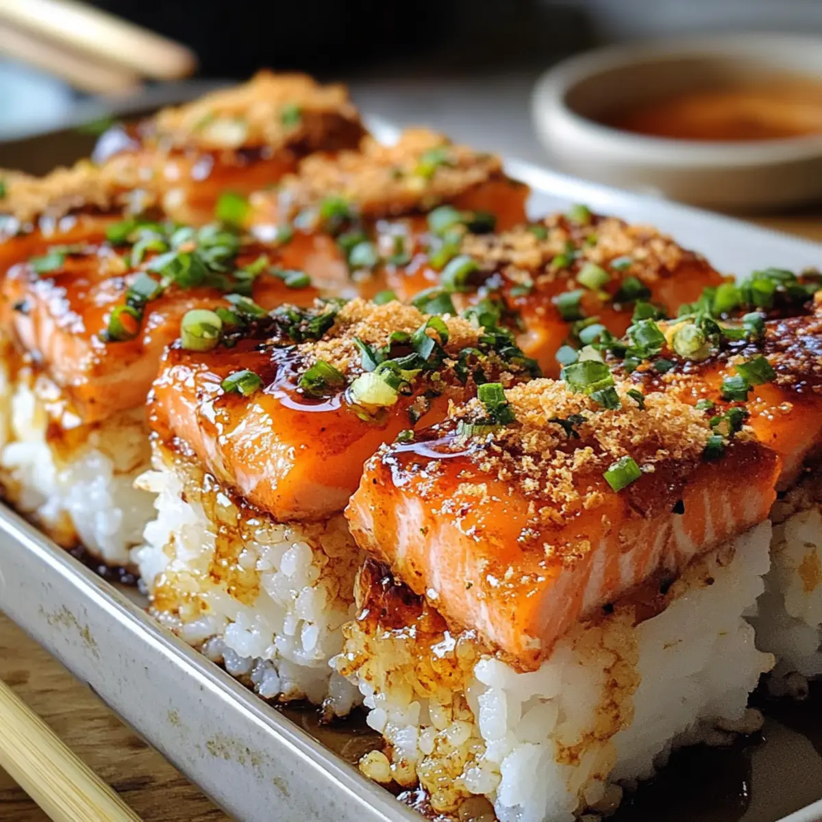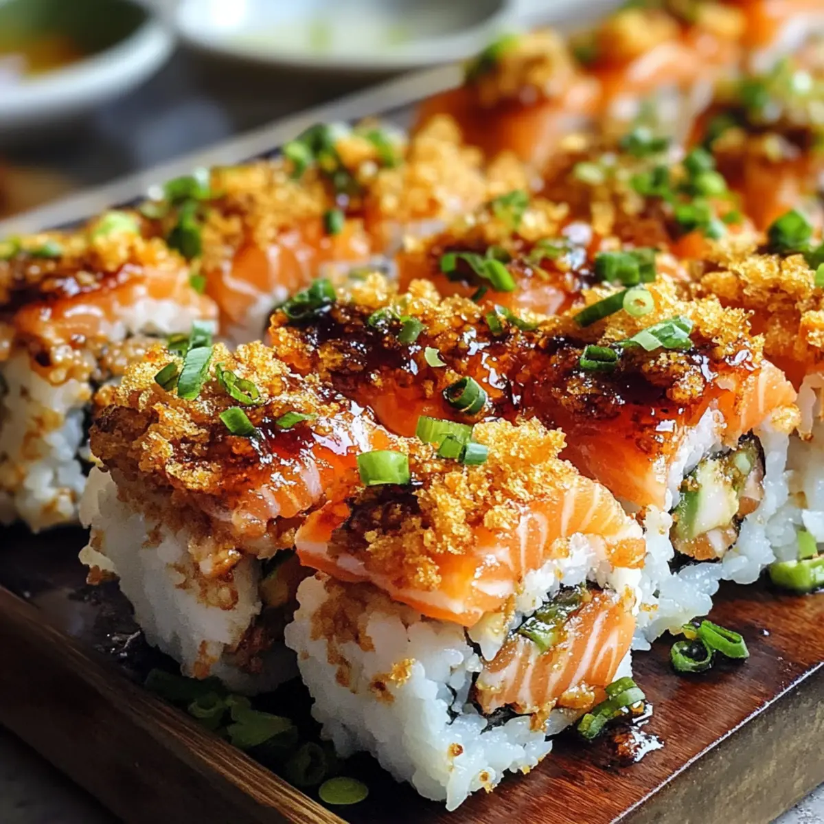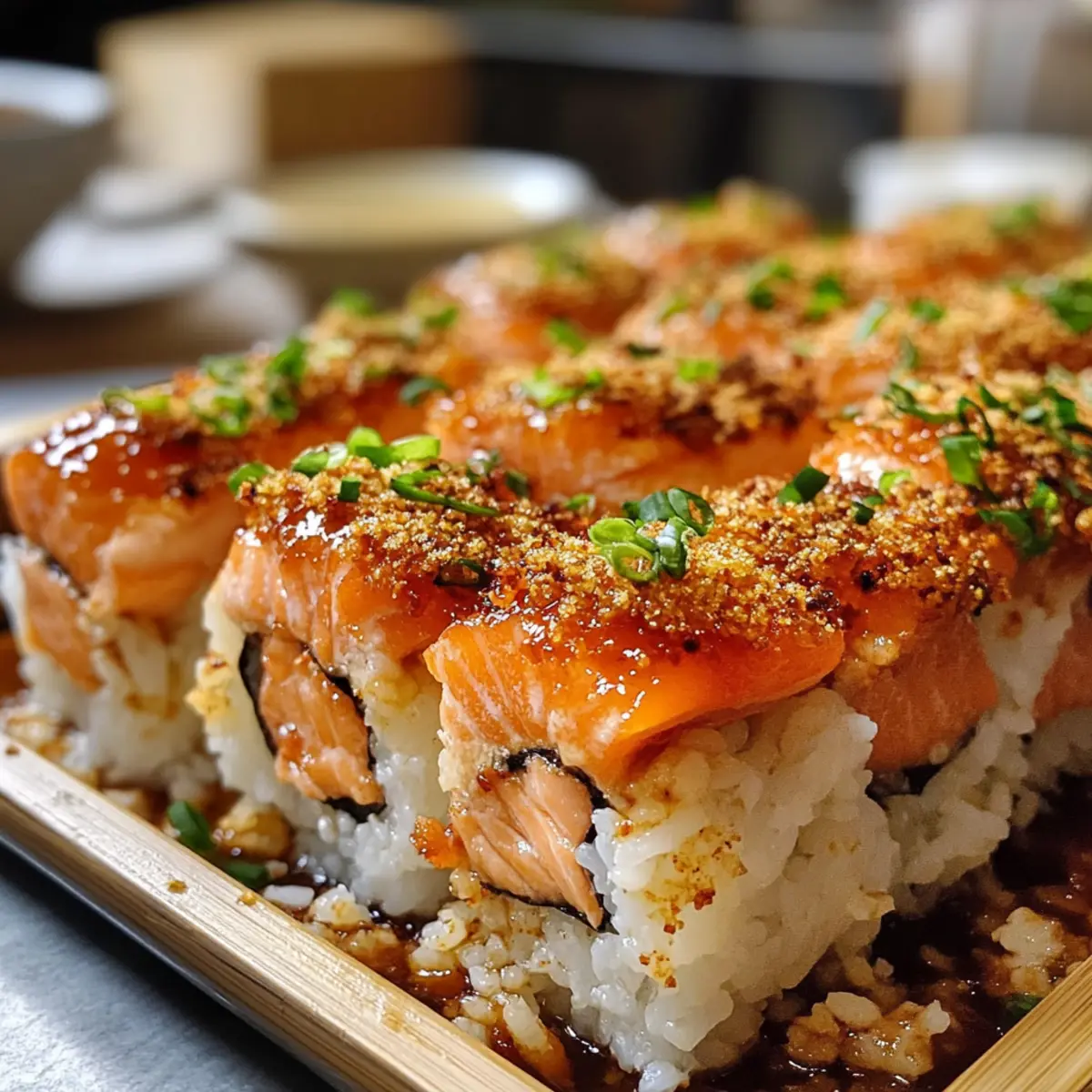 Ein unerwarteter Besuch stand vor der Tür, und ich hatte nichts im Kühlschrank, außer etwas Sushi-Reis und Lachs. Mein Kopf begann zu arbeiten, und so entstand der Scharfe Lachs Sushi Auflauf – eine köstliche Fusion aus Sushi-Aromen, die alle begeistern wird! Dieses Rezept bringt nicht nur den kühnen Geschmack von frisch zubereitetem Sushi auf den Tisch, sondern beeindruckt auch mit einer cremigen, würzigen Kruste, die ganz einfach im Ofen zubereitet werden kann. Perfekt für gesellige Abende oder ein gemütliches Dinner zu Hause. Zudem ist dieser Auflauf anpassbar – jeder kann den Schärfegrad nach Belieben einstellen. Neugierig, wie du diesen besonderen Leckerbissen zubereiten kannst? Lass uns gemeinsam in die Welt des Sushi-Bäkkens eintauchen! Warum wirst du diesen Auflauf lieben? Einfachheit: Die Zubereitung ist unkompliziert und eignet sich hervorragend für Anfänger in der Küche. Würziger Genuss: Die Kombination aus frischem Lachs und cremiger Sriracha-Soße sorgt für einen unverwechselbaren Geschmack, der alle Sinne anspricht. Vielseitigkeit: Du kannst die Zutaten ganz nach deinem Geschmack anpassen, sei es mit anderem Fisch oder zusätzlichen Gemüse-Toppings. Familienfreundlich: Dieser Auflauf ist ideal für die ganze Familie und perfekt für ein gemeinsames Essen, ohne lange in der Küche stehen zu müssen. Beeindruckende Optik: Die goldbraune, knusprige Oberseite macht sich hervorragend auf jedem Tisch und wird deine Gäste garantiert begeistern. Erlebe den Scharfen Lachs Sushi Auflauf und entdecke auch die besten Tipps für Sushi-Bowl-Rezepte und wie du deine Reste in ein neues Gericht verwandeln kannst! Scharfer Lachs Sushi Auflauf Zutaten Hinweis: Die folgenden Zutaten sind perfekt für den Scharfen Lachs Sushi Auflauf und bieten viele Möglichkeiten zur Anpassung! Für den Reis • Sushi-Reis – bildet die Basis; vor dem Kochen gründlich abspülen, um überschüssige Stärke zu entfernen. • Wasser – essentiell zum Kochen des Sushi-Reis. • Reisessig – sorgt für die wichtige Säure und den Geschmack im Reis. • Zucker – balanciert die Säure des Reisessigs und hebt den Gesamtgeschmack. • Salz – verstärkt den Geschmack des Reises. Für die Füllung • Frischer Lachsfilet – Hauptzutat, bringt reichhaltigen Geschmack und Textur; kann durch gekochtes Krebsfleisch oder Garnelen ersetzt werden. • Mayonnaise – die Basis für die cremige Soße, die für Reichtum sorgt; kann durch griechischen Joghurt für eine leichtere Option ersetzt werden. • Sriracha-Soße – sorgt für die gewünschte Schärfe; nach persönlicher Vorliebe anpassen. • Sesamöl – fügt Tiefe und ein nussiges Aroma hinzu. • Frühlingszwiebeln – für Frische und Garnierung; können durch Schnittlauch ersetzt werden. Für die Garnitur • Nori – bringt eine knusprige Note; optional, in kleine Streifen schneiden für die Dekoration. • Tobiko – optionale Garnitur für zusätzlichen Biss und Geschmack. Erlebe mit diesen Zutaten den unverwechselbaren Geschmack des Scharfen Lachs Sushi Auflaufs, der alle begeistern wird! Schritt-für-Schritt-Anleitung für den Scharfen Lachs Sushi Auflauf Step 1: Reis vorbereiten Spüle den Sushi-Reis unter fließendem Wasser, bis das Wasser fast klar ist, um überschüssige Stärke zu entfernen. Koche den Reis dann mit der richtigen Menge Wasser in einem Reiskocher oder einem Topf bei mittlerer Hitze, bis er zart ist. Decke den Topf ab und lasse den Reis 10 Minuten ruhen, damit er die Feuchtigkeit aufnehmen kann. Step 2: Essigmischung herstellen In einer kleinen Schüssel mische den Reisessig, den Zucker und das Salz. Rühre die Mischung gut um, bis sich der Zucker und das Salz vollständig aufgelöst haben. Mische die Essigmischung dann vorsichtig mit dem gekochten Reis, sodass der Reis gleichmäßig aromatisiert ist und die perfekte Basis für den Scharfen Lachs Sushi Auflauf bildet. Step 3: Lachsfüllung zubereiten Schneide das frische Lachsfilet in kleine Würfel und gib sie in eine separate Schüssel. Füge Mayonnaise, Sriracha-Soße, Sesamöl und die gehackten Frühlingszwiebeln hinzu. Mische alles gut durch, bis eine cremige und würzige Füllung entsteht, die hervorragend zum Sushi-Reis passt und dem Auflauf seinen einzigartigen Charakter verleiht. Step 4: Auflauf schichten Heize den Ofen auf 190 °C vor. Verteile den Sushi-Reis gleichmäßig in einer Auflaufform und drücke ihn leicht an, um eine feste Basis zu schaffen. Verteiler die Lachsfüllung gleichmäßig auf dem Reis, sodass die gesamte Fläche bedeckt ist. Diese Schichtung sorgt dafür, dass alle Aromen während des Backens gut miteinander verschmelzen. Step 5: Backen Schiebe die Auflaufform in den vorgeheizten Ofen und backe den Scharfen Lachs Sushi Auflauf für 25 bis 30 Minuten. Behalte den Auflauf im Auge, bis die Oberseite goldbraun und der Lachs durchgegart ist. Du erkennst, dass er fertig ist, wenn die Füllung leicht blubbert und eine köstliche Kruste bildet. Step 6: Anrichten und Servieren Nimm den Scharfen Lachs Sushi Auflauf aus dem Ofen und lasse ihn kurz abkühlen. Garniere den Auflauf mit zusätzlichen Frühlingszwiebeln, Nori-Streifen und, falls gewünscht, Tobiko für eine extra Geschmacksschicht. Serviere den Auflauf warm und genieße ihn zusammen mit eingelegtem Ingwer und Sojasauce für ein authentisches Sushi-Erlebnis. Vorbereitung für den Scharfen Lachs Sushi Auflauf Die Vorbereitung des Scharfen Lachs Sushi Auflaufs ist ein echter Zeitretter für geschäftige Wochentage! Du kannst den Sushi-Reis bis zu 24 Stunden im Voraus zubereiten und im Kühlschrank aufbewahren; achte darauf, ihn luftdicht zu verpacken, um trockene Stellen zu vermeiden. Die Lachsfüllung kann ebenfalls vorbereitet und bis zu 3 Tage im Voraus gekühlt werden. Achte darauf, den Lachs gut abzutrocknen, bevor du ihn mit den anderen Zutaten vermischst, damit die Füllung beim Backen nicht zu wässrig wird. Wenn du bereit bist, das Gericht zuzubereiten, schichte einfach den 